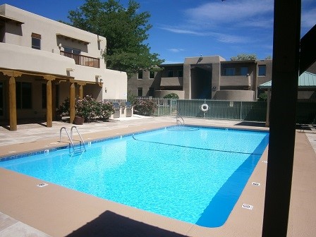 San Mateo de Santa Fe 1, 2 and 3 bedroom condos and brand new two-story 2 bedroom/3 bath townhomes to choose from ranging in size from 670 – 1379 sq. ft. Complex is sited on 11 landscaped grassy acres with BBQ areas, clubhouse, pool, hot tub and onsite security. Finally, a great affordable opportunity in Santa Fe!