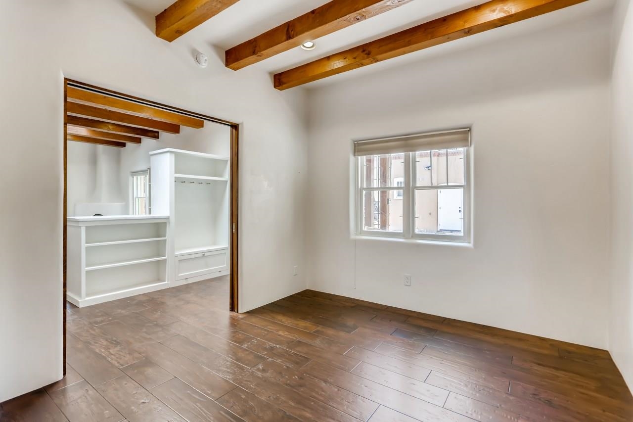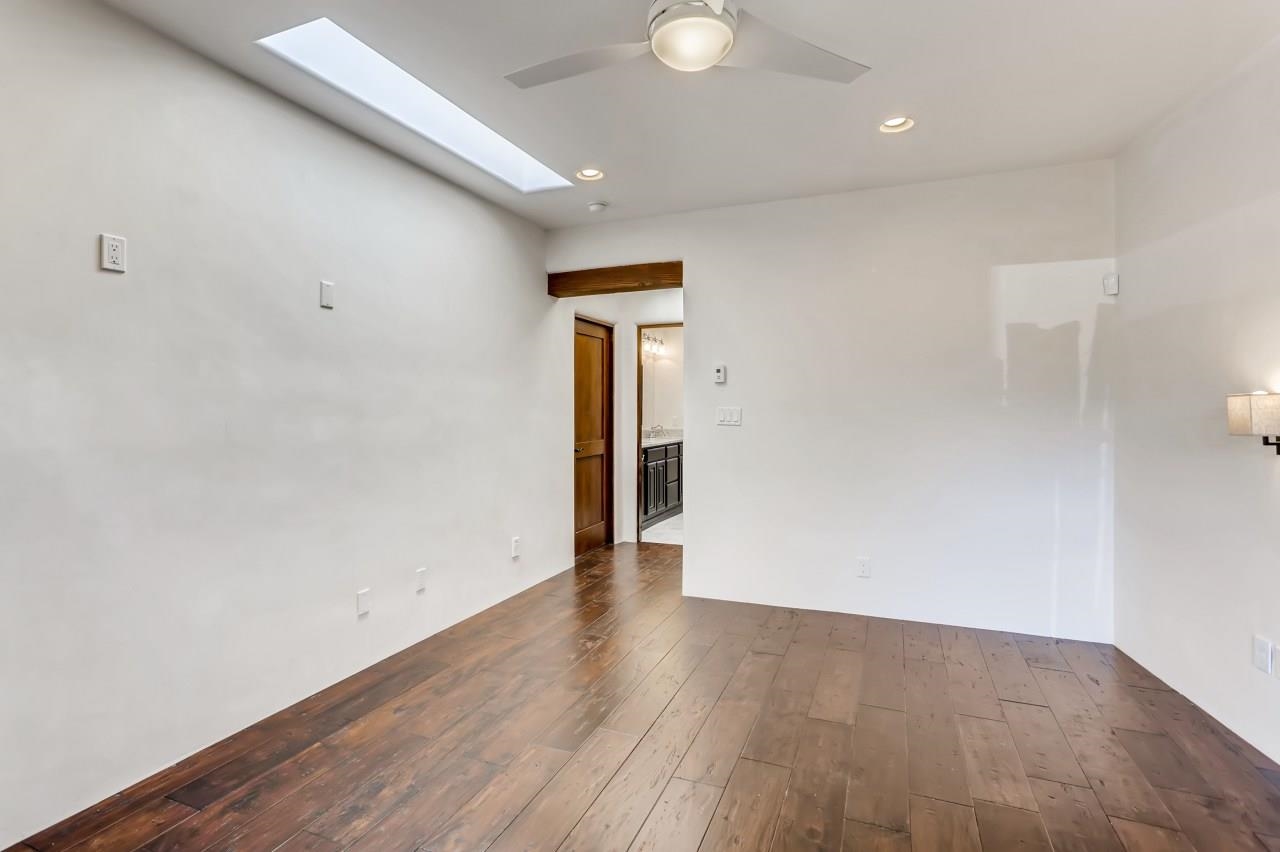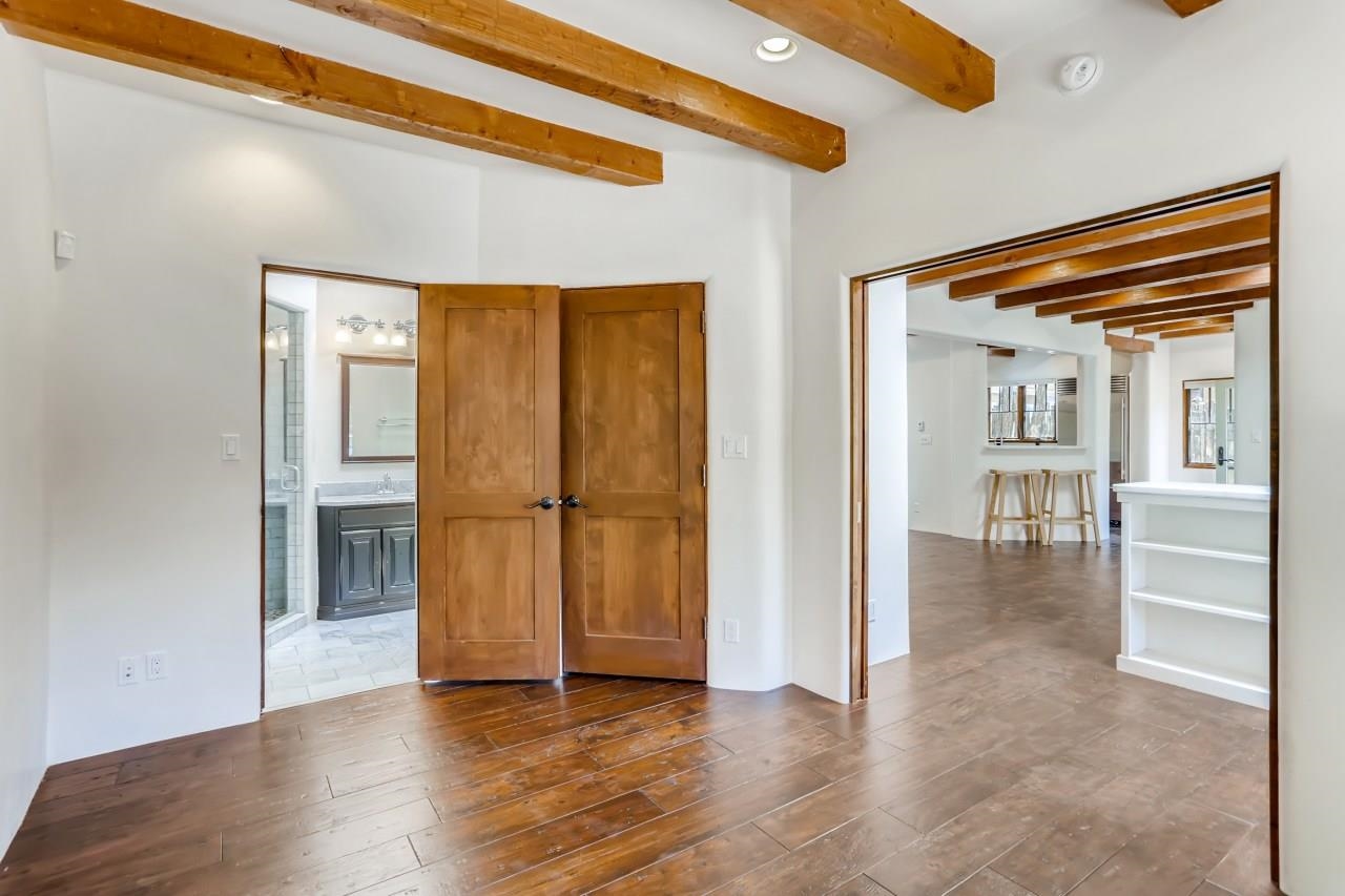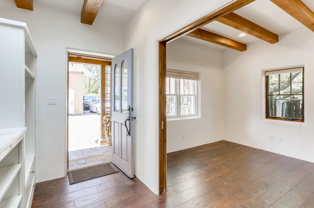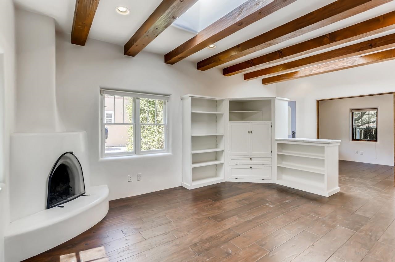 Rare find in the heart of the old east-side. This quintessential adobe (and frame) home is quietly tucked off the historic Acequia Madre stream and was gutted and restored 13 years ago to the elegant home it is today. The interior of the property is Santa Fe charming yet contemporary, light and functional. Generous and gorgeous kitchen space with top of the line appliances. Counter surfaces throughout are a tasteful marble and the floors are a warm wood plank and tile flooring. Lovely and private master suite opens up to a patio. Numerous upgrades include in-floor radiant heat, kiva fireplace, numerous skylights, custom cabinetry, beamed ceilings, central vac system and tasteful storage tucked behind the home. Intimate and private outdoor patios for warm weather dining or a quiet space to read a book with a glass of wine. After a long day, its only a few short steps to some of Santa Fe's most popular galleries and restaurants or walk to the plaza for evening entertainment, shopping or one of the many on-going annual activities.