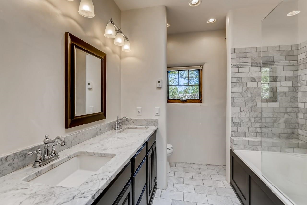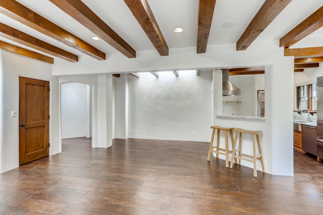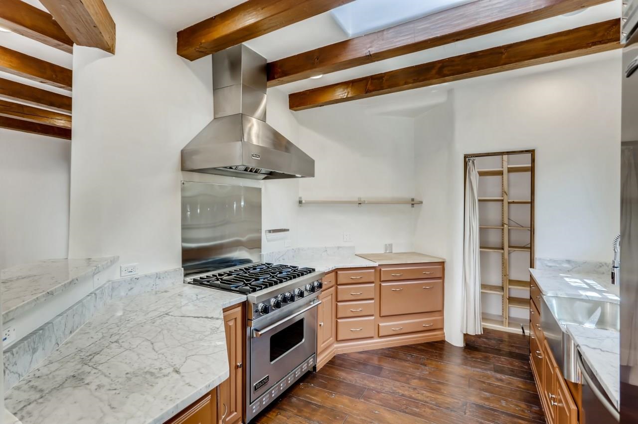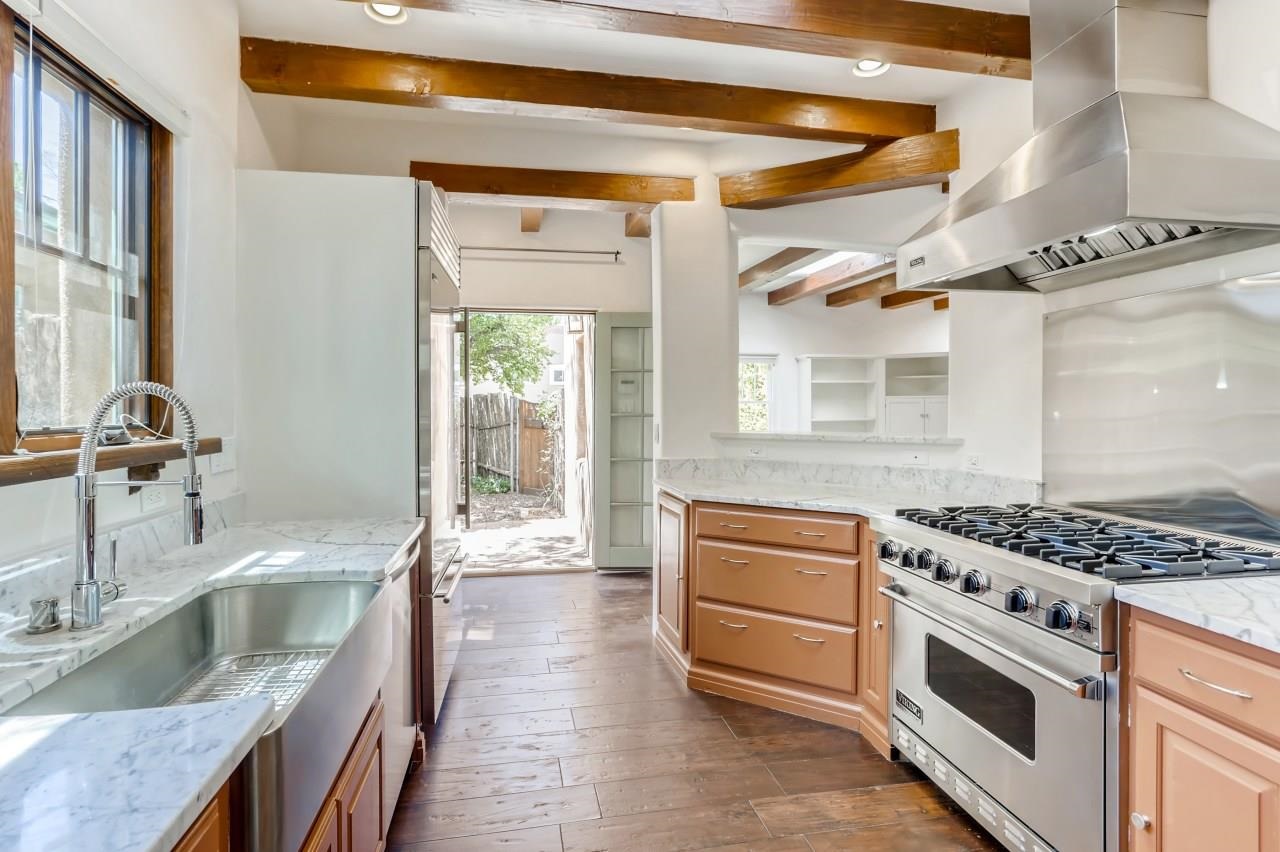 Rare find in the heart of the old east-side. This quintessential adobe (and frame) home is quietly tucked off the historic Acequia Madre stream and was gutted and restored 13 years ago to the elegant home it is today. The interior of the property is Santa Fe charming yet contemporary, light and functional. Generous and gorgeous kitchen space with top of the line appliances. Counter surfaces throughout are a tasteful marble and the floors are a warm wood plank and tile flooring. Lovely and private master suite opens up to a patio. Numerous upgrades include in-floor radiant heat, kiva fireplace, numerous skylights, custom cabinetry, beamed ceilings, central vac system and tasteful storage tucked behind the home. Intimate and private outdoor patios for warm weather dining or a quiet space to read a book with a glass of wine. After a long day, its only a few short steps to some of Santa Fe's most popular galleries and restaurants or walk to the plaza for evening entertainment, shopping or one of the many on-going annual activities.