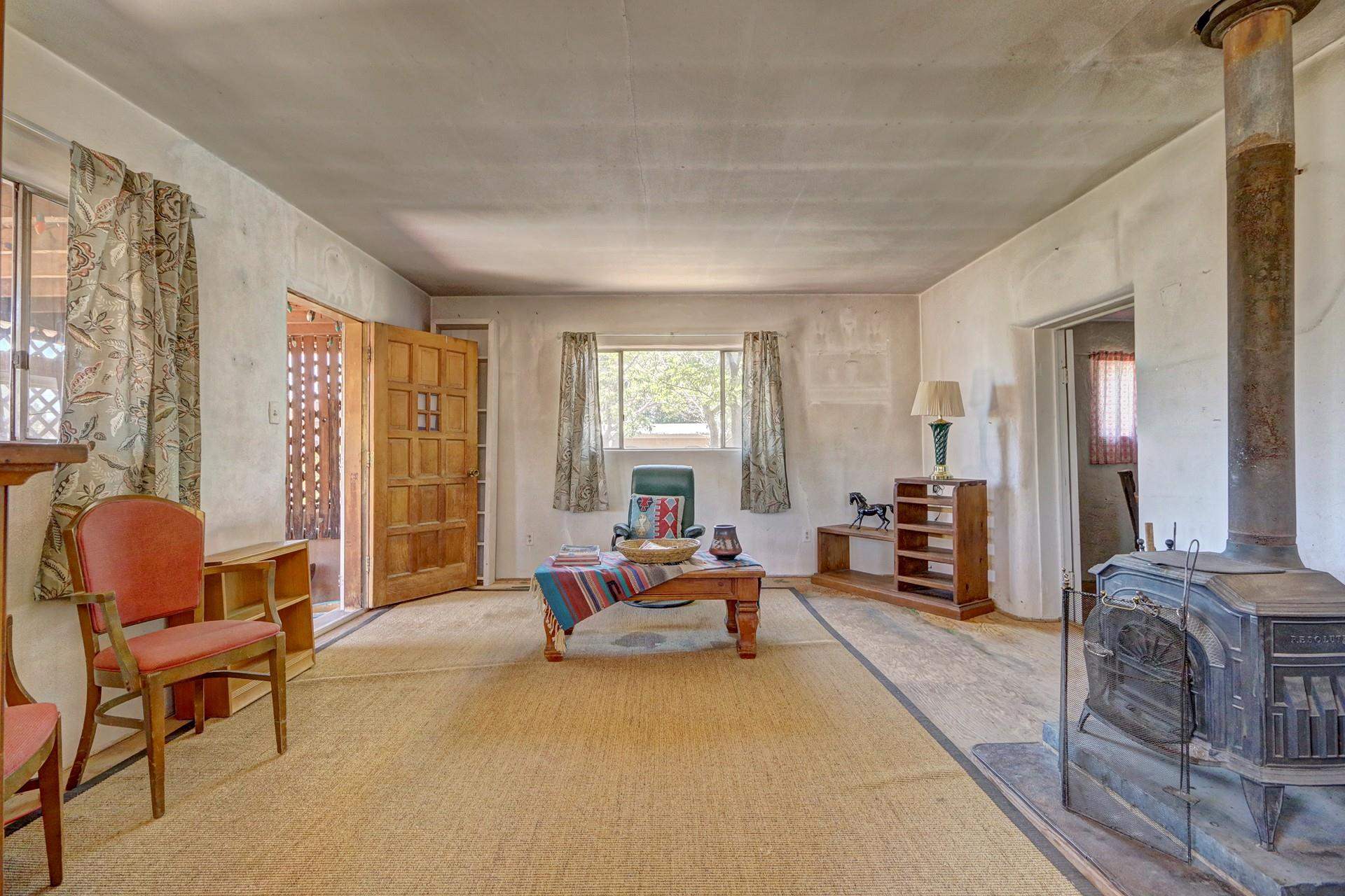This solid adobe and centrally-located Santa Fe home is situated on a large .633 acre lot! The lot is zoned R-3 and could potentially allow another two homes/structures to be built on it. It features three bedrooms, two baths, hardwood flooring, a wood stove, 1,770 +/- square feet and a 1-car garage. Many of Santa Fe's best restaurants and shopping centers are within short proximity. The historic downtown Santa Fe Plaza is approximately 10-15 minutes away.