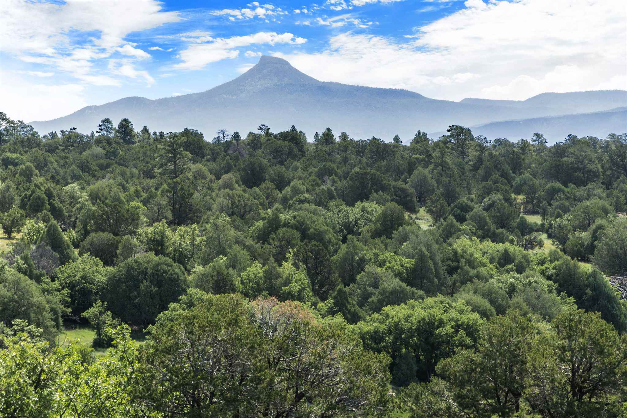Located thirty minutes west of Abiquiu Lake, drive through stunning landscapes famously captured by Georgia O'Keeffe and enter Meadow View Ranch: a lush 248-acre property and off-grid oasis surrounded by National Forest. Custom built and completed in 2015, the two-level main house follows the natural grade of the land and is influenced by the timeless elegance and charm of Scandinavian design and showcases oversized windows, 16 ft. ceilings, wooden dormers, skylights, lofts, built-in bunks and contemporary, minimalist lines. Big sky and water themes are architecturally amplified through the use of white-washed oak and pigmented concrete floors, white square-cut beams and plank ceilings, and a generous poured concrete patio with cable railings overlooking an ocean of meadow views. Two upstairs guest bedrooms share a bath. A side-by-side full bath and powder room accommodate an additional downstairs bedroom and the living, dining and kitchen areas. The kitchen features a solid maple island, custom stainless-steel countertops, a walk-in pantry with marble countertops, and an antique wood stove. The bi-level Master Suite contains a luxurious interior bathroom along with an outdoor shower and bathtub crafted into the suite's exterior "secret garden". The central courtyard consists of a large fenced garden, established orchard, greenhouse, and outdoor kitchen. A detached structure houses a studio, 1-room apartment, root cellar, 3/4 bath and 5-car garage.
