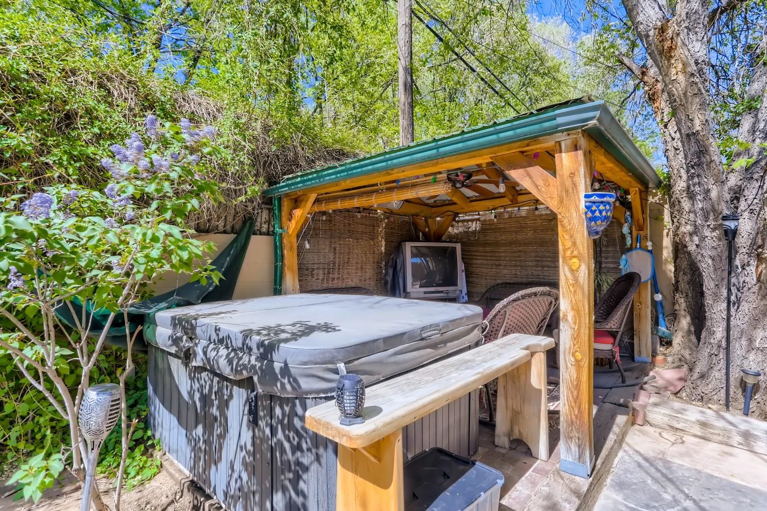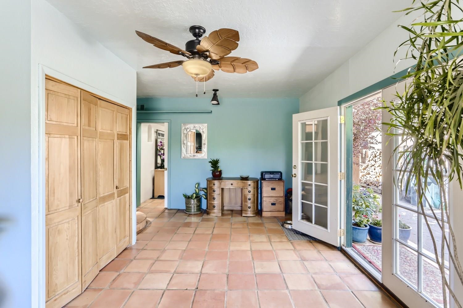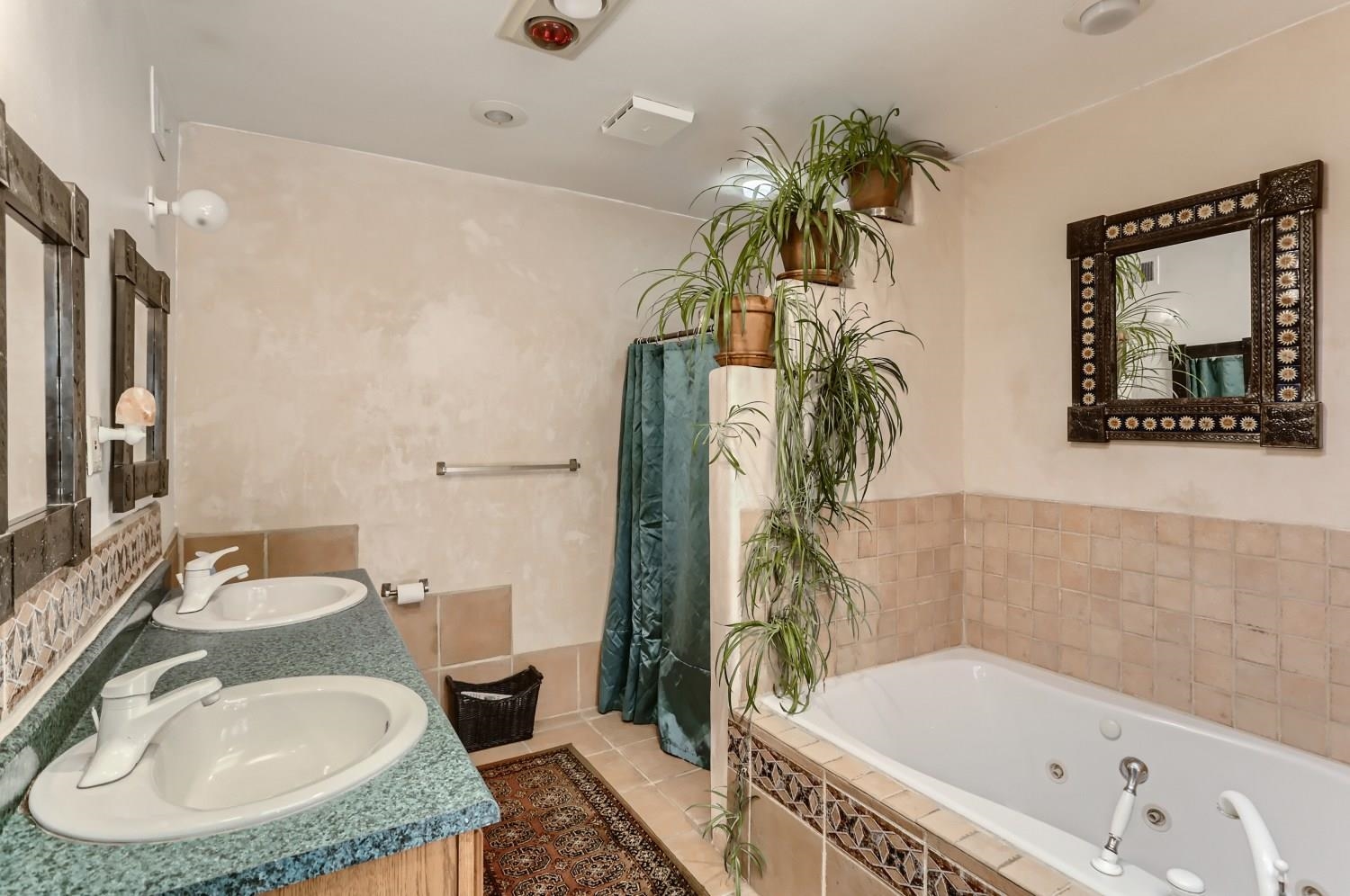 Simply a wonderful Casa Solana home. Outstanding curb appeal comes from meticulous rock work melded with wonderful greenery throughout the property. Mature trees, wisteria, trumpet vines, native plants all done with love and taste and xeric too. The house is an older remodel that has matured with time and the house and grounds have a wonderful ambience. Two kiva fireplaces including a beautiful one in the primary suite which includes a jetted tub. Lots of custom touches including a charming alcove off the dining area. Granite counters in the kitchen, warm wood floors in the living areas, tiled baths, this home is a true cut above when it comes to living well. Completely walled it is extraodinarily private and the compination of mature trees and numerous accent plantings make this a true oasis.