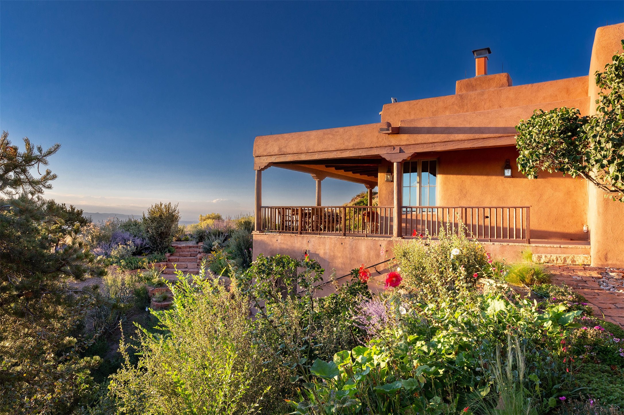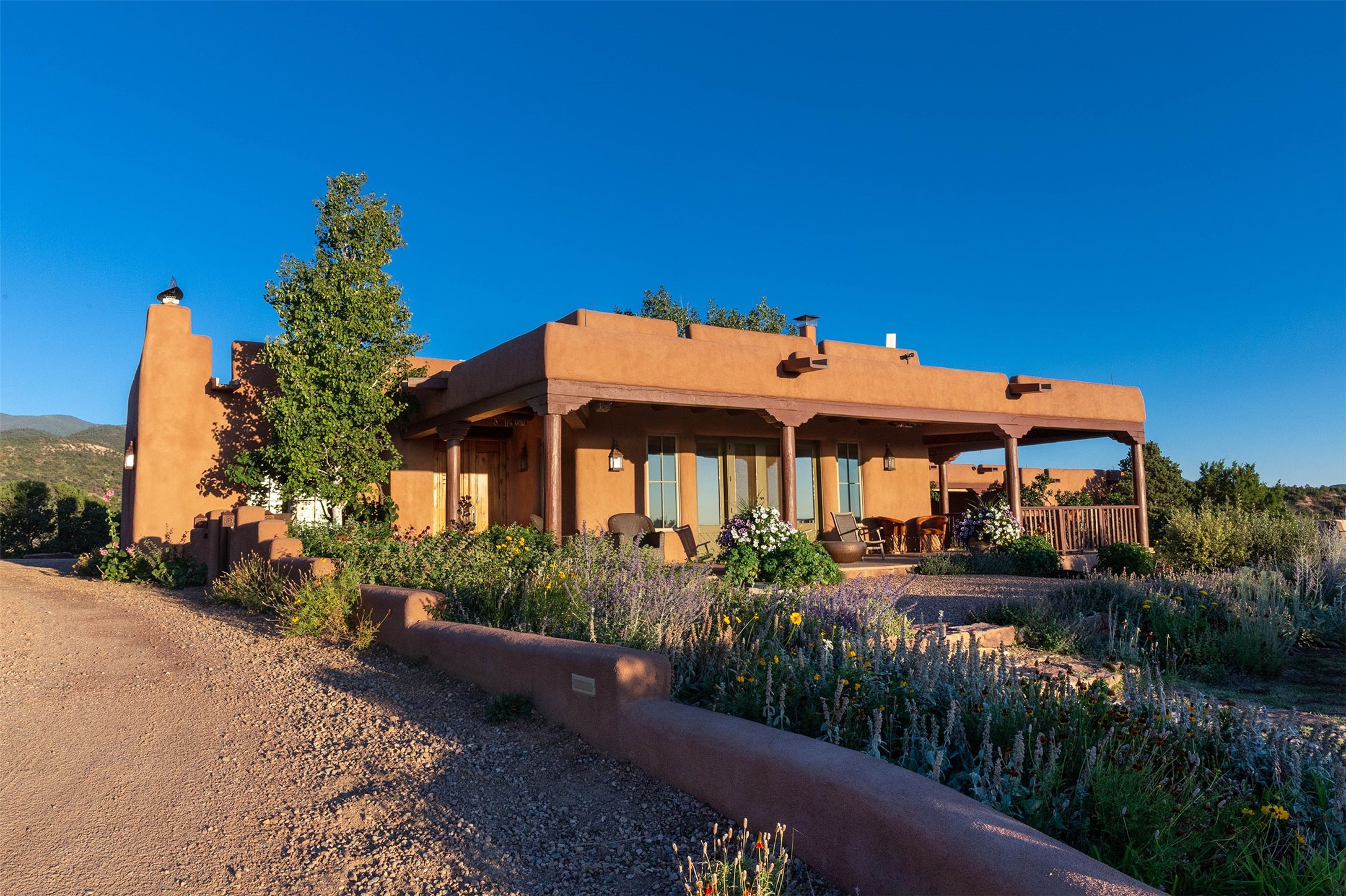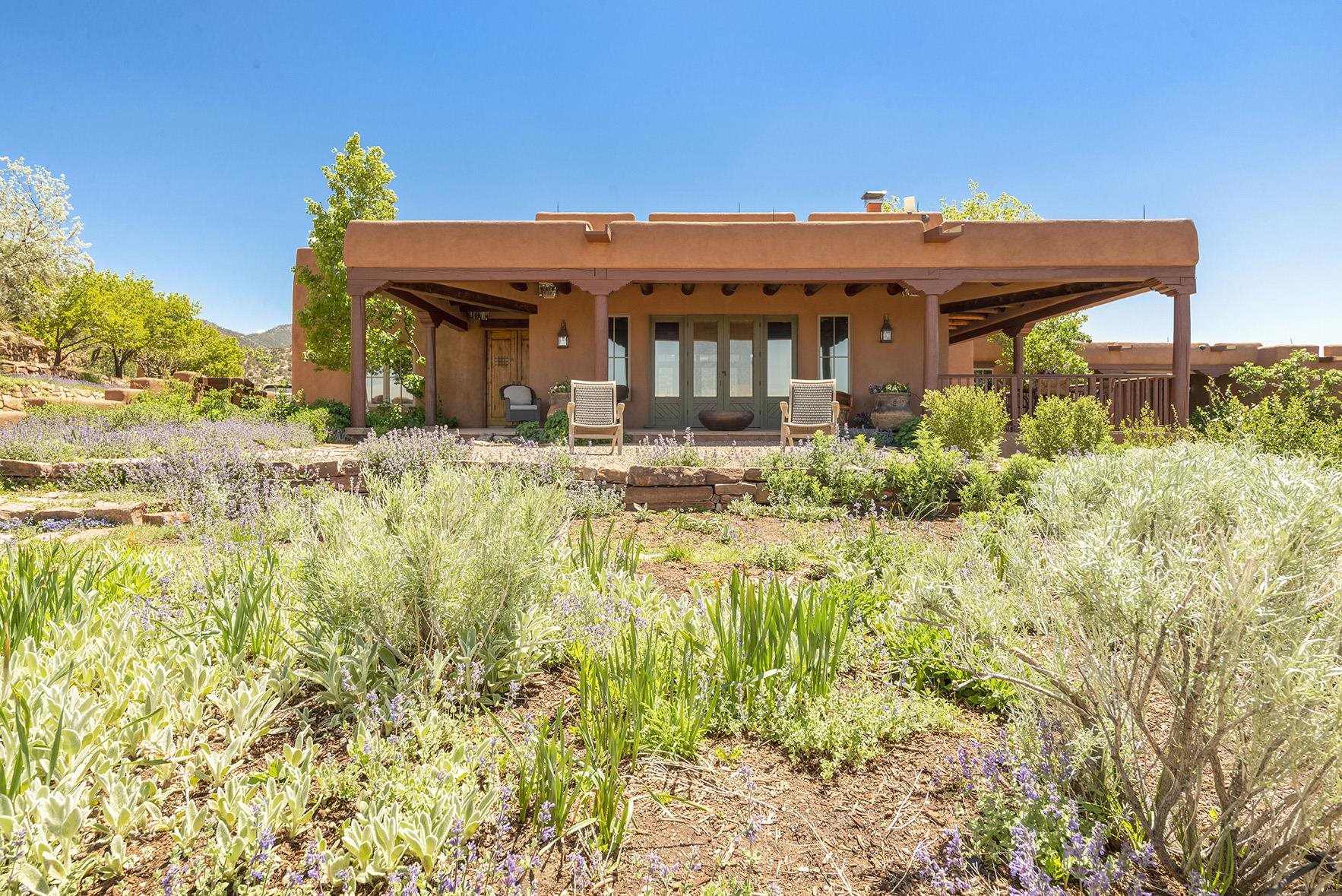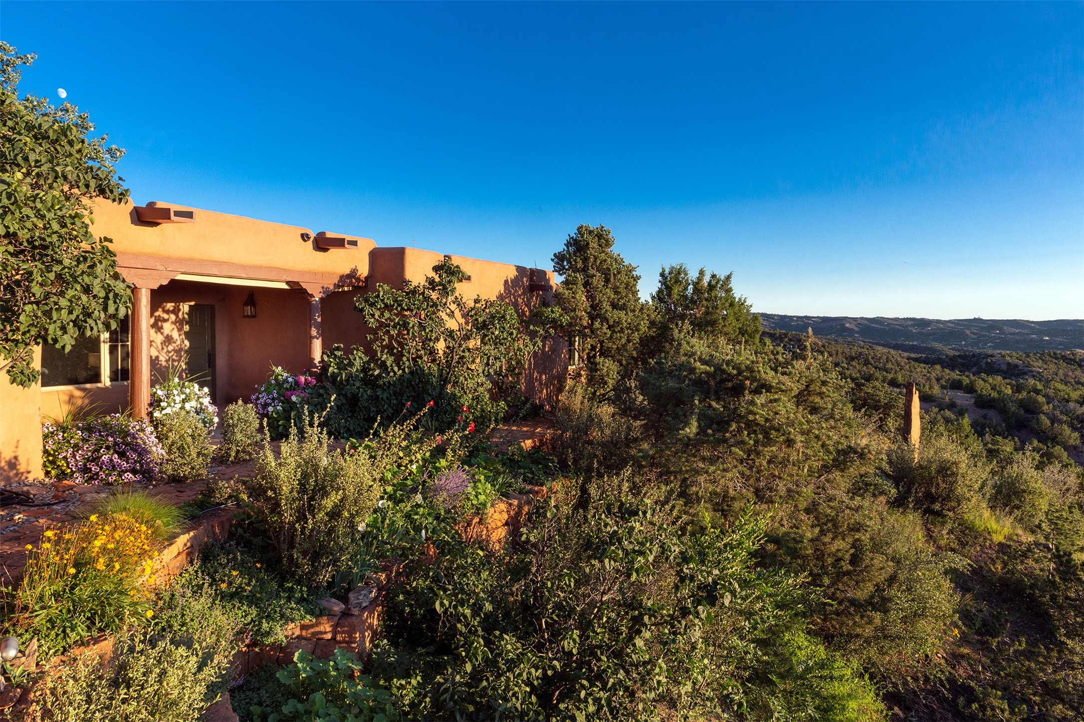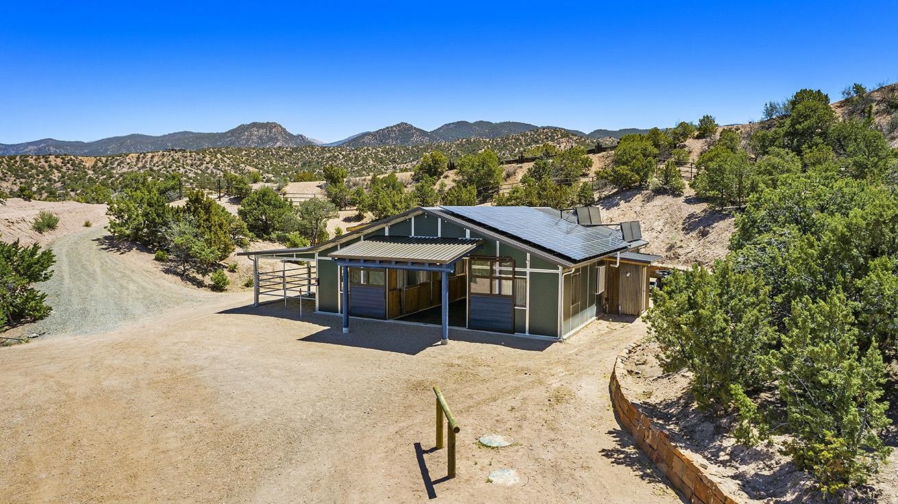 Newly transformed, this updated 25-acre compound in the Tesuque foothills has been reimagined to include a custom-developed equestrian facility, a separate and secure dog park, a bocce court overlooking the Sangre de Cristo Mountains, and much more, making this a unique offering where one can experience private living and ranch amenities just 15 minutes from historic downtown Santa Fe.Gated and at the end of the road, the property is nestled against National Forest, and features unobstructed 360 views and access to an expansive trail system. The beautifully appointed 3,278 square foot main house boasts timeless details and finishes to accent artful living inside and out.The warmth of thick adobe walls, hand-honed custom cabinetry, and hardware resonates with old-world charm. Cascading rock gardens, a romantic rose garden, and portals lead to a wine cellar and an inviting 838-square-foot guest house.The new equestrian features include a custom MD Barnmaster stable with four stalls with heated waterers and geothermal radiant heat, a wash stall, and a 288 square foot tack room lounge with bathroom and wet bar, including mini-split systems. The electricity is powered by solar with a propane generator backup system. Connected to the barn is a beautiful open-air arena with sweeping views surrounded by a private hand-dug trail system adding to the expansiveness of the property. Additionally, the newly extended water and electrical infrastructure allows one to customize the facility further.Other features near the main house include 5-car garages, an office/personal gym, beautiful courtyards and vista views throughout the property, a private gated entry and a security system in the main house, as well as the original three-stall barn with turnouts, a tack room, and access to Santa Fe National Forest. So whether you are interested in a custom luxury equestrian compound or creating a private retreat, the infrastructure is ready for you and your imagination.