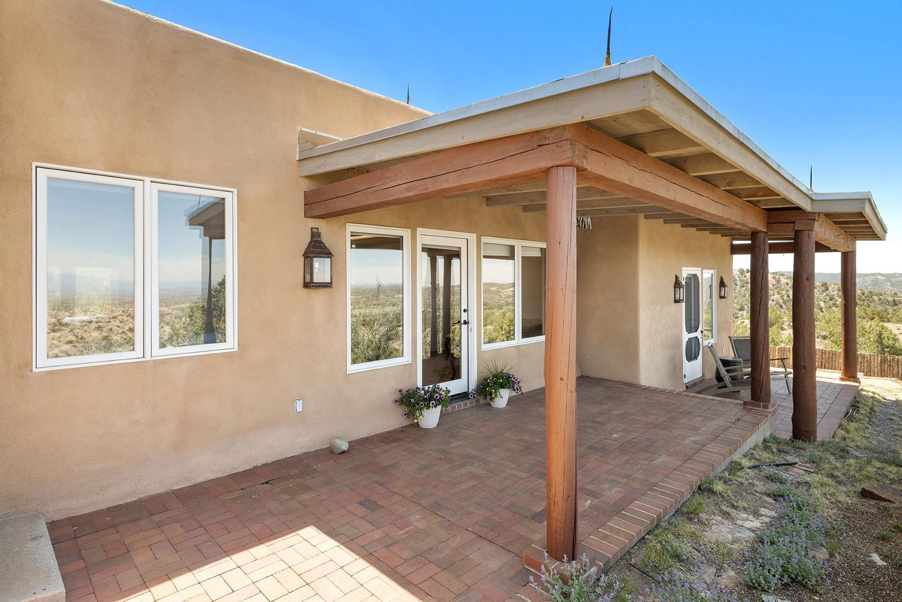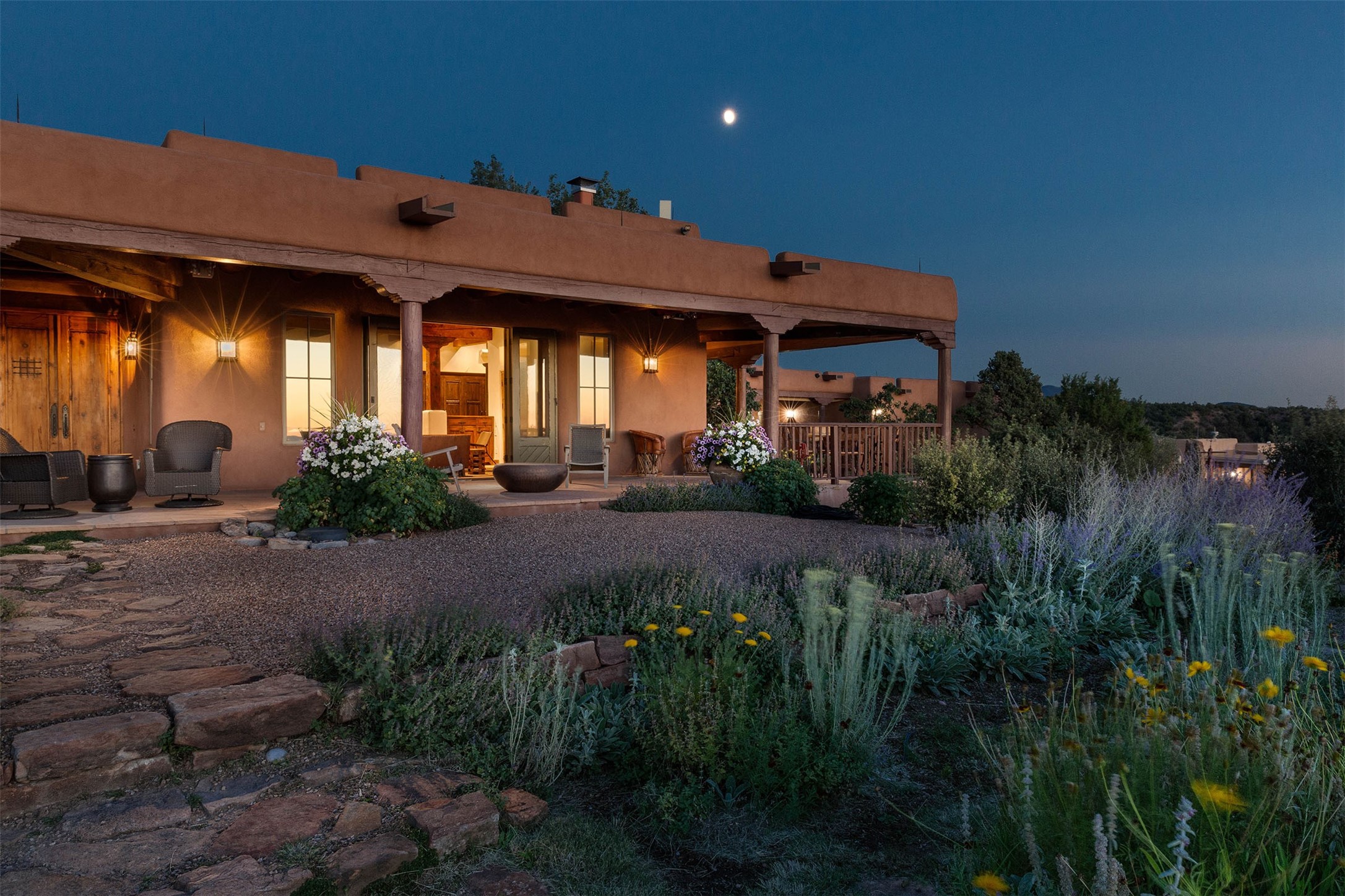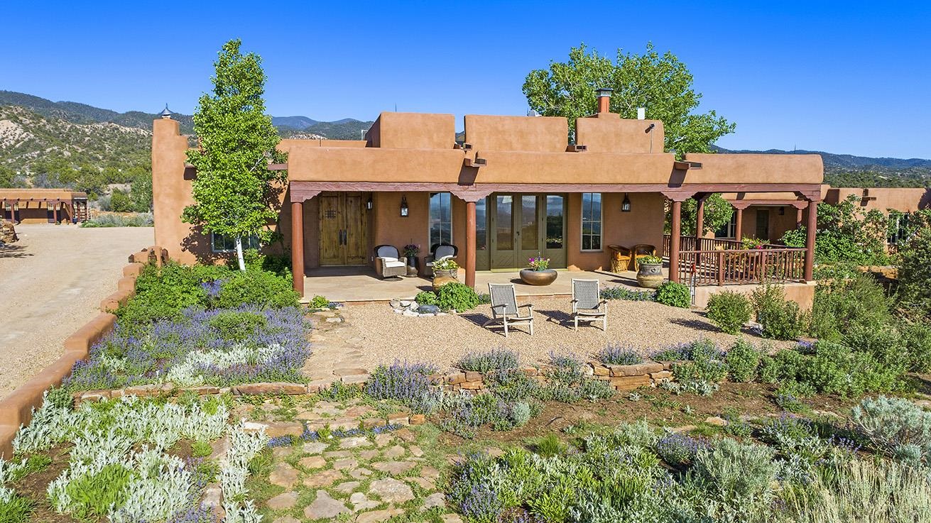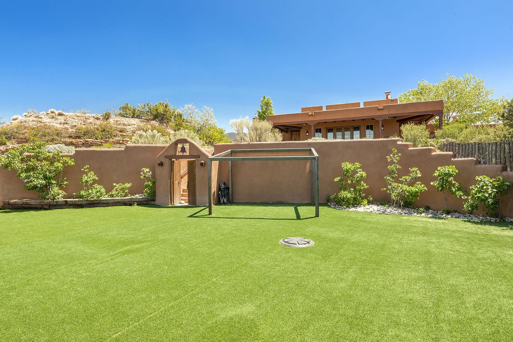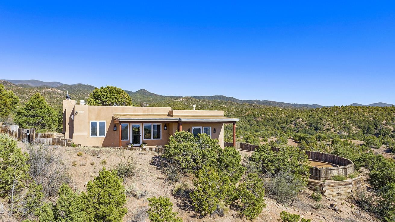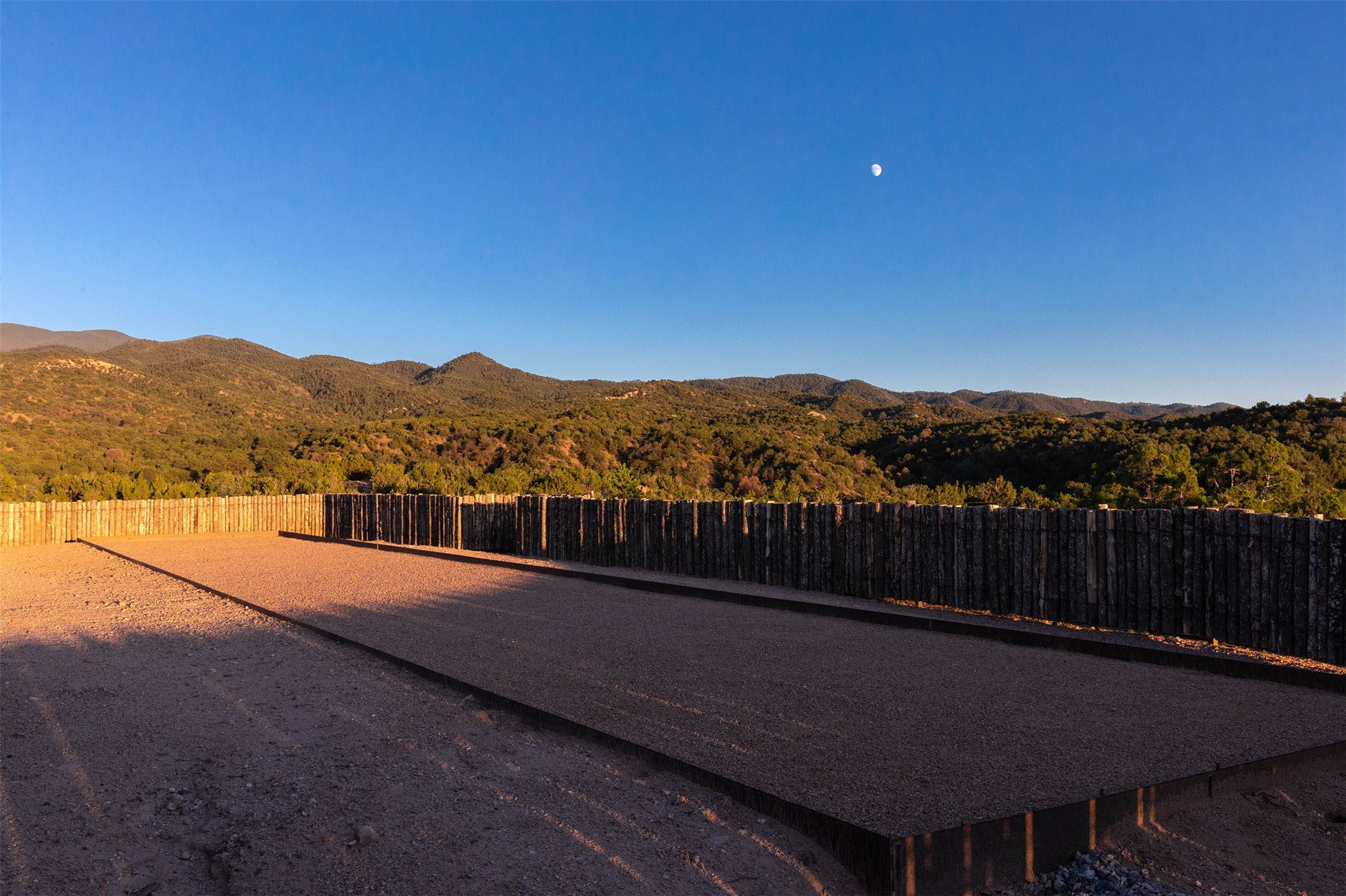 Newly transformed, this updated 25-acre compound in the Tesuque foothills has been reimagined to include a custom-developed equestrian facility, a separate and secure dog park, a bocce court overlooking the Sangre de Cristo Mountains, and much more, making this a unique offering where one can experience private living and ranch amenities just 15 minutes from historic downtown Santa Fe.Gated and at the end of the road, the property is nestled against National Forest, and features unobstructed 360 views and access to an expansive trail system. The beautifully appointed 3,278 square foot main house boasts timeless details and finishes to accent artful living inside and out.The warmth of thick adobe walls, hand-honed custom cabinetry, and hardware resonates with old-world charm. Cascading rock gardens, a romantic rose garden, and portals lead to a wine cellar and an inviting 838-square-foot guest house.The new equestrian features include a custom MD Barnmaster stable with four stalls with heated waterers and geothermal radiant heat, a wash stall, and a 288 square foot tack room lounge with bathroom and wet bar, including mini-split systems. The electricity is powered by solar with a propane generator backup system. Connected to the barn is a beautiful open-air arena with sweeping views surrounded by a private hand-dug trail system adding to the expansiveness of the property. Additionally, the newly extended water and electrical infrastructure allows one to customize the facility further.Other features near the main house include 5-car garages, an office/personal gym, beautiful courtyards and vista views throughout the property, a private gated entry and a security system in the main house, as well as the original three-stall barn with turnouts, a tack room, and access to Santa Fe National Forest. So whether you are interested in a custom luxury equestrian compound or creating a private retreat, the infrastructure is ready for you and your imagination.