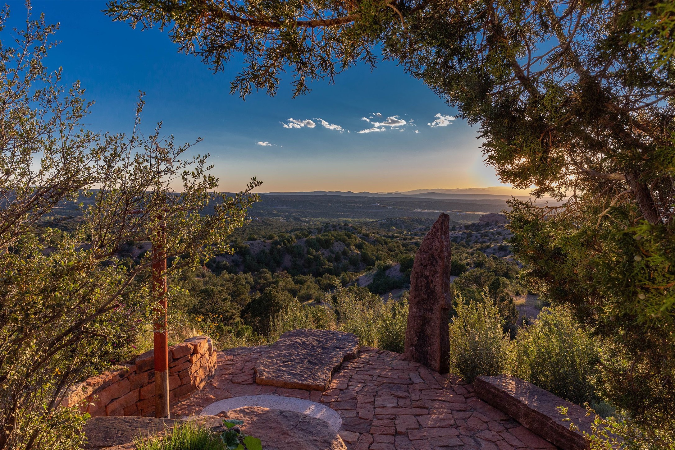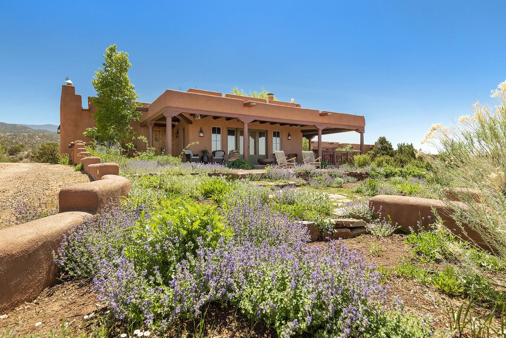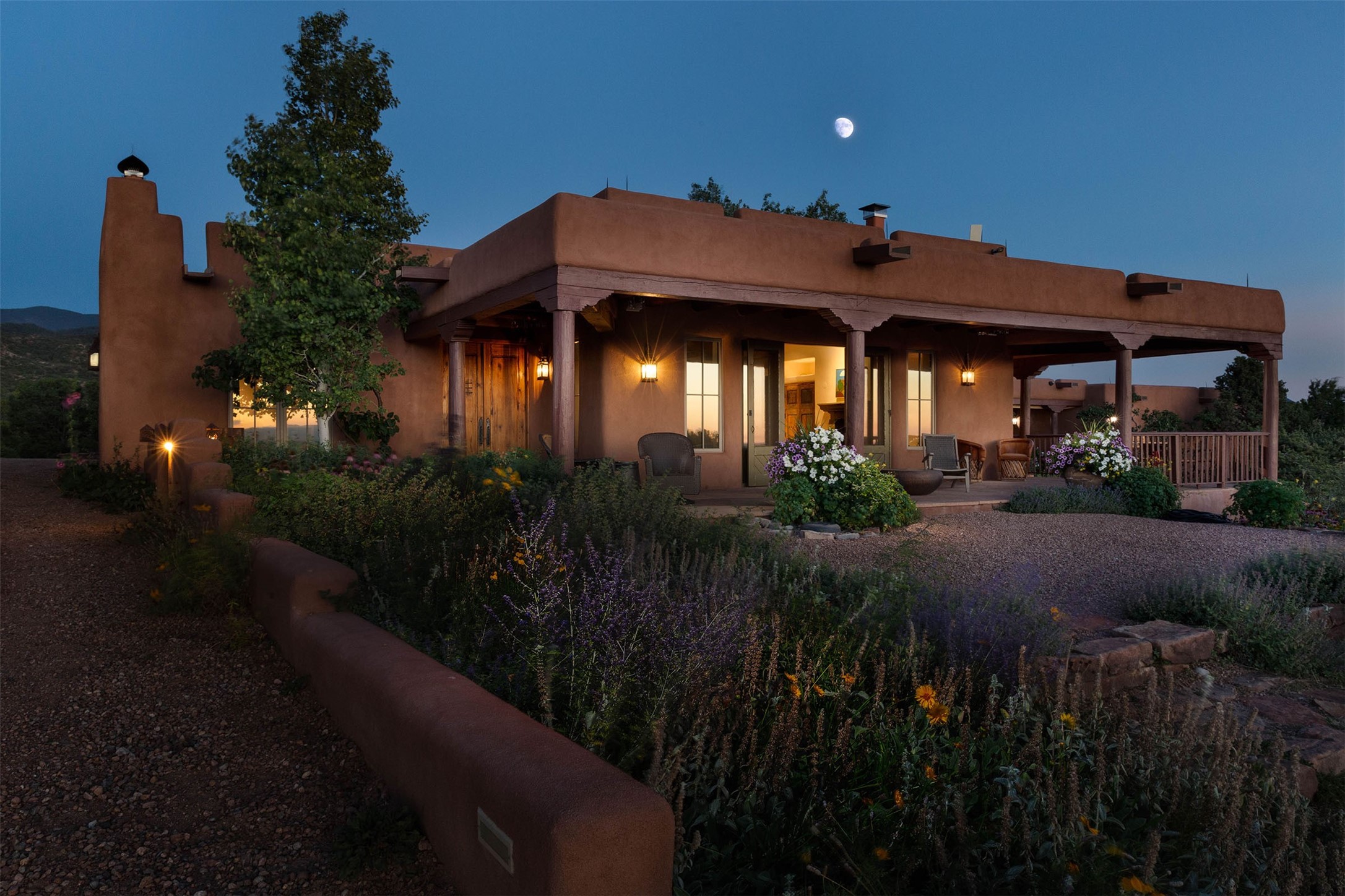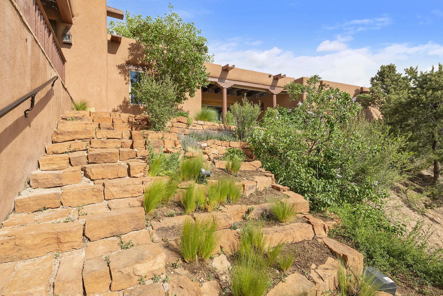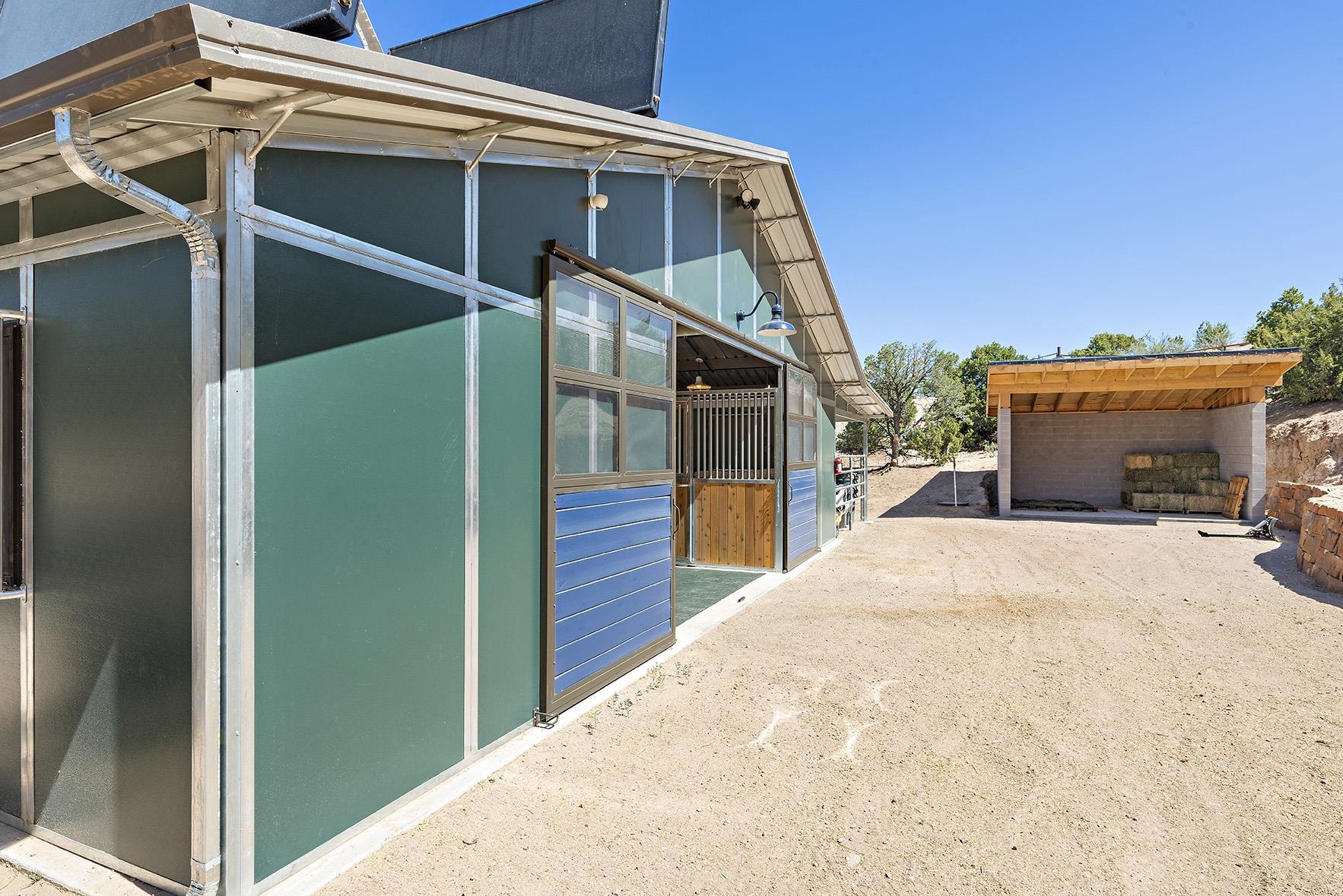 Newly transformed, this updated 25-acre compound in the Tesuque foothills has been reimagined to include a custom-developed equestrian facility, a separate and secure dog park, a bocce court overlooking the Sangre de Cristo Mountains, and much more, making this a unique offering where one can experience private living and ranch amenities just 15 minutes from historic downtown Santa Fe.Gated and at the end of the road, the property is nestled against National Forest, and features unobstructed 360 views and access to an expansive trail system. The beautifully appointed 3,278 square foot main house boasts timeless details and finishes to accent artful living inside and out.The warmth of thick adobe walls, hand-honed custom cabinetry, and hardware resonates with old-world charm. Cascading rock gardens, a romantic rose garden, and portals lead to a wine cellar and an inviting 838-square-foot guest house.The new equestrian features include a custom MD Barnmaster stable with four stalls with heated waterers and geothermal radiant heat, a wash stall, and a 288 square foot tack room lounge with bathroom and wet bar, including mini-split systems. The electricity is powered by solar with a propane generator backup system. Connected to the barn is a beautiful open-air arena with sweeping views surrounded by a private hand-dug trail system adding to the expansiveness of the property. Additionally, the newly extended water and electrical infrastructure allows one to customize the facility further.Other features near the main house include 5-car garages, an office/personal gym, beautiful courtyards and vista views throughout the property, a private gated entry and a security system in the main house, as well as the original three-stall barn with turnouts, a tack room, and access to Santa Fe National Forest. So whether you are interested in a custom luxury equestrian compound or creating a private retreat, the infrastructure is ready for you and your imagination.