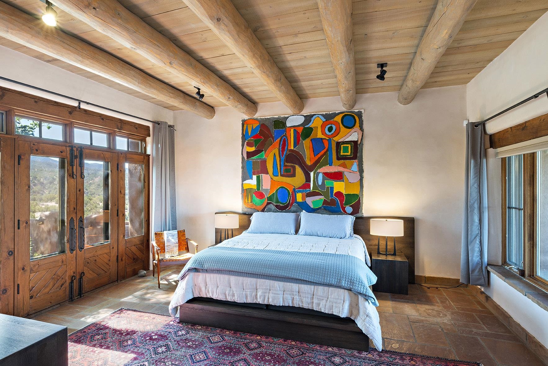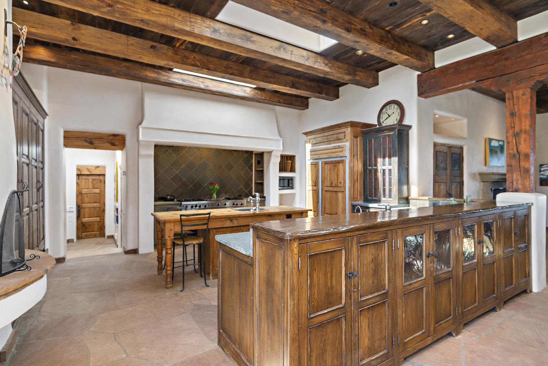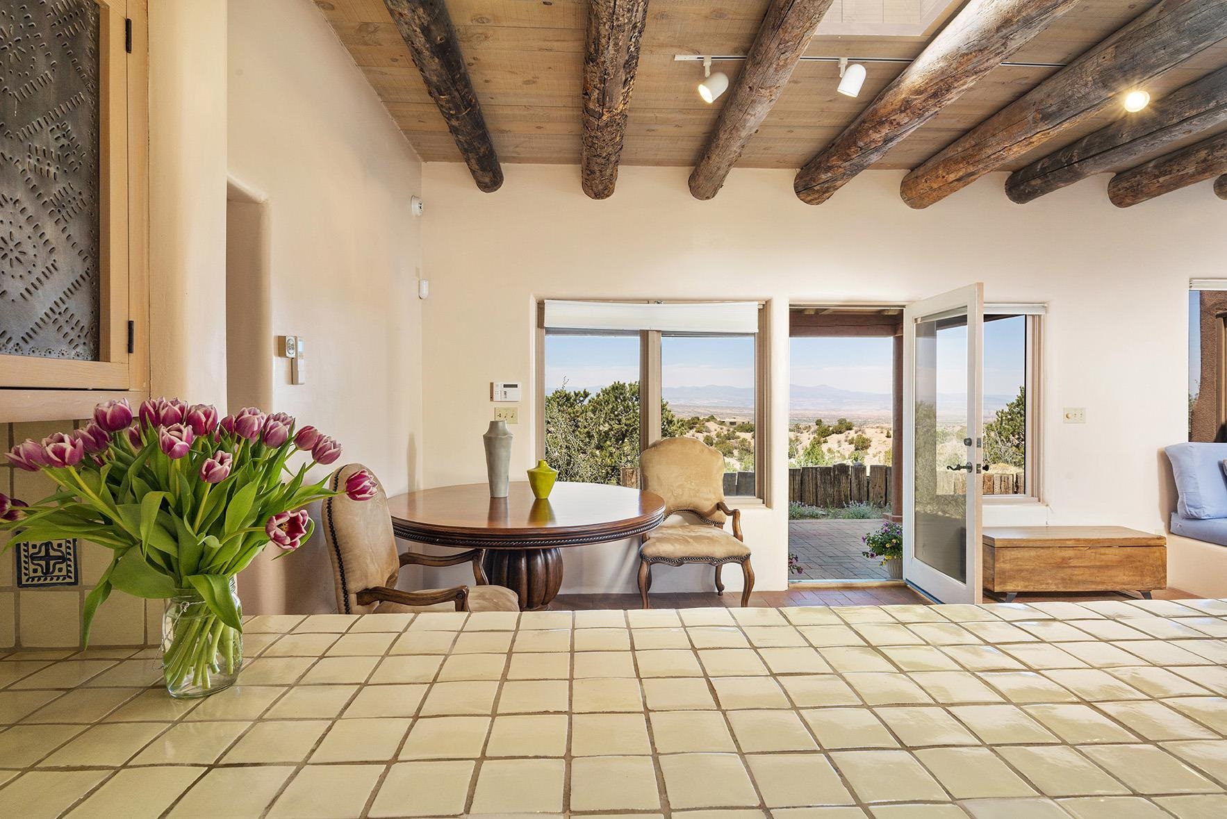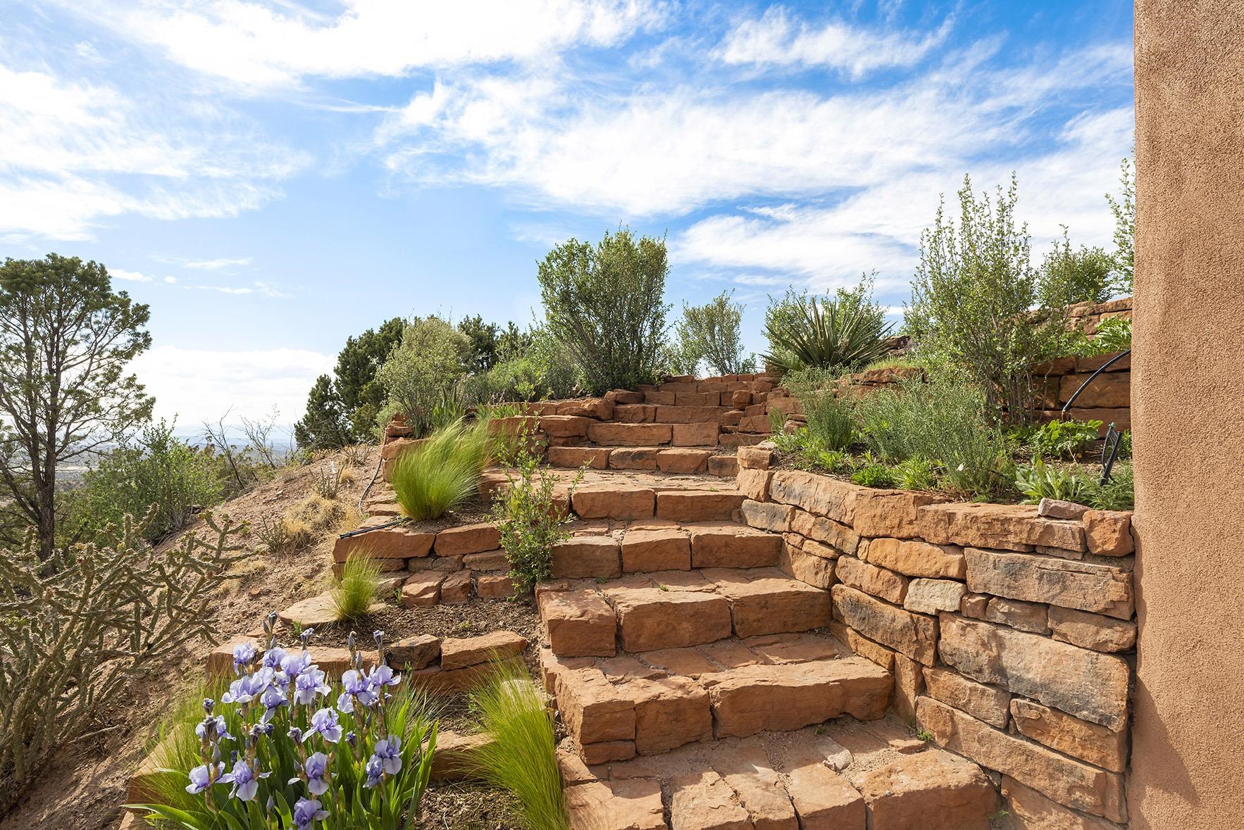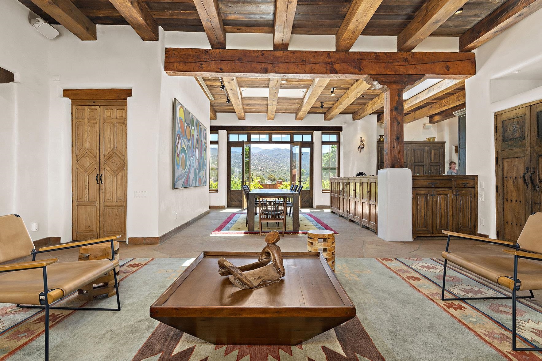 Newly transformed, this updated 25-acre compound in the Tesuque foothills has been reimagined to include a custom-developed equestrian facility, a separate and secure dog park, a bocce court overlooking the Sangre de Cristo Mountains, and much more, making this a unique offering where one can experience private living and ranch amenities just 15 minutes from historic downtown Santa Fe.Gated and at the end of the road, the property is nestled against National Forest, and features unobstructed 360 views and access to an expansive trail system. The beautifully appointed 3,278 square foot main house boasts timeless details and finishes to accent artful living inside and out.The warmth of thick adobe walls, hand-honed custom cabinetry, and hardware resonates with old-world charm. Cascading rock gardens, a romantic rose garden, and portals lead to a wine cellar and an inviting 838-square-foot guest house.The new equestrian features include a custom MD Barnmaster stable with four stalls with heated waterers and geothermal radiant heat, a wash stall, and a 288 square foot tack room lounge with bathroom and wet bar, including mini-split systems. The electricity is powered by solar with a propane generator backup system. Connected to the barn is a beautiful open-air arena with sweeping views surrounded by a private hand-dug trail system adding to the expansiveness of the property. Additionally, the newly extended water and electrical infrastructure allows one to customize the facility further.Other features near the main house include 5-car garages, an office/personal gym, beautiful courtyards and vista views throughout the property, a private gated entry and a security system in the main house, as well as the original three-stall barn with turnouts, a tack room, and access to Santa Fe National Forest. So whether you are interested in a custom luxury equestrian compound or creating a private retreat, the infrastructure is ready for you and your imagination.