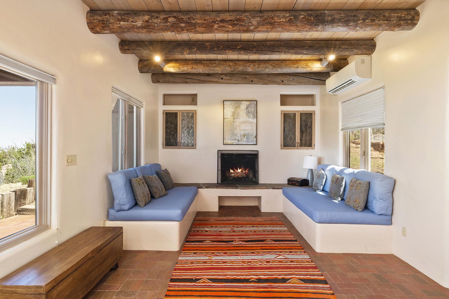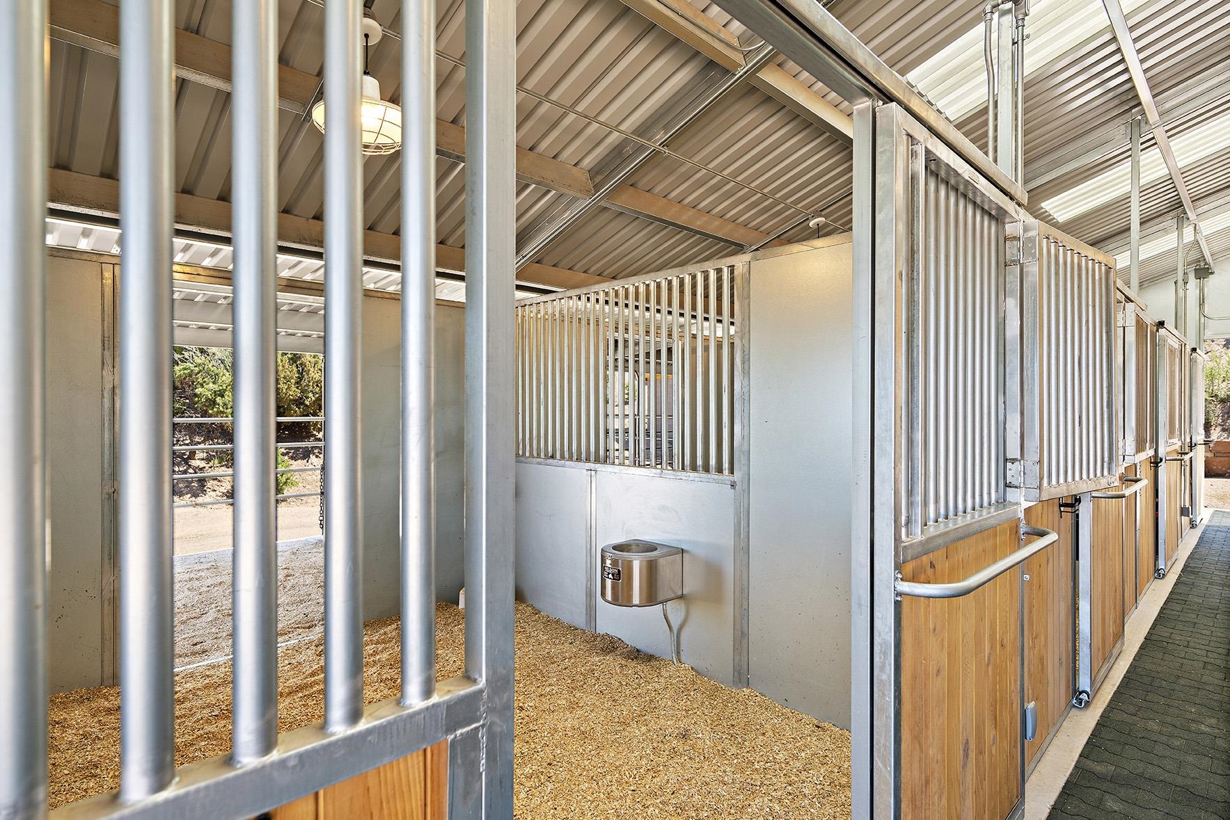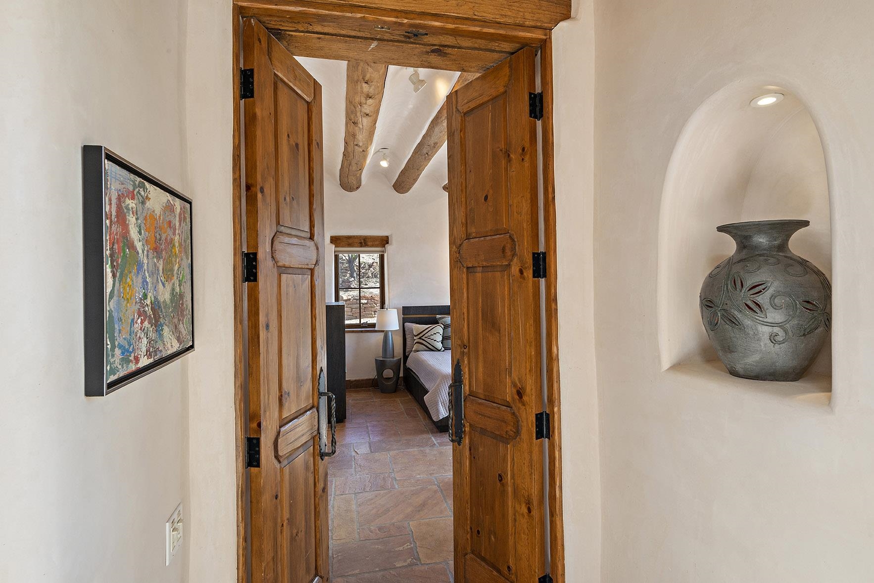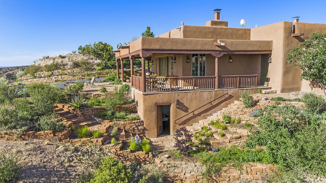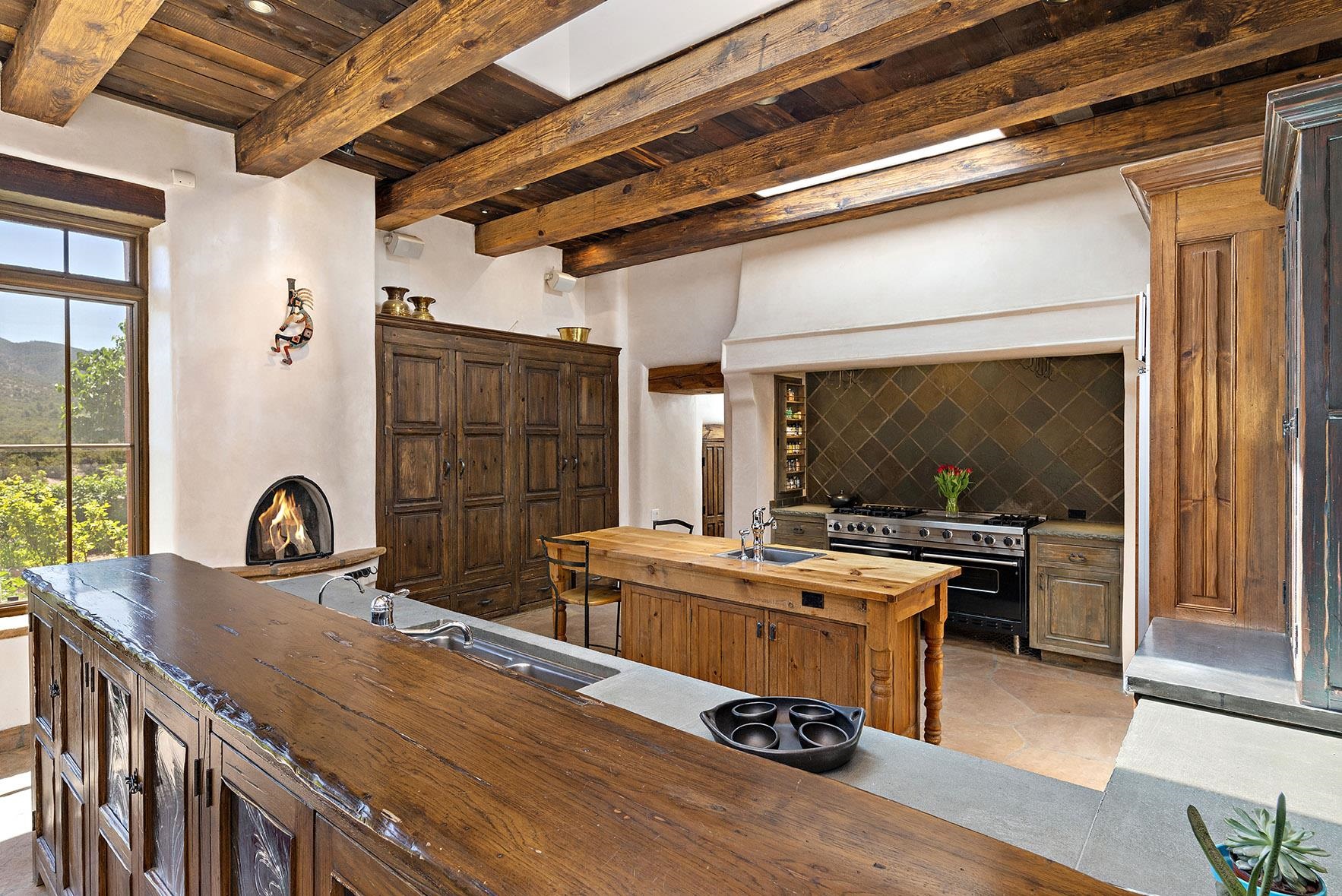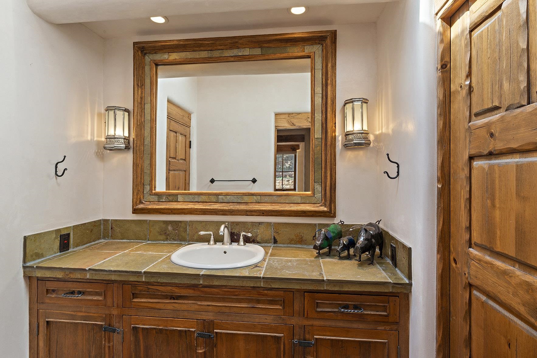 Newly transformed, this updated 25-acre compound in the Tesuque foothills has been reimagined to include a custom-developed equestrian facility, a separate and secure dog park, a bocce court overlooking the Sangre de Cristo Mountains, and much more, making this a unique offering where one can experience private living and ranch amenities just 15 minutes from historic downtown Santa Fe.Gated and at the end of the road, the property is nestled against National Forest, and features unobstructed 360 views and access to an expansive trail system. The beautifully appointed 3,278 square foot main house boasts timeless details and finishes to accent artful living inside and out.The warmth of thick adobe walls, hand-honed custom cabinetry, and hardware resonates with old-world charm. Cascading rock gardens, a romantic rose garden, and portals lead to a wine cellar and an inviting 838-square-foot guest house.The new equestrian features include a custom MD Barnmaster stable with four stalls with heated waterers and geothermal radiant heat, a wash stall, and a 288 square foot tack room lounge with bathroom and wet bar, including mini-split systems. The electricity is powered by solar with a propane generator backup system. Connected to the barn is a beautiful open-air arena with sweeping views surrounded by a private hand-dug trail system adding to the expansiveness of the property. Additionally, the newly extended water and electrical infrastructure allows one to customize the facility further.Other features near the main house include 5-car garages, an office/personal gym, beautiful courtyards and vista views throughout the property, a private gated entry and a security system in the main house, as well as the original three-stall barn with turnouts, a tack room, and access to Santa Fe National Forest. So whether you are interested in a custom luxury equestrian compound or creating a private retreat, the infrastructure is ready for you and your imagination.