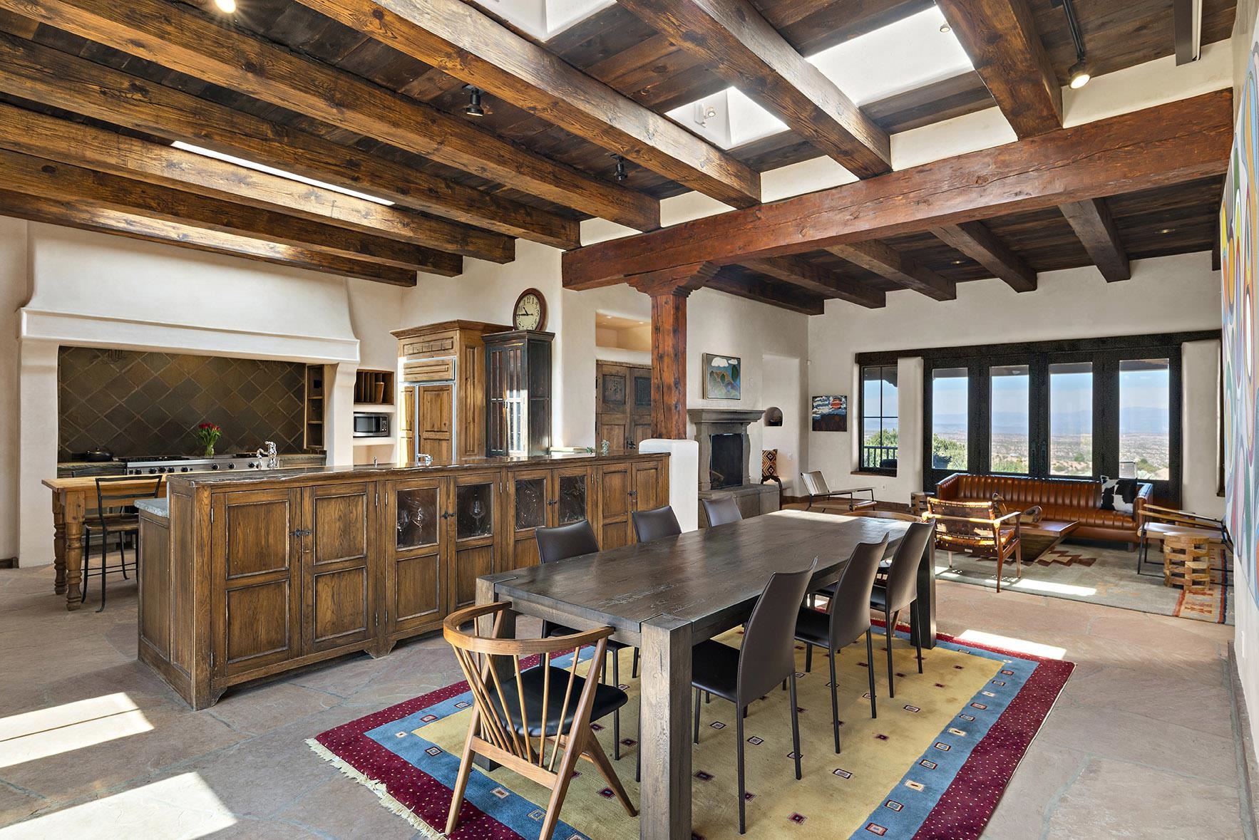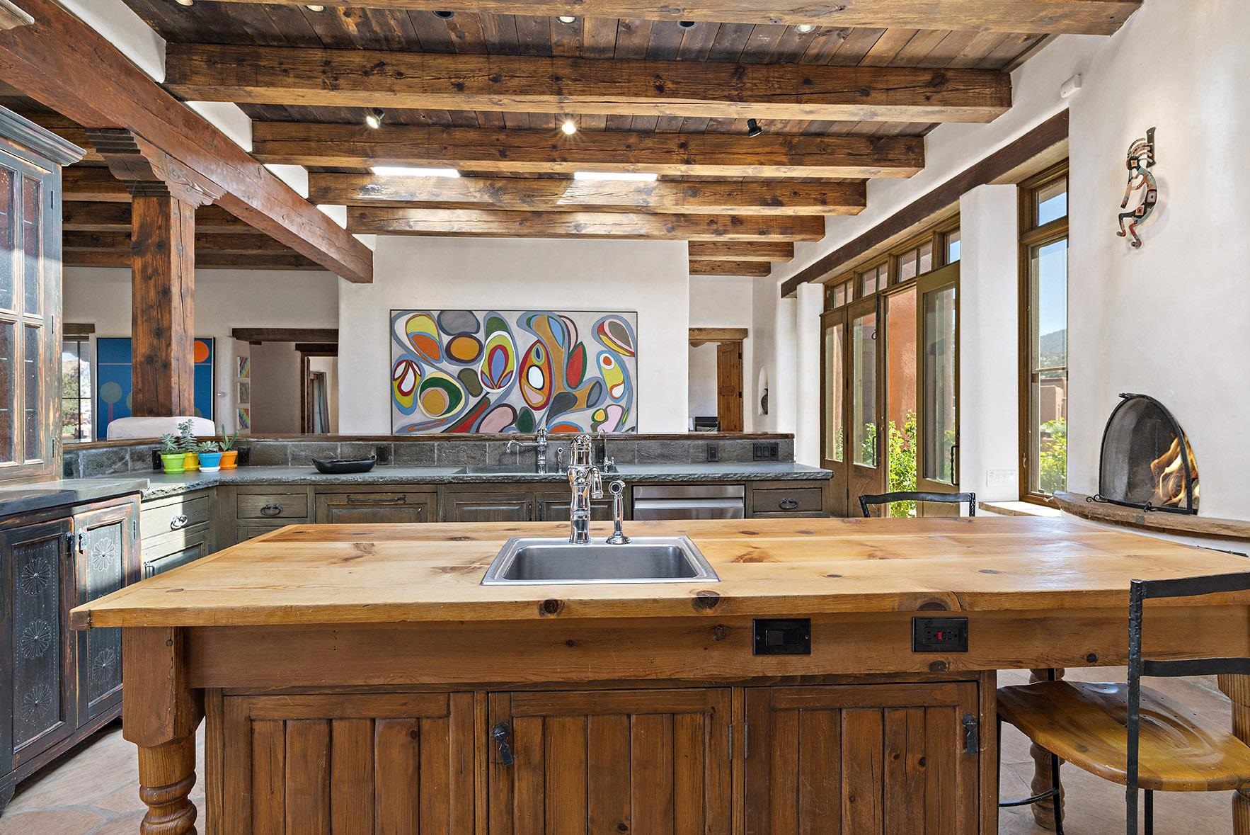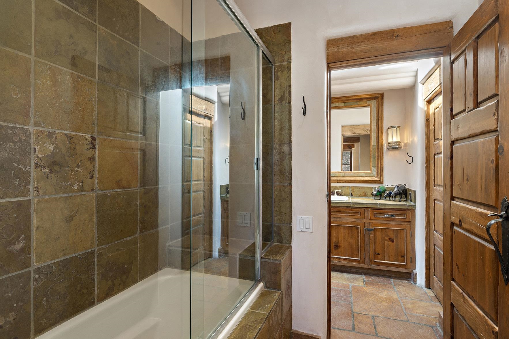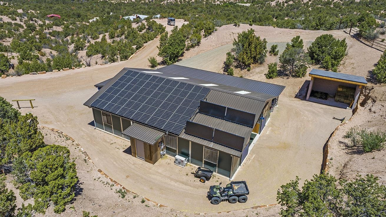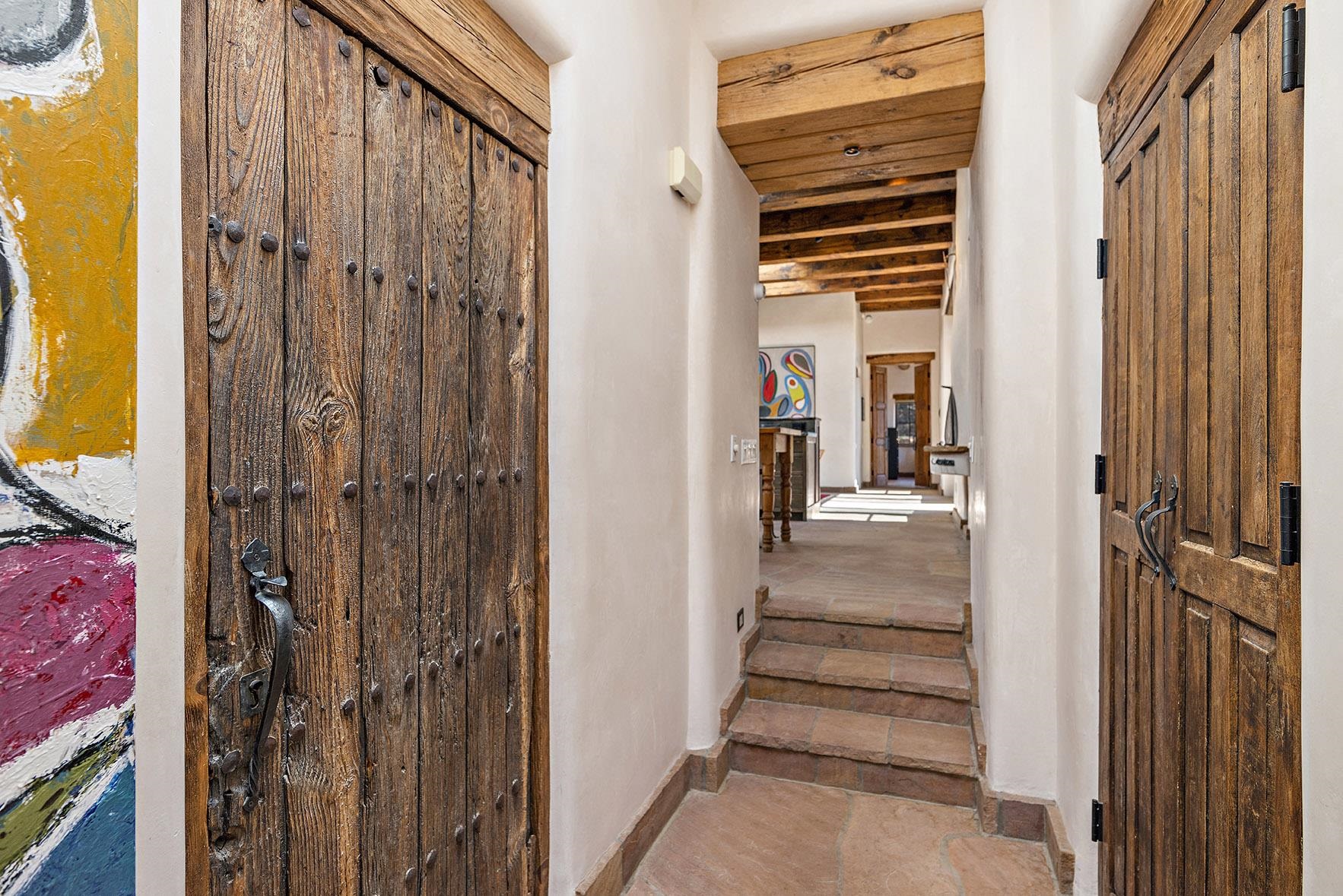 Newly transformed, this updated 25-acre compound in the Tesuque foothills has been reimagined to include a custom-developed equestrian facility, a separate and secure dog park, a bocce court overlooking the Sangre de Cristo Mountains, and much more, making this a unique offering where one can experience private living and ranch amenities just 15 minutes from historic downtown Santa Fe.Gated and at the end of the road, the property is nestled against National Forest, and features unobstructed 360 views and access to an expansive trail system. The beautifully appointed 3,278 square foot main house boasts timeless details and finishes to accent artful living inside and out.The warmth of thick adobe walls, hand-honed custom cabinetry, and hardware resonates with old-world charm. Cascading rock gardens, a romantic rose garden, and portals lead to a wine cellar and an inviting 838-square-foot guest house.The new equestrian features include a custom MD Barnmaster stable with four stalls with heated waterers and geothermal radiant heat, a wash stall, and a 288 square foot tack room lounge with bathroom and wet bar, including mini-split systems. The electricity is powered by solar with a propane generator backup system. Connected to the barn is a beautiful open-air arena with sweeping views surrounded by a private hand-dug trail system adding to the expansiveness of the property. Additionally, the newly extended water and electrical infrastructure allows one to customize the facility further.Other features near the main house include 5-car garages, an office/personal gym, beautiful courtyards and vista views throughout the property, a private gated entry and a security system in the main house, as well as the original three-stall barn with turnouts, a tack room, and access to Santa Fe National Forest. So whether you are interested in a custom luxury equestrian compound or creating a private retreat, the infrastructure is ready for you and your imagination.
