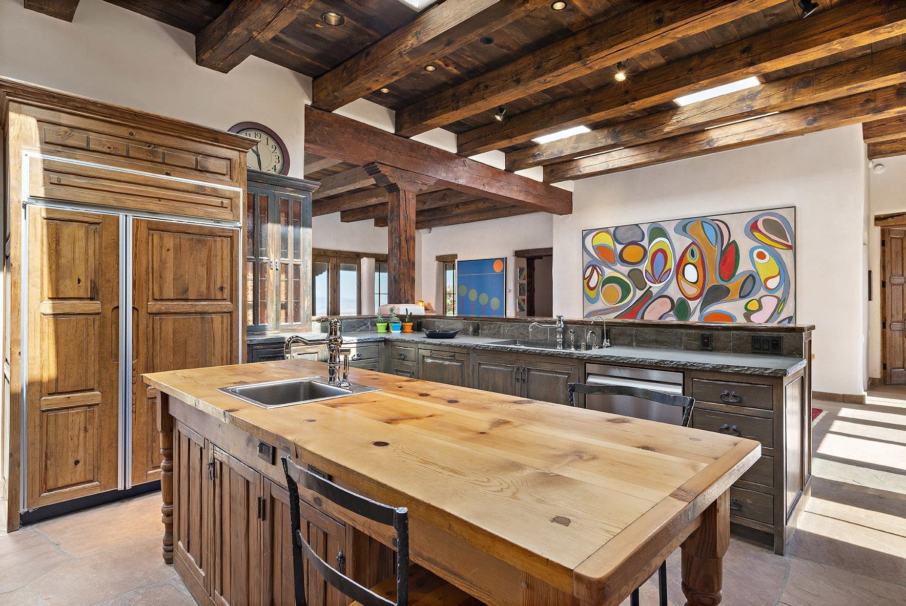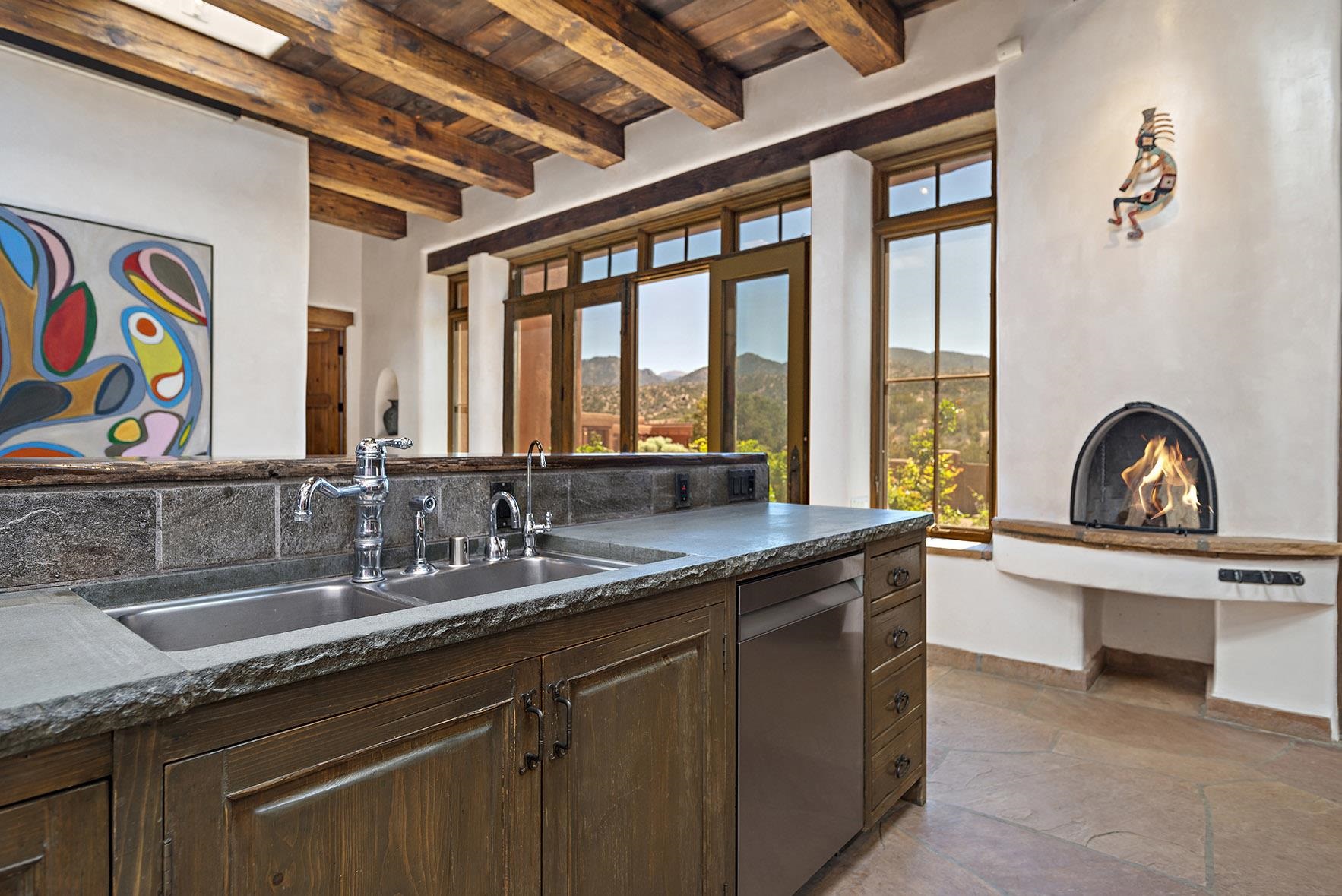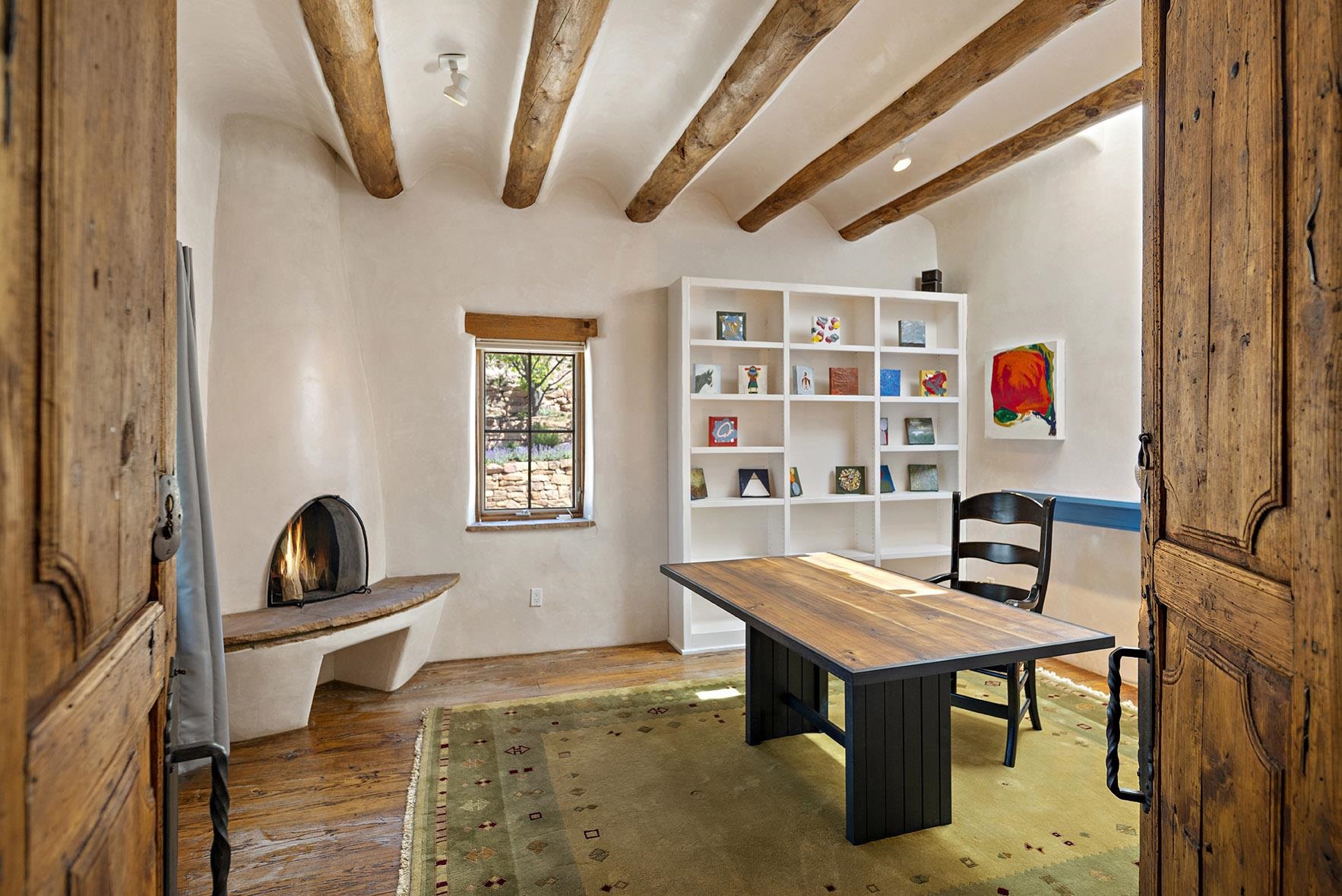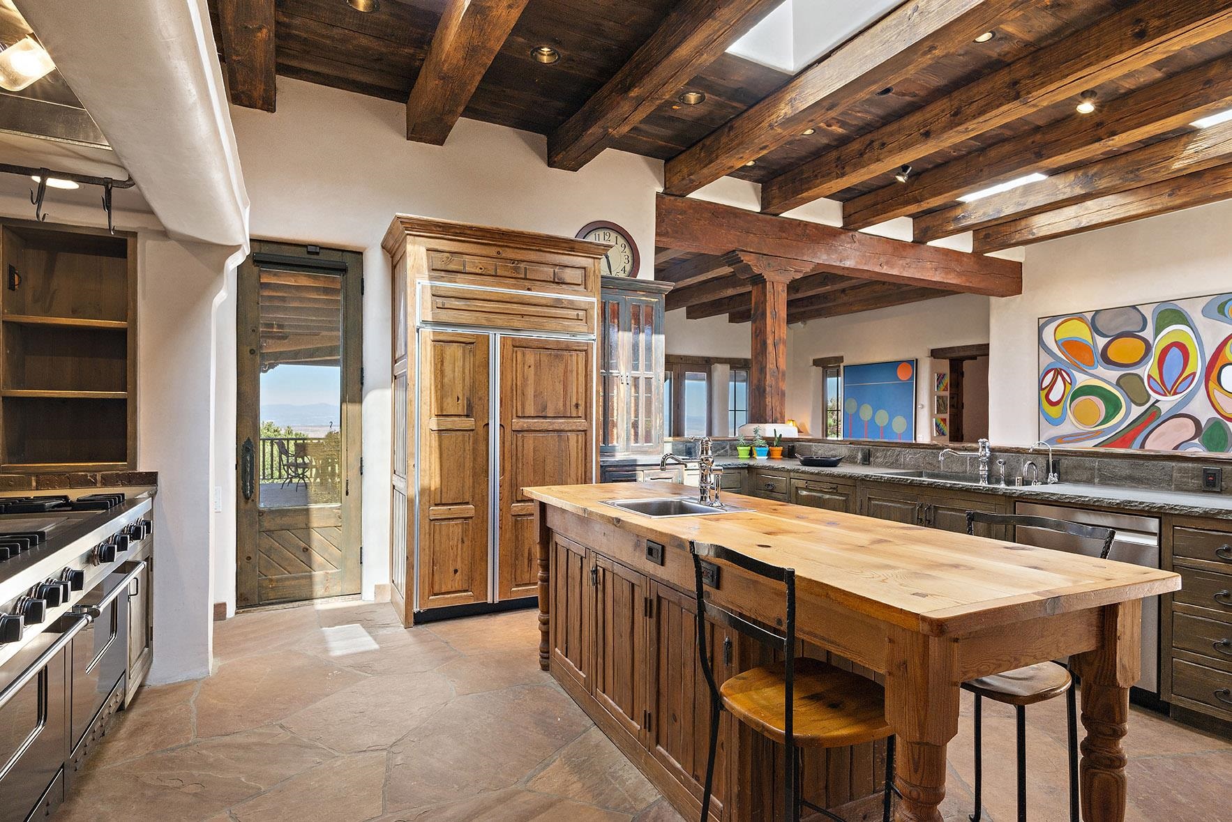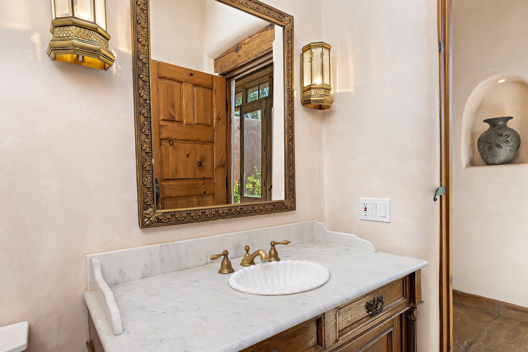 Newly transformed, this updated 25-acre compound in the Tesuque foothills has been reimagined to include a custom-developed equestrian facility, a separate and secure dog park, a bocce court overlooking the Sangre de Cristo Mountains, and much more, making this a unique offering where one can experience private living and ranch amenities just 15 minutes from historic downtown Santa Fe.Gated and at the end of the road, the property is nestled against National Forest, and features unobstructed 360 views and access to an expansive trail system. The beautifully appointed 3,278 square foot main house boasts timeless details and finishes to accent artful living inside and out.The warmth of thick adobe walls, hand-honed custom cabinetry, and hardware resonates with old-world charm. Cascading rock gardens, a romantic rose garden, and portals lead to a wine cellar and an inviting 838-square-foot guest house.The new equestrian features include a custom MD Barnmaster stable with four stalls with heated waterers and geothermal radiant heat, a wash stall, and a 288 square foot tack room lounge with bathroom and wet bar, including mini-split systems. The electricity is powered by solar with a propane generator backup system. Connected to the barn is a beautiful open-air arena with sweeping views surrounded by a private hand-dug trail system adding to the expansiveness of the property. Additionally, the newly extended water and electrical infrastructure allows one to customize the facility further.Other features near the main house include 5-car garages, an office/personal gym, beautiful courtyards and vista views throughout the property, a private gated entry and a security system in the main house, as well as the original three-stall barn with turnouts, a tack room, and access to Santa Fe National Forest. So whether you are interested in a custom luxury equestrian compound or creating a private retreat, the infrastructure is ready for you and your imagination.