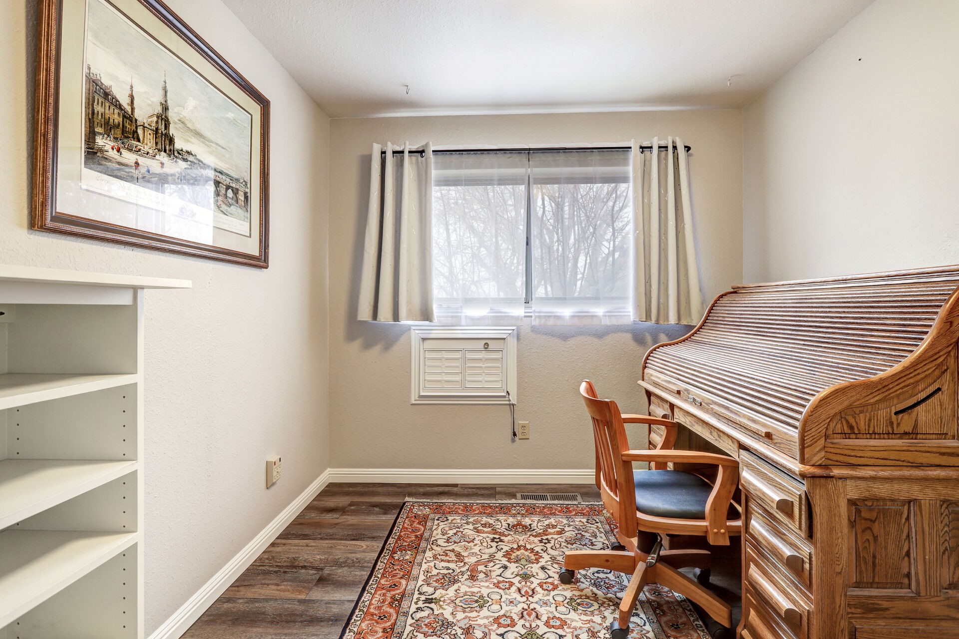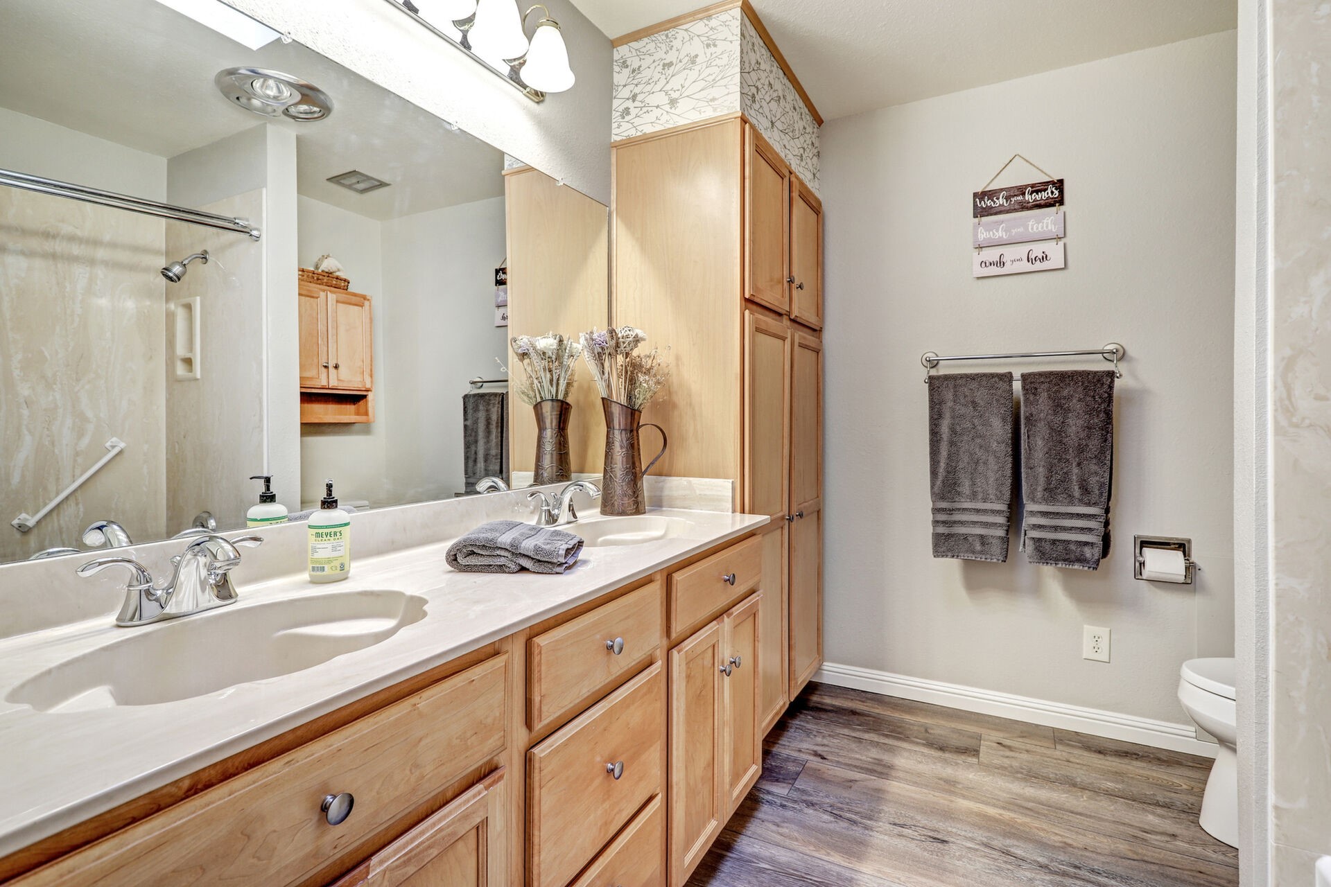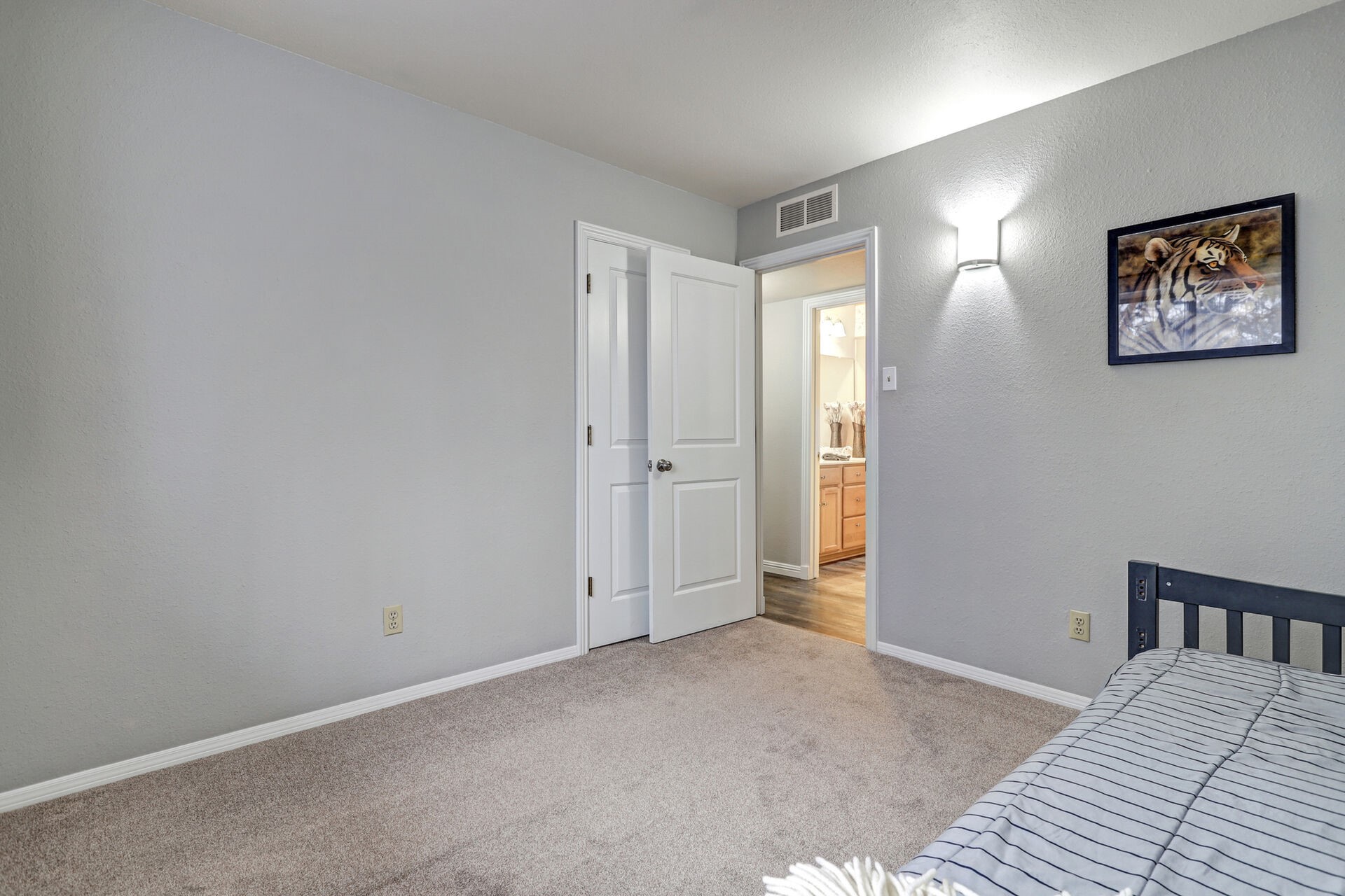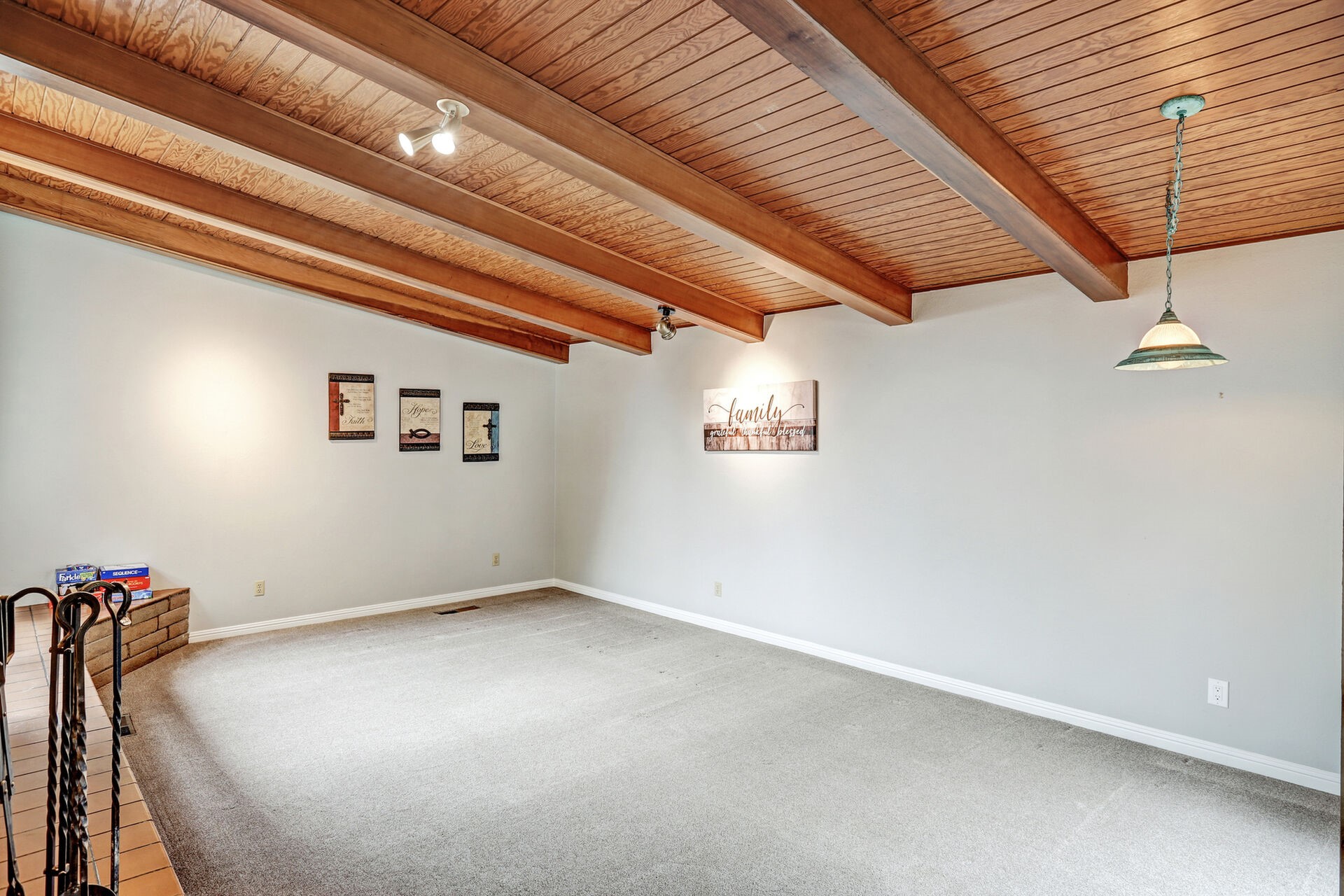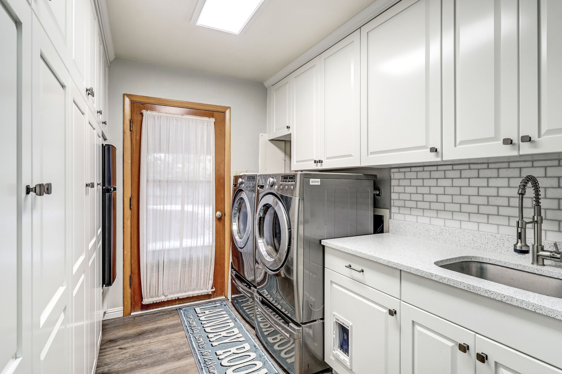 Immaculate property. Enter through a gate to a pleasant courtyard area with paved walkway to the home and garage. Inside be greeted by beautiful tongue and groove ceilings, tiled floors and the first of two living spaces. The living space has a wood-burning fireplace, raised hearth and abundant natural light. The kitchen is the heart of the home and has been fully renovated with custom-built cabinets, tile backsplash, kitchen island, and Cambria quartz counter tops. The kitchen features a double oven, touch faucet, coffee bar and is open to the second living room. Off the kitchen find a large laundry room with amazing storage, extra refrigerator, powder room bath, and nightlight mode lighting. Down the hall find three guest rooms, full hall bath and the primary bedroom with en suite three-quarter bath. Home also provides new waterproof, luxury vinyl flooring, evaporative cooling, smart technology including "Ring" doorbell and smart thermostats. The 2019 furnace is air conditioner ready. Outside is a large covered patio perfect for entertaining, grilling or simply relaxing. Trampoline conveys. The detached two car garage is heated and provides storage and/or shop area. You'll love this move-in ready home. Enjoy the virtual tour and schedule a showing today. Offers are due by March 30th.