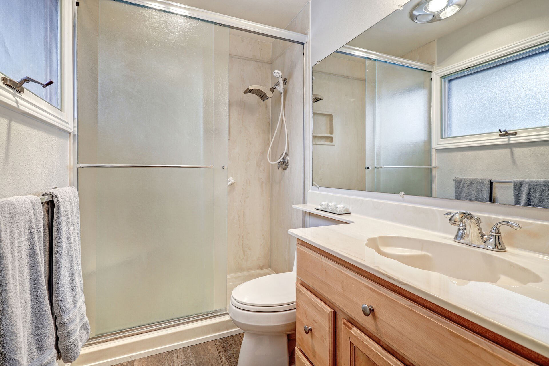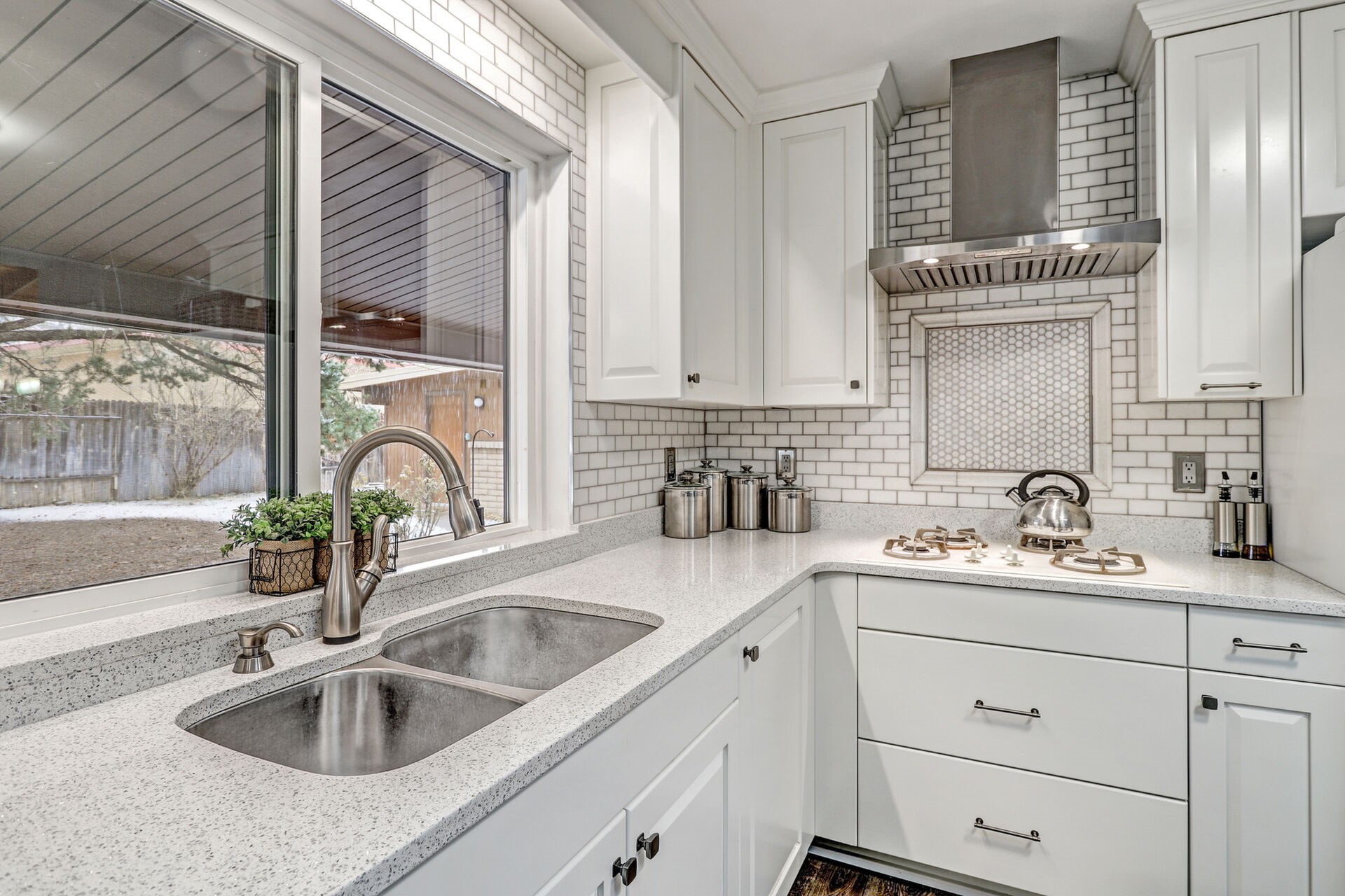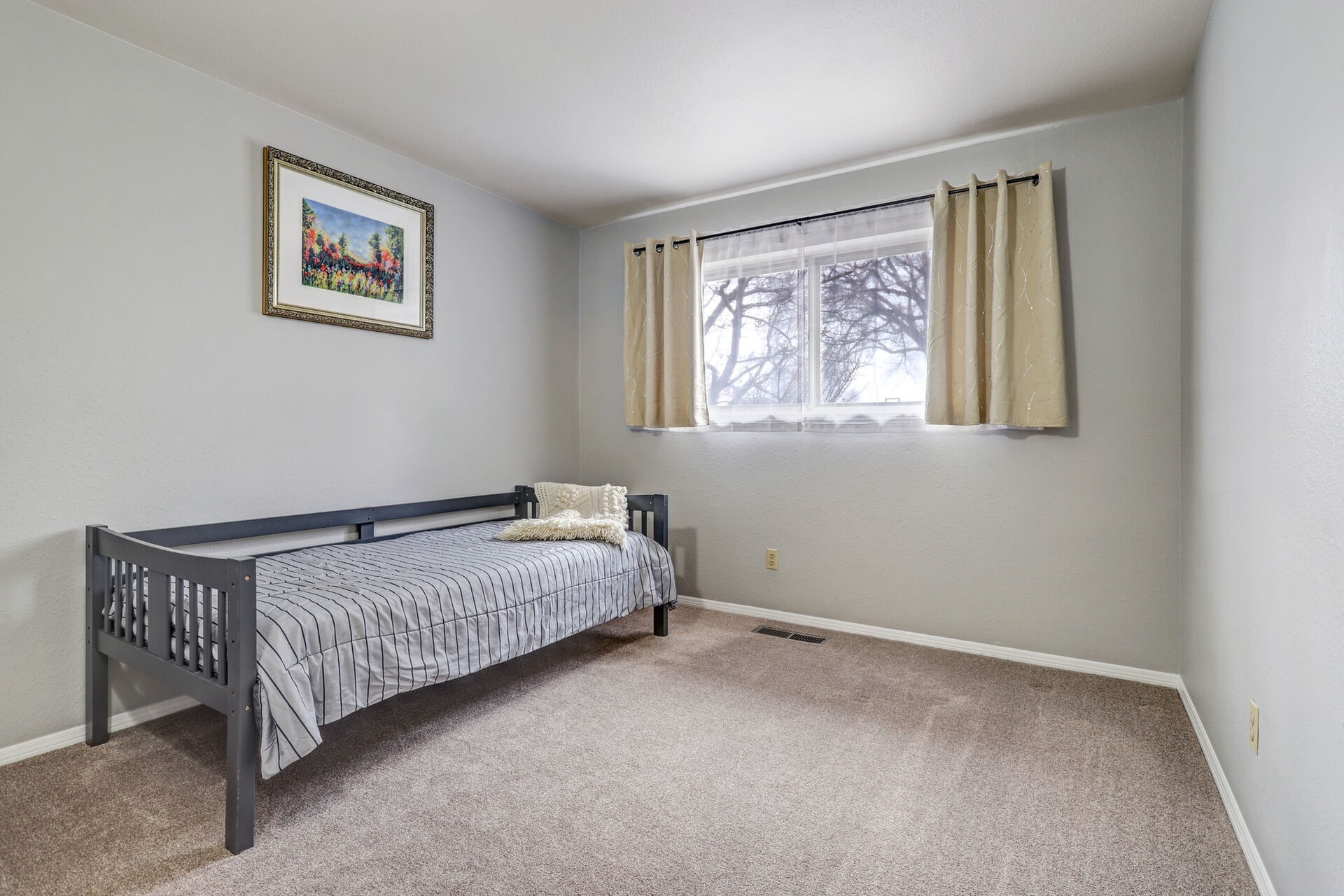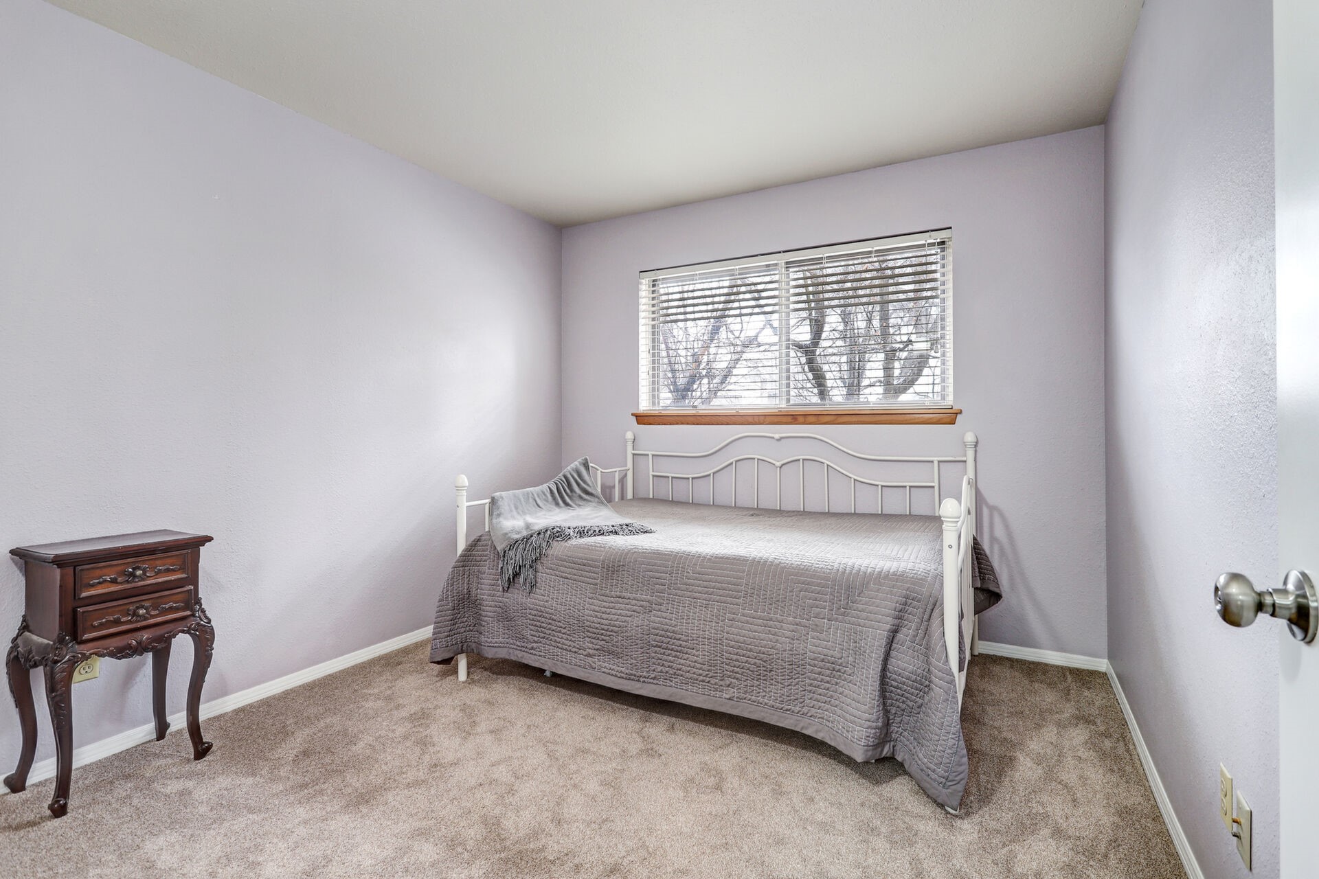 Immaculate property. Enter through a gate to a pleasant courtyard area with paved walkway to the home and garage. Inside be greeted by beautiful tongue and groove ceilings, tiled floors and the first of two living spaces. The living space has a wood-burning fireplace, raised hearth and abundant natural light. The kitchen is the heart of the home and has been fully renovated with custom-built cabinets, tile backsplash, kitchen island, and Cambria quartz counter tops. The kitchen features a double oven, touch faucet, coffee bar and is open to the second living room. Off the kitchen find a large laundry room with amazing storage, extra refrigerator, powder room bath, and nightlight mode lighting. Down the hall find three guest rooms, full hall bath and the primary bedroom with en suite three-quarter bath. Home also provides new waterproof, luxury vinyl flooring, evaporative cooling, smart technology including "Ring" doorbell and smart thermostats. The 2019 furnace is air conditioner ready. Outside is a large covered patio perfect for entertaining, grilling or simply relaxing. Trampoline conveys. The detached two car garage is heated and provides storage and/or shop area. You'll love this move-in ready home. Enjoy the virtual tour and schedule a showing today. Offers are due by March 30th.