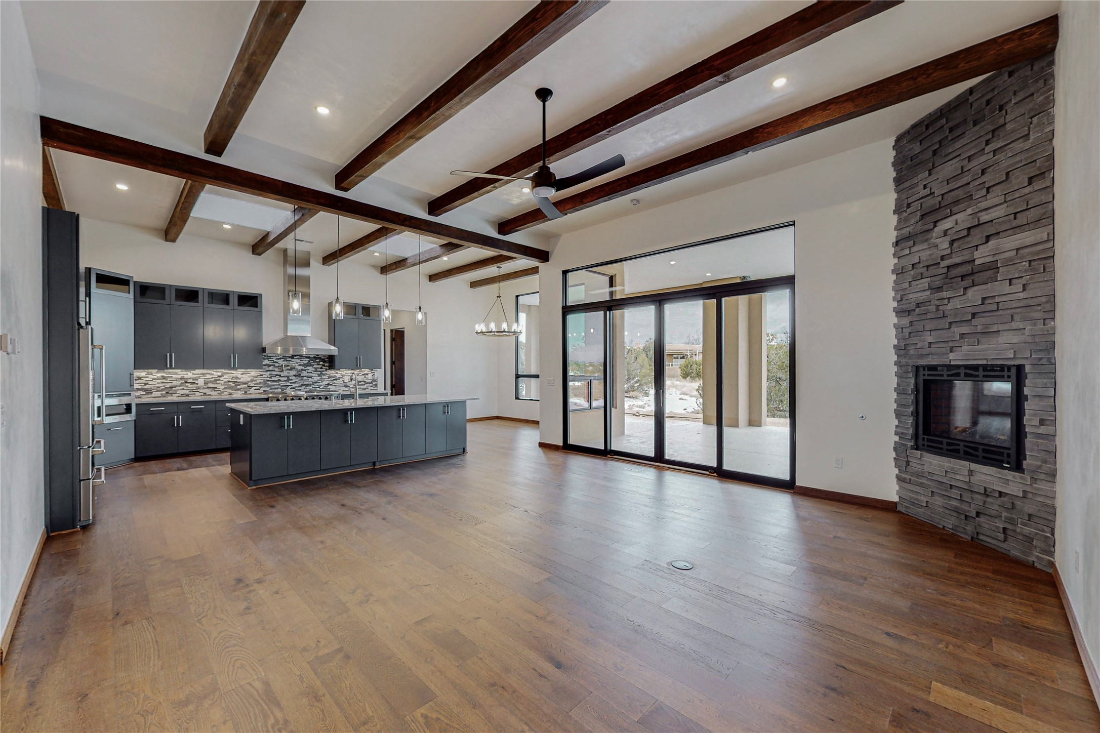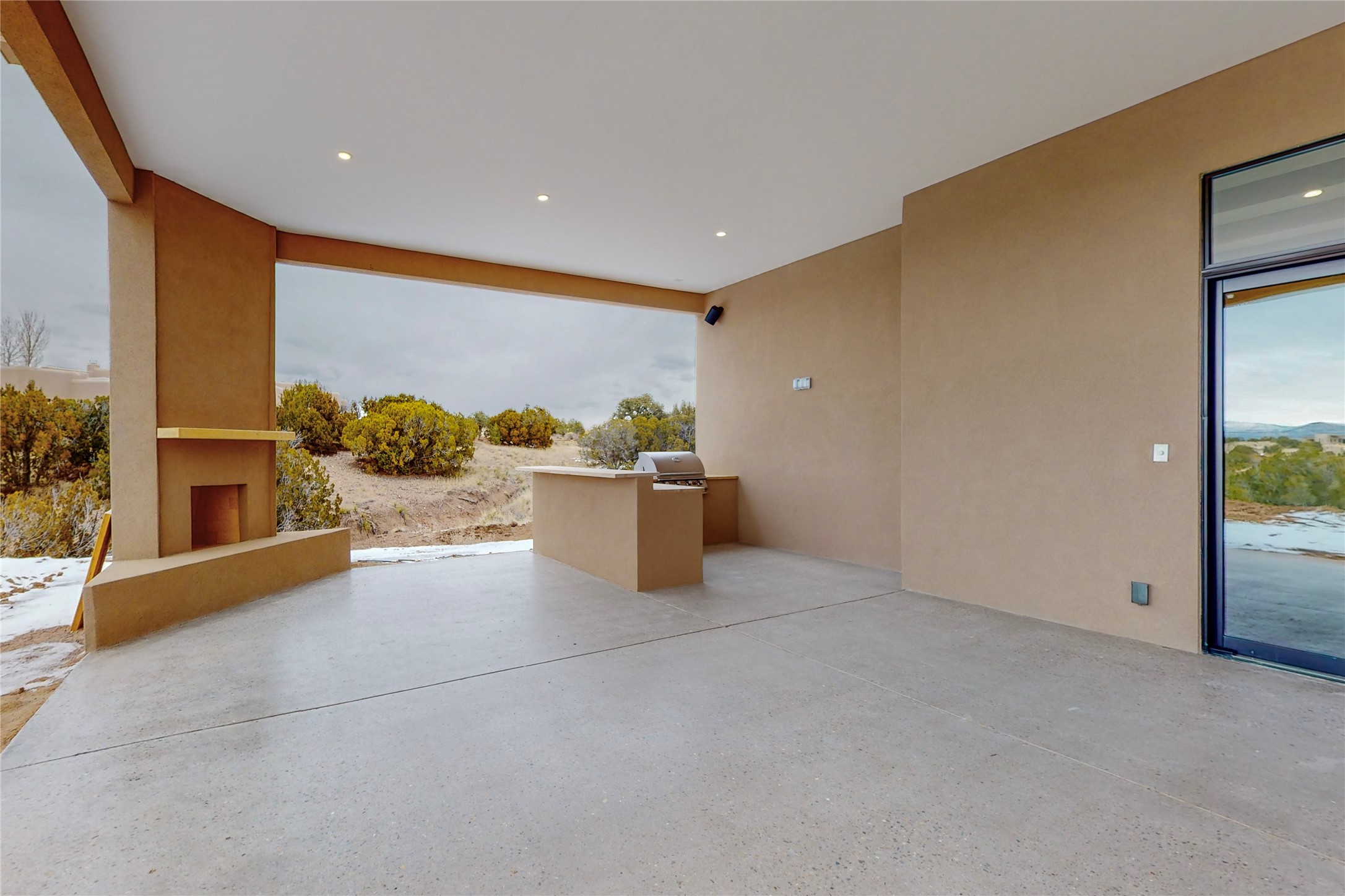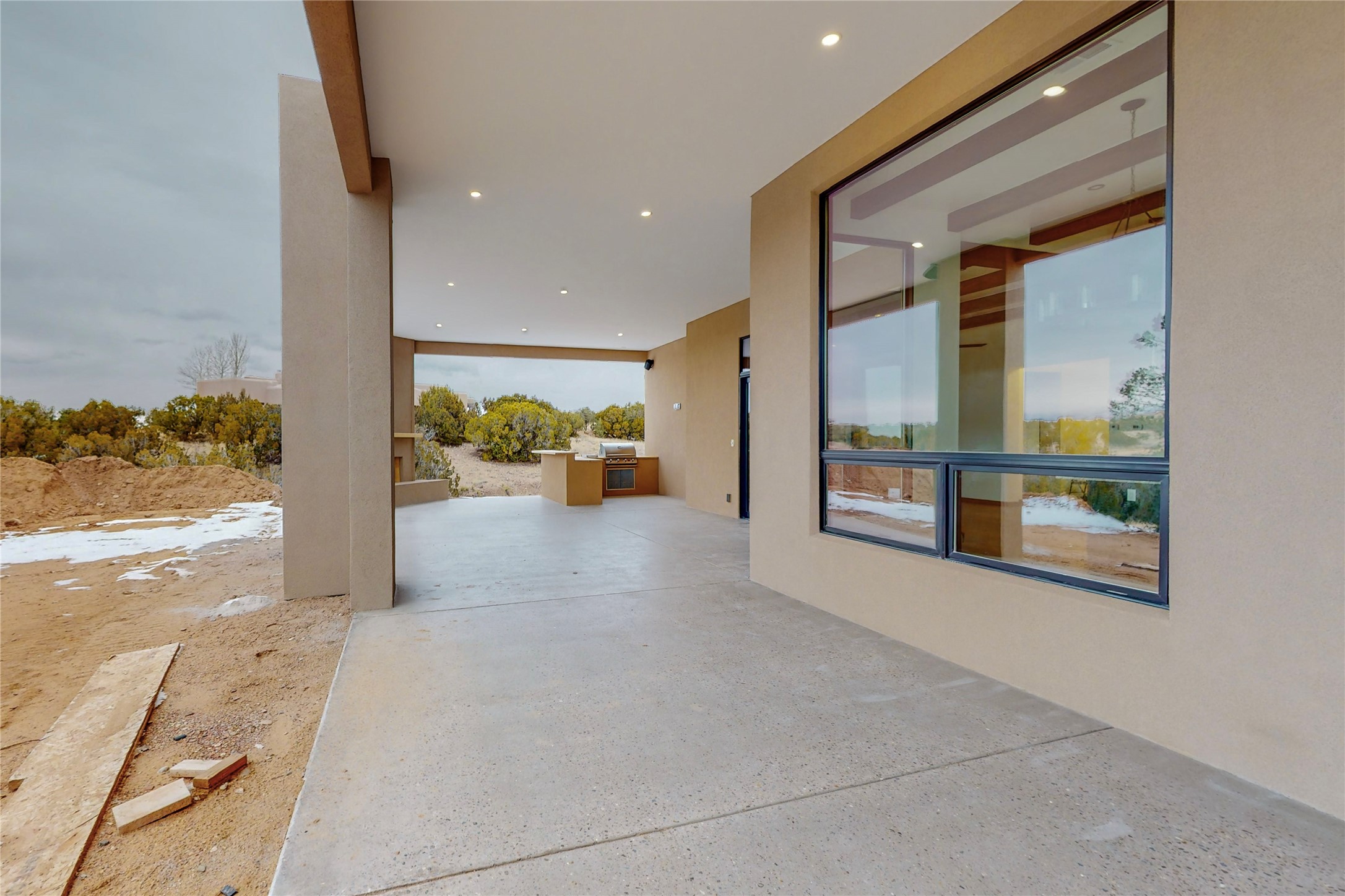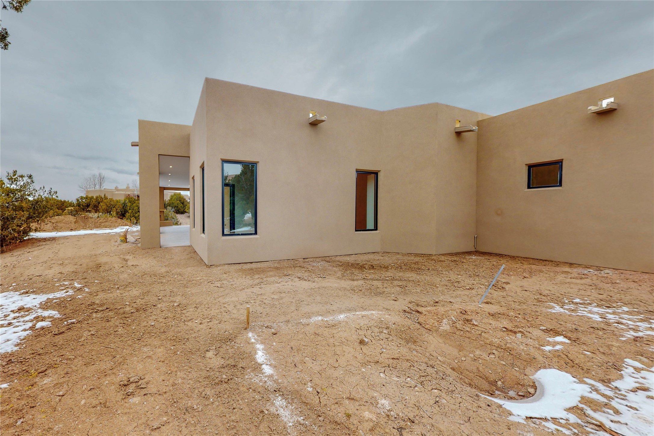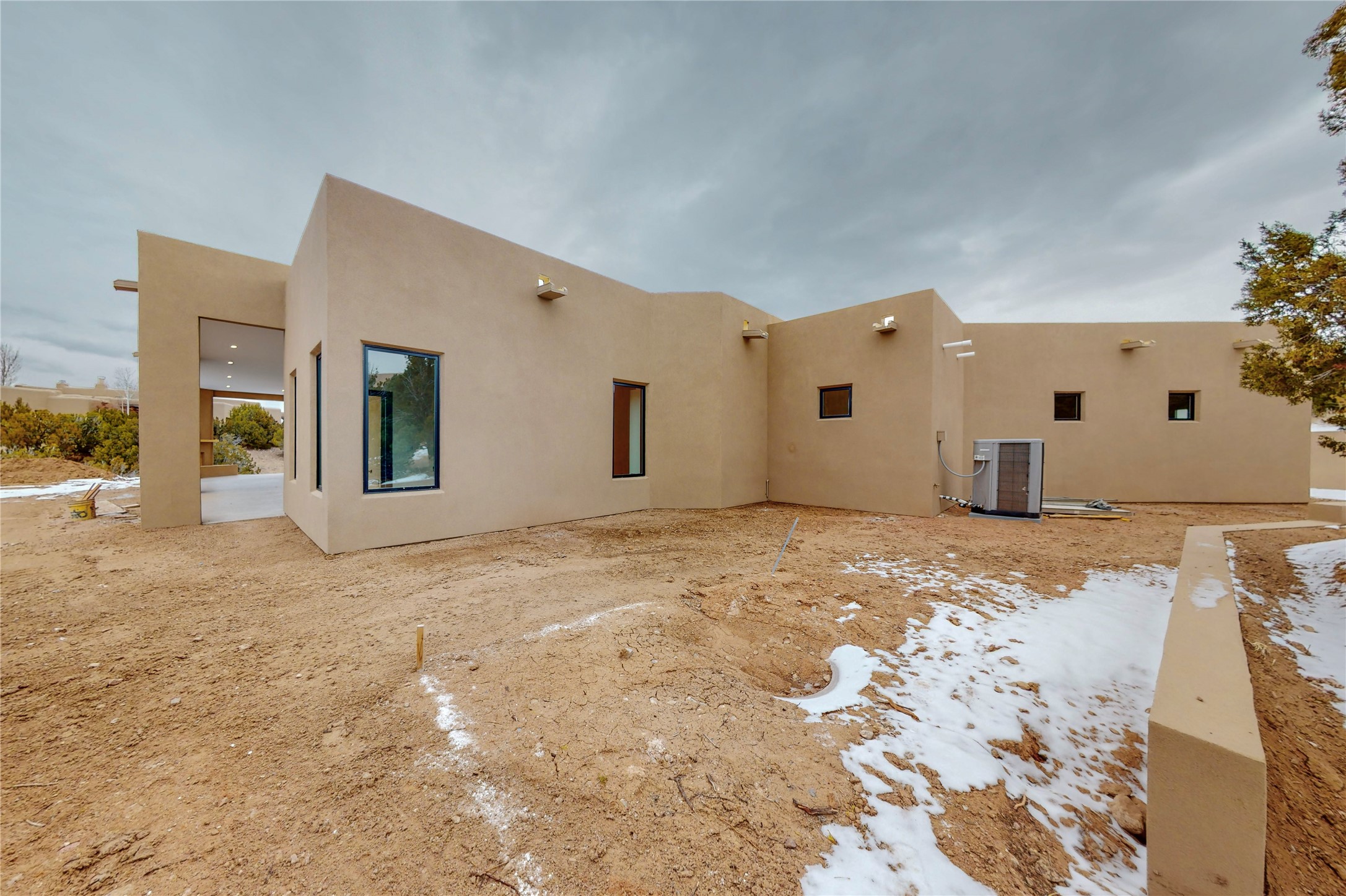 Located in the desirable area of Park Estates at Las Campanas, this home is on a 1.17 acre lot with extensive Jemez mountain views! There are two security gates in order to reach this area of Las Campanas for added security and peace of mind. Almost complete, this soft contemporary home is scheduled for completion early 2023. There are two indoor gas fireplaces located in the living room and master bedroom suite. There is a third wood burning fireplace located outdoors for entertaining and sunset viewing. Finishes include wood and tile floors throughout, along with Venetian plaster in the living room, kitchen and dining room. There is also a secondary kitchen area and the appliance package includes a wine cooler! Not included in the square footage is an oversized three car garage that has been pre-wired for an electric car outlet. The yards will be landscaped according to the landscape plan approved by Las Campanas. There is an outdoor kitchen located on the west portal. There is a walking/biking trail nearby and Club at Las Campanas membership options are available separately through the Club at Las Campanas.
