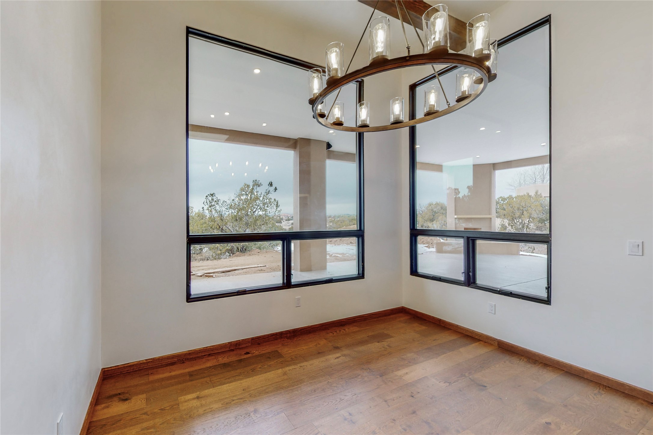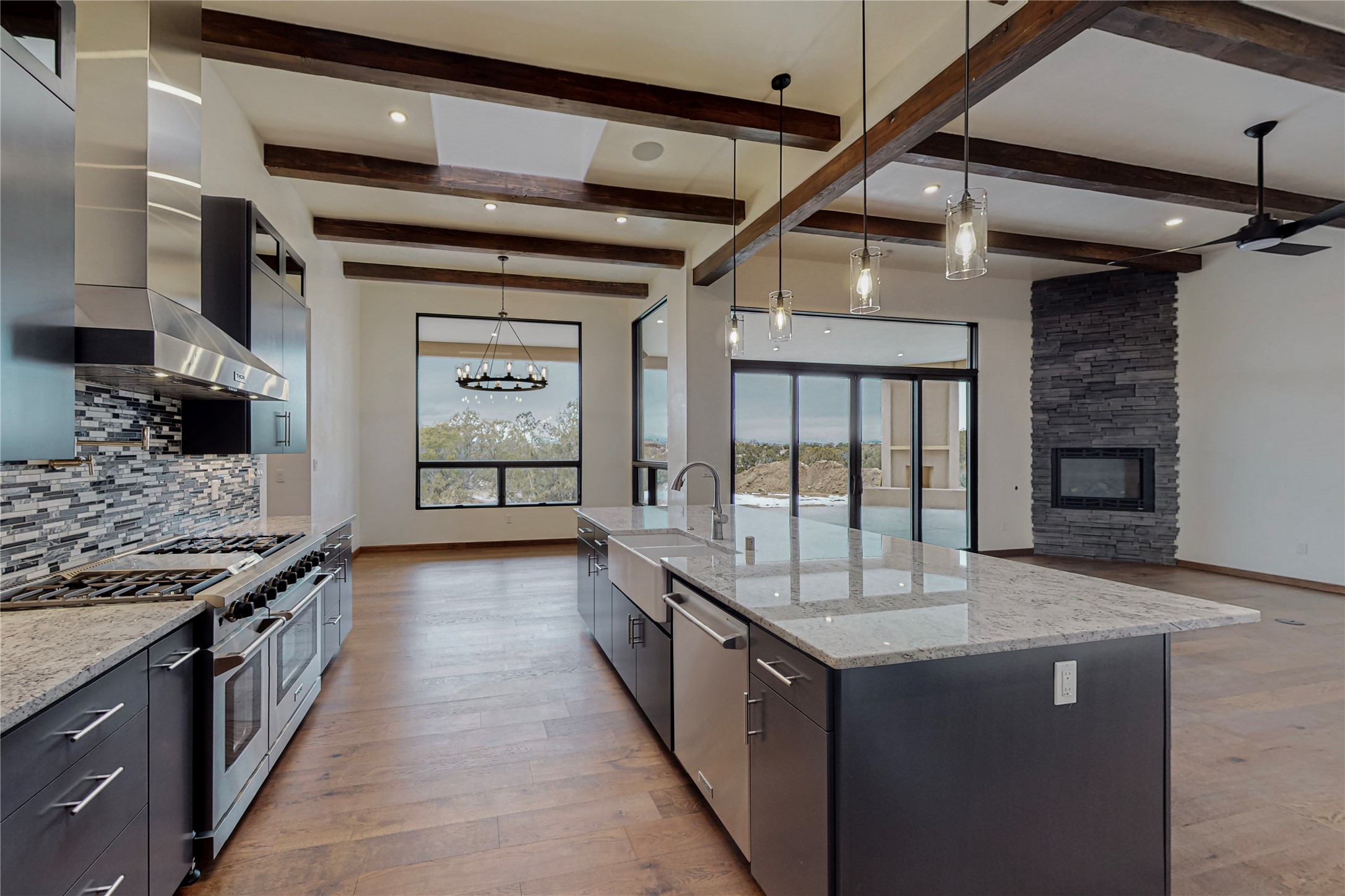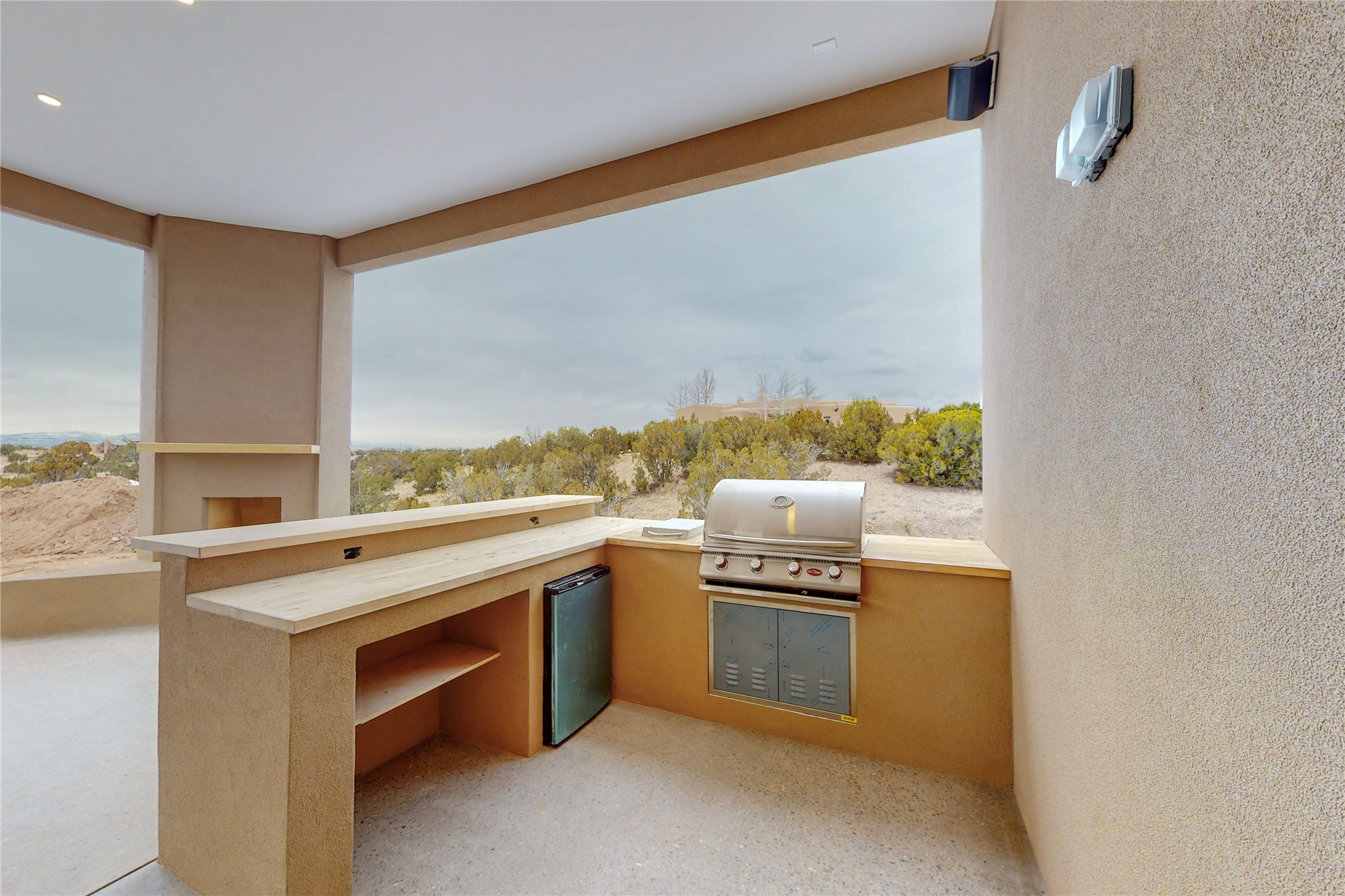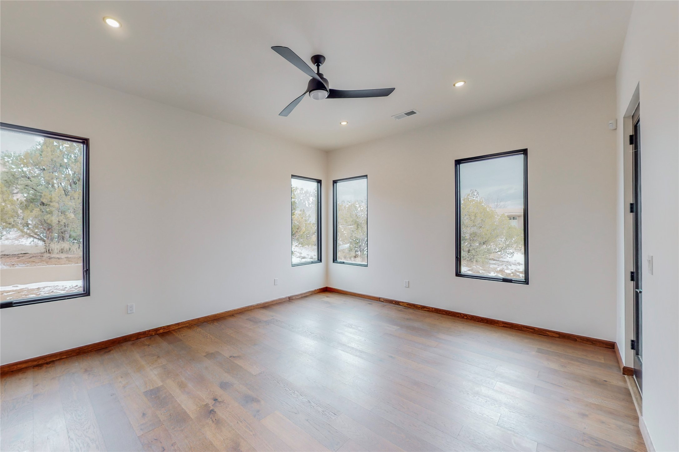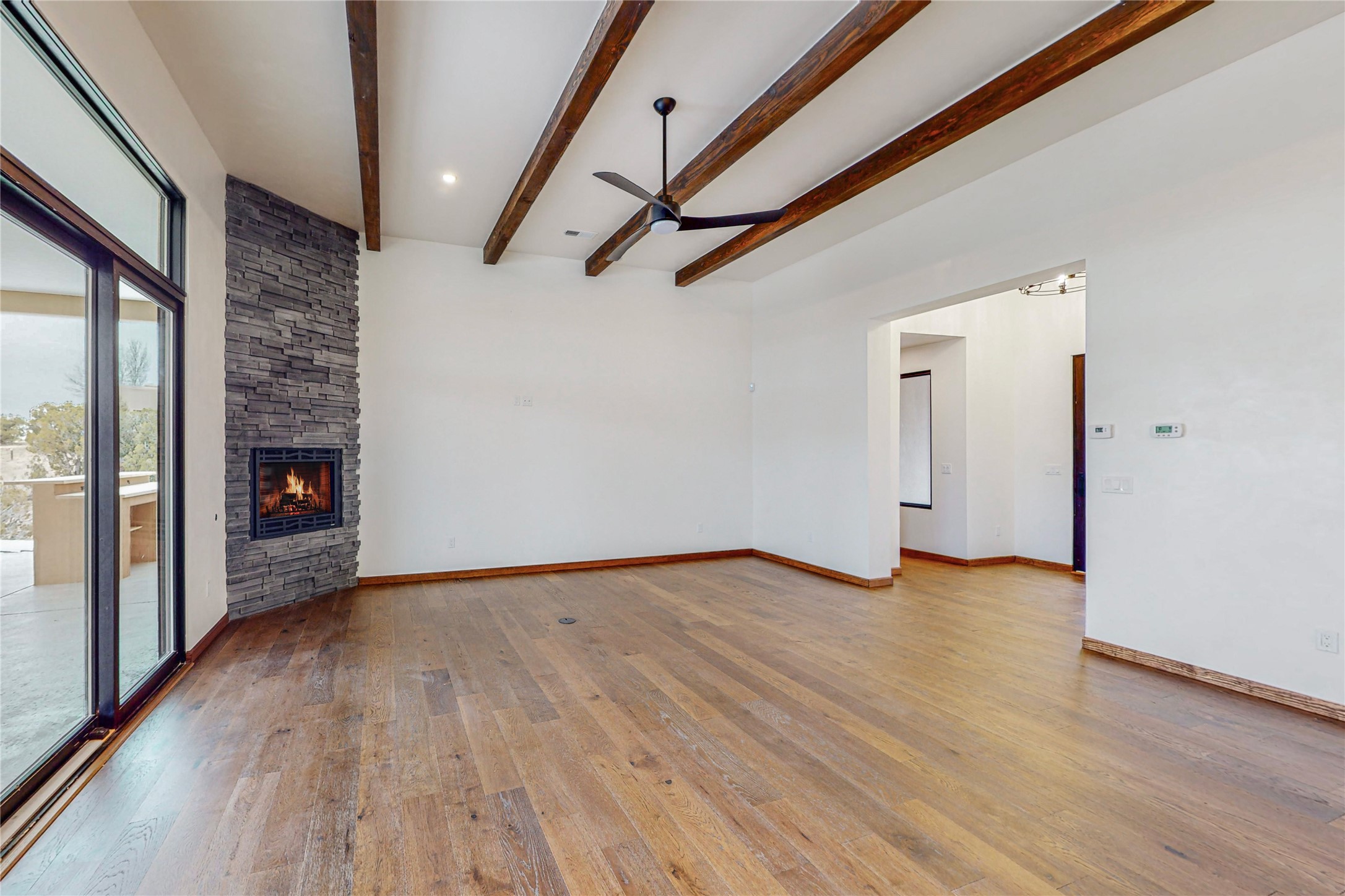 Located in the desirable area of Park Estates at Las Campanas, this home is on a 1.17 acre lot with extensive Jemez mountain views! There are two security gates in order to reach this area of Las Campanas for added security and peace of mind. Almost complete, this soft contemporary home is scheduled for completion early 2023. There are two indoor gas fireplaces located in the living room and master bedroom suite. There is a third wood burning fireplace located outdoors for entertaining and sunset viewing. Finishes include wood and tile floors throughout, along with Venetian plaster in the living room, kitchen and dining room. There is also a secondary kitchen area and the appliance package includes a wine cooler! Not included in the square footage is an oversized three car garage that has been pre-wired for an electric car outlet. The yards will be landscaped according to the landscape plan approved by Las Campanas. There is an outdoor kitchen located on the west portal. There is a walking/biking trail nearby and Club at Las Campanas membership options are available separately through the Club at Las Campanas.