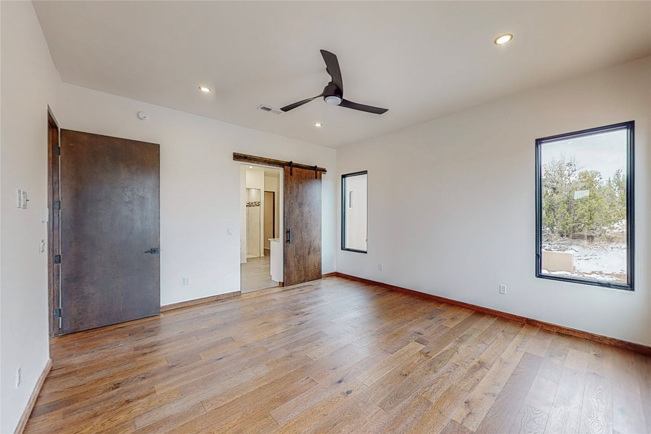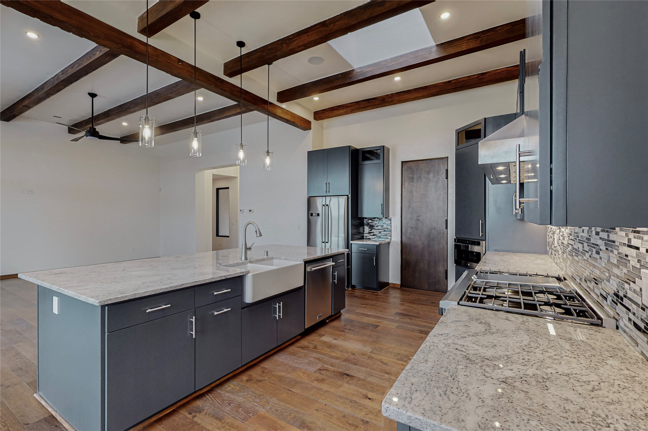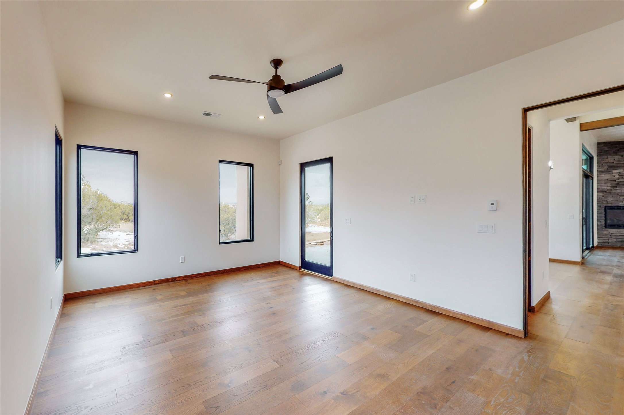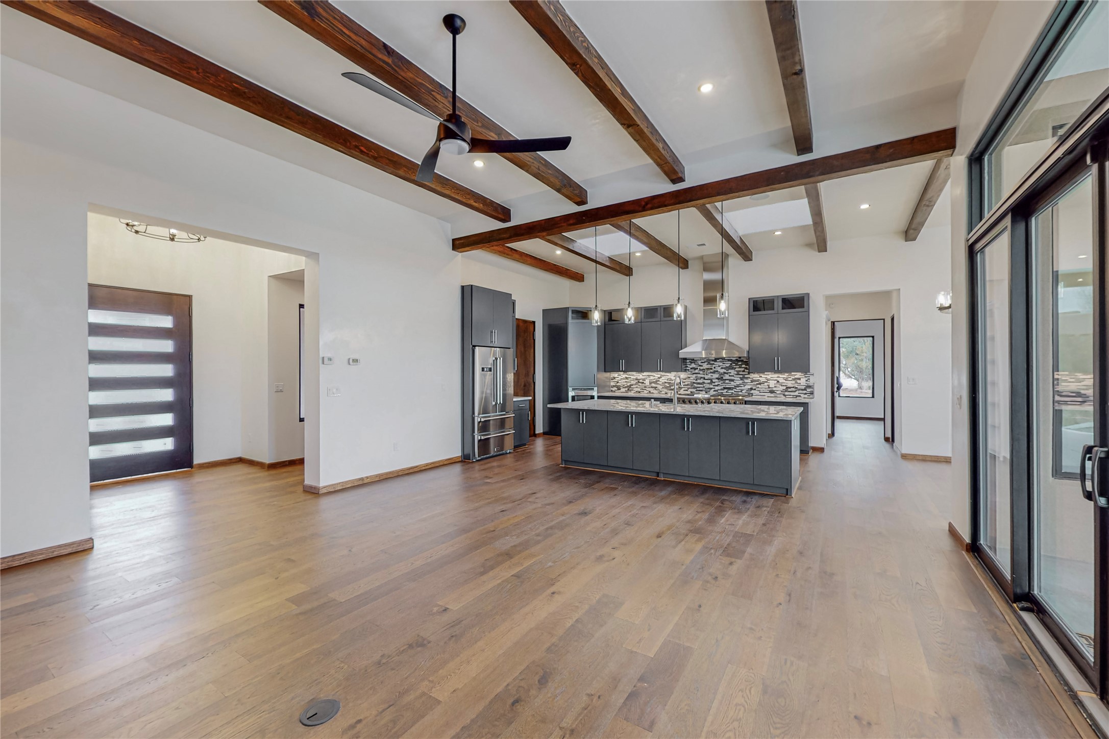 Located in the desirable area of Park Estates at Las Campanas, this home is on a 1.17 acre lot with extensive Jemez mountain views! There are two security gates in order to reach this area of Las Campanas for added security and peace of mind. Almost complete, this soft contemporary home is scheduled for completion early 2023. There are two indoor gas fireplaces located in the living room and master bedroom suite. There is a third wood burning fireplace located outdoors for entertaining and sunset viewing. Finishes include wood and tile floors throughout, along with Venetian plaster in the living room, kitchen and dining room. There is also a secondary kitchen area and the appliance package includes a wine cooler! Not included in the square footage is an oversized three car garage that has been pre-wired for an electric car outlet. The yards will be landscaped according to the landscape plan approved by Las Campanas. There is an outdoor kitchen located on the west portal. There is a walking/biking trail nearby and Club at Las Campanas membership options are available separately through the Club at Las Campanas.