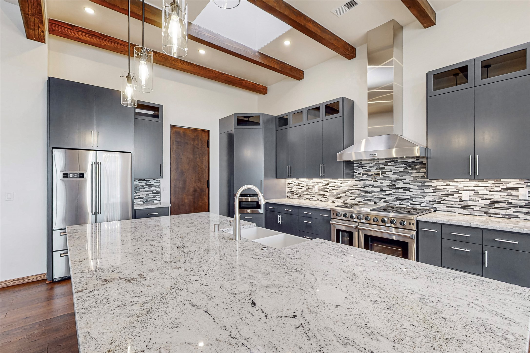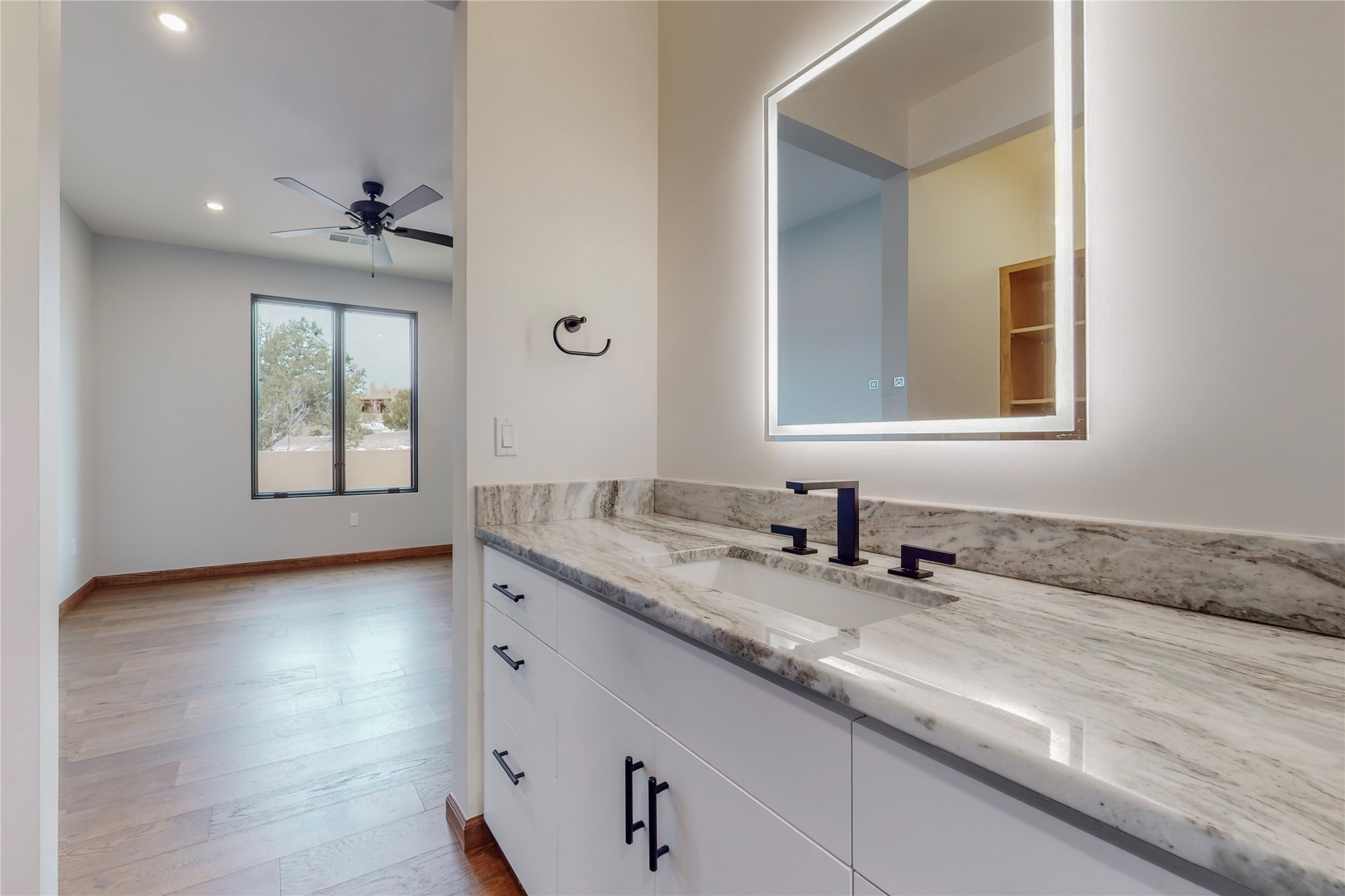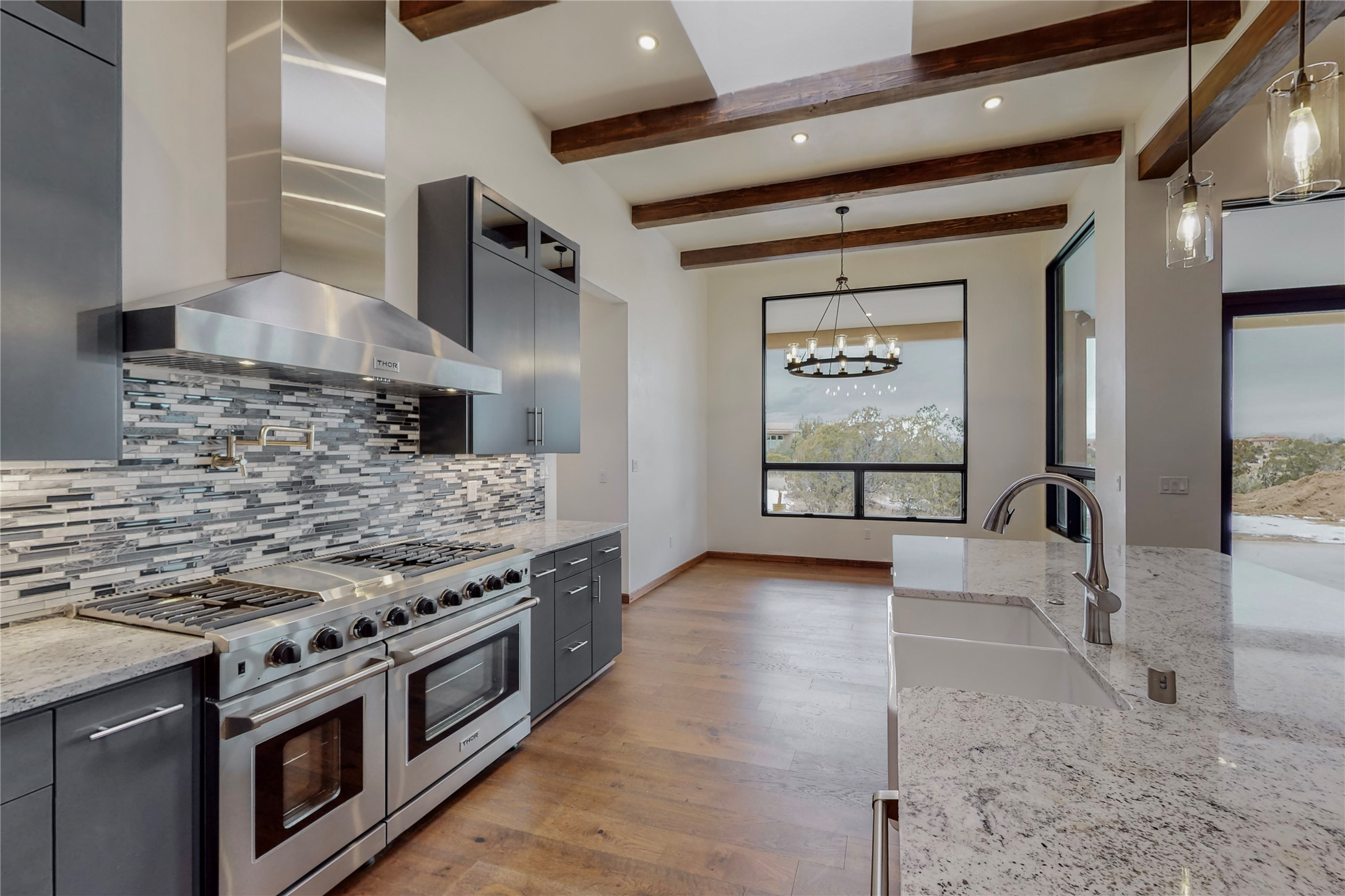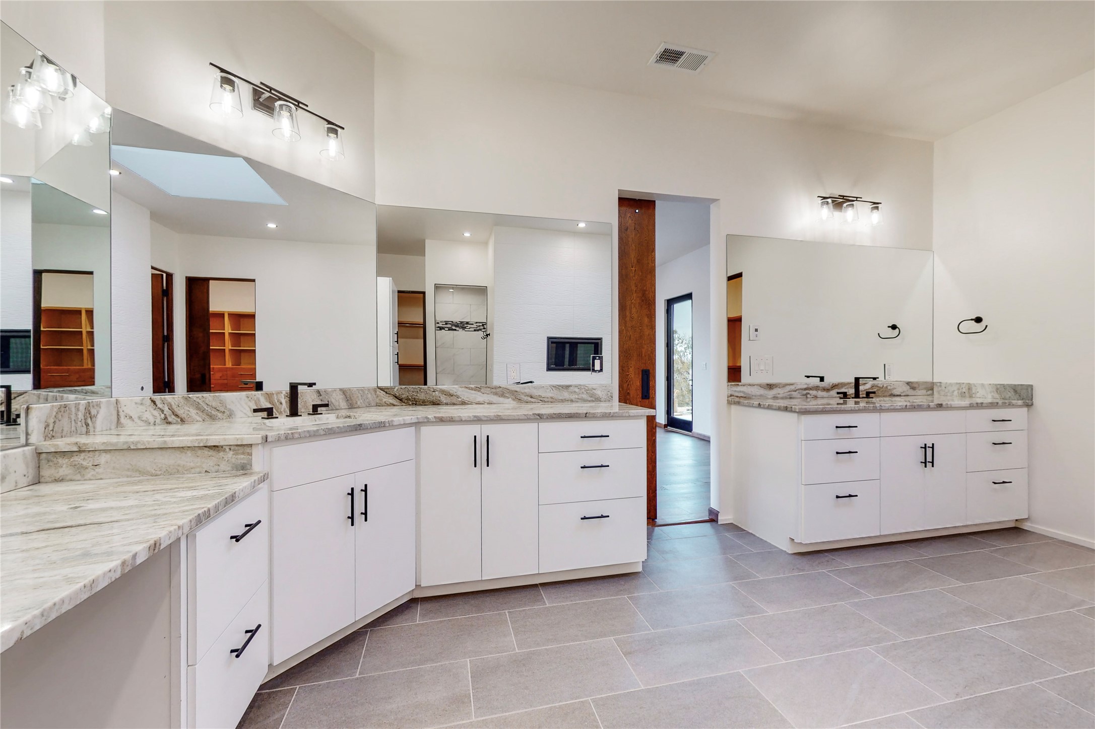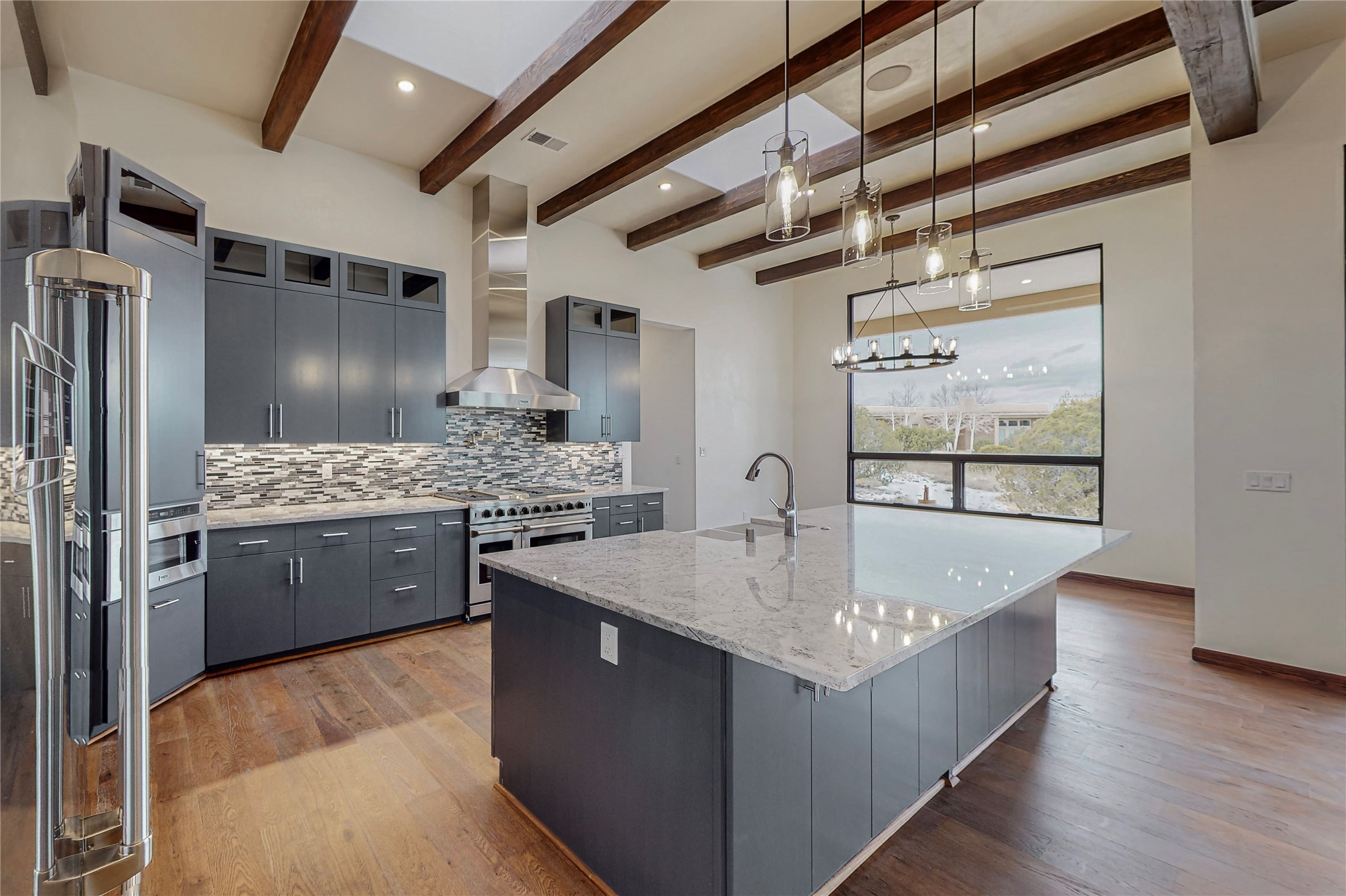 Located in the desirable area of Park Estates at Las Campanas, this home is on a 1.17 acre lot with extensive Jemez mountain views! There are two security gates in order to reach this area of Las Campanas for added security and peace of mind. Almost complete, this soft contemporary home is scheduled for completion early 2023. There are two indoor gas fireplaces located in the living room and master bedroom suite. There is a third wood burning fireplace located outdoors for entertaining and sunset viewing. Finishes include wood and tile floors throughout, along with Venetian plaster in the living room, kitchen and dining room. There is also a secondary kitchen area and the appliance package includes a wine cooler! Not included in the square footage is an oversized three car garage that has been pre-wired for an electric car outlet. The yards will be landscaped according to the landscape plan approved by Las Campanas. There is an outdoor kitchen located on the west portal. There is a walking/biking trail nearby and Club at Las Campanas membership options are available separately through the Club at Las Campanas.
