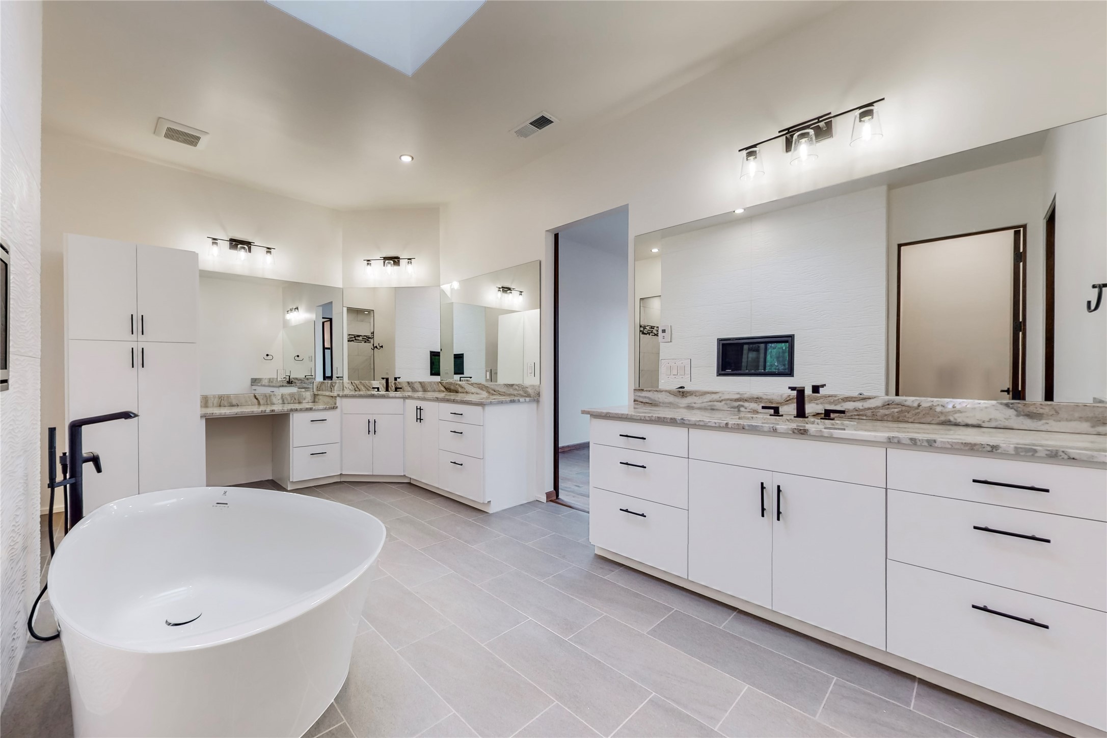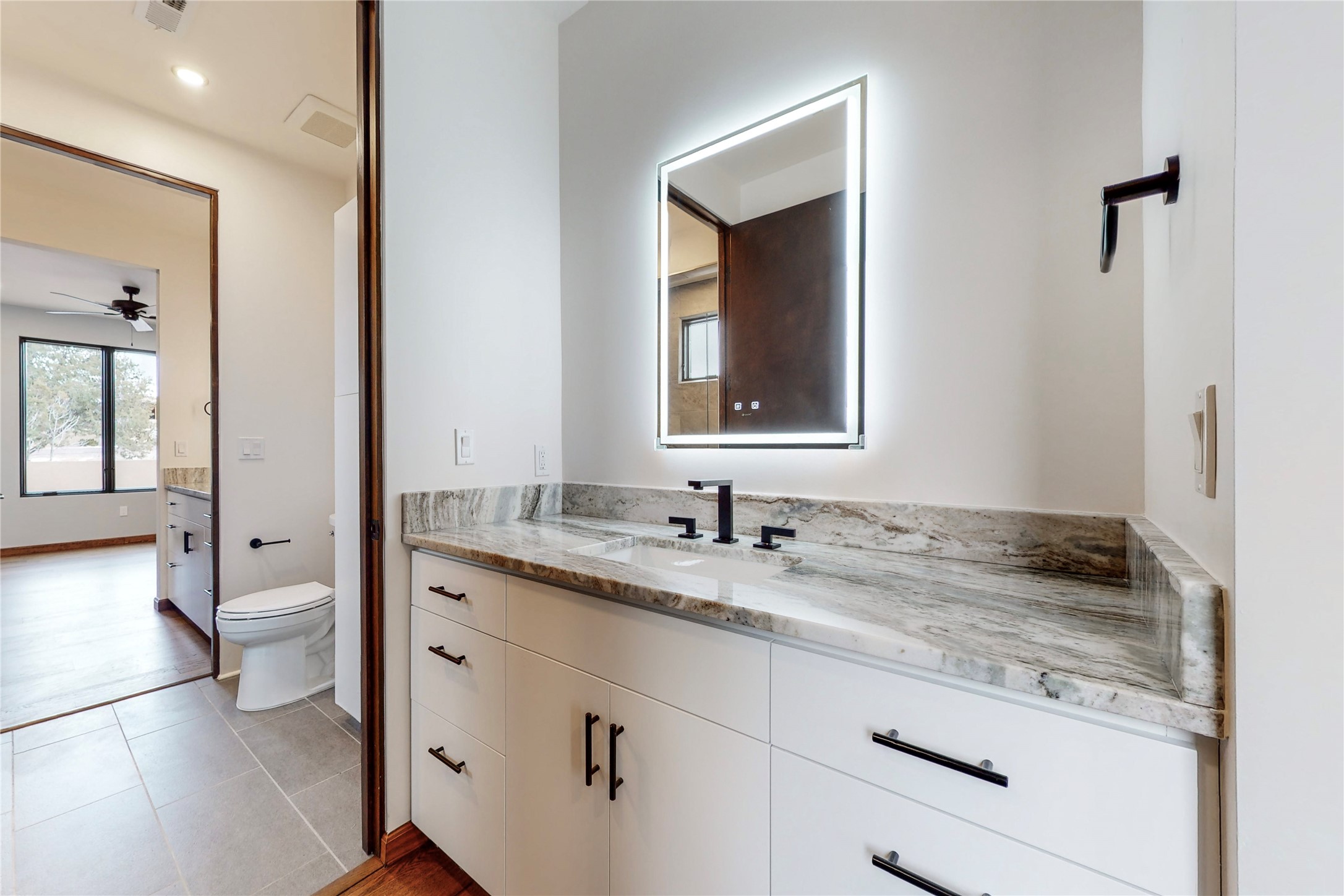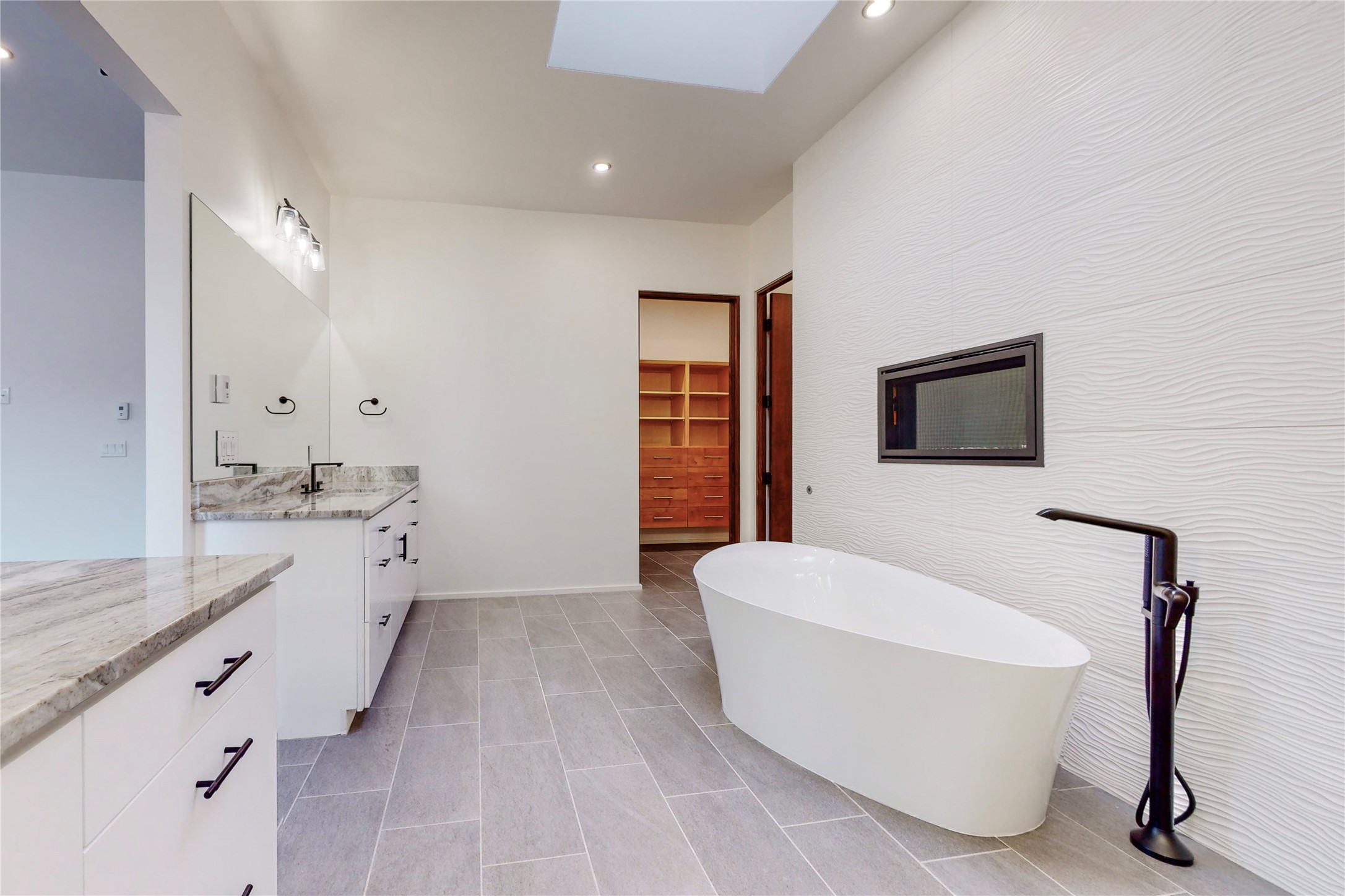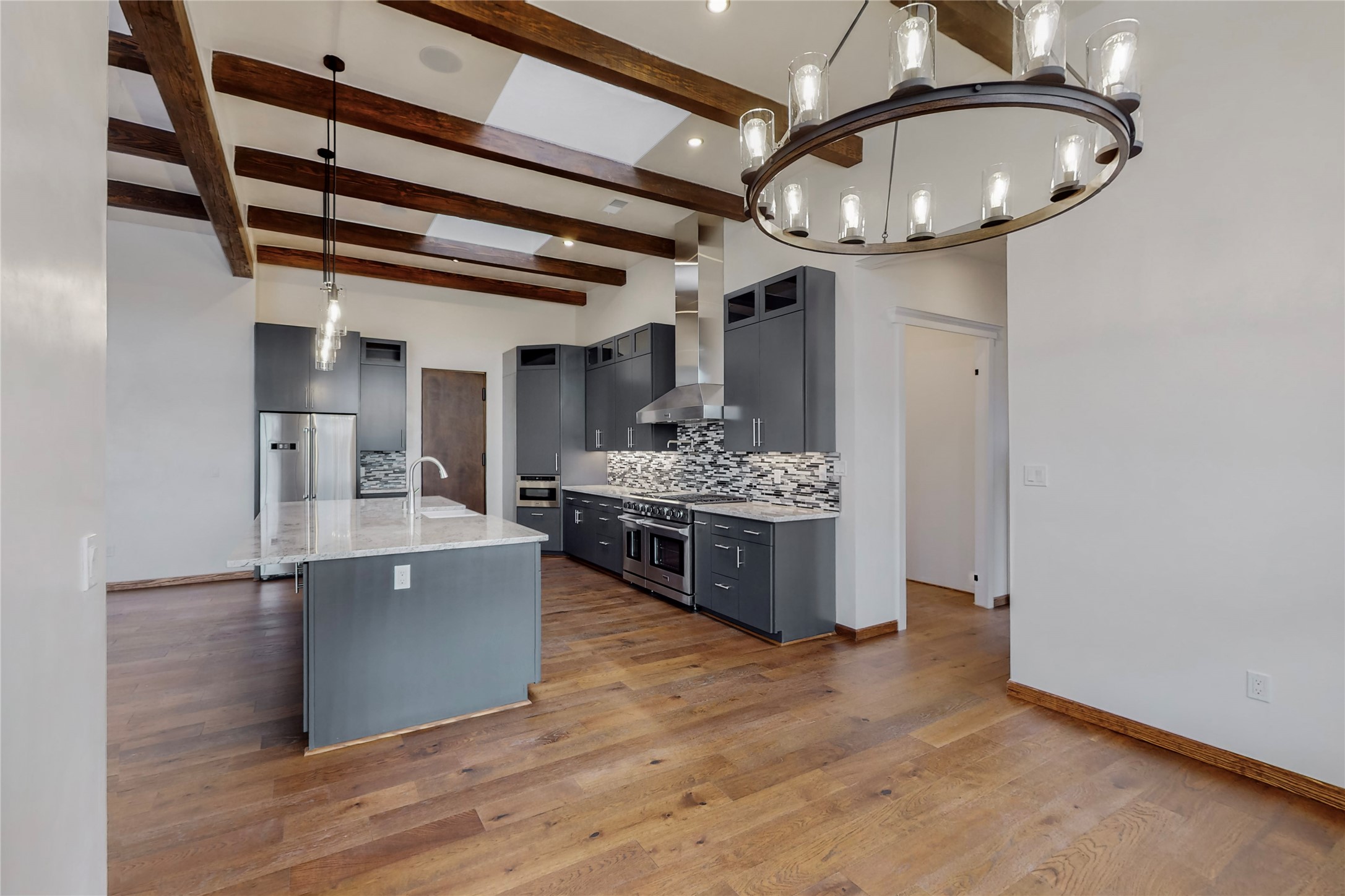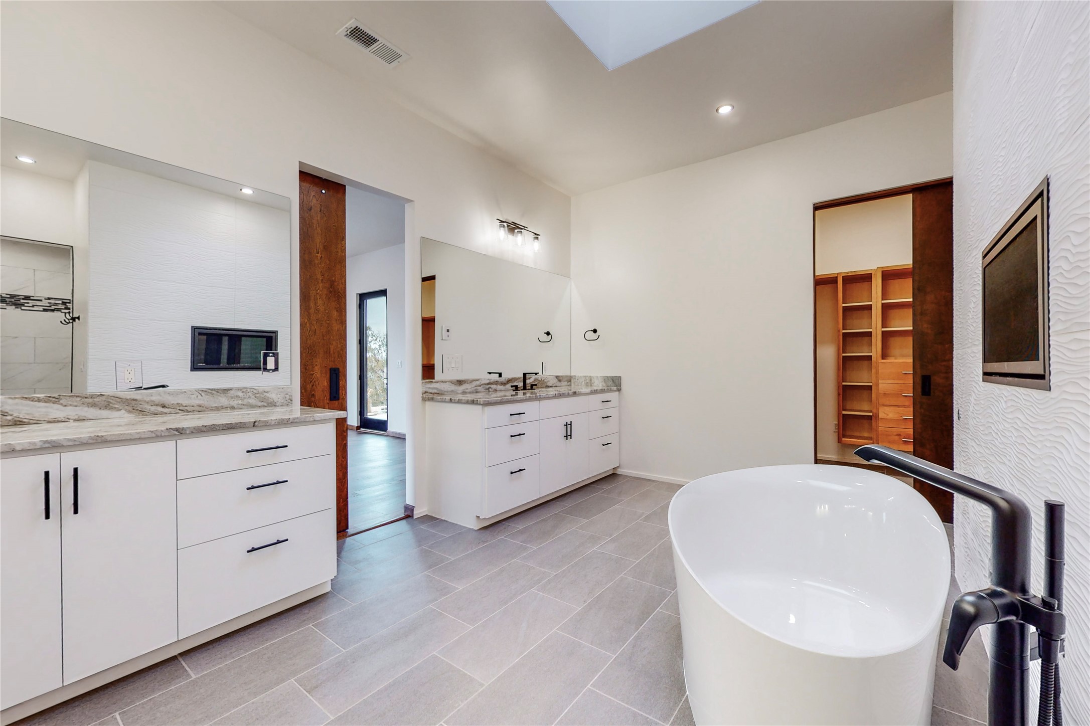 Located in the desirable area of Park Estates at Las Campanas, this home is on a 1.17 acre lot with extensive Jemez mountain views! There are two security gates in order to reach this area of Las Campanas for added security and peace of mind. Almost complete, this soft contemporary home is scheduled for completion early 2023. There are two indoor gas fireplaces located in the living room and master bedroom suite. There is a third wood burning fireplace located outdoors for entertaining and sunset viewing. Finishes include wood and tile floors throughout, along with Venetian plaster in the living room, kitchen and dining room. There is also a secondary kitchen area and the appliance package includes a wine cooler! Not included in the square footage is an oversized three car garage that has been pre-wired for an electric car outlet. The yards will be landscaped according to the landscape plan approved by Las Campanas. There is an outdoor kitchen located on the west portal. There is a walking/biking trail nearby and Club at Las Campanas membership options are available separately through the Club at Las Campanas.