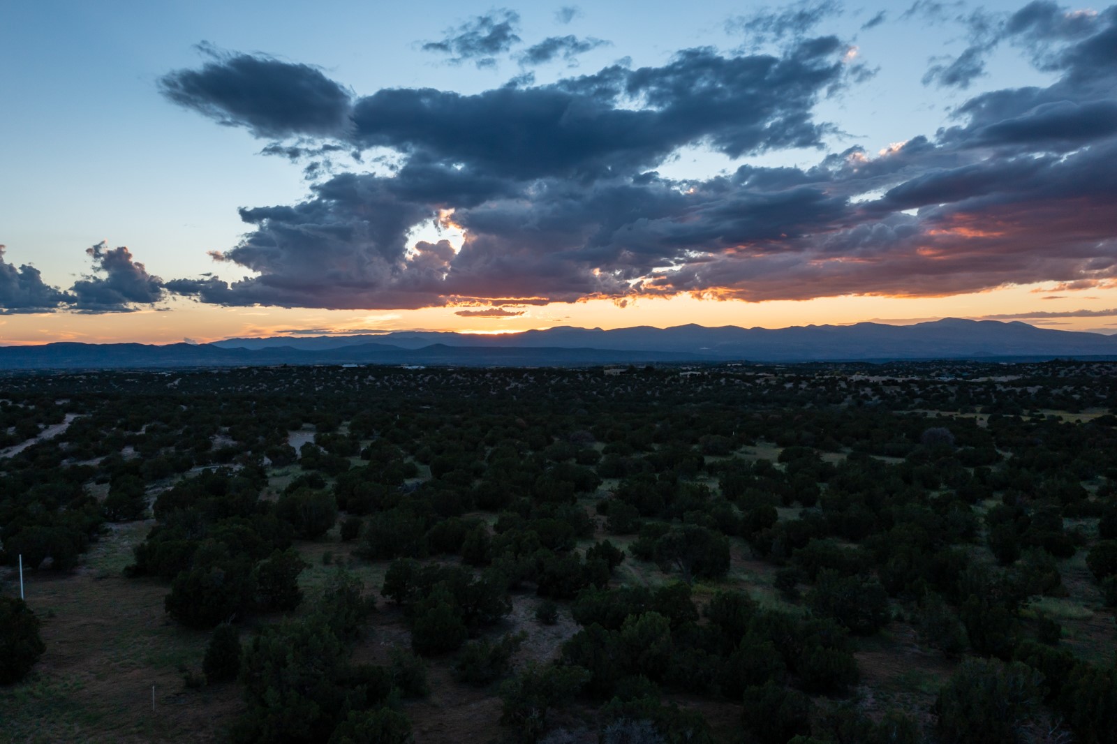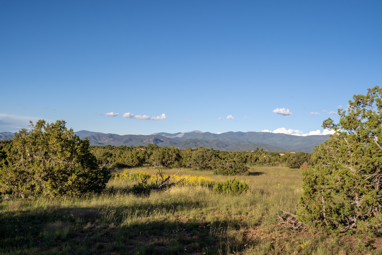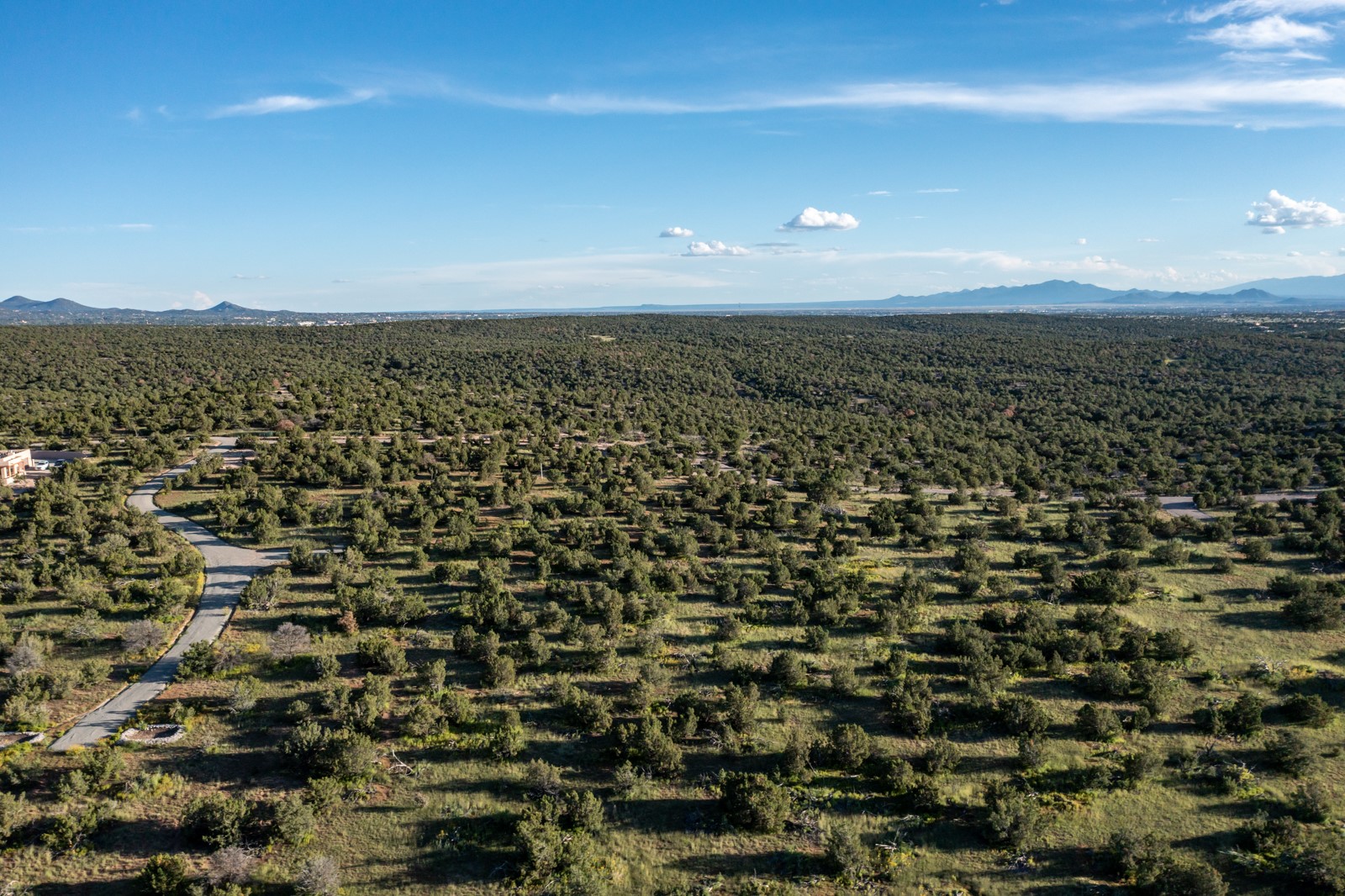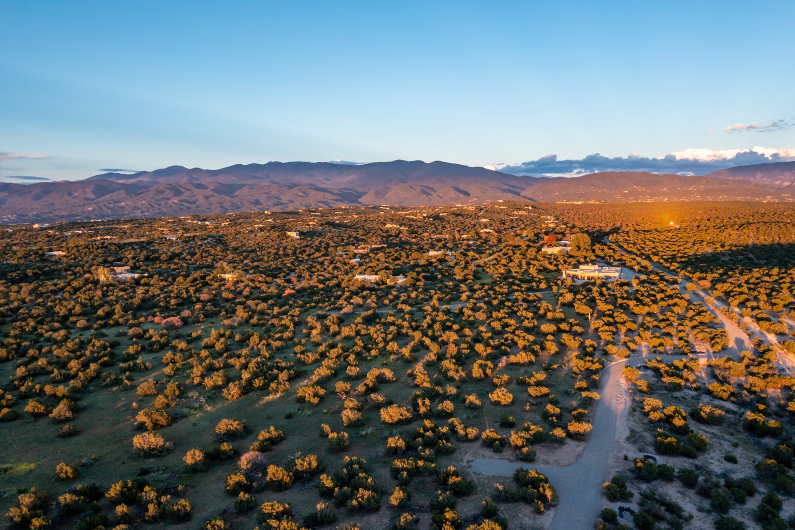 If you want breathtaking sunsets and the magic of starry filled skies, this is your spot. A superb and rare property like this comes on the market once in a blue moon. 18 acres with full, wide sweeping, magnificent views of the entire Sangre De Cristo Range. If that were not enough, also the entire Jemez Range and the Sandia Ortiz Range grace this stunning property. Located in the County down a private drive and feeling a million miles away from the hub-bub, yet only 10 min to the fine foods of Santa Fe. Additionally, you are adjacent to 1500 acres of open space, The La Tierra Trail System. With this property being on the outer banks and less used part of the 25-mile trail system which is perfect for equestrians, mountain biking, hiking or just an evening stroll with the dog. The property has a new gravel road/driveway to building site, shared well installed on neighbor property, natural gas and electric are located on adjacent tract in access easement. This property cannot be subdivided, nor the adjacent properties, thus privacy and wide-open beauty abound.