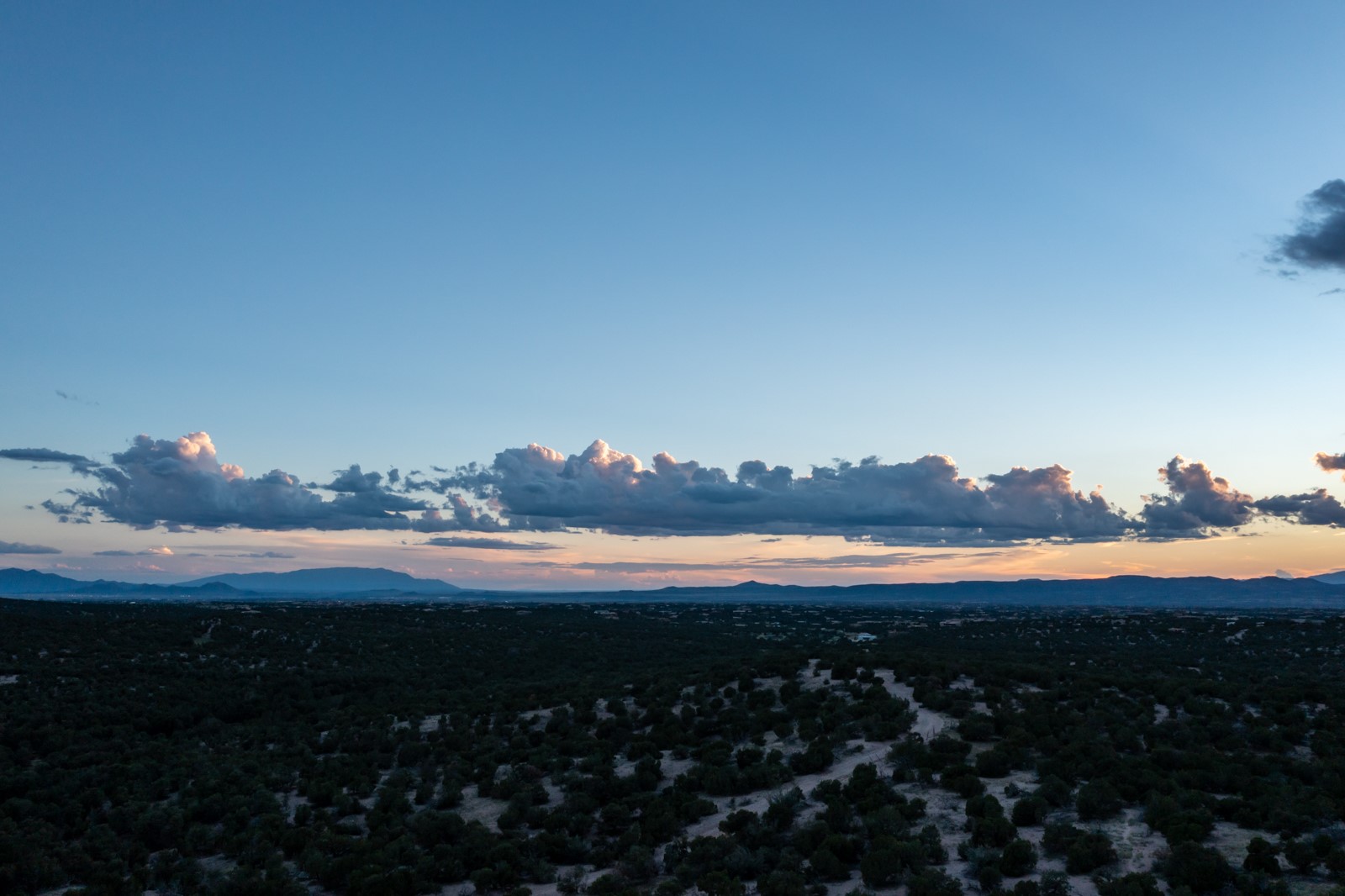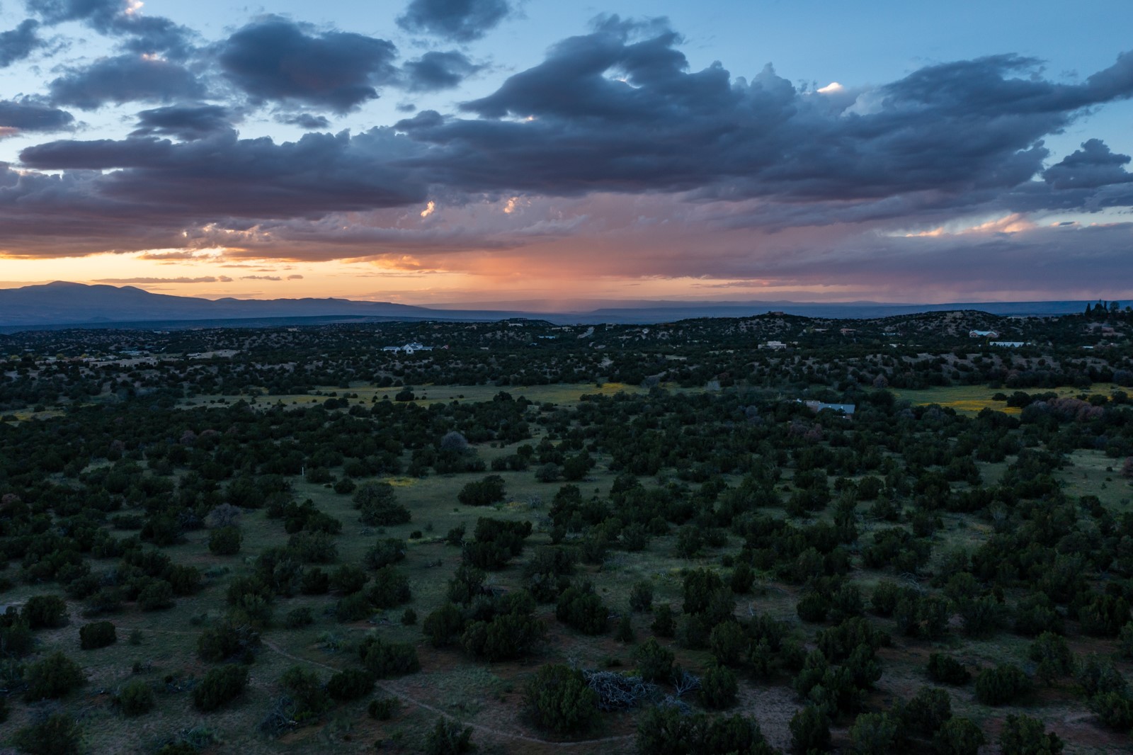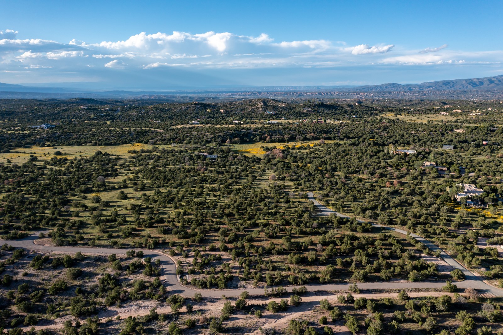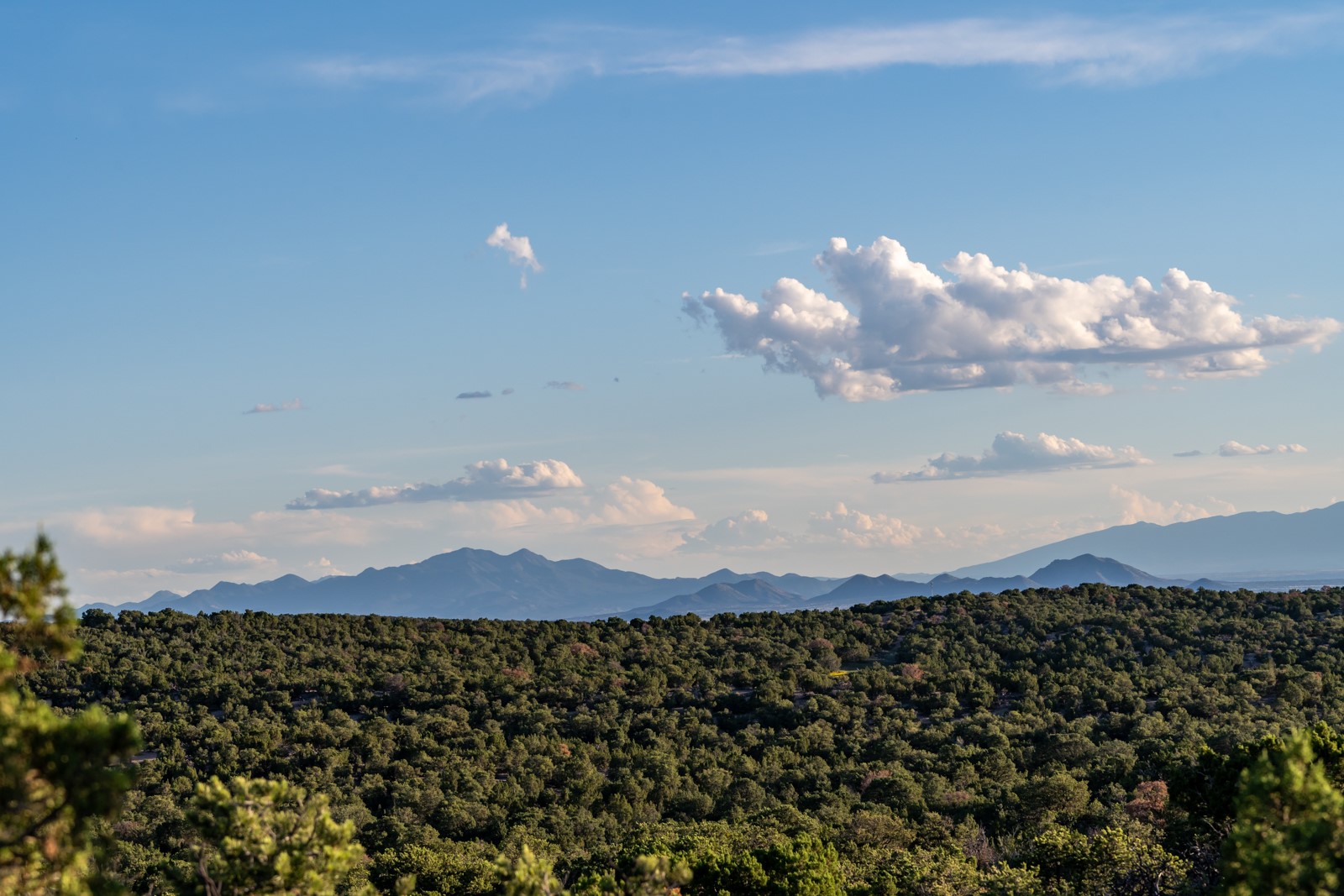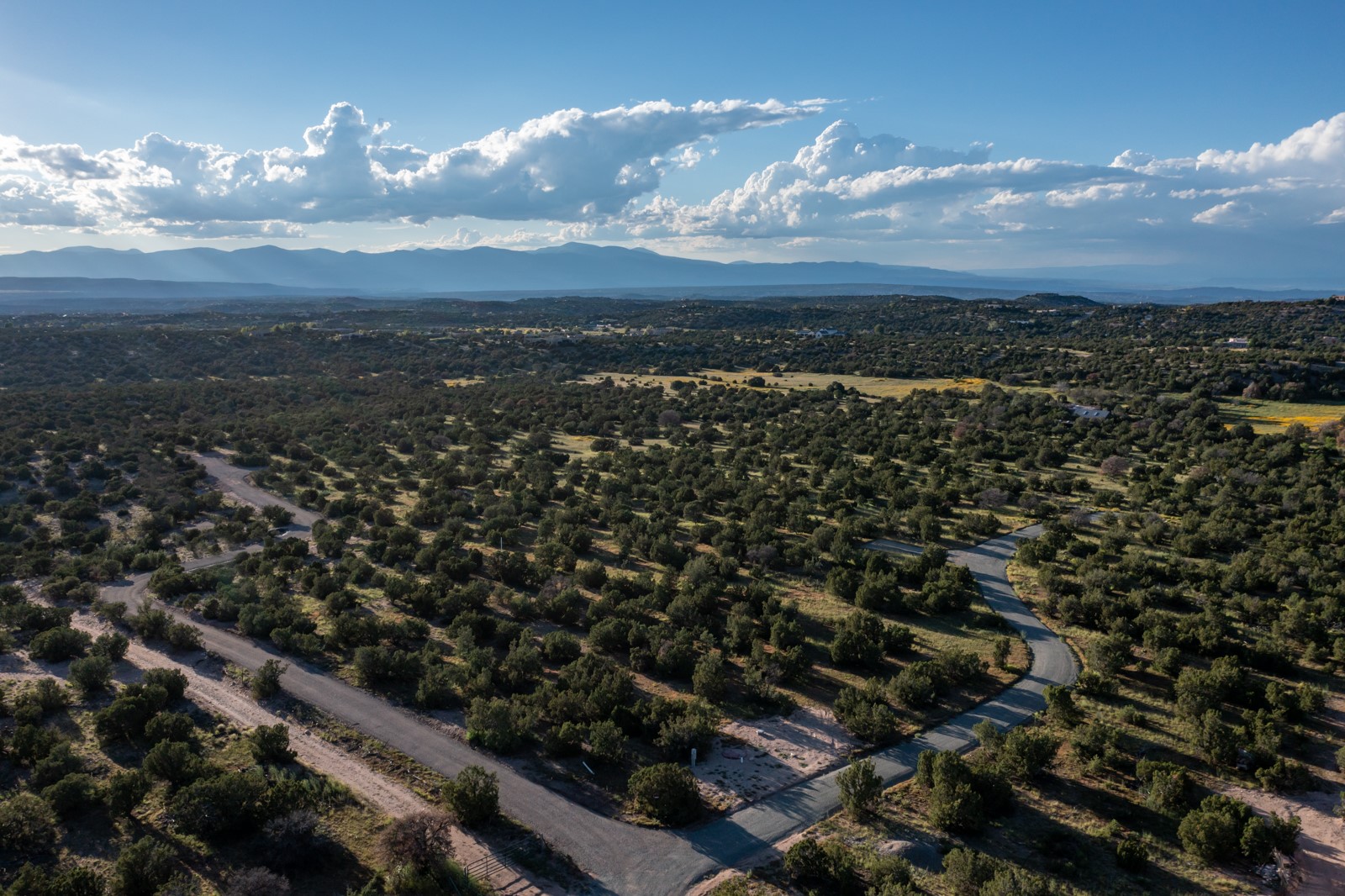If you want breathtaking sunsets and the magic of starry filled skies, this is your spot. A superb and rare property like this comes on the market once in a blue moon. 18 acres with full, wide sweeping, magnificent views of the entire Sangre De Cristo Range. If that were not enough, also the entire Jemez Range and the Sandia Ortiz Range grace this stunning property. Located in the County down a private drive and feeling a million miles away from the hub-bub, yet only 10 min to the fine foods of Santa Fe. Additionally, you are adjacent to 1500 acres of open space, The La Tierra Trail System. With this property being on the outer banks and less used part of the 25-mile trail system which is perfect for equestrians, mountain biking, hiking or just an evening stroll with the dog. The property has a new gravel road/driveway to building site, shared well installed on neighbor property, natural gas and electric are located on adjacent tract in access easement. This property cannot be subdivided, nor the adjacent properties, thus privacy and wide-open beauty abound.