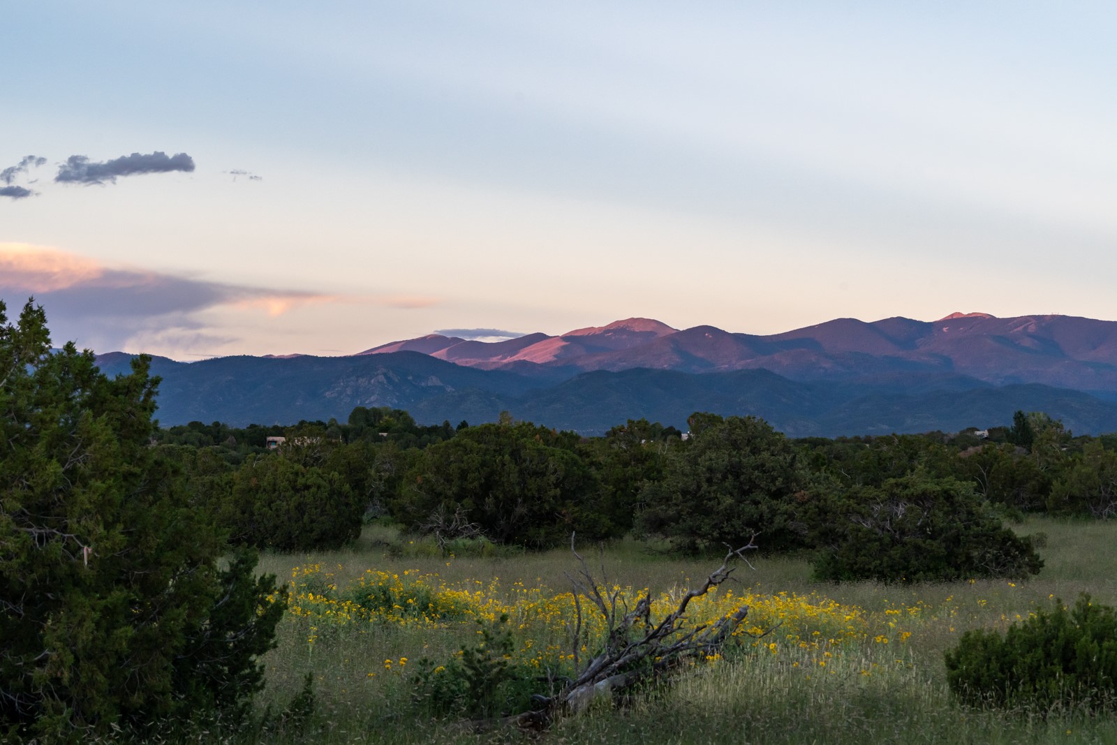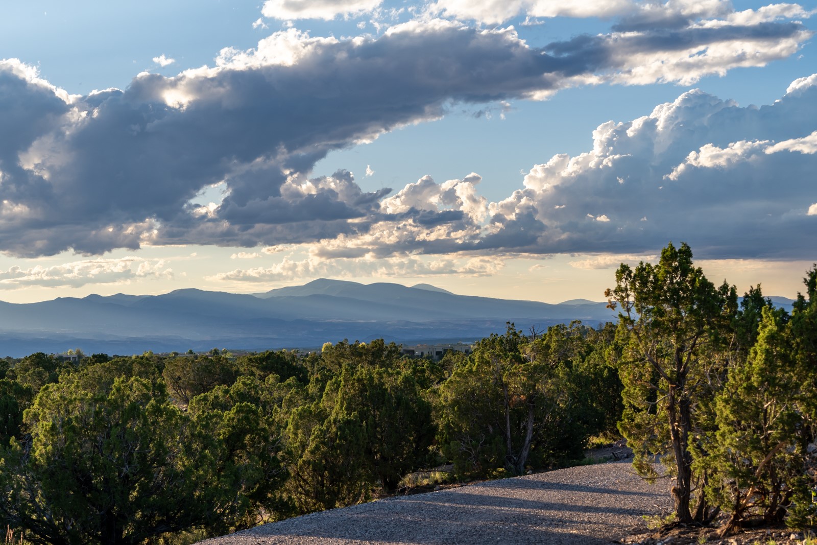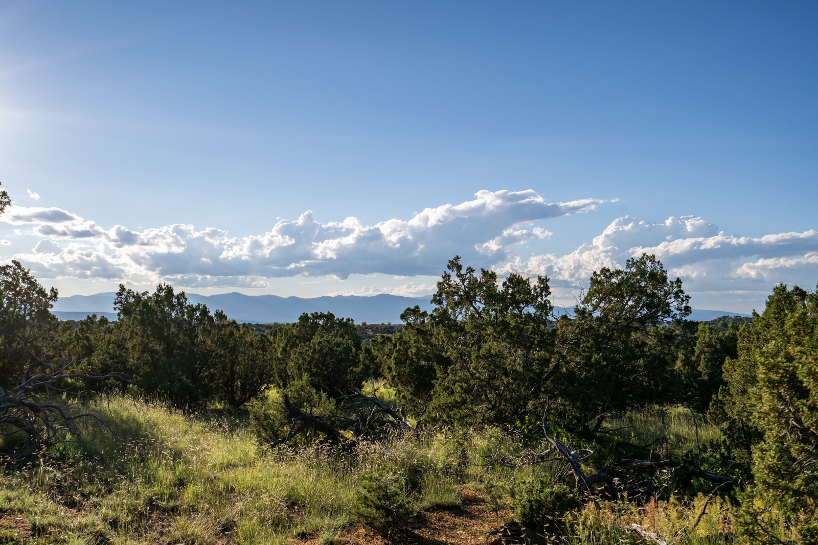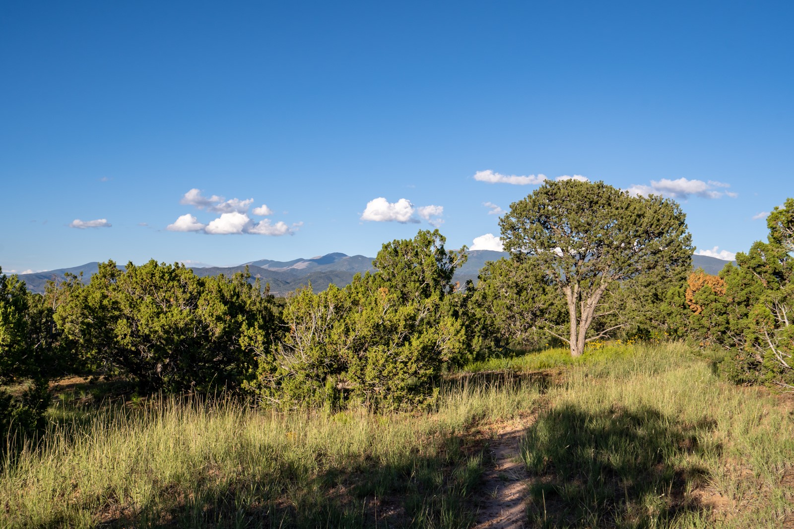 If you want breathtaking sunsets and the magic of starry filled skies, this is your spot. A superb and rare property like this comes on the market once in a blue moon. 18 acres with full, wide sweeping, magnificent views of the entire Sangre De Cristo Range. If that were not enough, also the entire Jemez Range and the Sandia Ortiz Range grace this stunning property. Located in the County down a private drive and feeling a million miles away from the hub-bub, yet only 10 min to the fine foods of Santa Fe. Additionally, you are adjacent to 1500 acres of open space, The La Tierra Trail System. With this property being on the outer banks and less used part of the 25-mile trail system which is perfect for equestrians, mountain biking, hiking or just an evening stroll with the dog. The property has a new gravel road/driveway to building site, shared well installed on neighbor property, natural gas and electric are located on adjacent tract in access easement. This property cannot be subdivided, nor the adjacent properties, thus privacy and wide-open beauty abound.