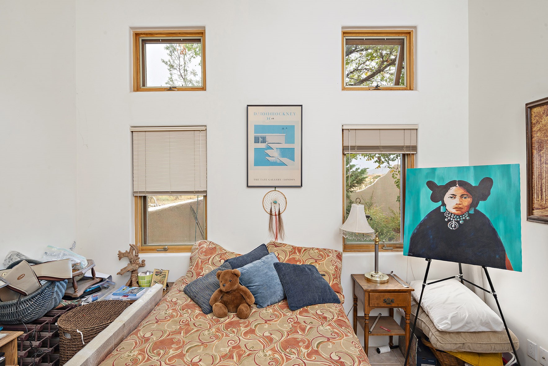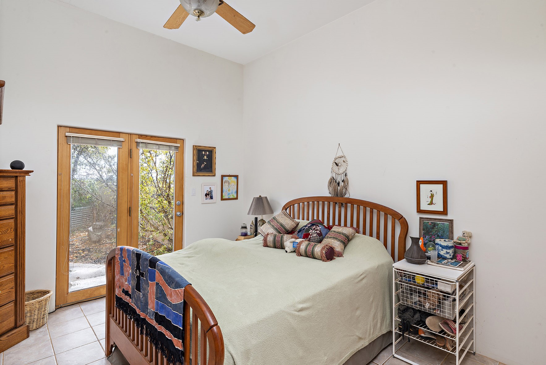 You see the charm of this Eldorado home as soon as you drive up to it. Not one, but two courtyards for beautifully landscaped and private outdoor living space. Enter the house from the front courtyard and you are met with Santa Fe style decorative touches, including vigas and nichos. Everyone remarks on the spacious high ceilings, which are throughout the house. A gas fireplace warms the living room, which opens into the roomy dining area, which in turn leads to the back courtyard (hot tub conveys). The kitchen comes with stainless appliances, including a 5-burner gas stove and hood vent, and lots of counter space and cabinets. The common living areas separate the primary suite from the two guest bedrooms. The primary suite consist of a bedroom that opens onto the back courtyard, spacious walk-in closet, and bathroom with two sinks, separate shower, separate toilet stall, and garden tub. On this end of the house, a large laundry room has extra pantry space and comes with washer and dryer. It leads out to the attached 2-car garage, with insulated walls, 3 skylights, and a huge storeroom. There is additional parking in the circle driveway. Open space around the house reveals the beautiful mountain views. Great location on Avenida Eldorado with easy access to US 285 into Santa Fe and to Eldorado's shopping at the Agora and La Tienda. Right next to Eldorado's extensive walking path system, so you don't need to join the gym! House comes with a 14-month home warranty, start 3/6/23