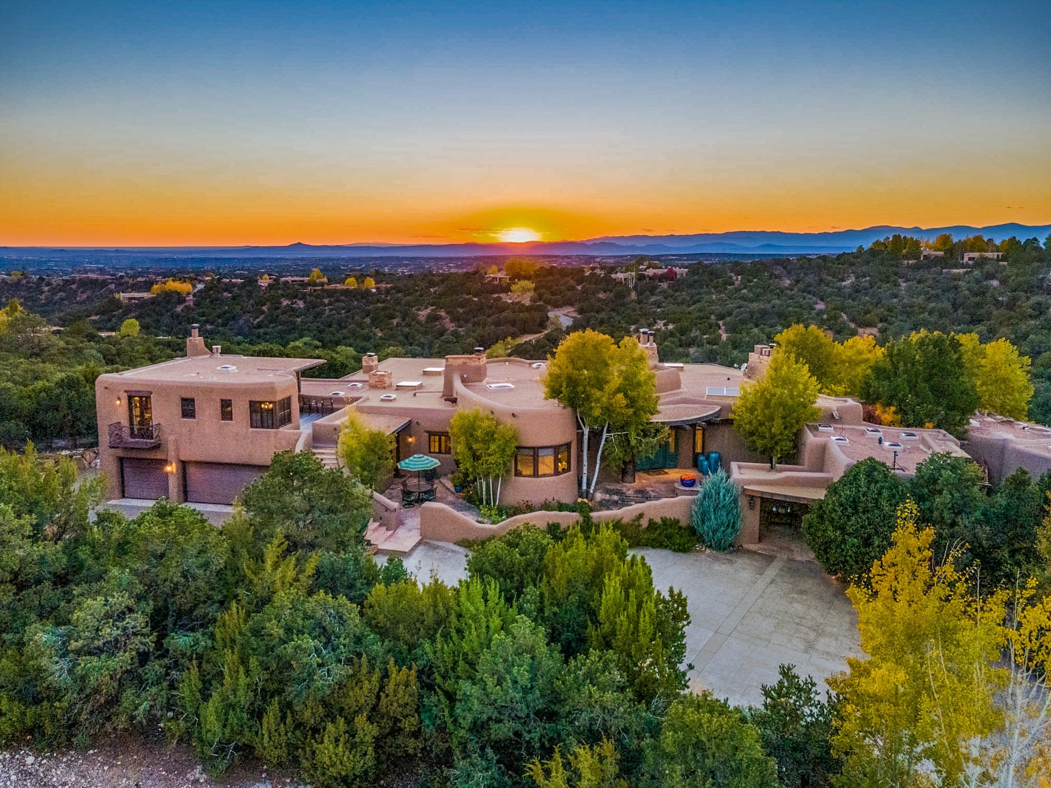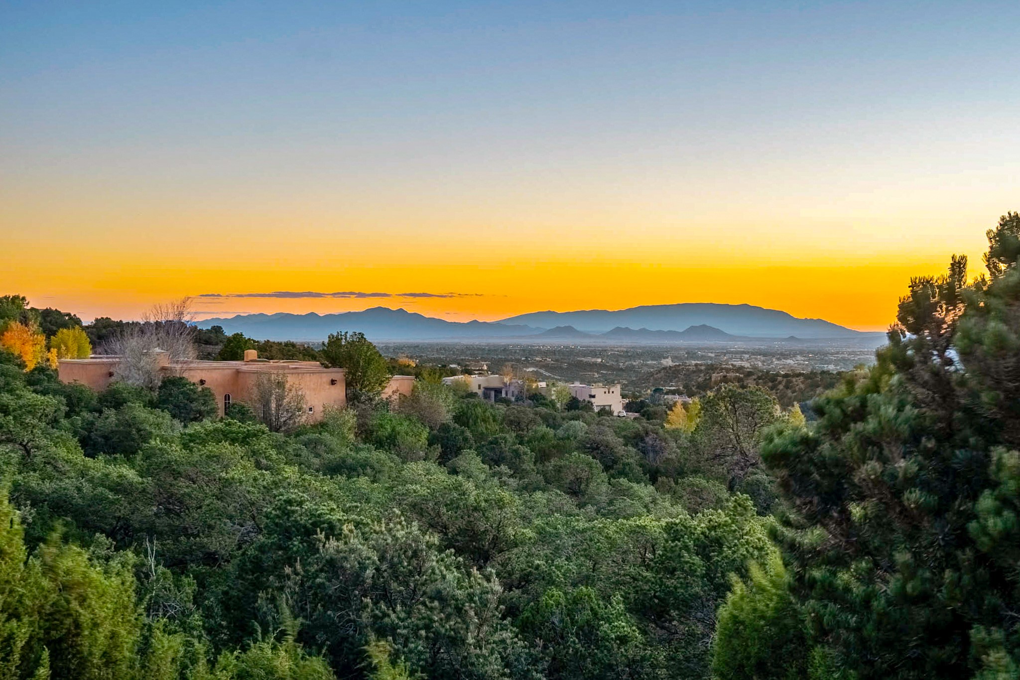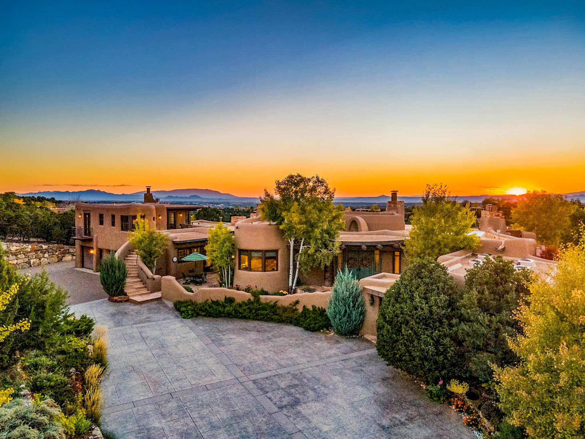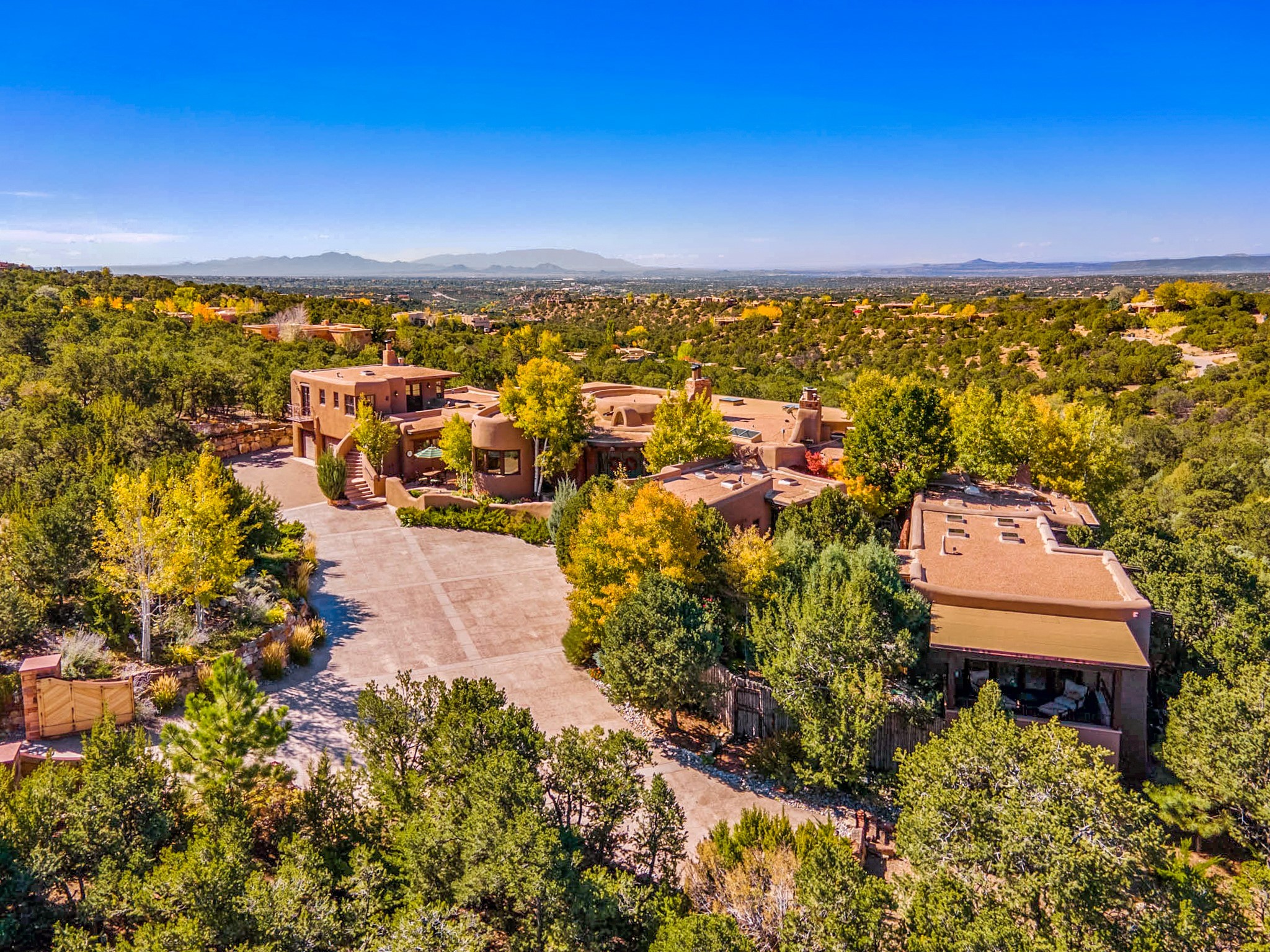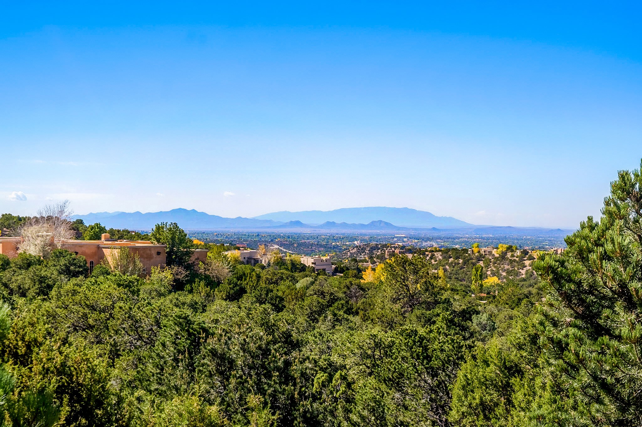 Perched above the city on Sierra Del Norte and minutes to the Dale Ball trail system, this spectacular main house and enchanting guest house are sited on 1.68 acres and provide panoramic views from every angle. Completely renovated in 2014 with 2 offices, an impressive lower-level media room, 2 separate fenced-in areas for pets, and a deep sunset-facing portal measuring over 2400 square feet that would be the envy of any luxury resort, this elegant property has a unique combination of sophistication and warmth. The remodeled kitchen has a large granite island for in-kitchen dining, extensive countertops, and a picture-perfect view of both the Sangre De Cristo mountains and the ski basin. Connected to the kitchen is every caterer's dream, a butler's kitchen which provides an additional area for prep, 2 Subzero refrigerator drawers, storage, and an extra dishwasher... perfect for entertaining. The owner's wing consists of a large office with a private portal, a den, and a closet that would make Imelda Marcos weep! The west side of the home features the luxurious portal complete with a Kalamazoo grill, a grill master's dream, commercial ceiling mounted heaters, ceiling fans, automated screens, and breathtaking city views and stunning sunsets nightly. The 620 square foot guest house is located above the 3-car garage. Surrounding the home are lovely garden areas that provide colorful vignettes from nearly every window. Within 10 minutes of The Plaza, great proximity to trails and the ski basin, this property is an exceptional value and a unique combination of luxury and livability.