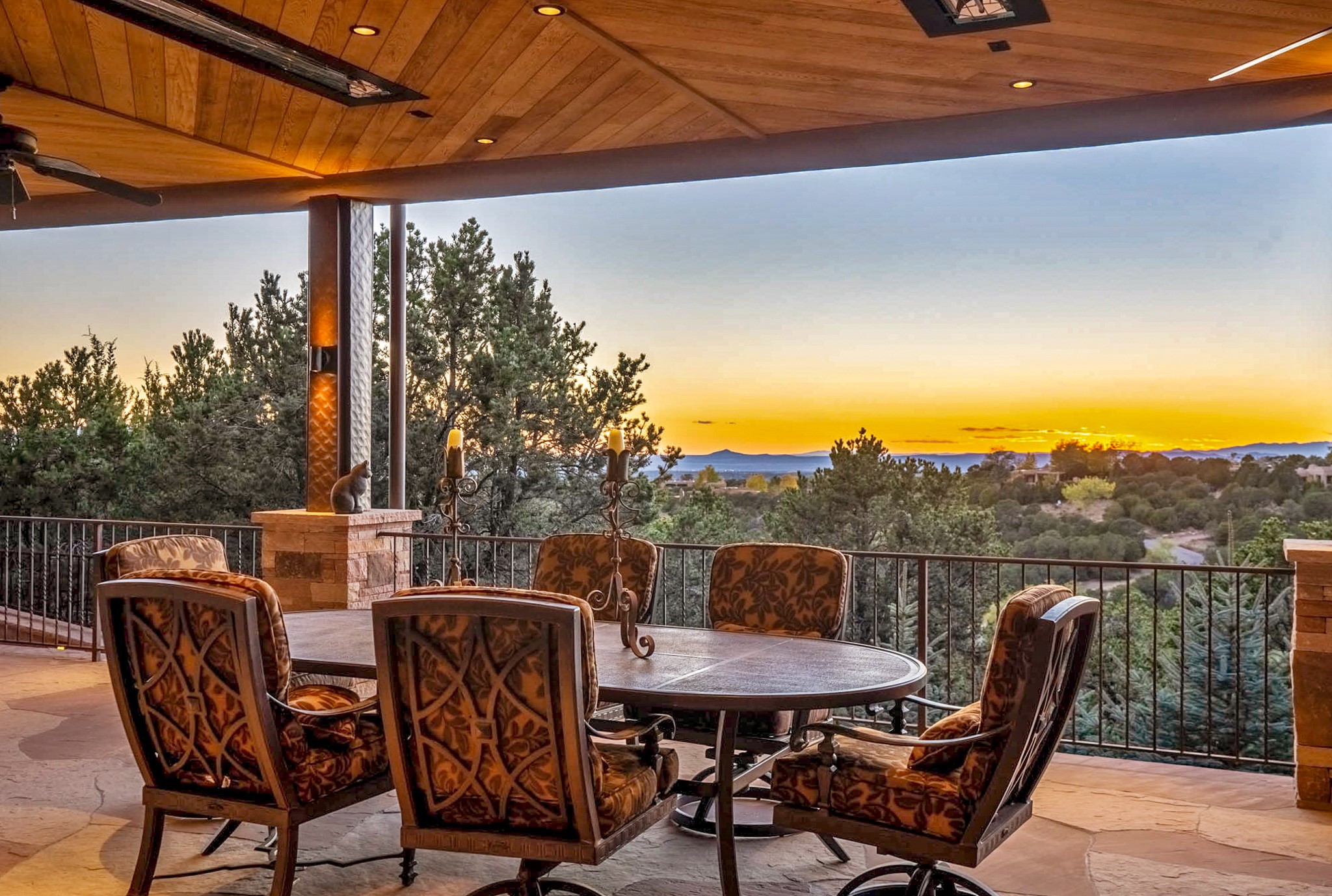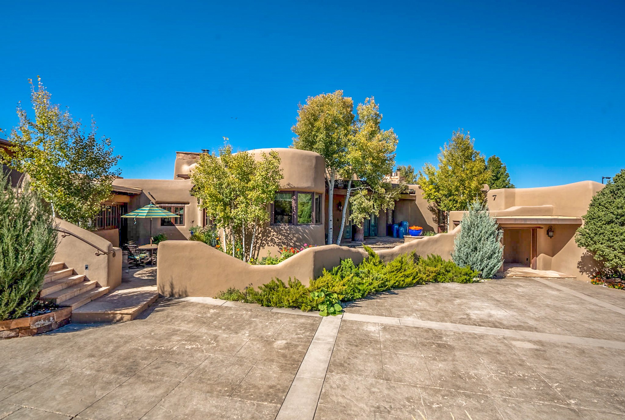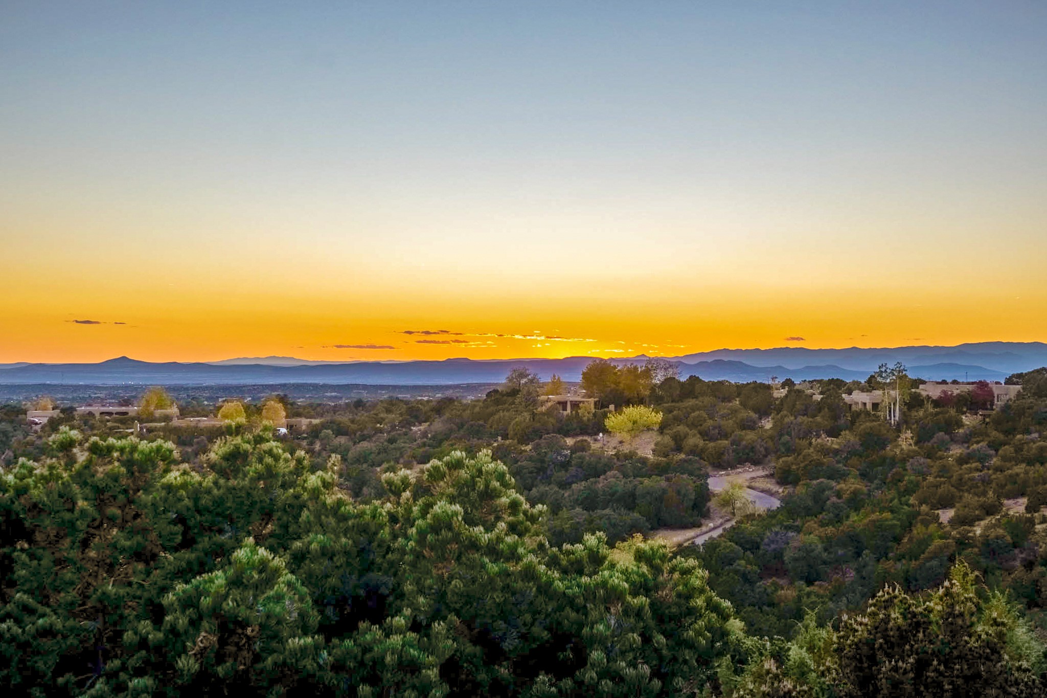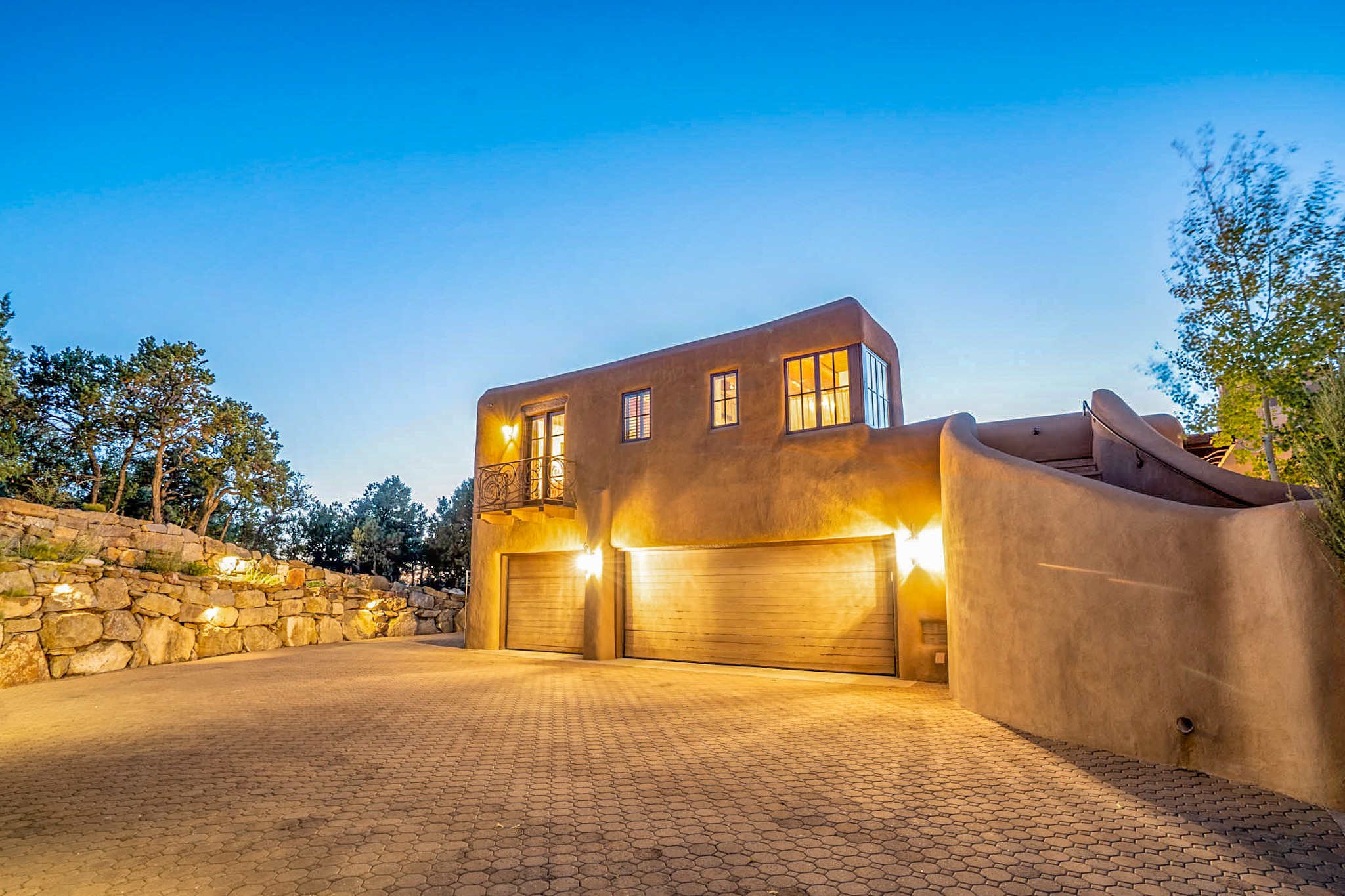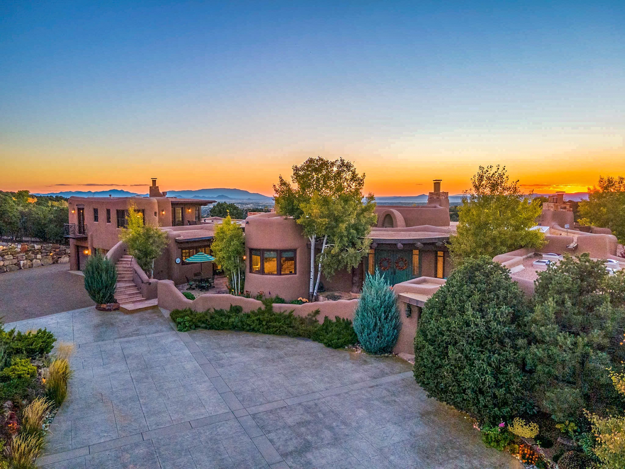Perched above the city on Sierra Del Norte and minutes to the Dale Ball trail system, this spectacular main house and enchanting guest house are sited on 1.68 acres and provide panoramic views from every angle. Completely renovated in 2014 with 2 offices, an impressive lower-level media room, 2 separate fenced-in areas for pets, and a deep sunset-facing portal measuring over 2400 square feet that would be the envy of any luxury resort, this elegant property has a unique combination of sophistication and warmth. The remodeled kitchen has a large granite island for in-kitchen dining, extensive countertops, and a picture-perfect view of both the Sangre De Cristo mountains and the ski basin. Connected to the kitchen is every caterer's dream, a butler's kitchen which provides an additional area for prep, 2 Subzero refrigerator drawers, storage, and an extra dishwasher... perfect for entertaining. The owner's wing consists of a large office with a private portal, a den, and a closet that would make Imelda Marcos weep! The west side of the home features the luxurious portal complete with a Kalamazoo grill, a grill master's dream, commercial ceiling mounted heaters, ceiling fans, automated screens, and breathtaking city views and stunning sunsets nightly. The 620 square foot guest house is located above the 3-car garage. Surrounding the home are lovely garden areas that provide colorful vignettes from nearly every window. Within 10 minutes of The Plaza, great proximity to trails and the ski basin, this property is an exceptional value and a unique combination of luxury and livability.