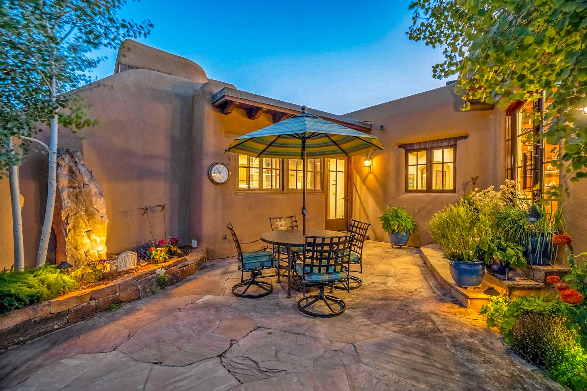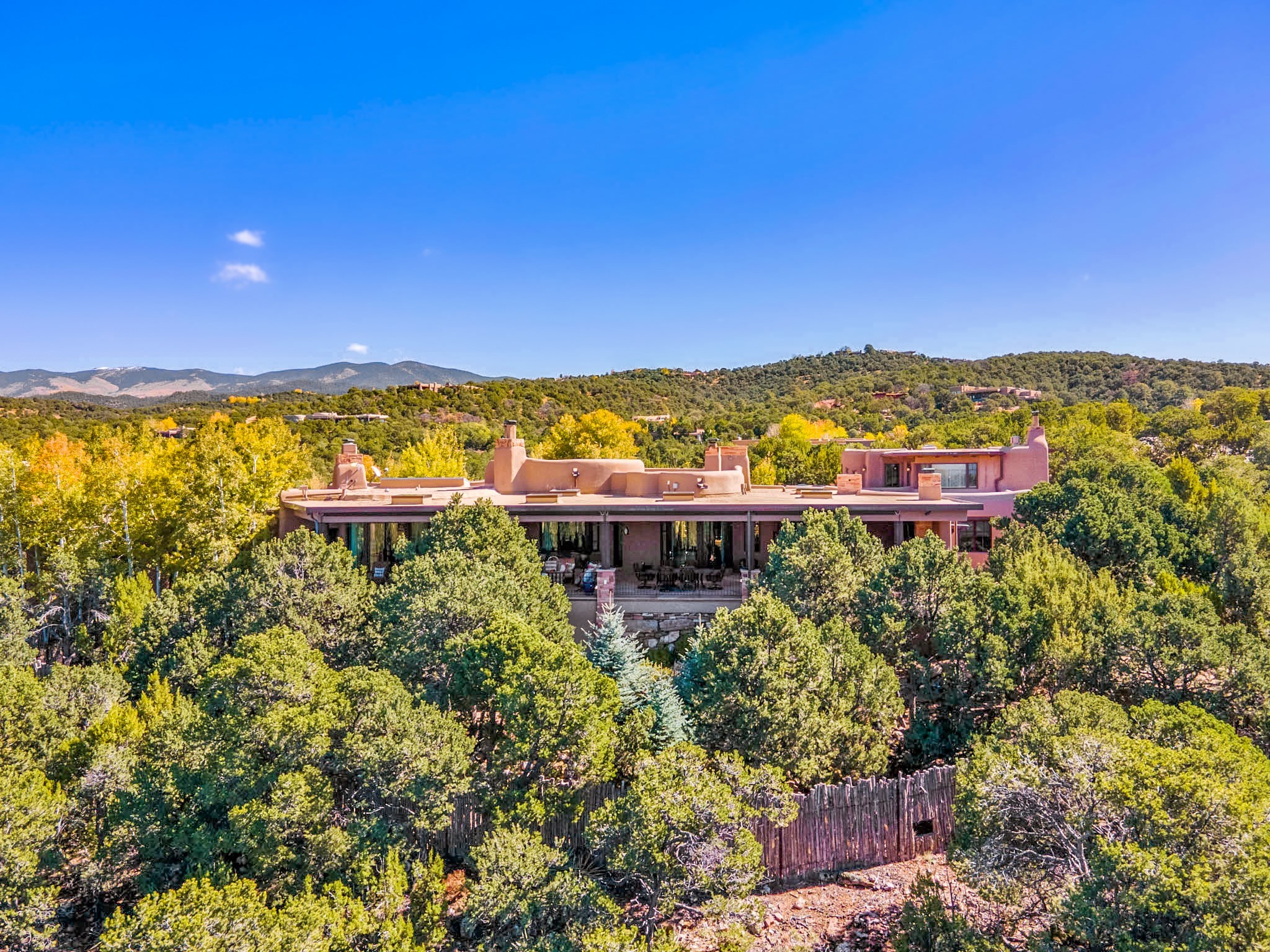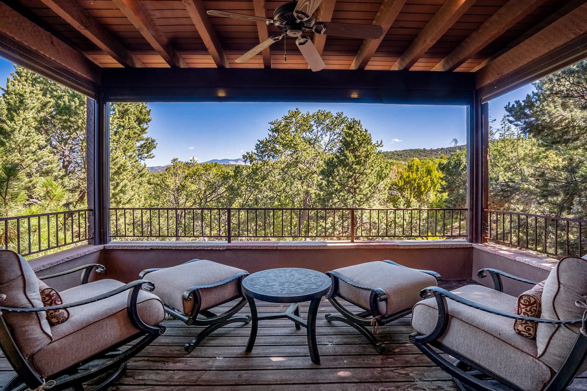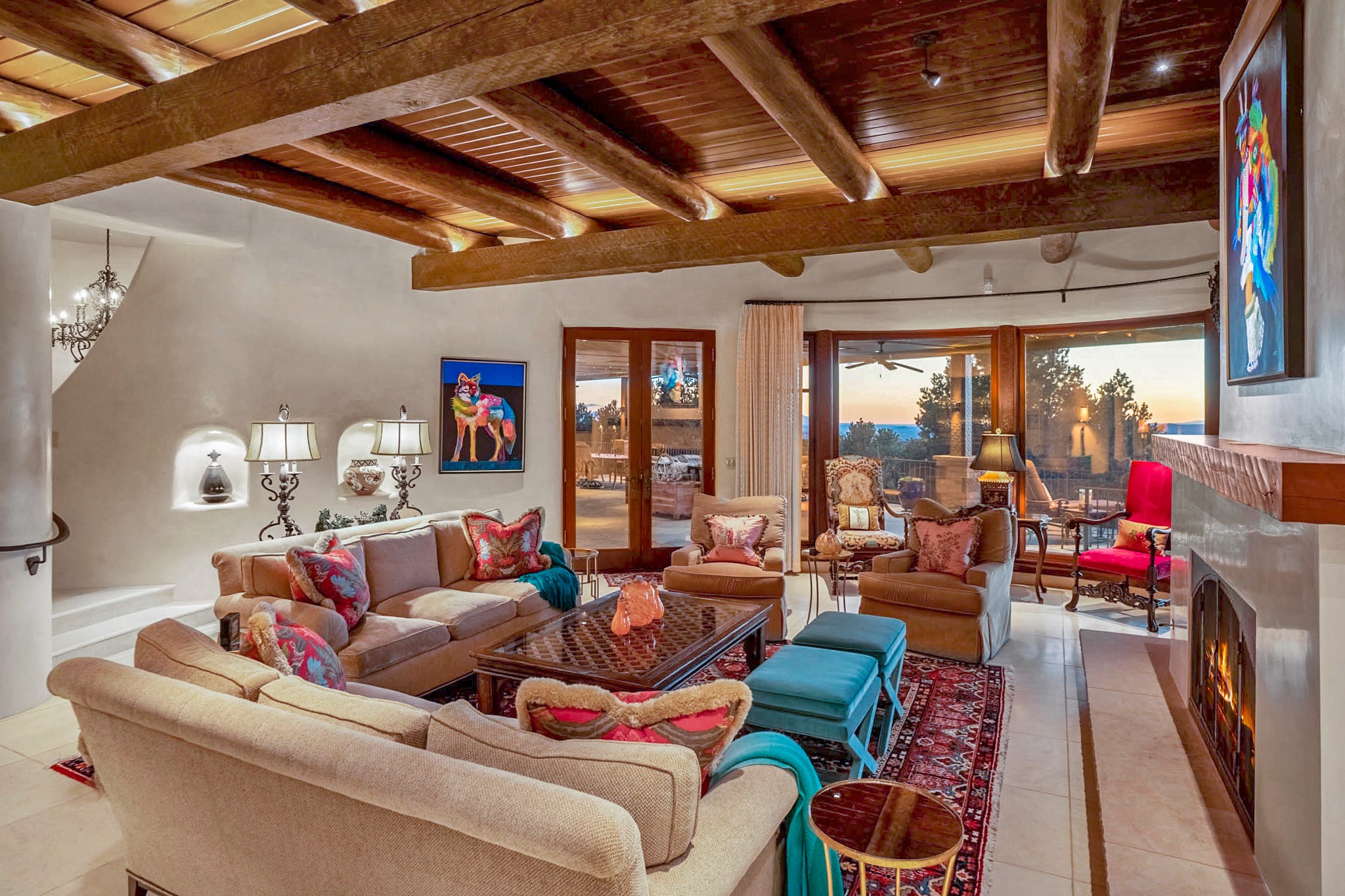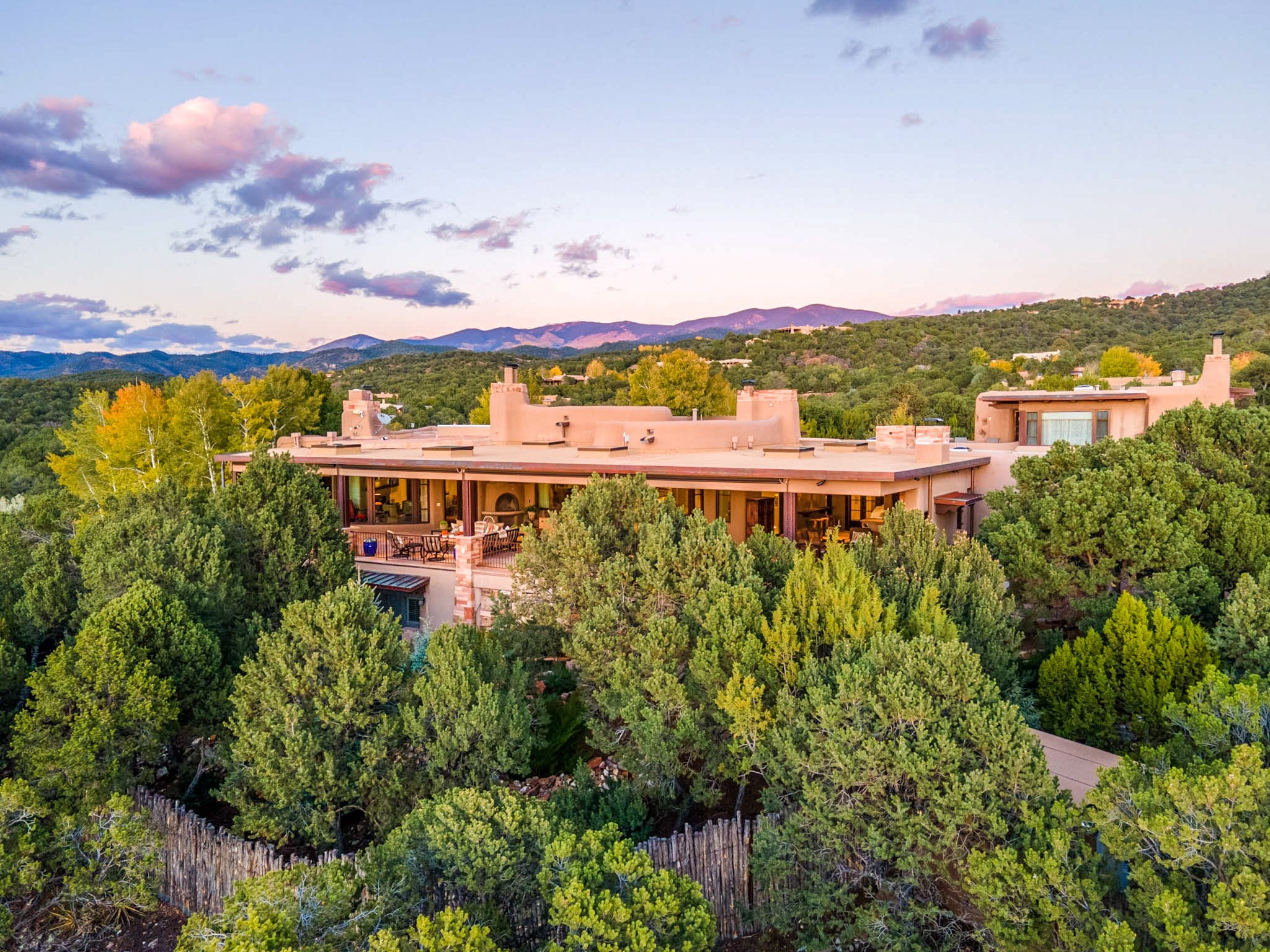 Perched above the city on Sierra Del Norte and minutes to the Dale Ball trail system, this spectacular main house and enchanting guest house are sited on 1.68 acres and provide panoramic views from every angle. Completely renovated in 2014 with 2 offices, an impressive lower-level media room, 2 separate fenced-in areas for pets, and a deep sunset-facing portal measuring over 2400 square feet that would be the envy of any luxury resort, this elegant property has a unique combination of sophistication and warmth. The remodeled kitchen has a large granite island for in-kitchen dining, extensive countertops, and a picture-perfect view of both the Sangre De Cristo mountains and the ski basin. Connected to the kitchen is every caterer's dream, a butler's kitchen which provides an additional area for prep, 2 Subzero refrigerator drawers, storage, and an extra dishwasher... perfect for entertaining. The owner's wing consists of a large office with a private portal, a den, and a closet that would make Imelda Marcos weep! The west side of the home features the luxurious portal complete with a Kalamazoo grill, a grill master's dream, commercial ceiling mounted heaters, ceiling fans, automated screens, and breathtaking city views and stunning sunsets nightly. The 620 square foot guest house is located above the 3-car garage. Surrounding the home are lovely garden areas that provide colorful vignettes from nearly every window. Within 10 minutes of The Plaza, great proximity to trails and the ski basin, this property is an exceptional value and a unique combination of luxury and livability.