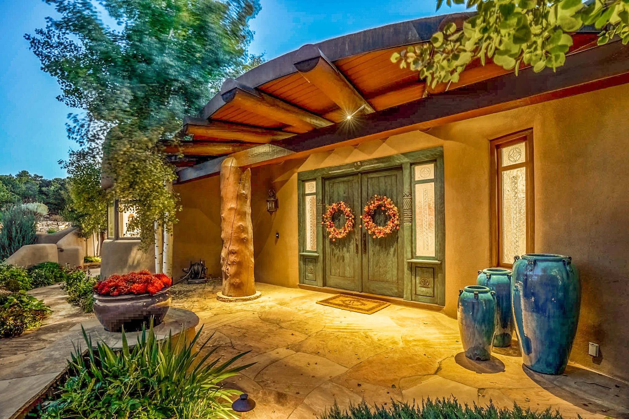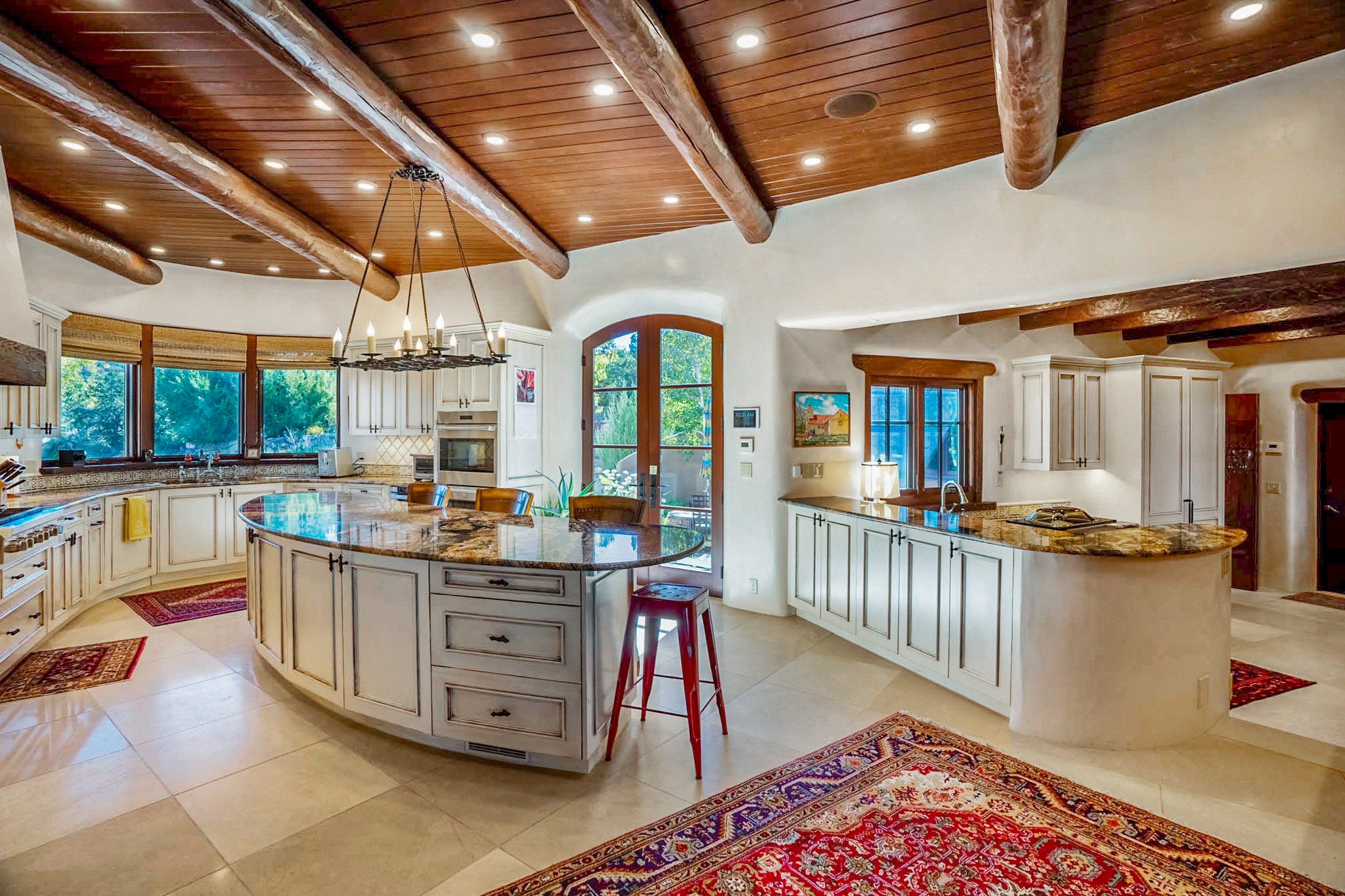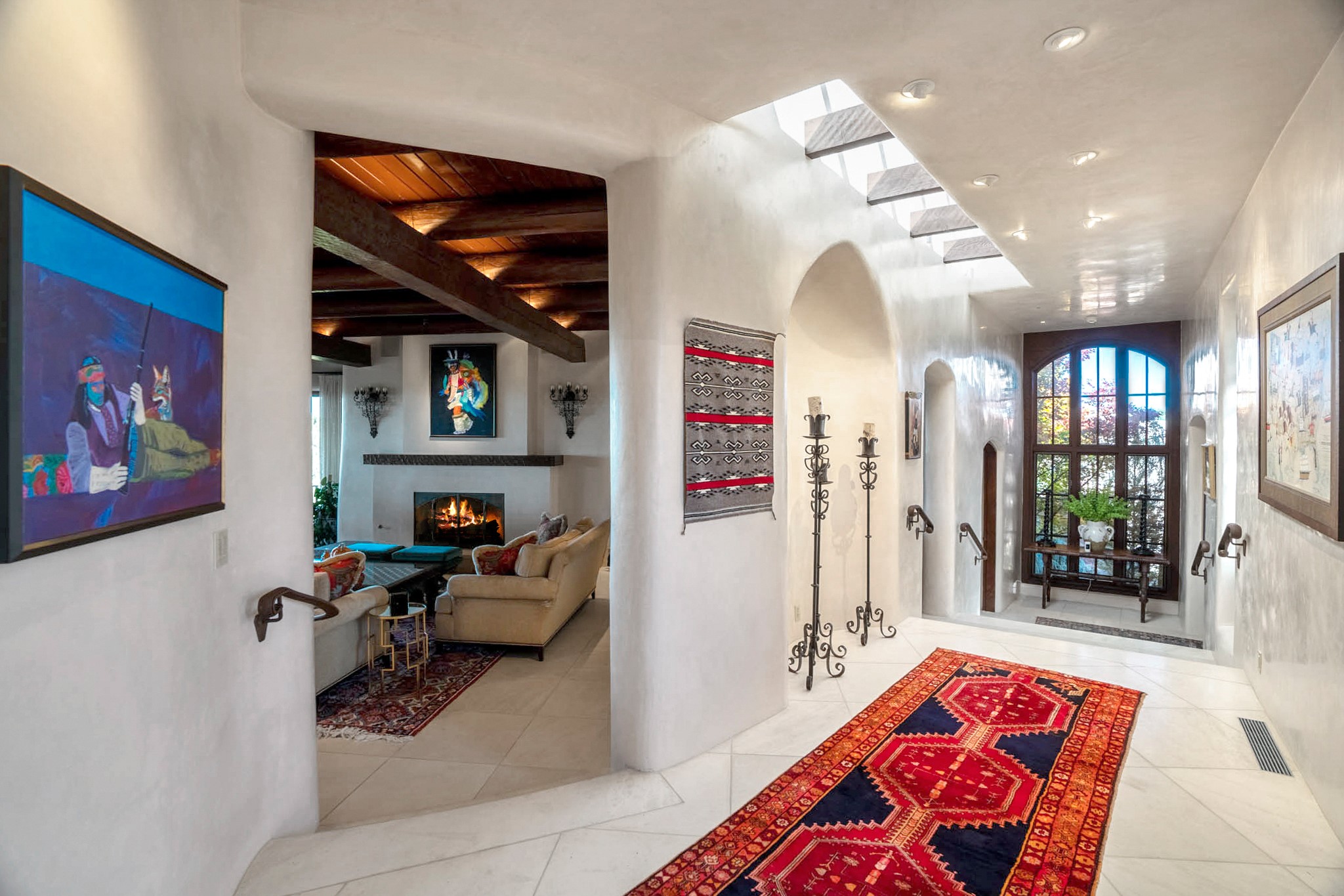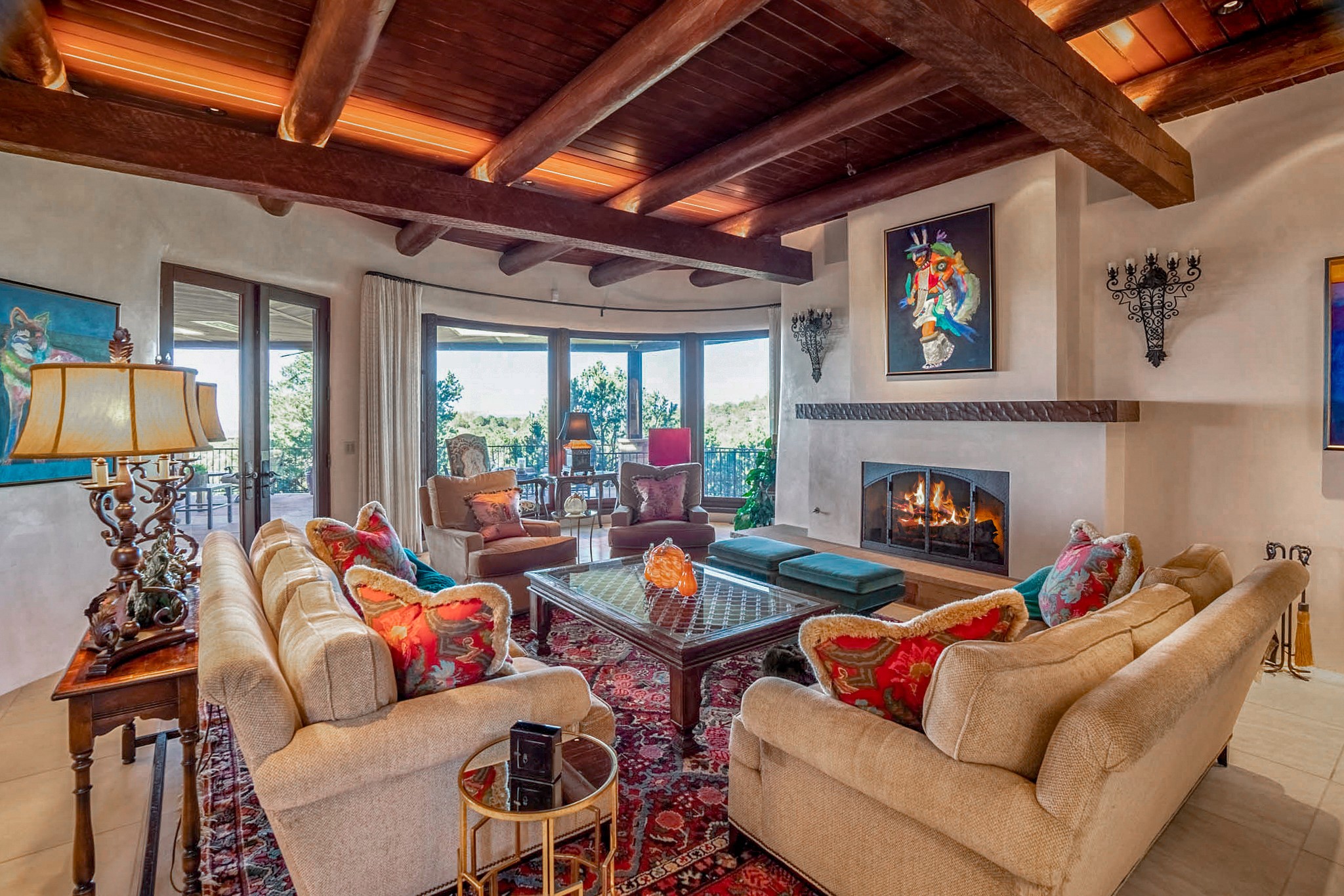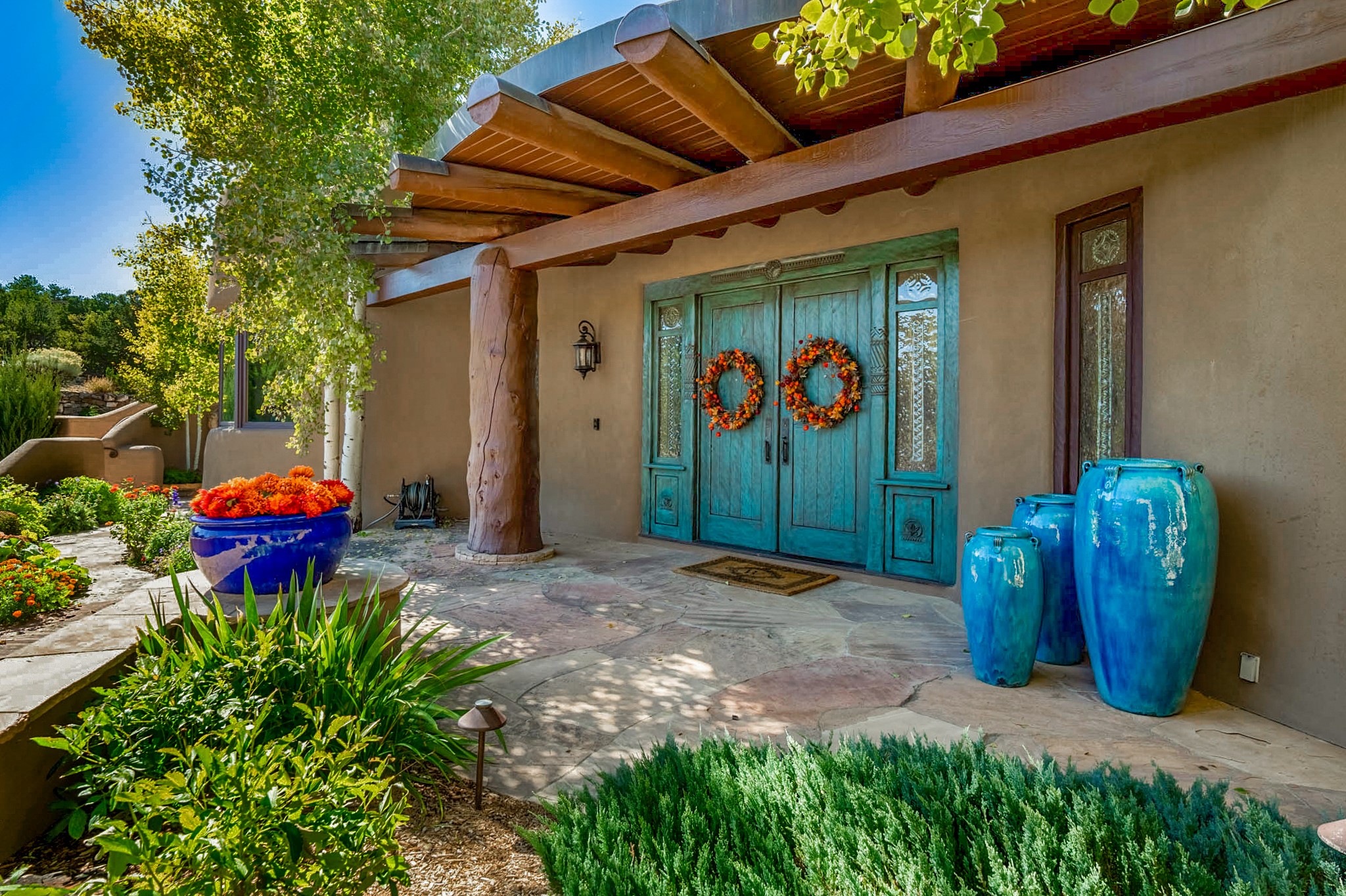 Perched above the city on Sierra Del Norte and minutes to the Dale Ball trail system, this spectacular main house and enchanting guest house are sited on 1.68 acres and provide panoramic views from every angle. Completely renovated in 2014 with 2 offices, an impressive lower-level media room, 2 separate fenced-in areas for pets, and a deep sunset-facing portal measuring over 2400 square feet that would be the envy of any luxury resort, this elegant property has a unique combination of sophistication and warmth. The remodeled kitchen has a large granite island for in-kitchen dining, extensive countertops, and a picture-perfect view of both the Sangre De Cristo mountains and the ski basin. Connected to the kitchen is every caterer's dream, a butler's kitchen which provides an additional area for prep, 2 Subzero refrigerator drawers, storage, and an extra dishwasher... perfect for entertaining. The owner's wing consists of a large office with a private portal, a den, and a closet that would make Imelda Marcos weep! The west side of the home features the luxurious portal complete with a Kalamazoo grill, a grill master's dream, commercial ceiling mounted heaters, ceiling fans, automated screens, and breathtaking city views and stunning sunsets nightly. The 620 square foot guest house is located above the 3-car garage. Surrounding the home are lovely garden areas that provide colorful vignettes from nearly every window. Within 10 minutes of The Plaza, great proximity to trails and the ski basin, this property is an exceptional value and a unique combination of luxury and livability.