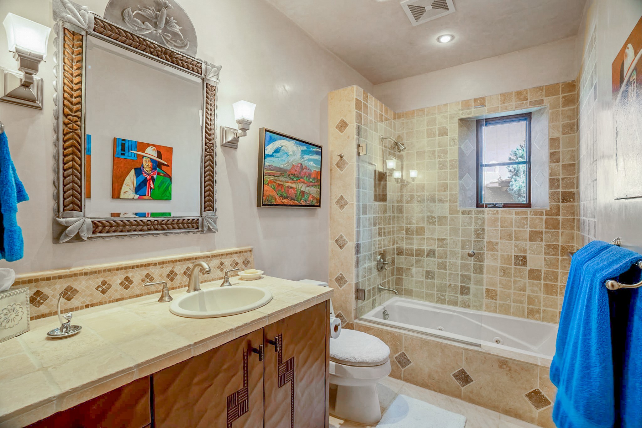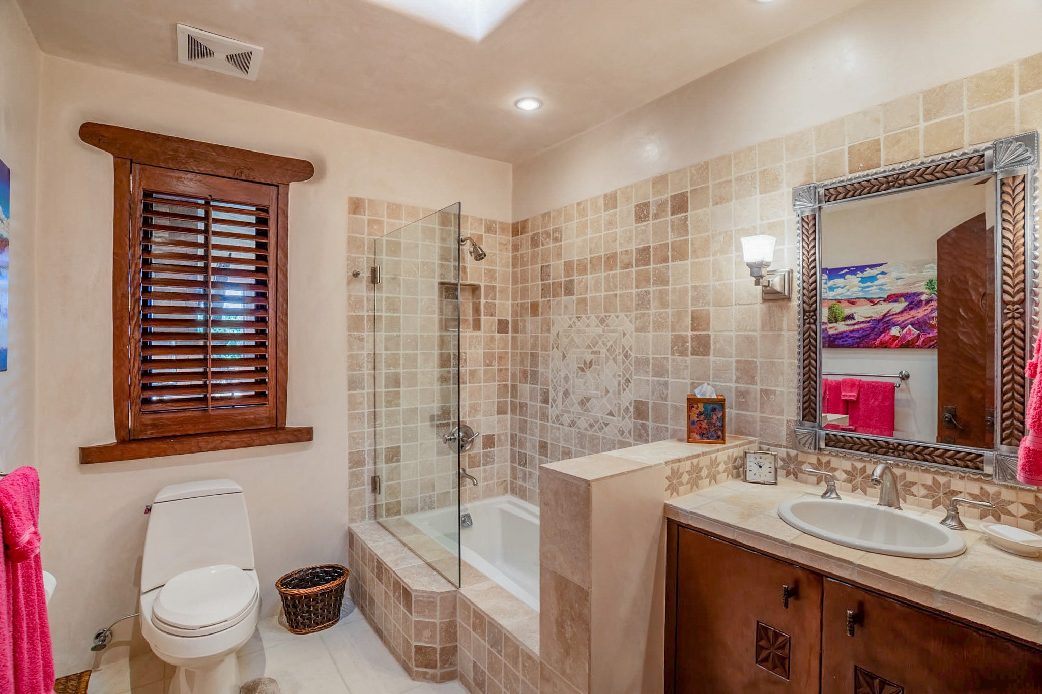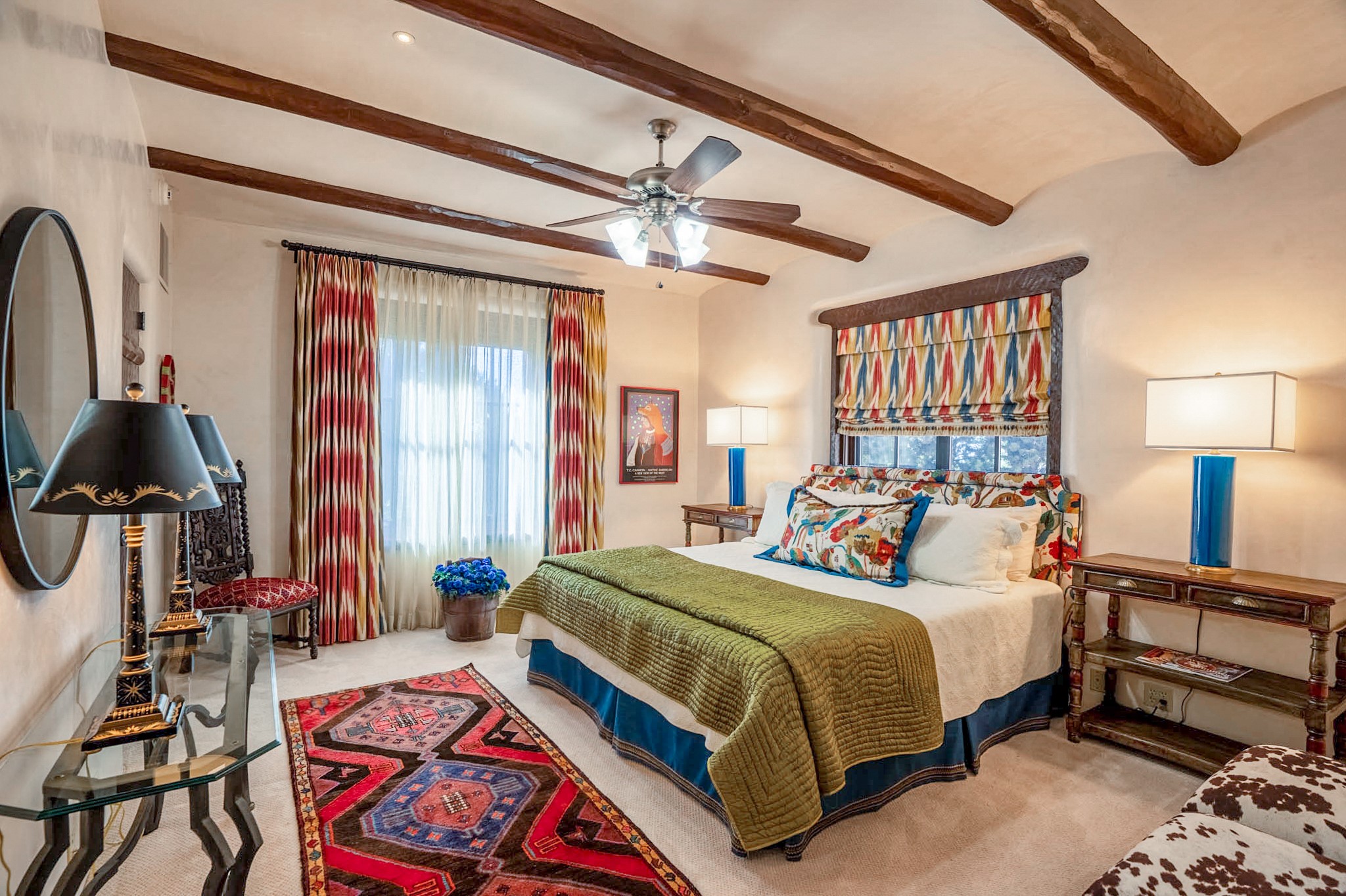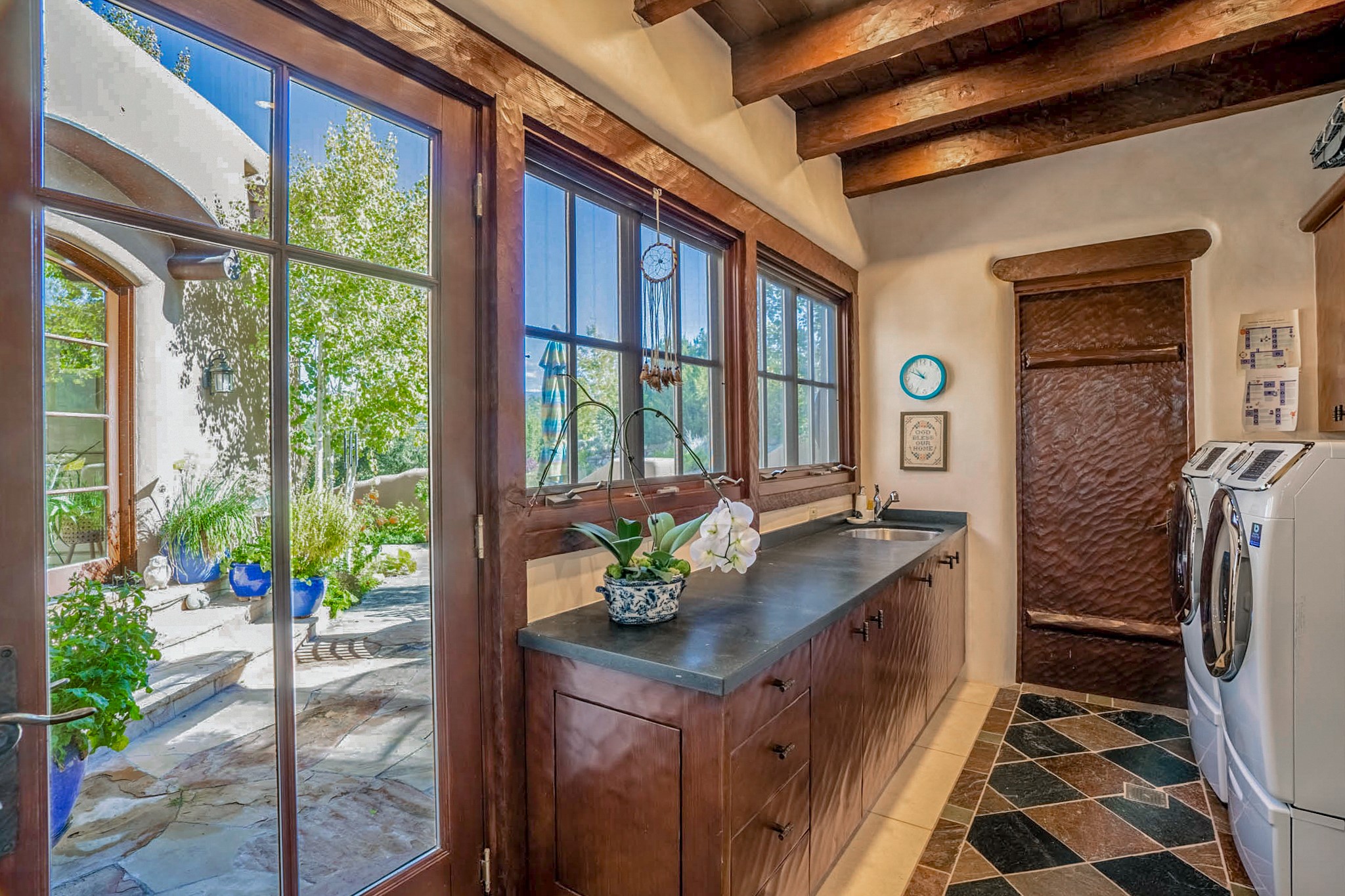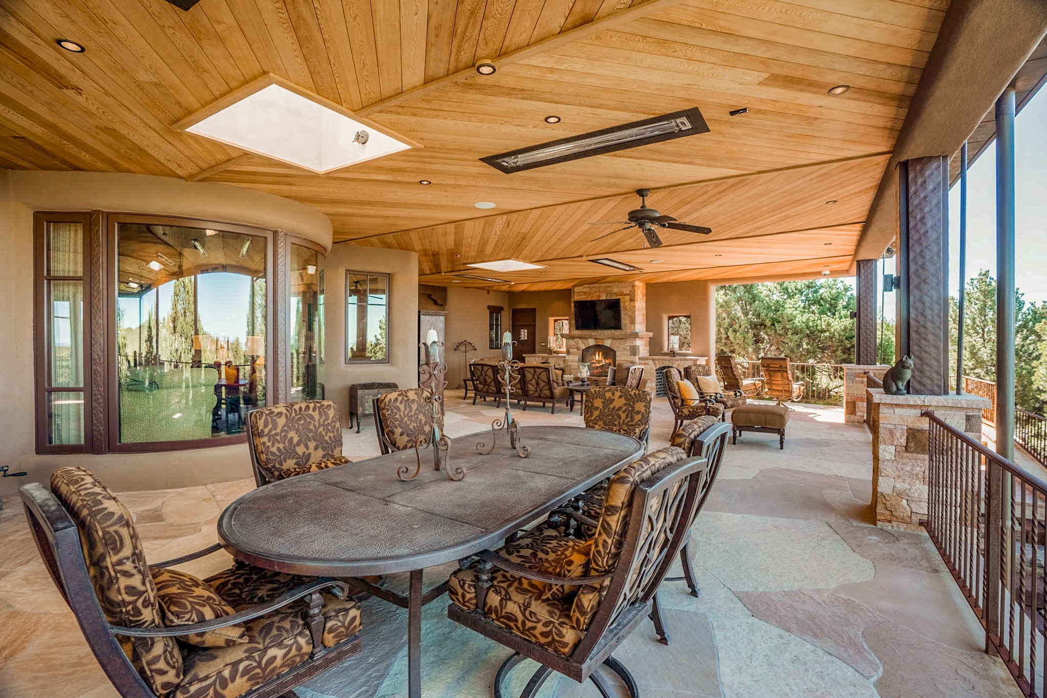 Perched above the city on Sierra Del Norte and minutes to the Dale Ball trail system, this spectacular main house and enchanting guest house are sited on 1.68 acres and provide panoramic views from every angle. Completely renovated in 2014 with 2 offices, an impressive lower-level media room, 2 separate fenced-in areas for pets, and a deep sunset-facing portal measuring over 2400 square feet that would be the envy of any luxury resort, this elegant property has a unique combination of sophistication and warmth. The remodeled kitchen has a large granite island for in-kitchen dining, extensive countertops, and a picture-perfect view of both the Sangre De Cristo mountains and the ski basin. Connected to the kitchen is every caterer's dream, a butler's kitchen which provides an additional area for prep, 2 Subzero refrigerator drawers, storage, and an extra dishwasher... perfect for entertaining. The owner's wing consists of a large office with a private portal, a den, and a closet that would make Imelda Marcos weep! The west side of the home features the luxurious portal complete with a Kalamazoo grill, a grill master's dream, commercial ceiling mounted heaters, ceiling fans, automated screens, and breathtaking city views and stunning sunsets nightly. The 620 square foot guest house is located above the 3-car garage. Surrounding the home are lovely garden areas that provide colorful vignettes from nearly every window. Within 10 minutes of The Plaza, great proximity to trails and the ski basin, this property is an exceptional value and a unique combination of luxury and livability.