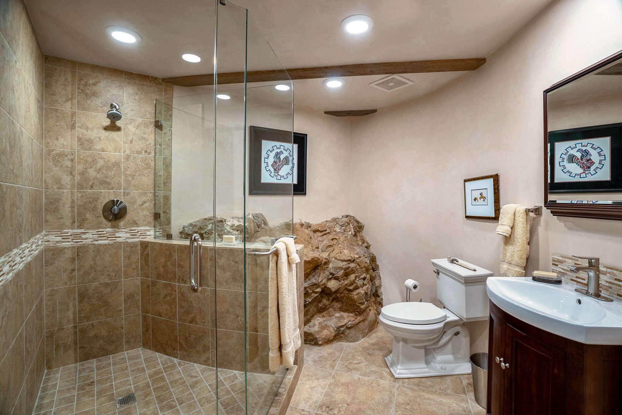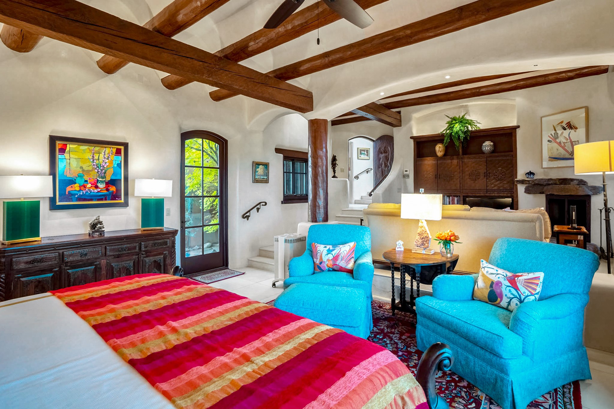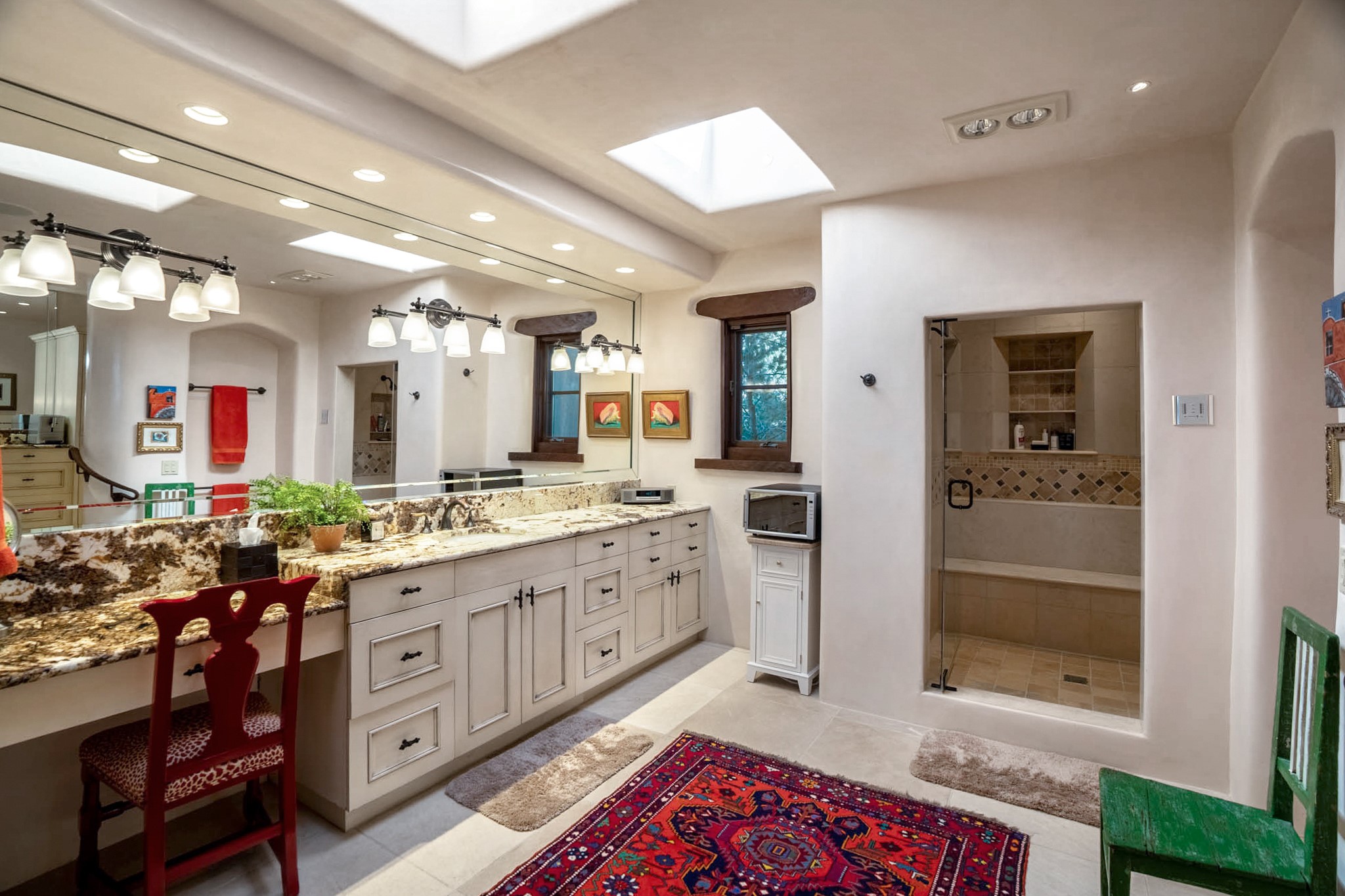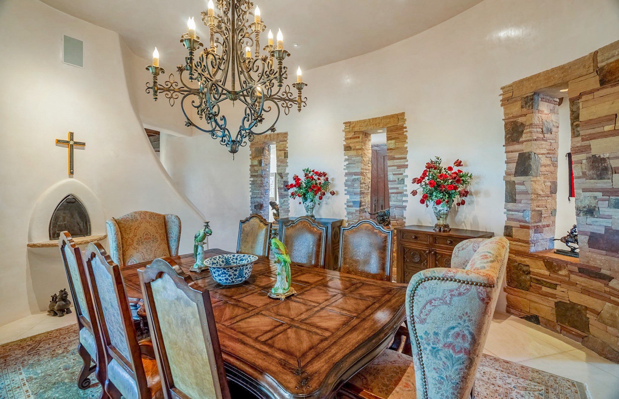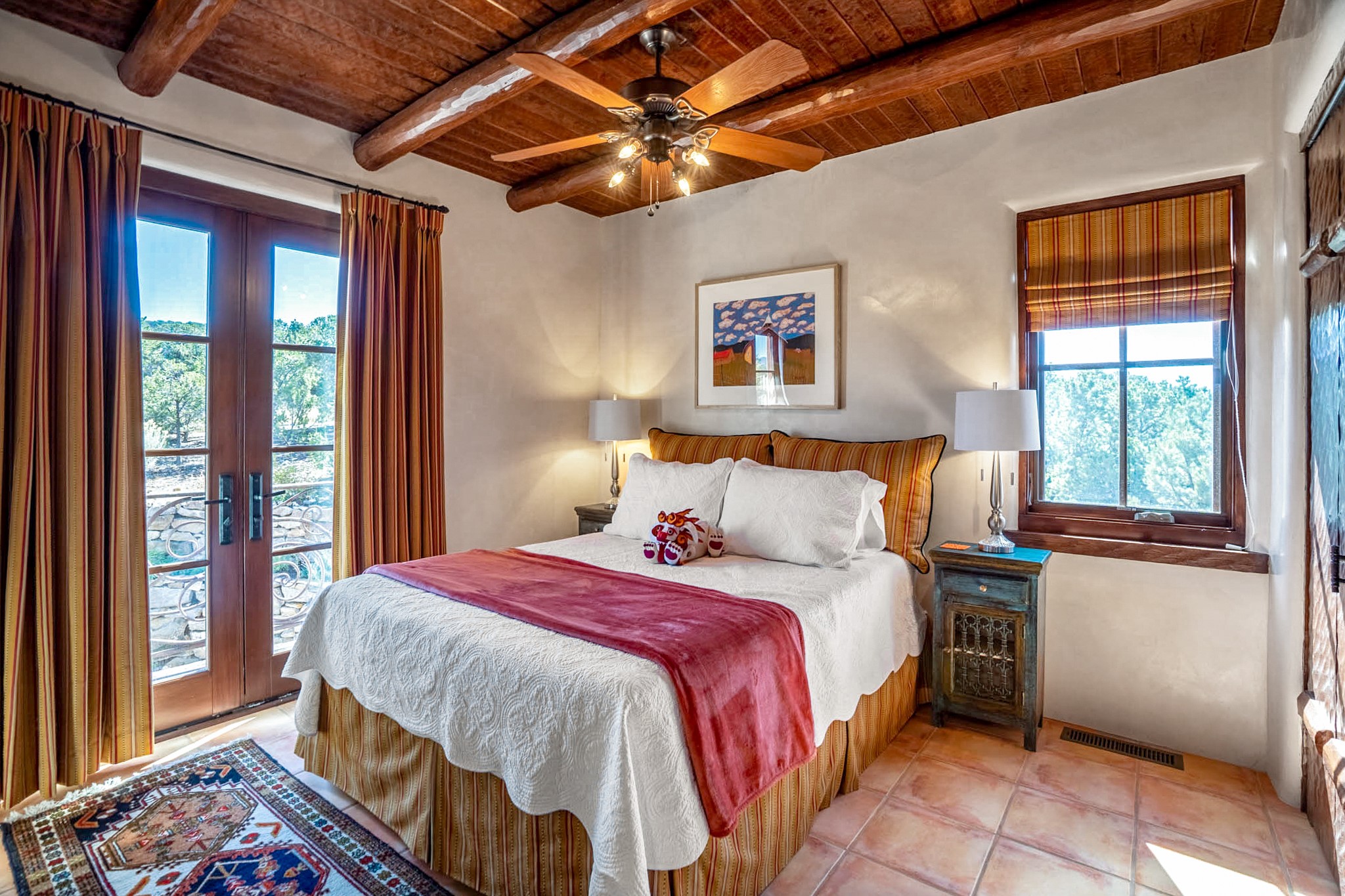Perched above the city on Sierra Del Norte and minutes to the Dale Ball trail system, this spectacular main house and enchanting guest house are sited on 1.68 acres and provide panoramic views from every angle. Completely renovated in 2014 with 2 offices, an impressive lower-level media room, 2 separate fenced-in areas for pets, and a deep sunset-facing portal measuring over 2400 square feet that would be the envy of any luxury resort, this elegant property has a unique combination of sophistication and warmth. The remodeled kitchen has a large granite island for in-kitchen dining, extensive countertops, and a picture-perfect view of both the Sangre De Cristo mountains and the ski basin. Connected to the kitchen is every caterer's dream, a butler's kitchen which provides an additional area for prep, 2 Subzero refrigerator drawers, storage, and an extra dishwasher... perfect for entertaining. The owner's wing consists of a large office with a private portal, a den, and a closet that would make Imelda Marcos weep! The west side of the home features the luxurious portal complete with a Kalamazoo grill, a grill master's dream, commercial ceiling mounted heaters, ceiling fans, automated screens, and breathtaking city views and stunning sunsets nightly. The 620 square foot guest house is located above the 3-car garage. Surrounding the home are lovely garden areas that provide colorful vignettes from nearly every window. Within 10 minutes of The Plaza, great proximity to trails and the ski basin, this property is an exceptional value and a unique combination of luxury and livability.