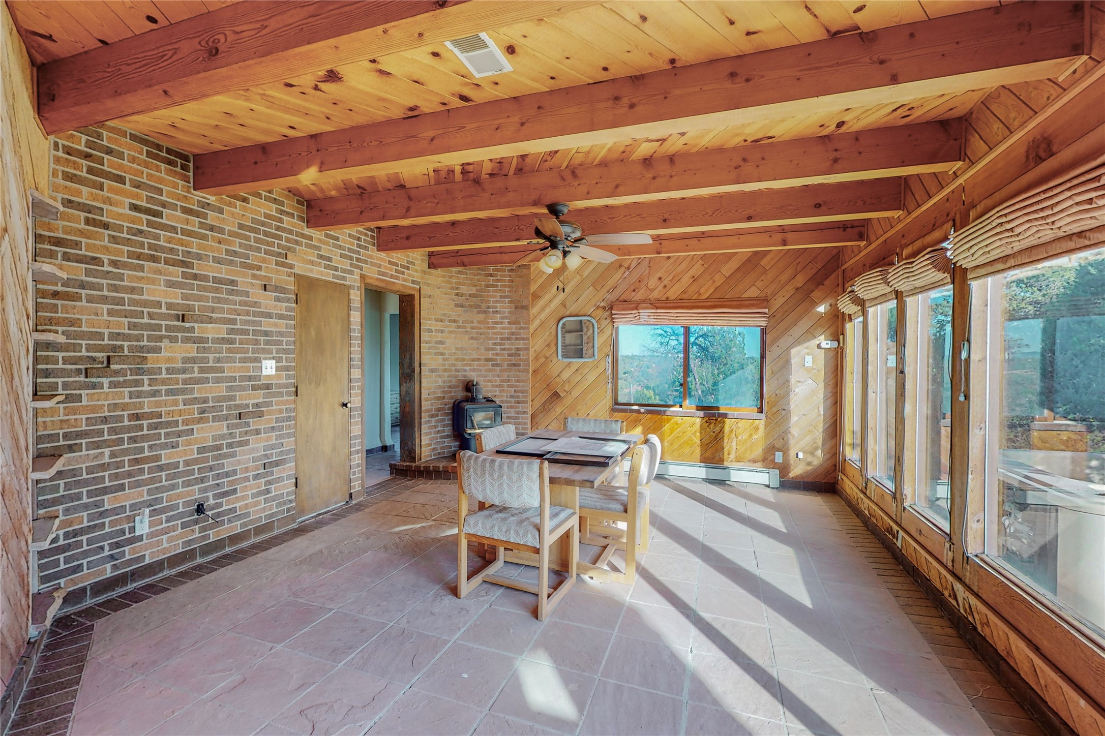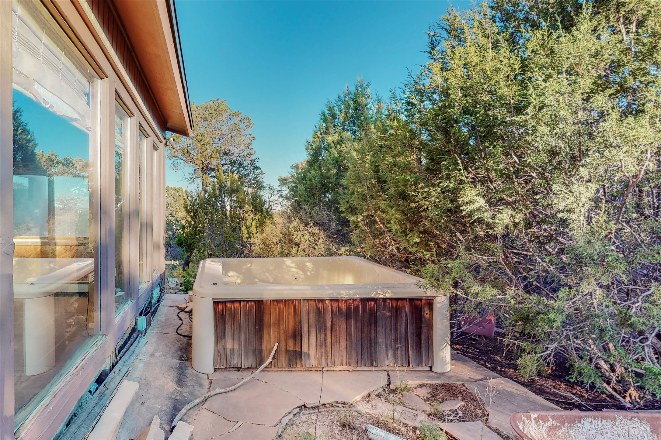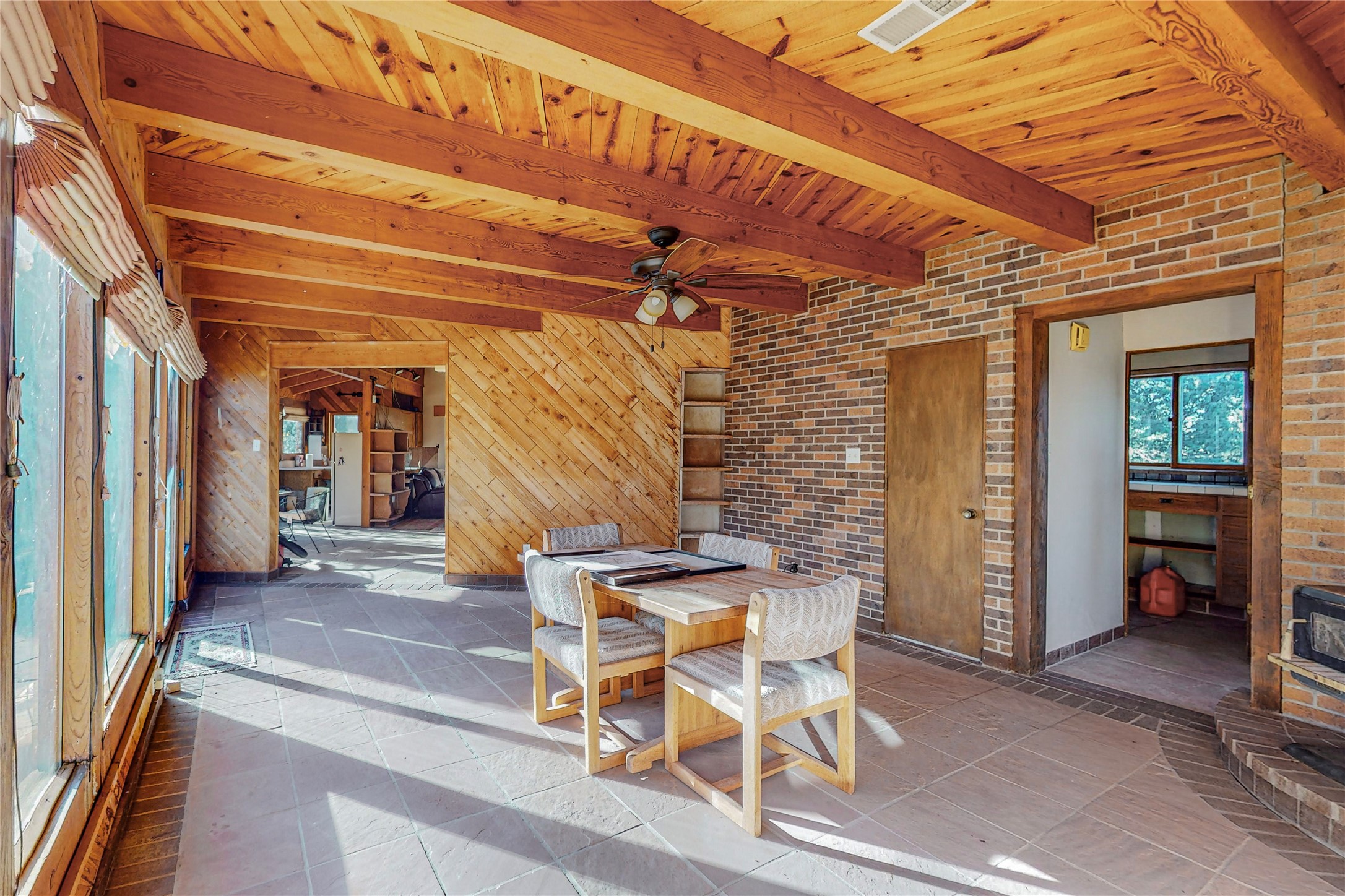 Handyman Special! This property has unlimited potential! If you've ever dreamed of owning your own private forest, this property comes with 42 acres of beautiful land; filled with abundant pine trees, native plants, and plenty of wildlife. This one of a kind, passive solar, private home has a NEW Septic Tank, recently updated roof, ample light, stunning flagstone and brick floors through out, vigas, 3 fireplaces and a wood burning stove and a 5-car garage that would fulfill a car collector's dream. Above the enormous garage there is a 300 sq ft private roof top studio. This home is busting with character and conveniently located 30 minutes from Santa Fe.