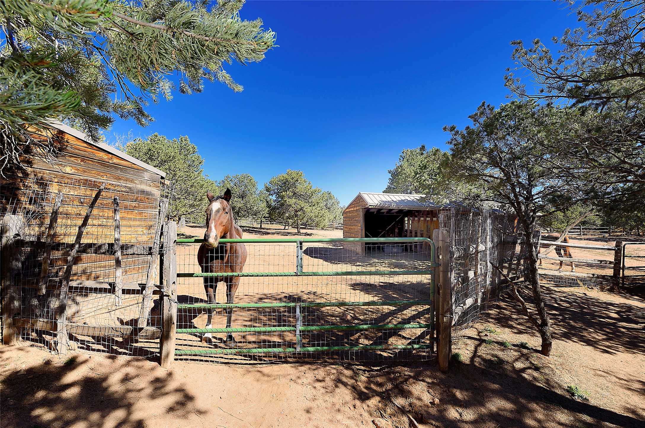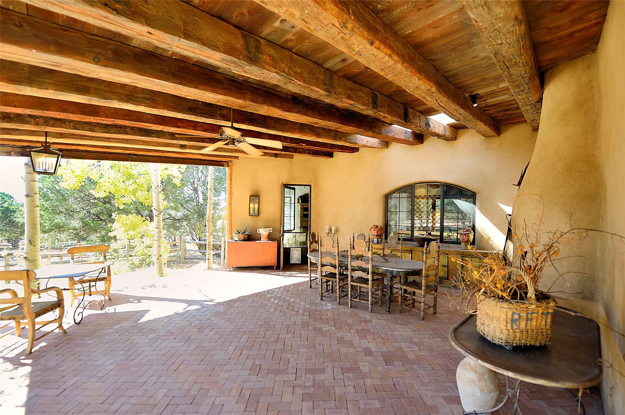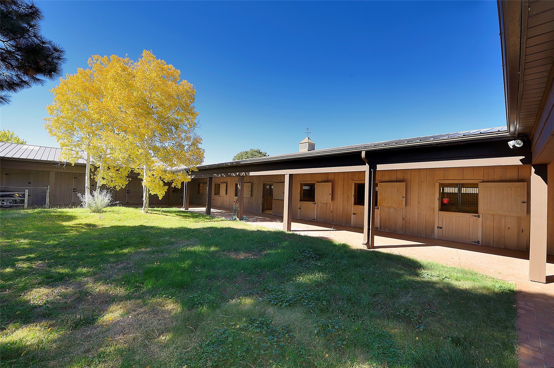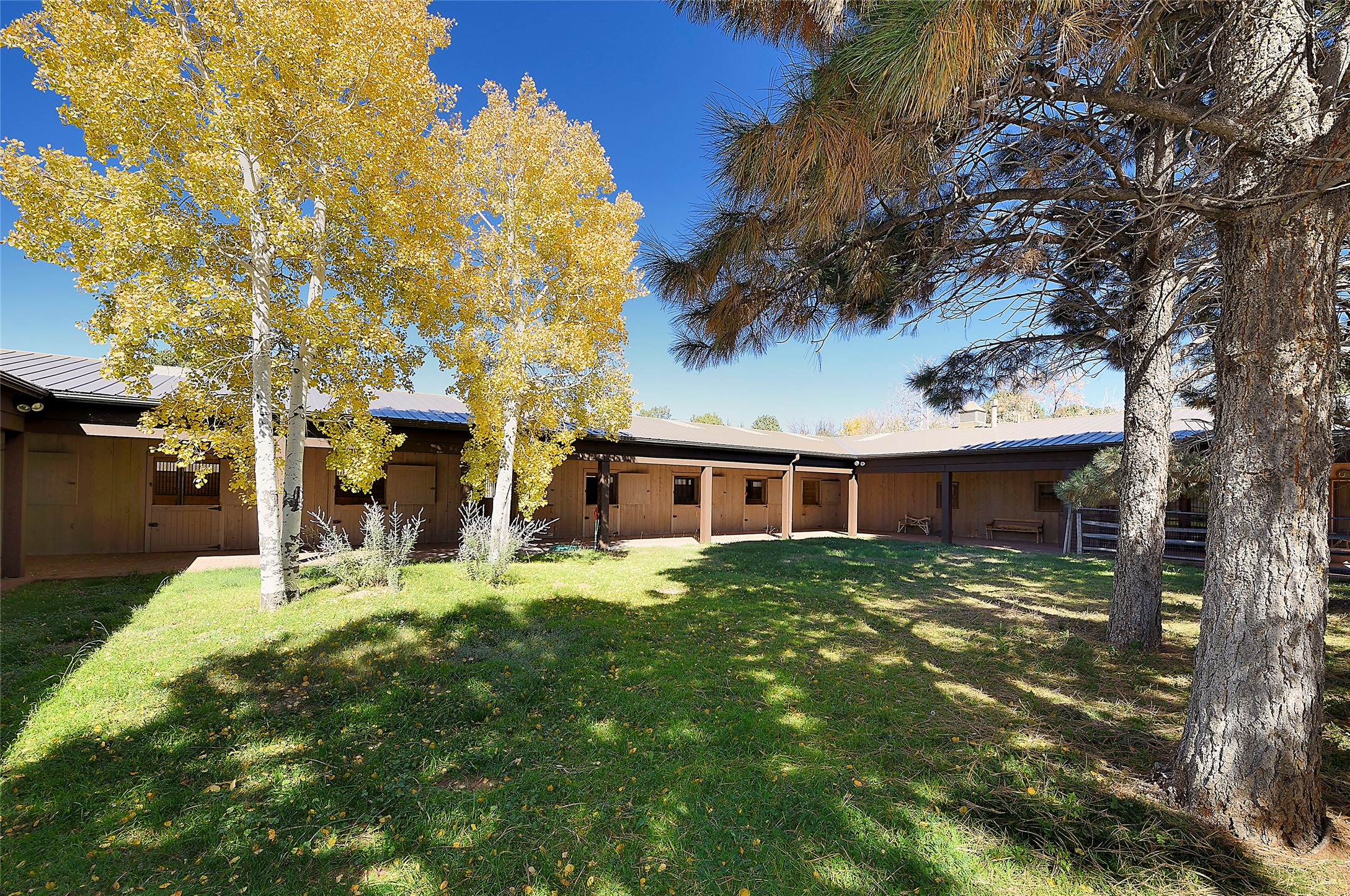 Remarkable world class 54-acre equestrian estate and animal sanctuary.Located at the edge of Santa Fe's city limits on the Old Santa Fe Trail, only a scenic 8-minute drive from the Plaza. Set back behind tall pinion trees and coyote fencing, this Impeccable hidden Ranch spared no expense on the highest quality construction, built by Wolf Corp. custom builders.The main house is a well-designed Italian influenced double adobe Villa, featuring imported windows, ceilings and doors, all on one level. There are also 2 guest homes, an expansive studio and Ranch managers quarters. One of the guest homes was Jane Goodalls Santa Fe sanctuary. Fenced pastures and corrals surround the homes. The homes have large windows and inviting outdoor living portals where one can watch happy animals enjoying their lives.There are pristine stables with 13 stalls, 15 corrals, and a stunning oversized indoor riding arena allowing for year-round riding and training. Exceptional horseback riding and walking trails meander through the diverse topography of this property. There are flat grassy pastures, impressive stone canyons with sandy creek beds, and huge views. There is also dog fencing around the entire 54 acres, allowing for one's best friends to roam freely.