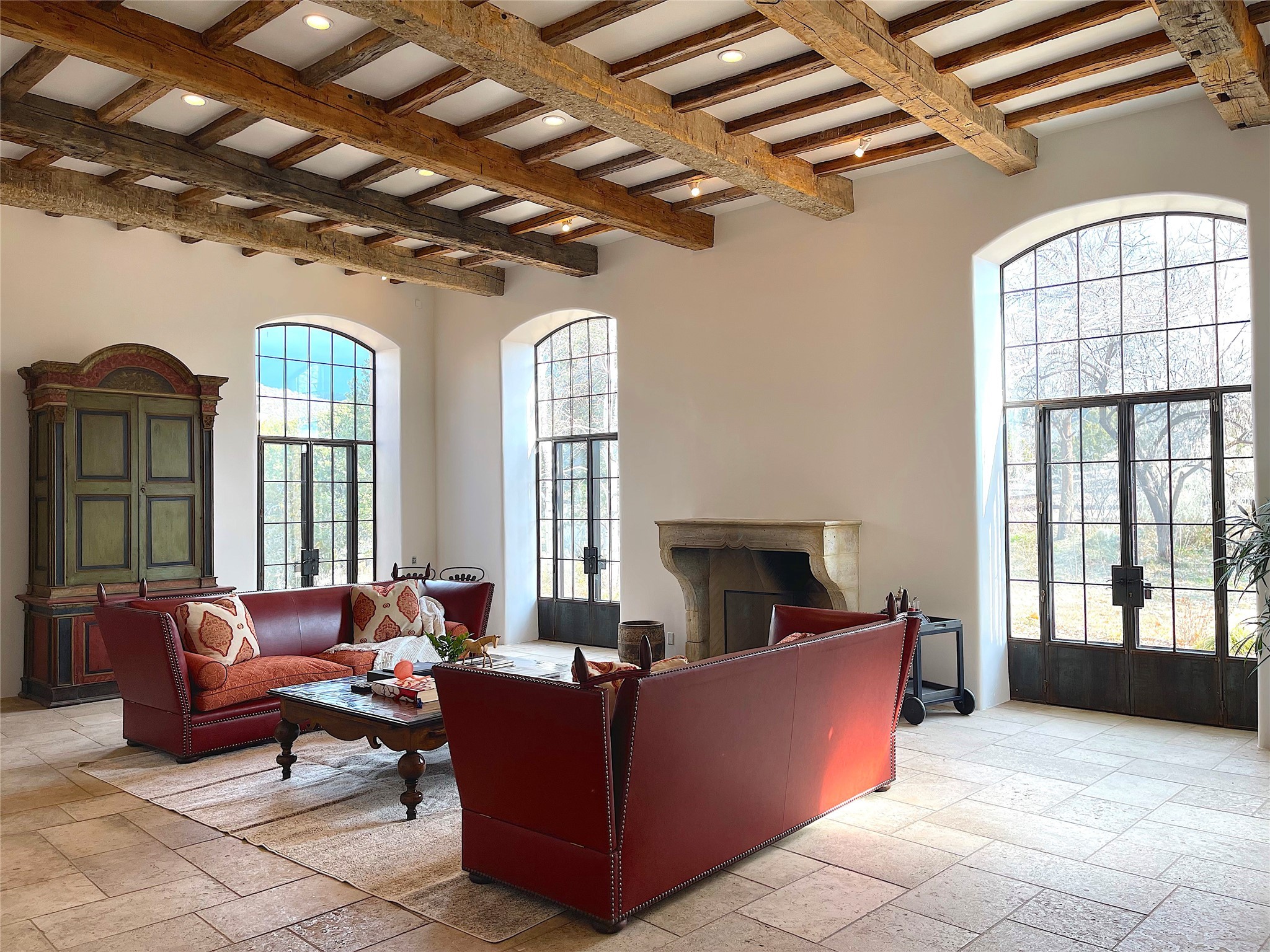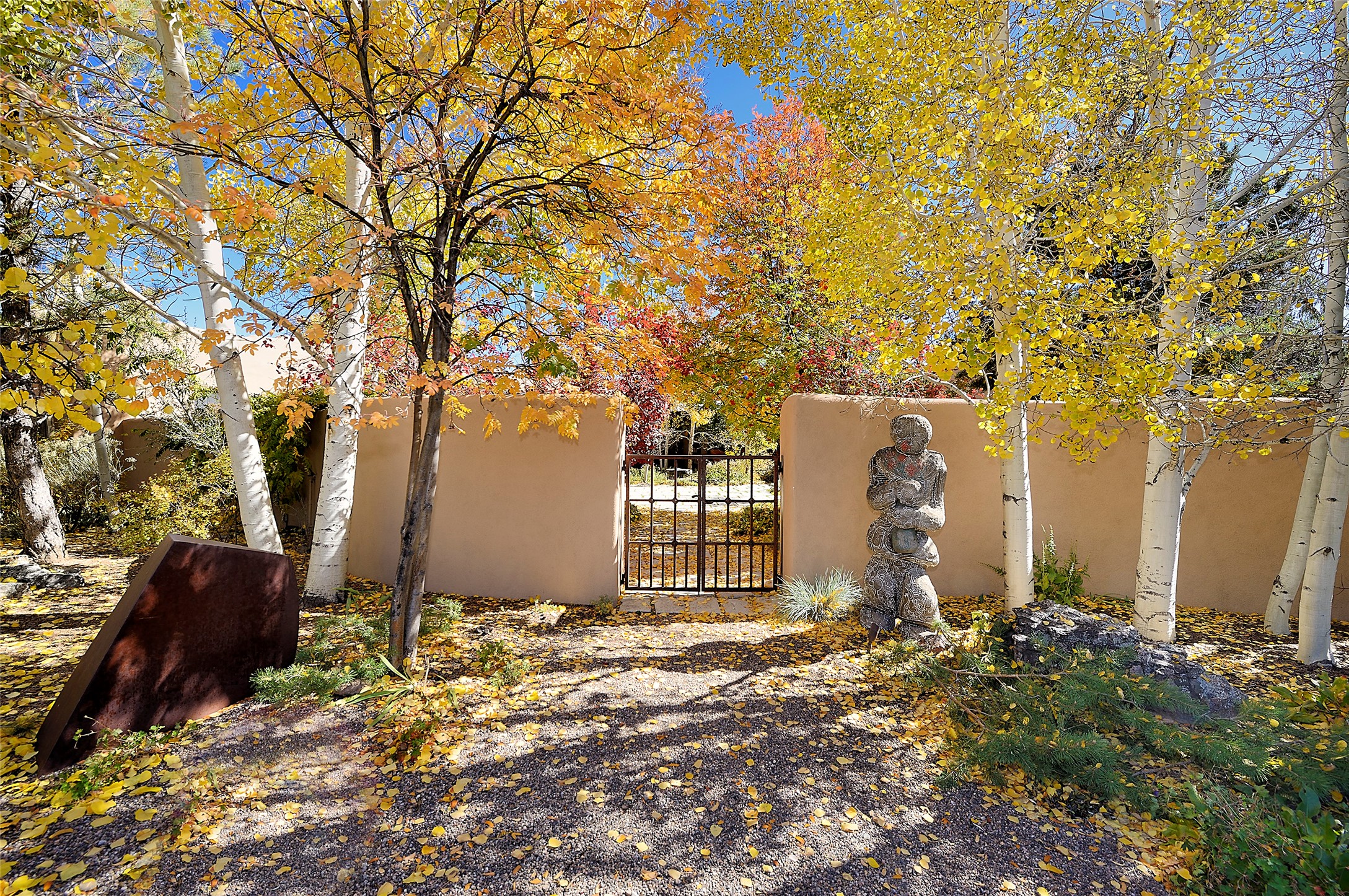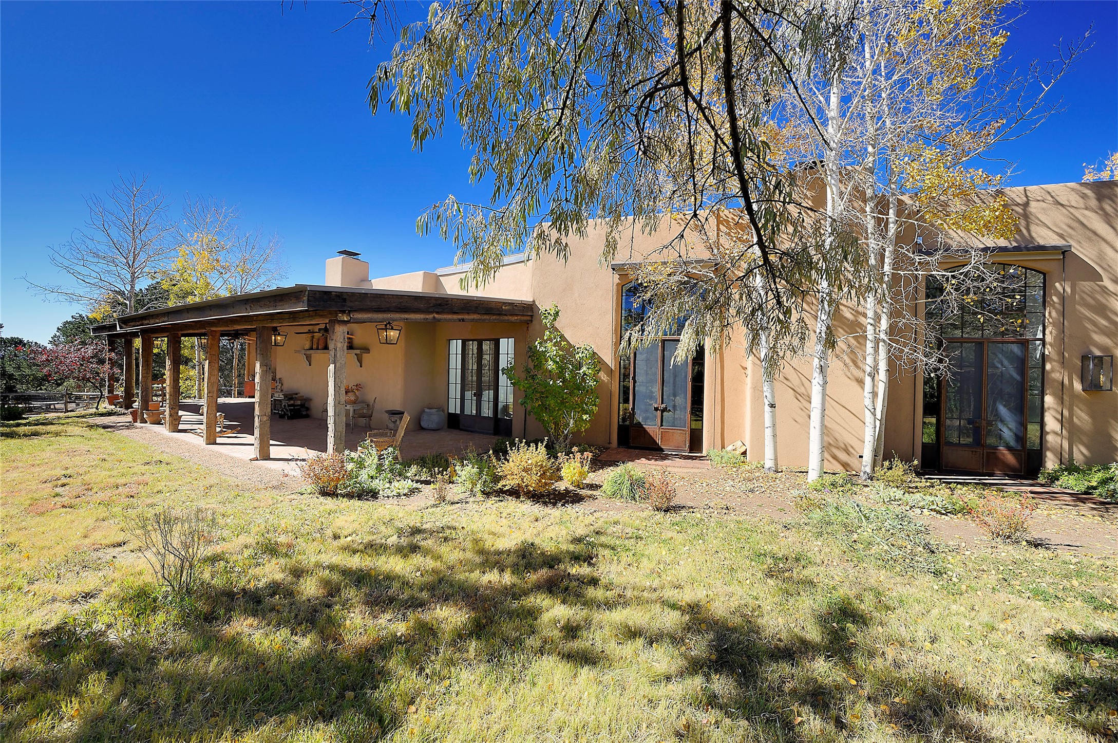 Remarkable world class 54-acre equestrian estate and animal sanctuary.Located at the edge of Santa Fe's city limits on the Old Santa Fe Trail, only a scenic 8-minute drive from the Plaza. Set back behind tall pinion trees and coyote fencing, this Impeccable hidden Ranch spared no expense on the highest quality construction, built by Wolf Corp. custom builders.The main house is a well-designed Italian influenced double adobe Villa, featuring imported windows, ceilings and doors, all on one level. There are also 2 guest homes, an expansive studio and Ranch managers quarters. One of the guest homes was Jane Goodalls Santa Fe sanctuary. Fenced pastures and corrals surround the homes. The homes have large windows and inviting outdoor living portals where one can watch happy animals enjoying their lives.There are pristine stables with 13 stalls, 15 corrals, and a stunning oversized indoor riding arena allowing for year-round riding and training. Exceptional horseback riding and walking trails meander through the diverse topography of this property. There are flat grassy pastures, impressive stone canyons with sandy creek beds, and huge views. There is also dog fencing around the entire 54 acres, allowing for one's best friends to roam freely.