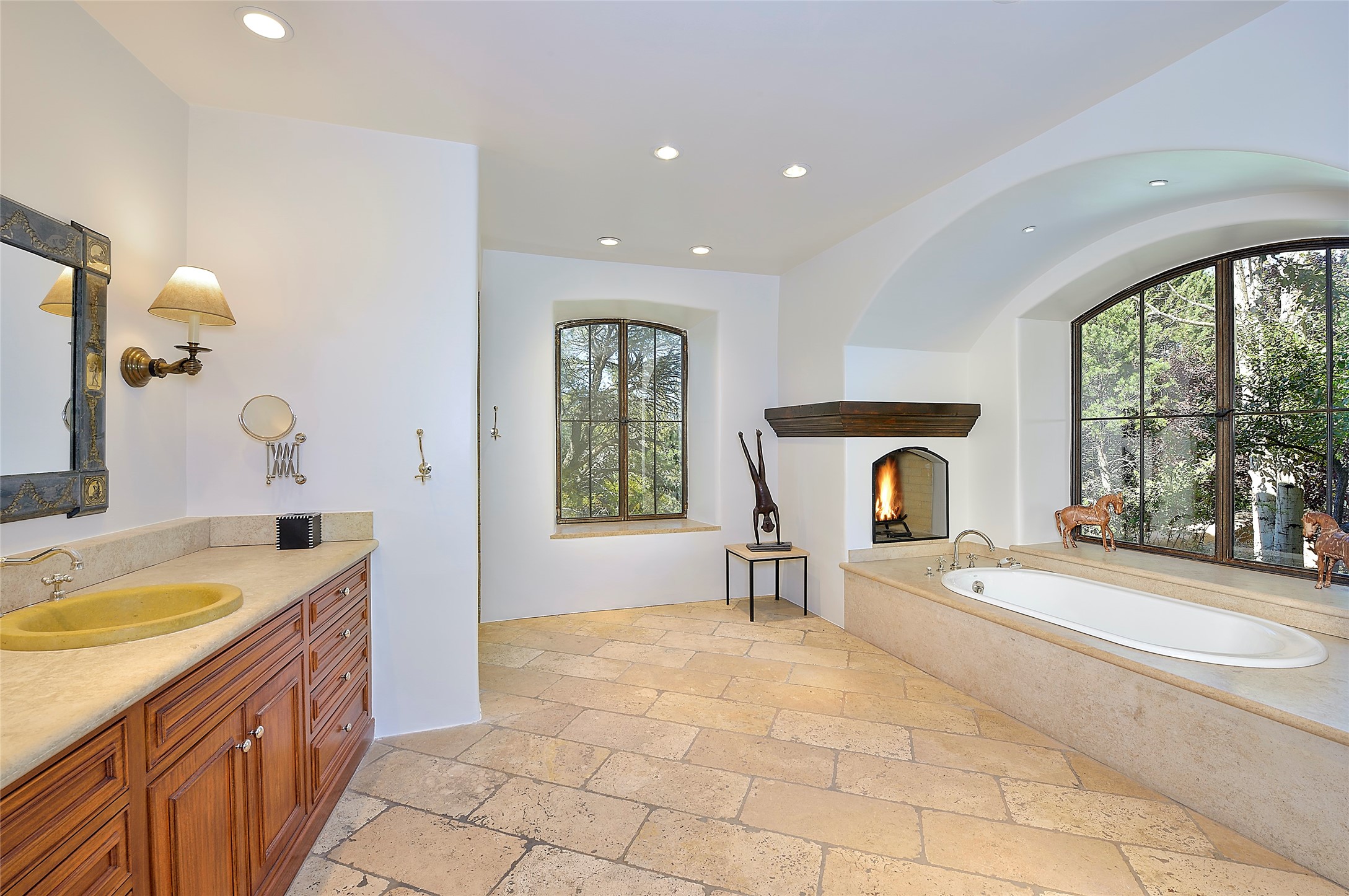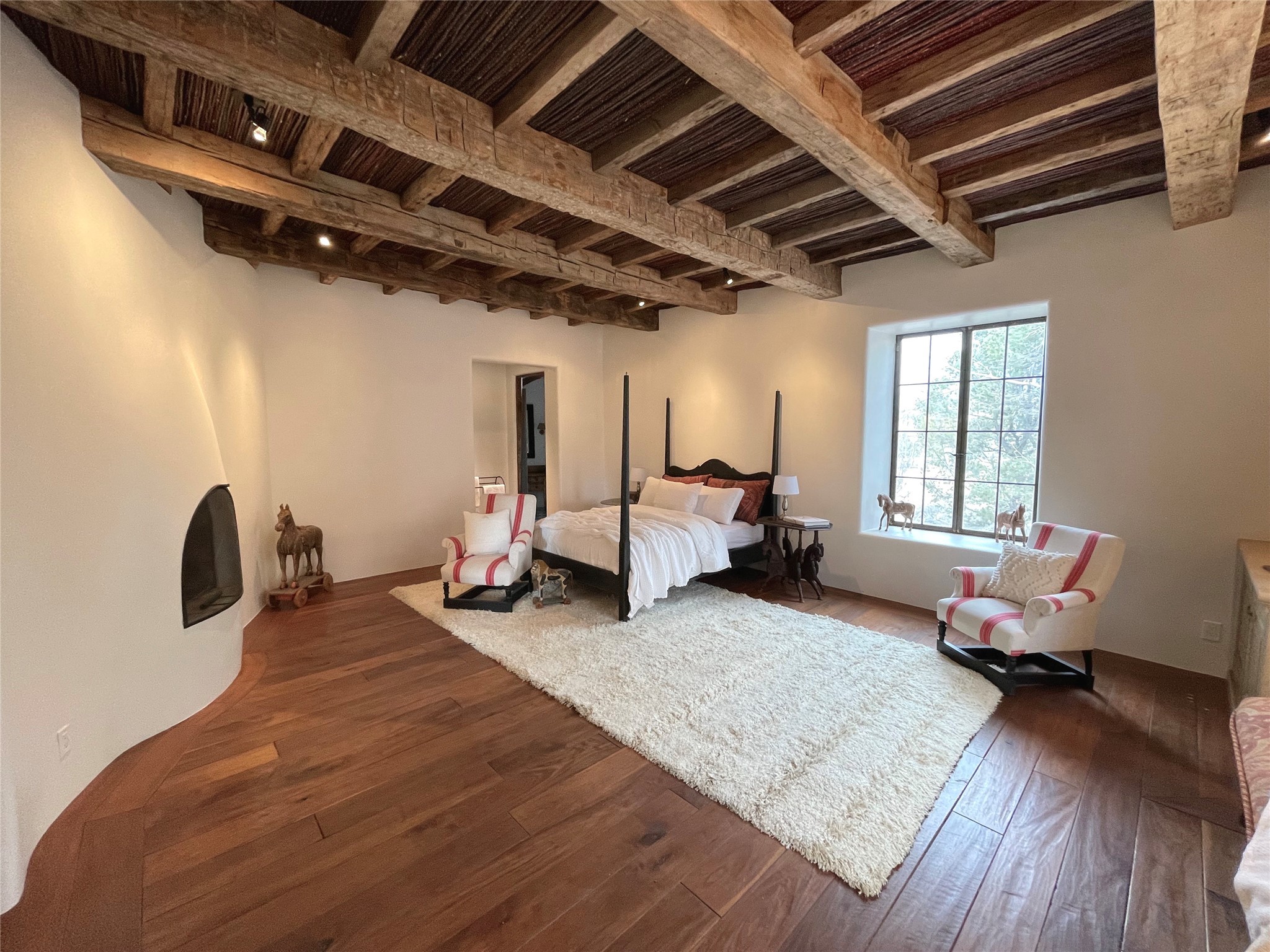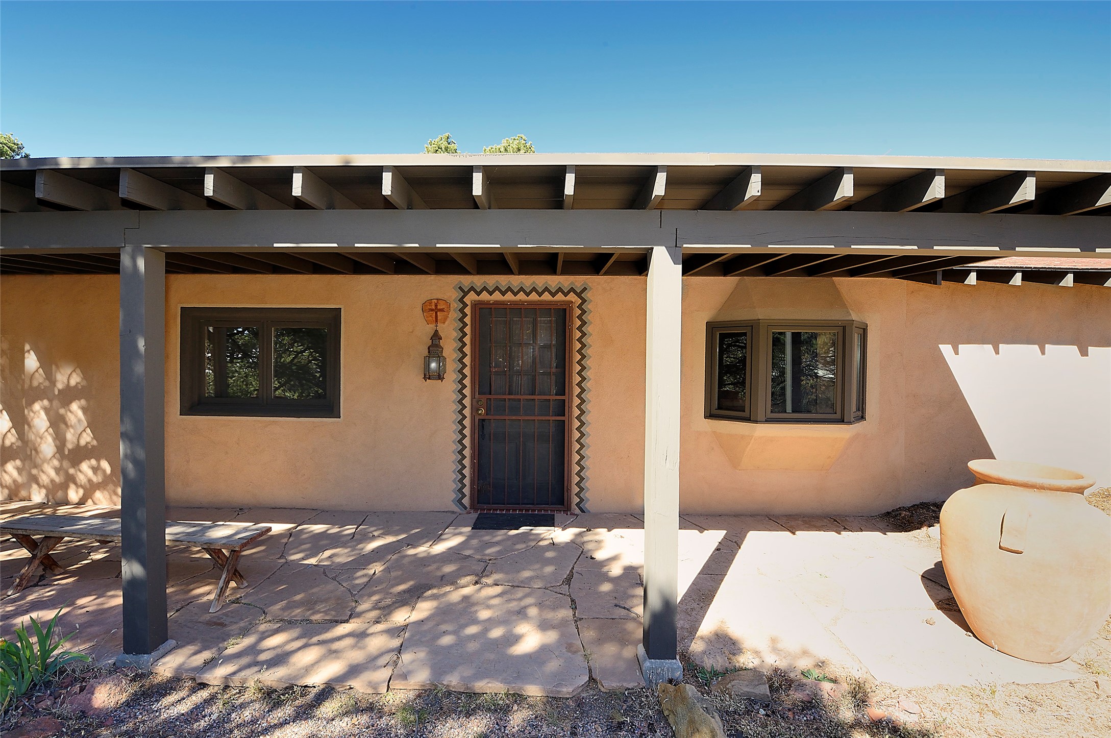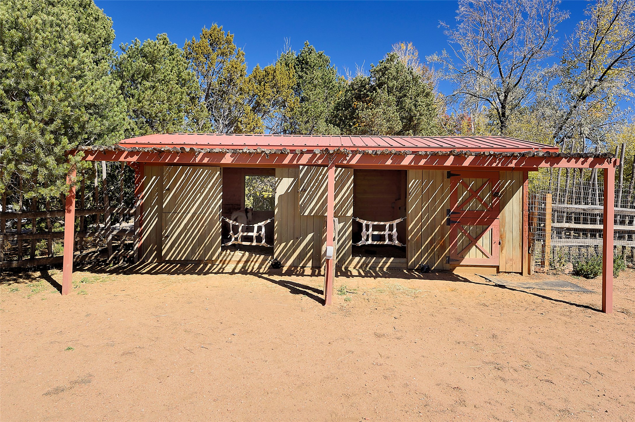Remarkable world class 54-acre equestrian estate and animal sanctuary.Located at the edge of Santa Fe's city limits on the Old Santa Fe Trail, only a scenic 8-minute drive from the Plaza. Set back behind tall pinion trees and coyote fencing, this Impeccable hidden Ranch spared no expense on the highest quality construction, built by Wolf Corp. custom builders.The main house is a well-designed Italian influenced double adobe Villa, featuring imported windows, ceilings and doors, all on one level. There are also 2 guest homes, an expansive studio and Ranch managers quarters. One of the guest homes was Jane Goodalls Santa Fe sanctuary. Fenced pastures and corrals surround the homes. The homes have large windows and inviting outdoor living portals where one can watch happy animals enjoying their lives.There are pristine stables with 13 stalls, 15 corrals, and a stunning oversized indoor riding arena allowing for year-round riding and training. Exceptional horseback riding and walking trails meander through the diverse topography of this property. There are flat grassy pastures, impressive stone canyons with sandy creek beds, and huge views. There is also dog fencing around the entire 54 acres, allowing for one's best friends to roam freely.