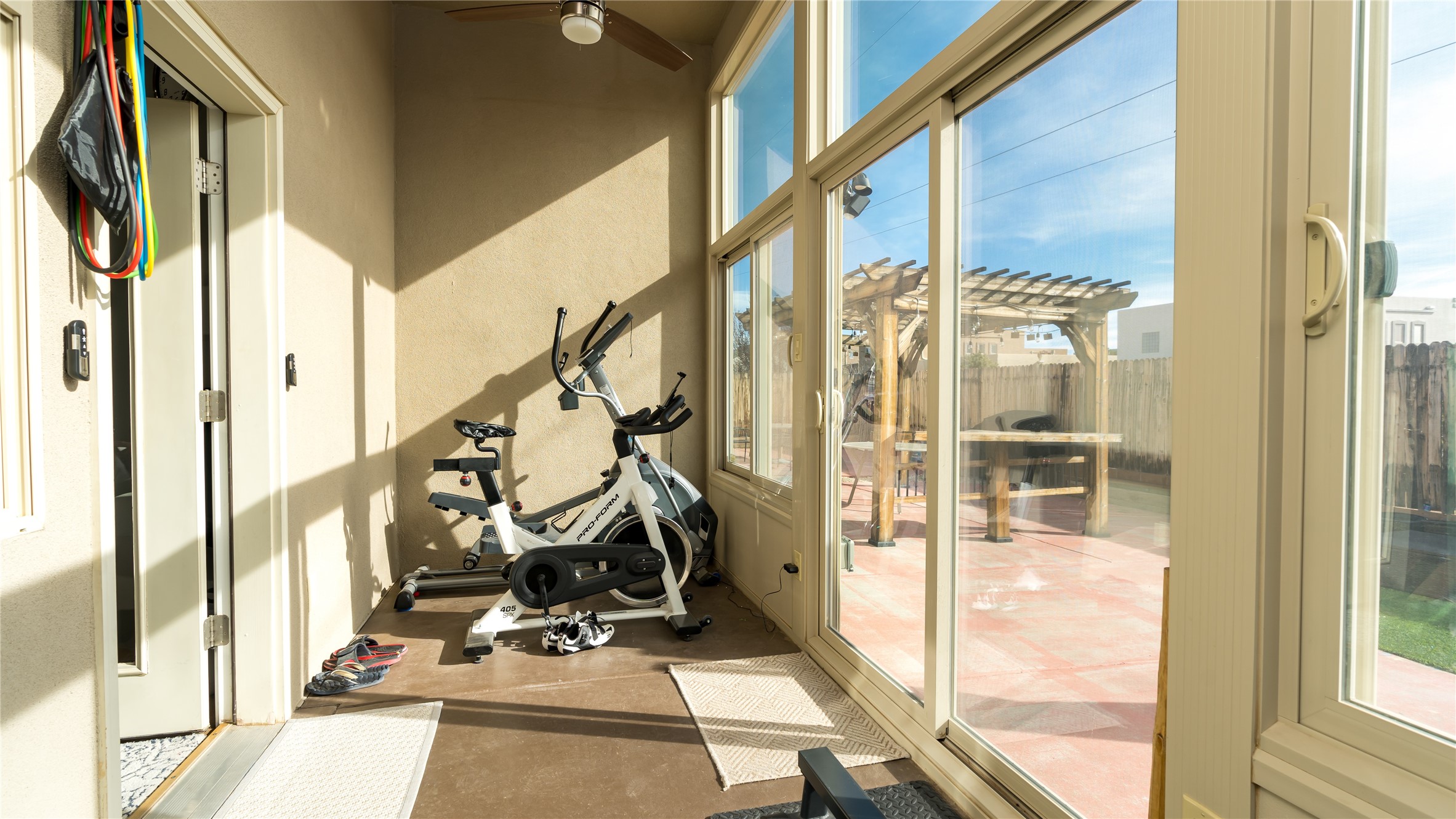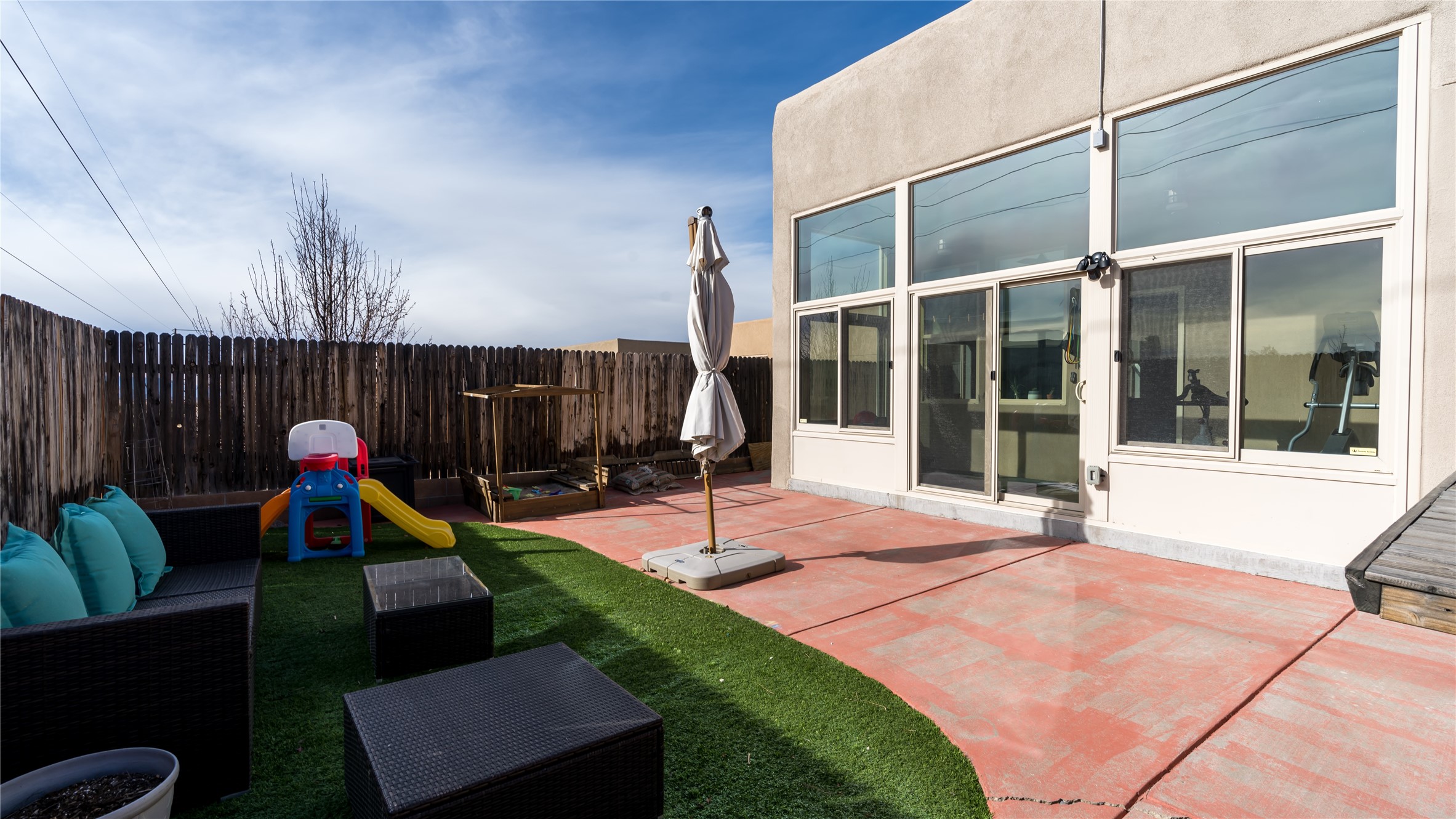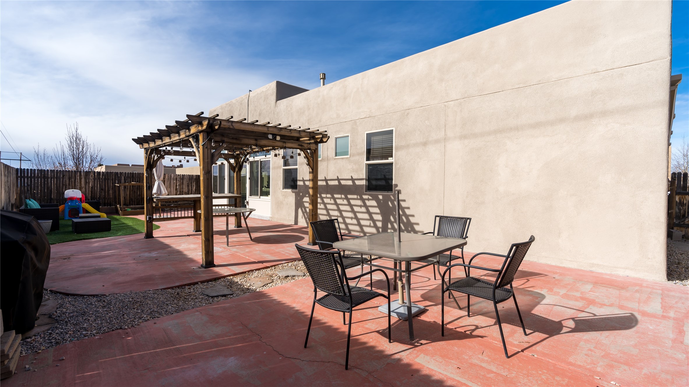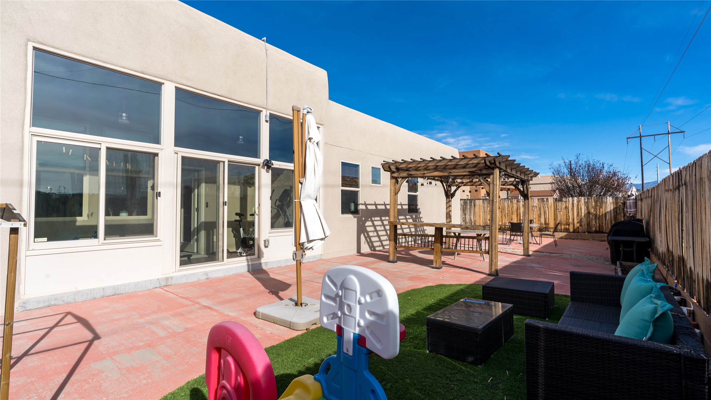 Impecably maintained single level home with three car garage. 4 bedrooms with great seperation, large office and sunroom that is currently used as a fitness room. Kitchen and Master Bath were recently renovated with high end appliances and fixtures. Outdoor space is carefree with synthetic lawn and pergola. Conveniently located to the Santa Fe Comunity College, Genoveva Chavez Community Center, shopping and dining.