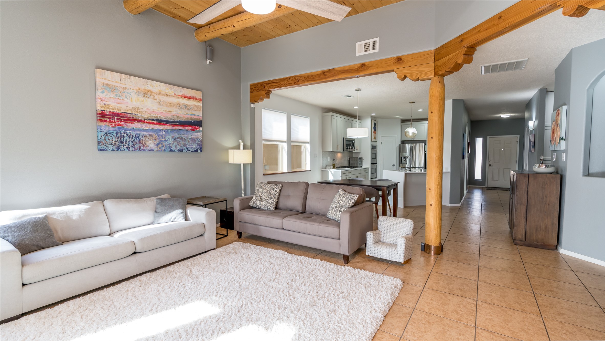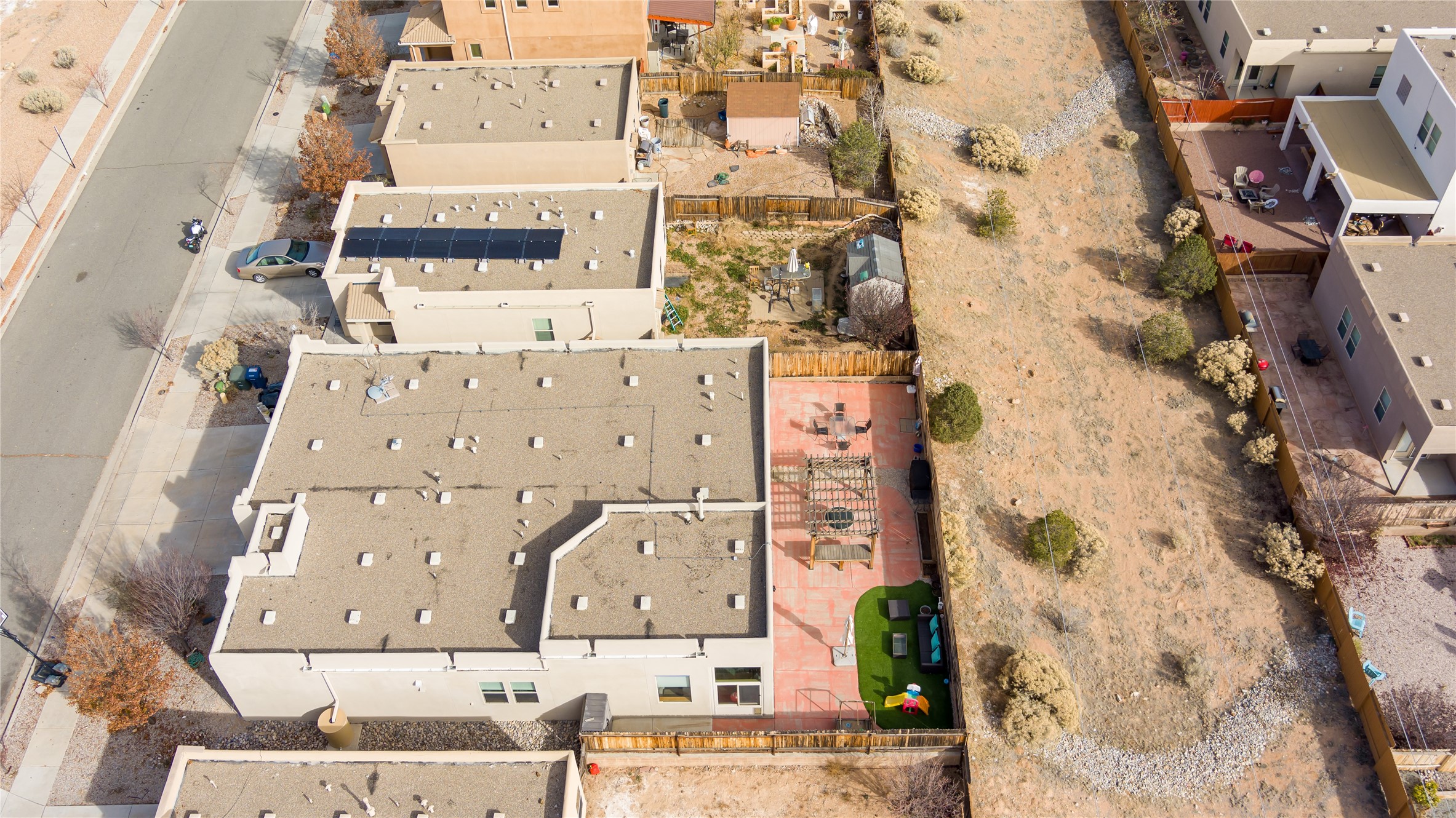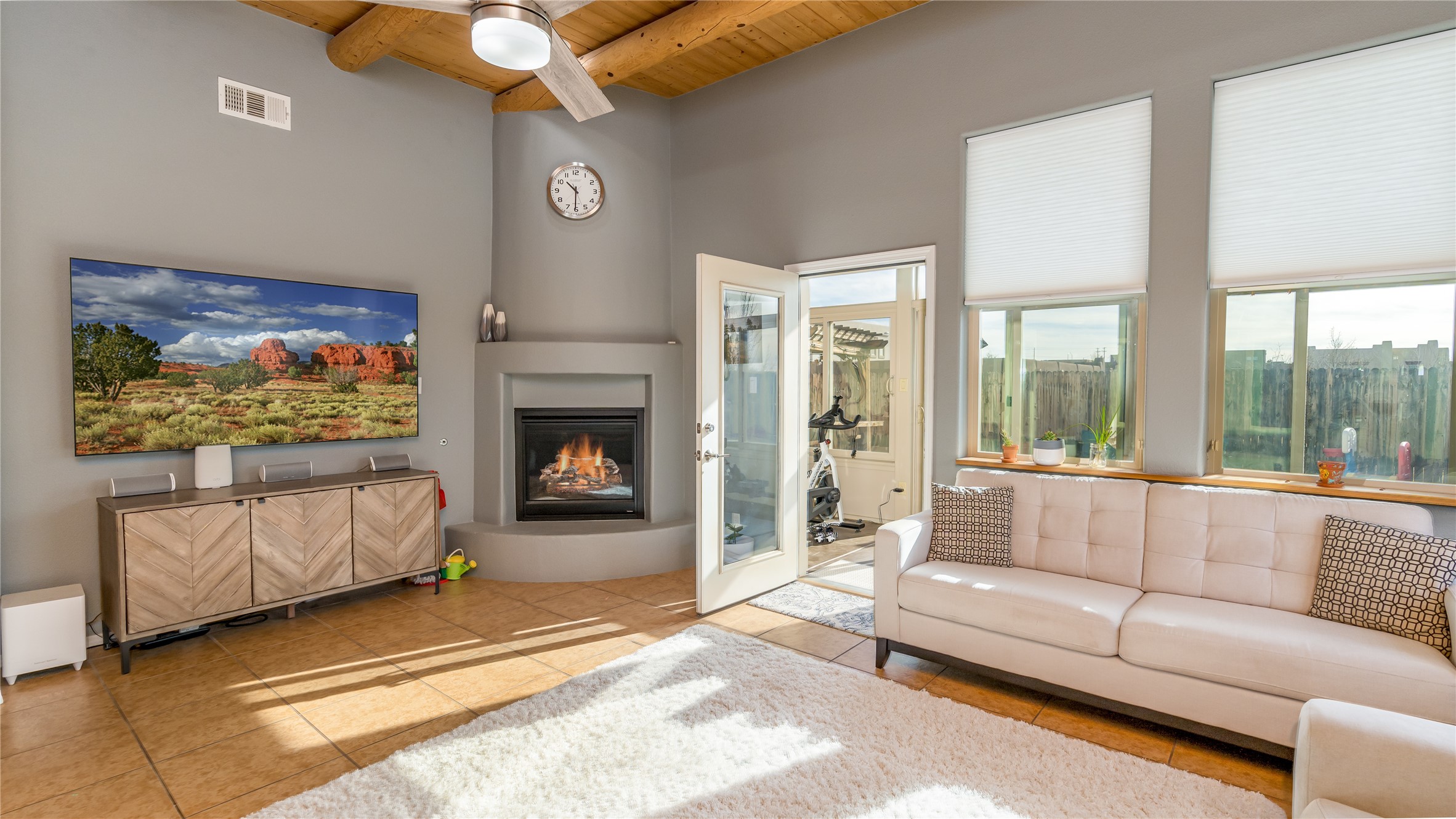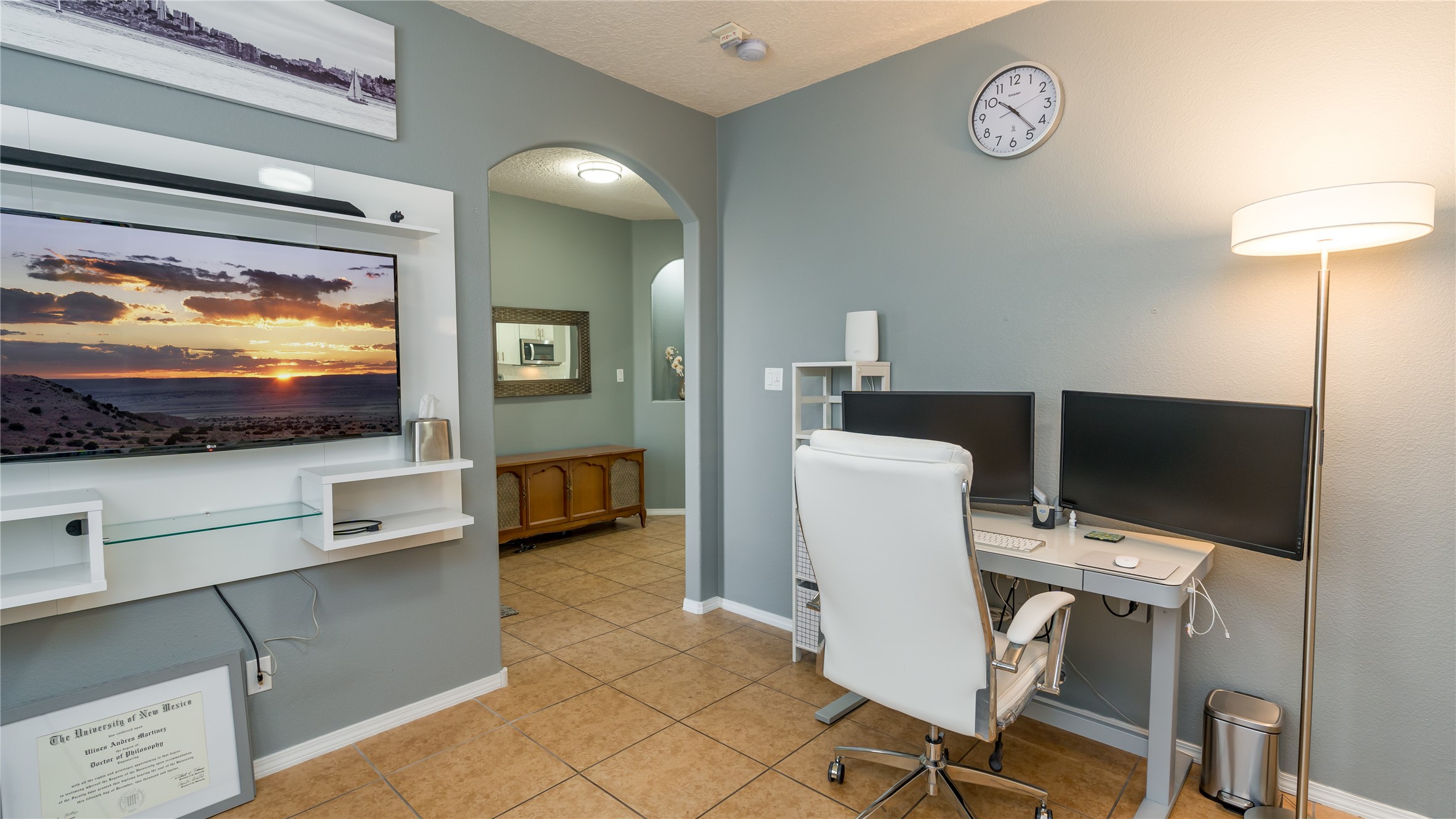 Impecably maintained single level home with three car garage. 4 bedrooms with great seperation, large office and sunroom that is currently used as a fitness room. Kitchen and Master Bath were recently renovated with high end appliances and fixtures. Outdoor space is carefree with synthetic lawn and pergola. Conveniently located to the Santa Fe Comunity College, Genoveva Chavez Community Center, shopping and dining.