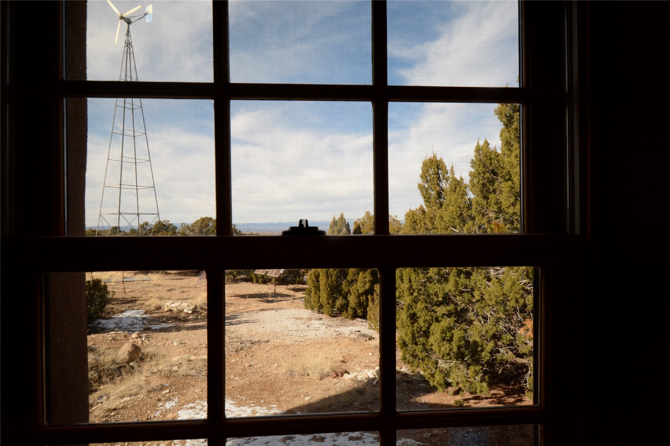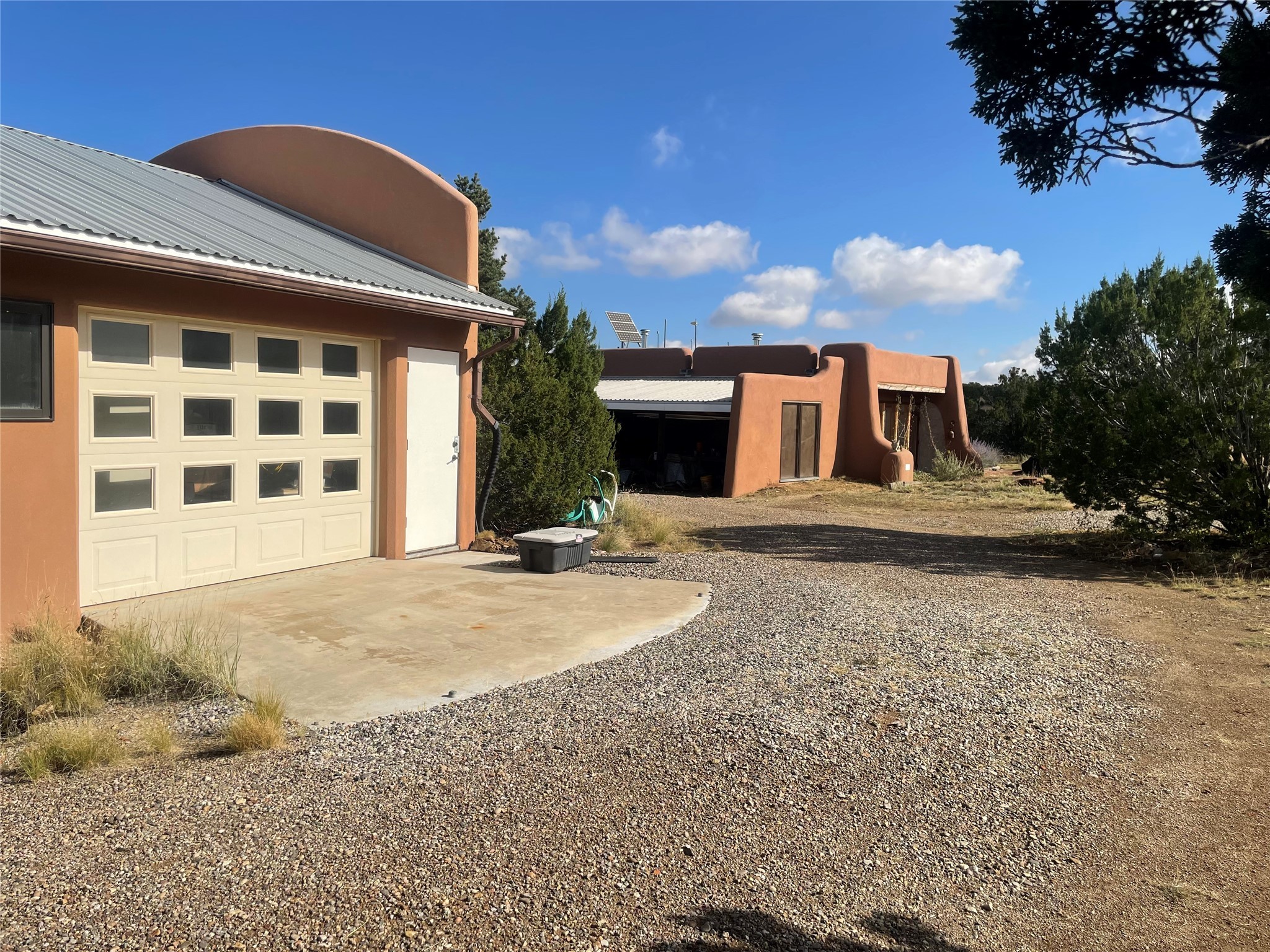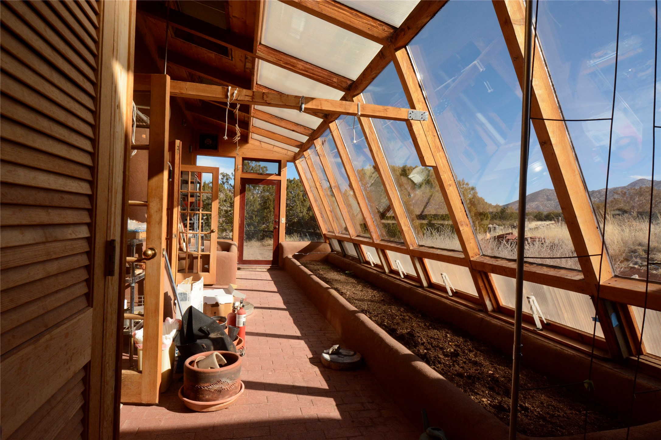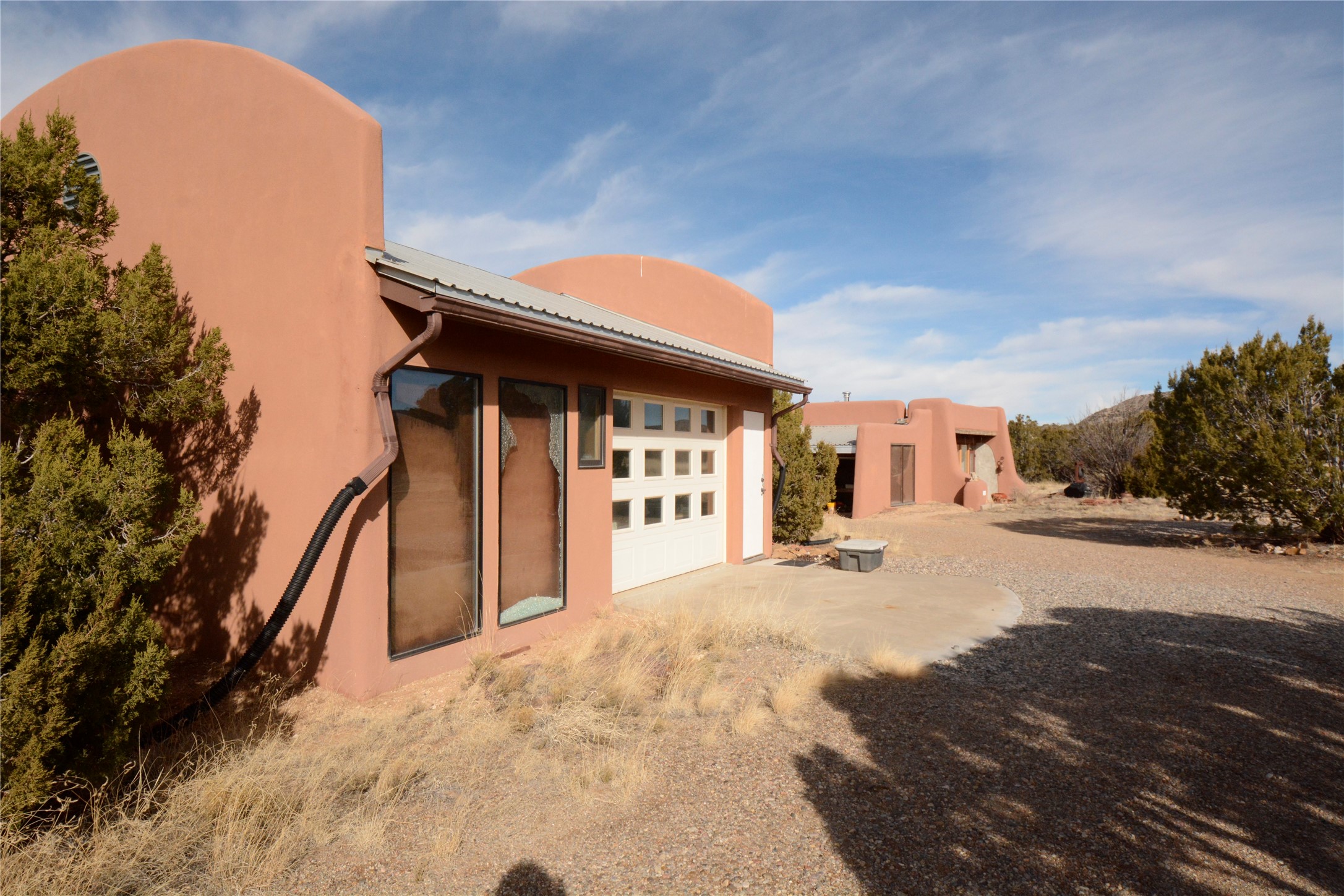 Nestled among the mountains along the Turquoise Trail south of Santa Fe is a private country living dream. Twenty acres of fenced land supports a sustainable complex that provides views, views, views and off grid existence. Horses? One can ride tremendous distances through endless beauty, directly from the property. The main house includes two bedrooms, an attached greenhouse for growing all year long, a SAUNA, and lovely adobe construction and detail. A _______ square foot Studio is also attached and heated with a large wood burning stove. An office is an extension of that space.An oversized garage is perfect for utilization of additional studio space, car storage, or eventual development for another living area or apartment (mother-in law, renters, caretakers?) This property offers so many choices for expansion. Imagination runs wild!