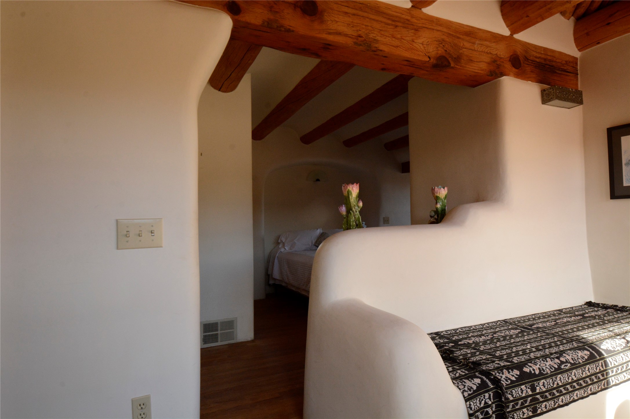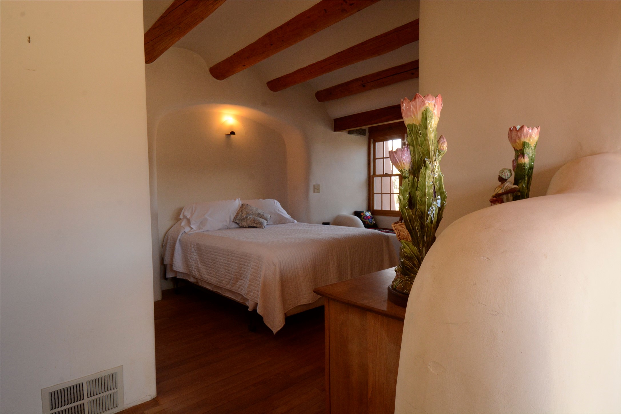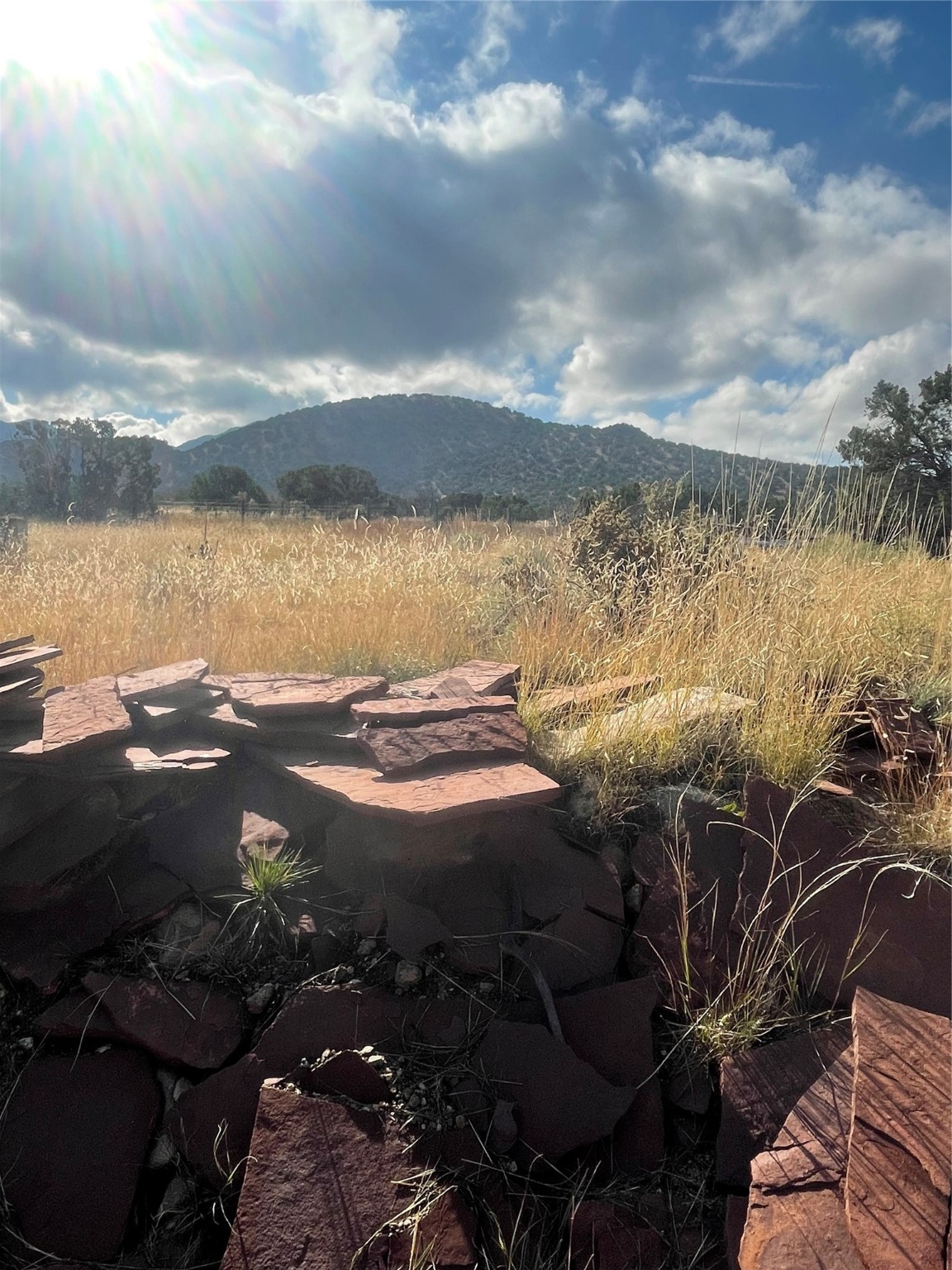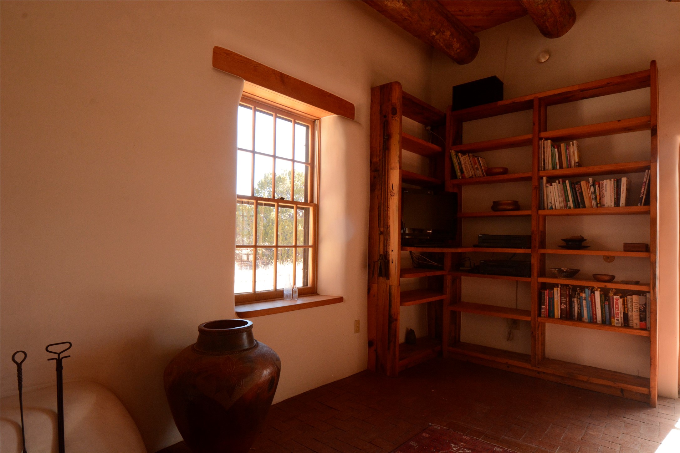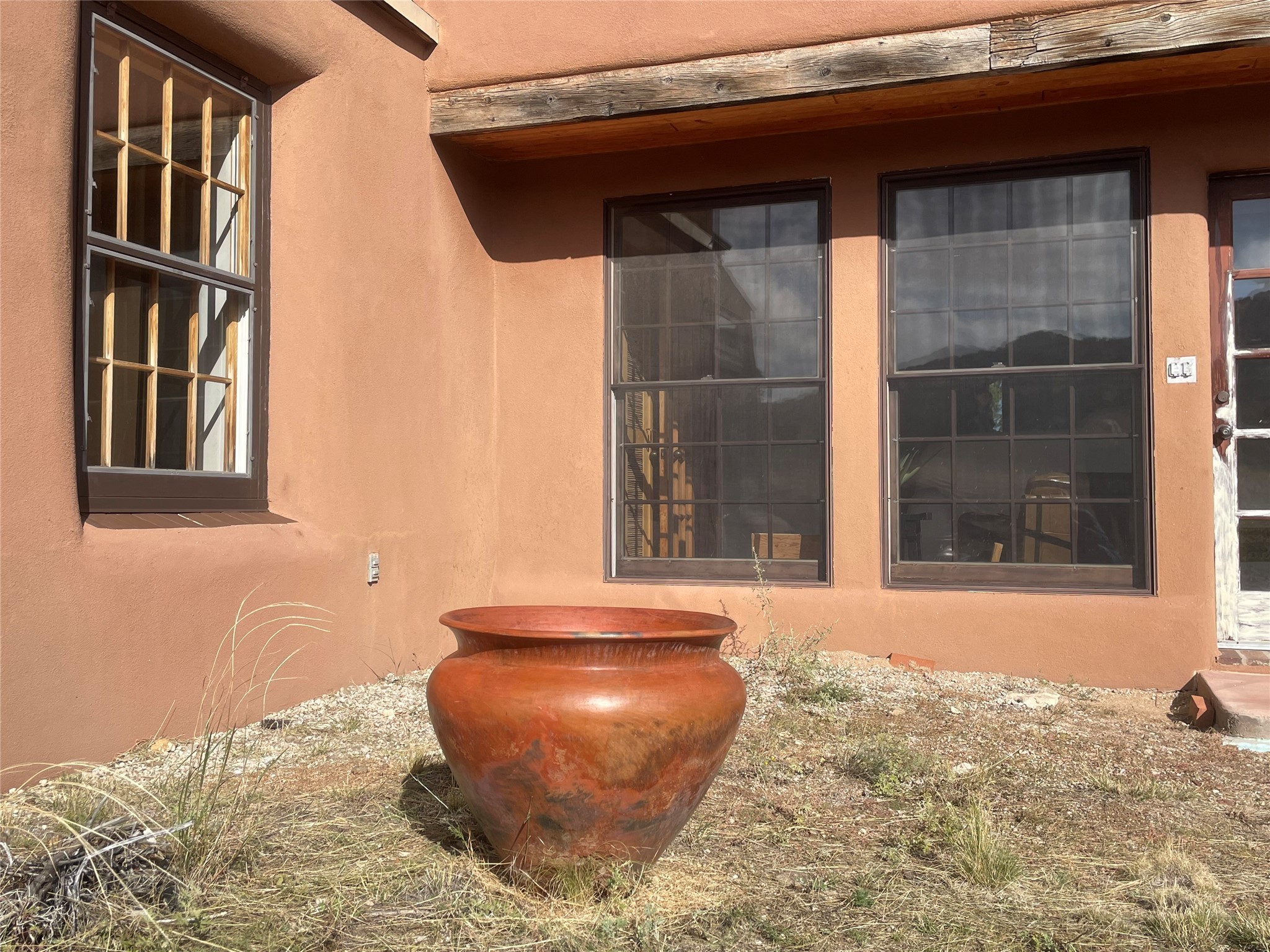 Nestled among the mountains along the Turquoise Trail south of Santa Fe is a private country living dream. Twenty acres of fenced land supports a sustainable complex that provides views, views, views and off grid existence. Horses? One can ride tremendous distances through endless beauty, directly from the property. The main house includes two bedrooms, an attached greenhouse for growing all year long, a SAUNA, and lovely adobe construction and detail. A _______ square foot Studio is also attached and heated with a large wood burning stove. An office is an extension of that space.An oversized garage is perfect for utilization of additional studio space, car storage, or eventual development for another living area or apartment (mother-in law, renters, caretakers?) This property offers so many choices for expansion. Imagination runs wild!
