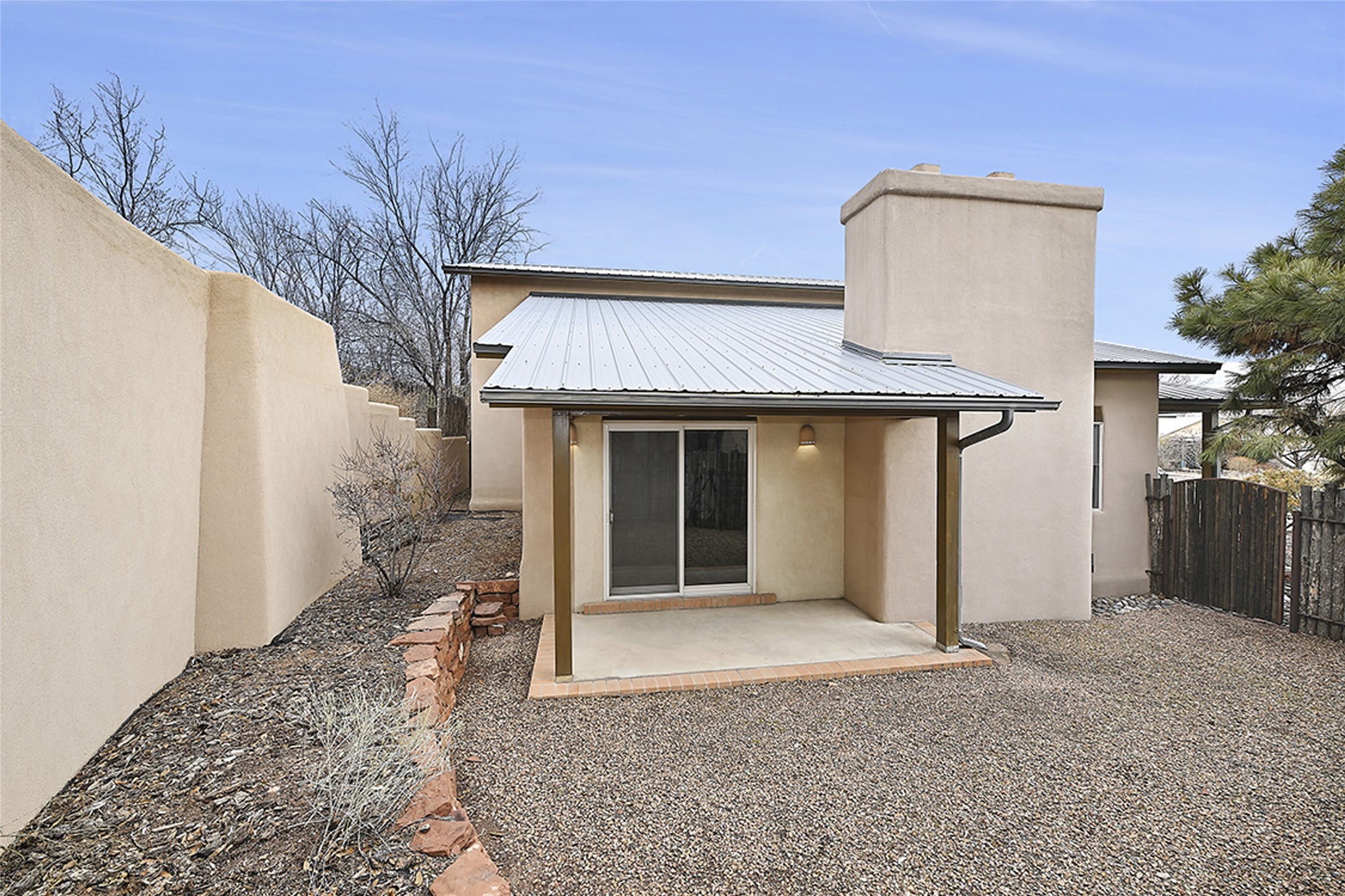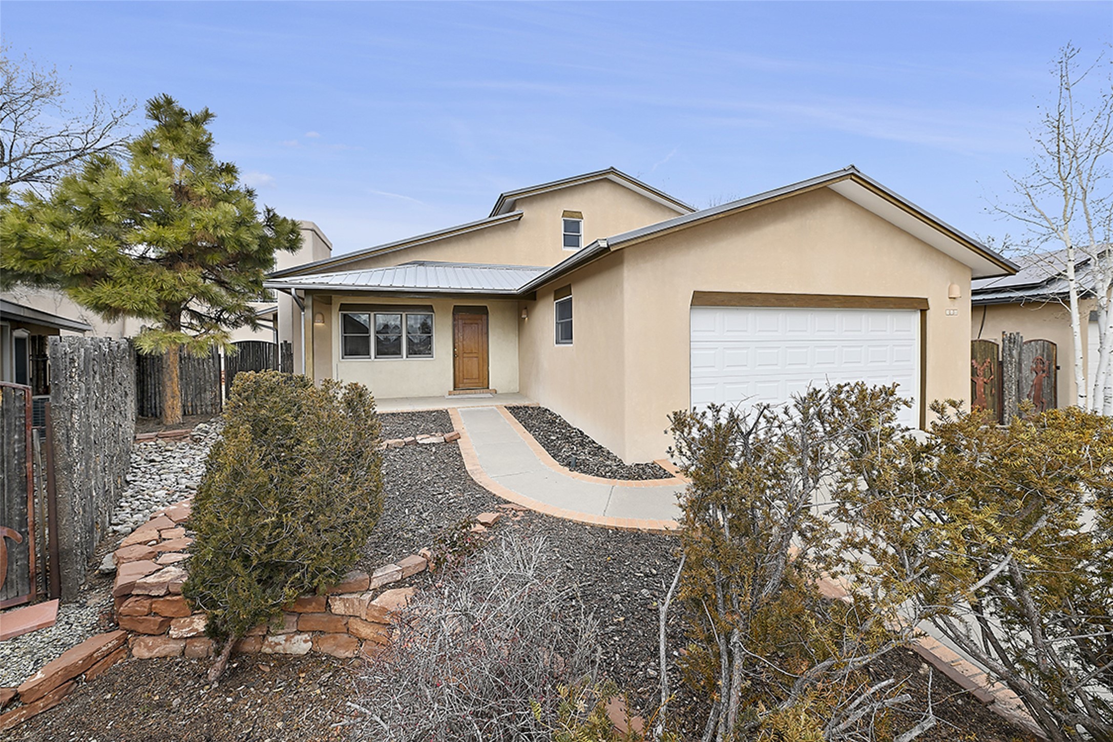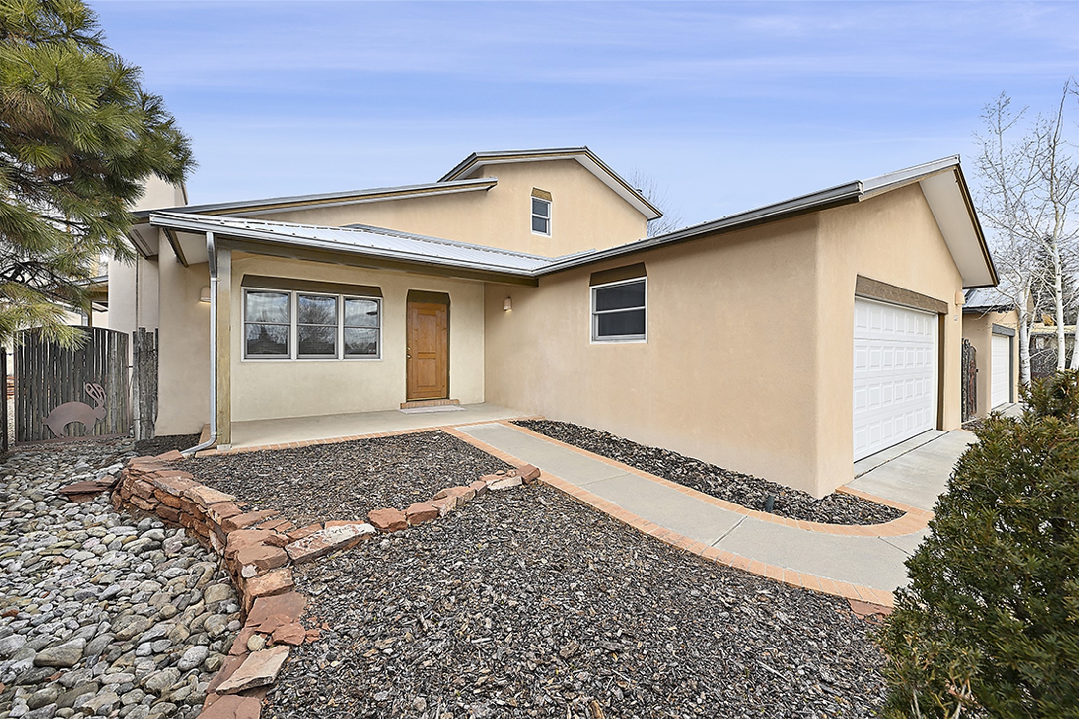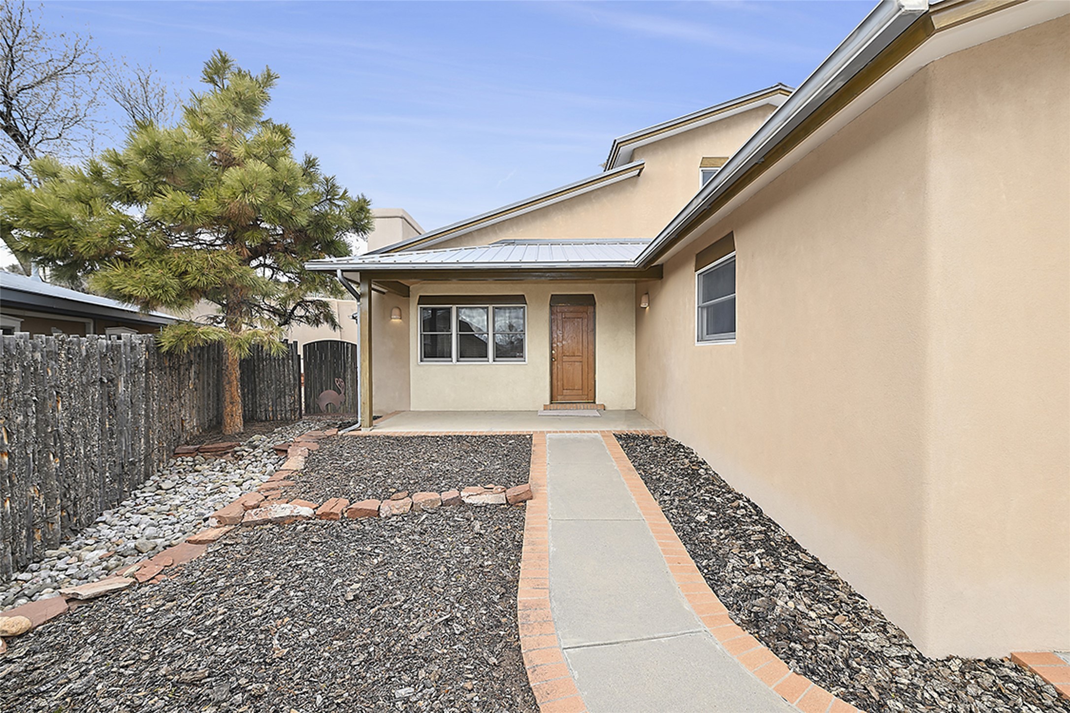 Remodeled 3 bedroom 2 bath two-story home in a close-in location. Recent improvements include new carpet and appliances, hickory hard wood floors, fresh paint and interior finishes. Spacious living room with a wall of built-in bookshelves and brick fireplace. Kitchen is appointed with sleek stainless-steel appliances, light wood cabinets and recessed lighting. There is a separate laundry/utility room with sink and extra cabinets. Modern baths. Third bedroom offers flex space as a studio or office. Backyard with covered patio. 2 car attached garage with built-in storage. Pitched metal roof. Conveniently located close to Frenchy's Field/Santa Fe River Trail, Santa Fe Plaza, Canyon Road, shopping, restaurants and medical center.