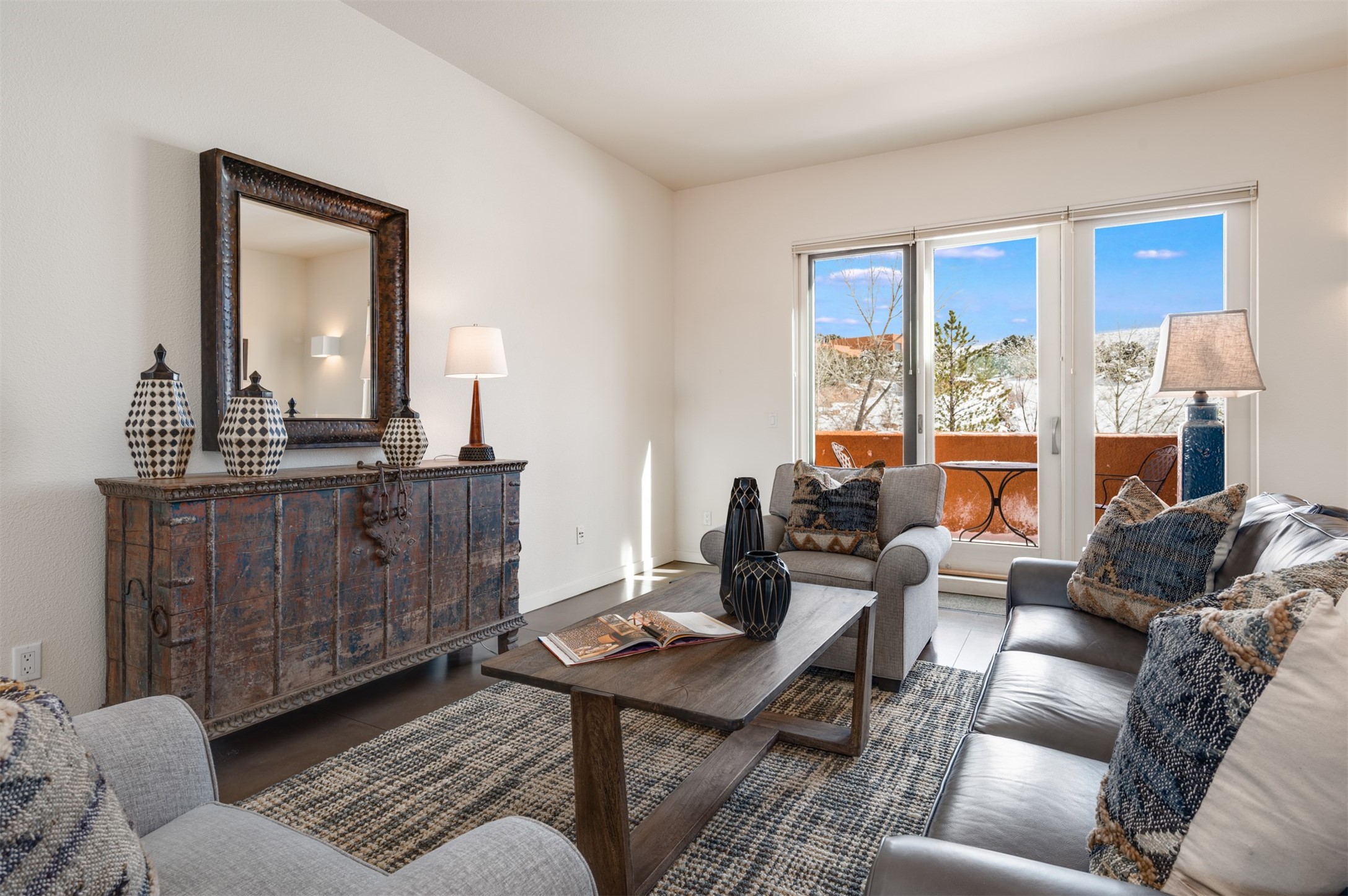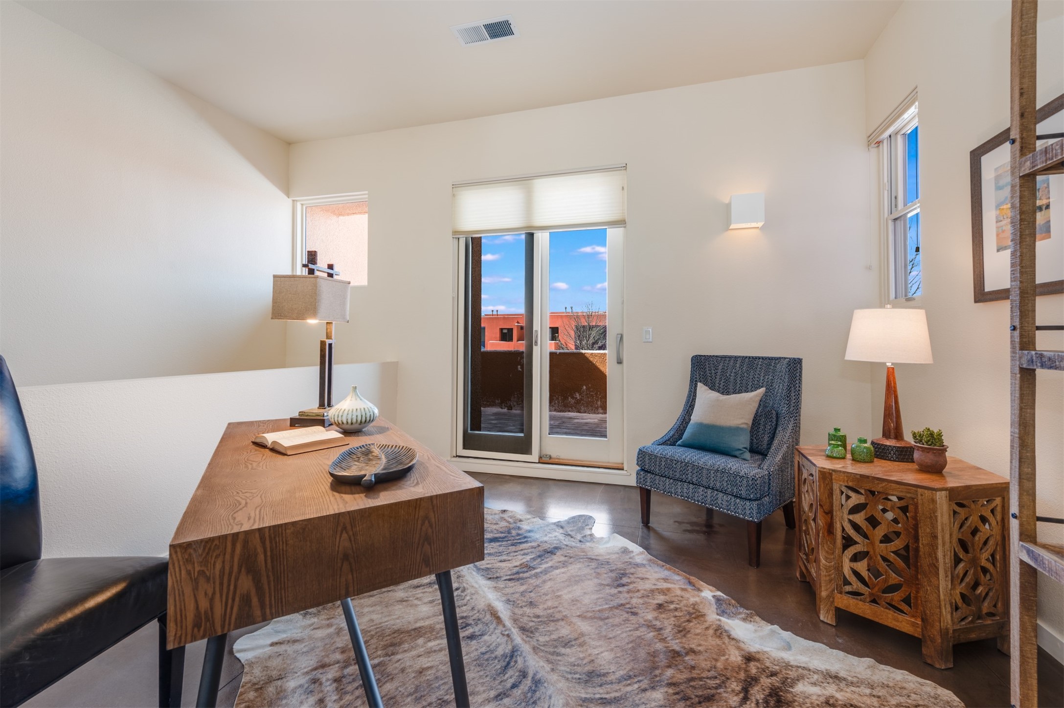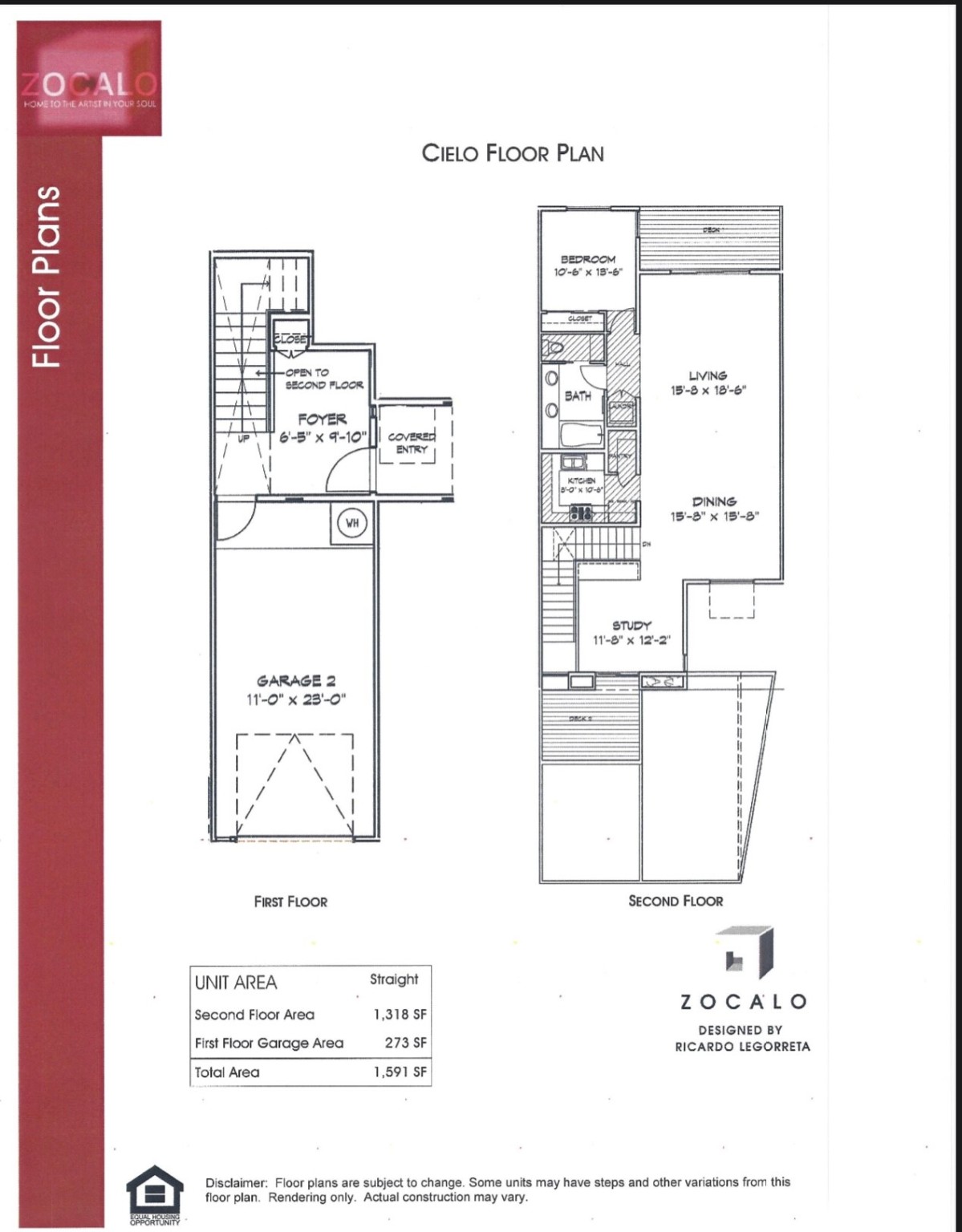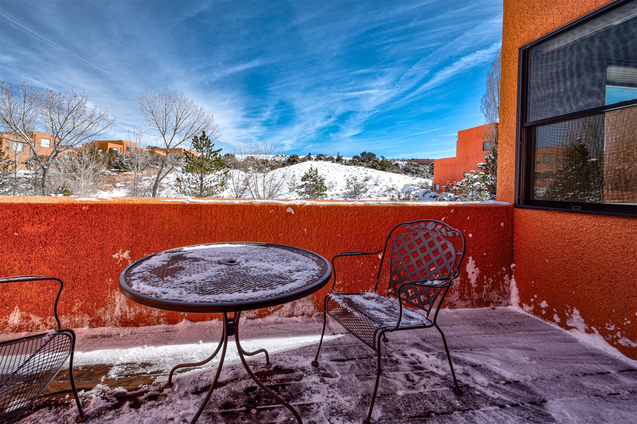 Wonderful loft style two level home with one bedroom, one full bath, and a study. The study may be converted into a second bedroom with minimal remodel. Open floor plan with a lot of light pouring in thru the windows and skylights. Enter thru the front door or the attached garage into an entrance foyer with a closet and up the stairs to the main level. Some features include easy to care stained concrete floors throughout, granite tile in the kitchen counter, travertine stone tile in the bathroom and A/C. The bathroom has a double vanity, a tub/shower combination and a pocket door into a separate water closet with a built-in cabinet. Two outdoor spaces with a balcony off the study and a private deck off the living room, overlooking an open space. One owner condominium. Located in the beautiful Zocalo complex and with close proximity to the clubhouse, pool, spa and fitness center.