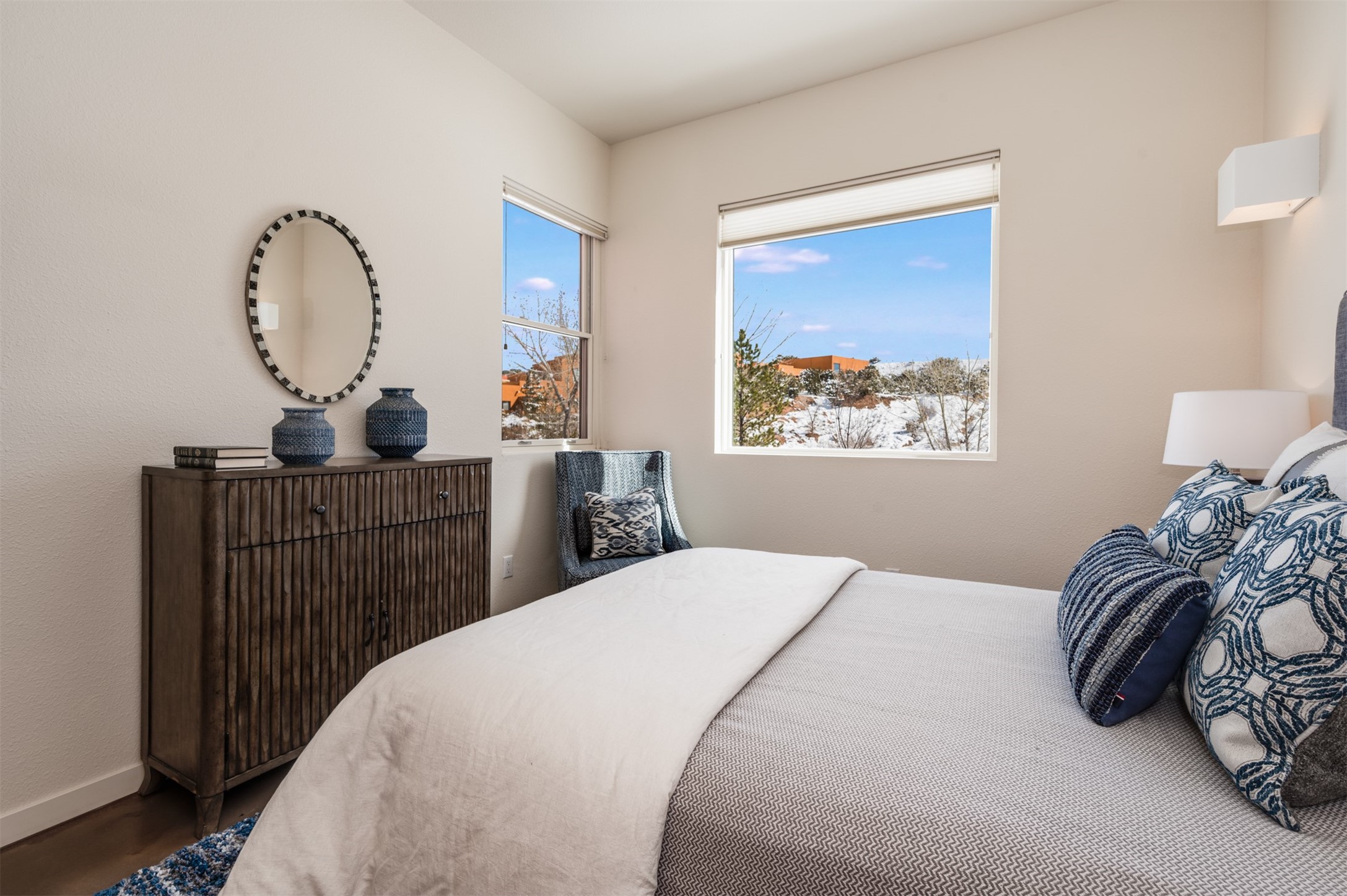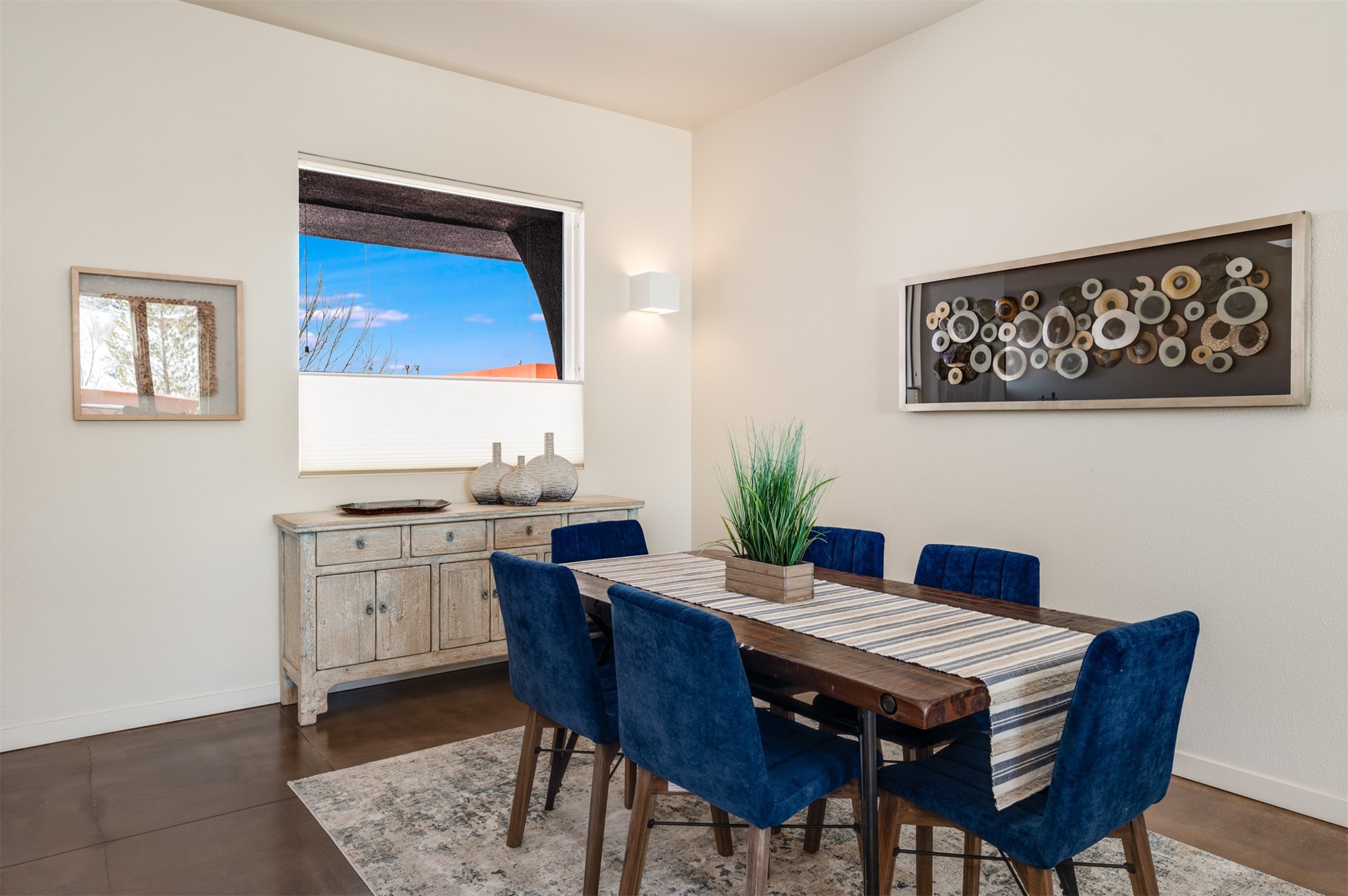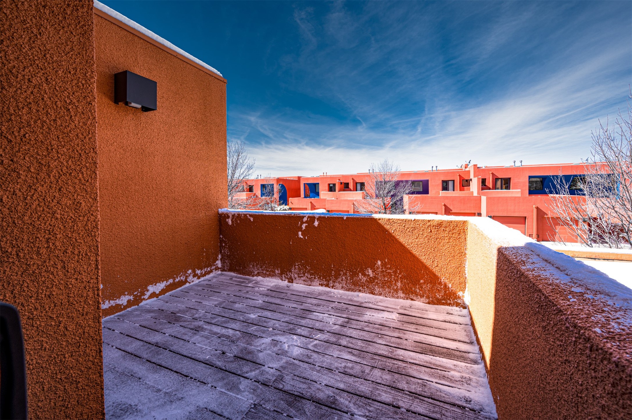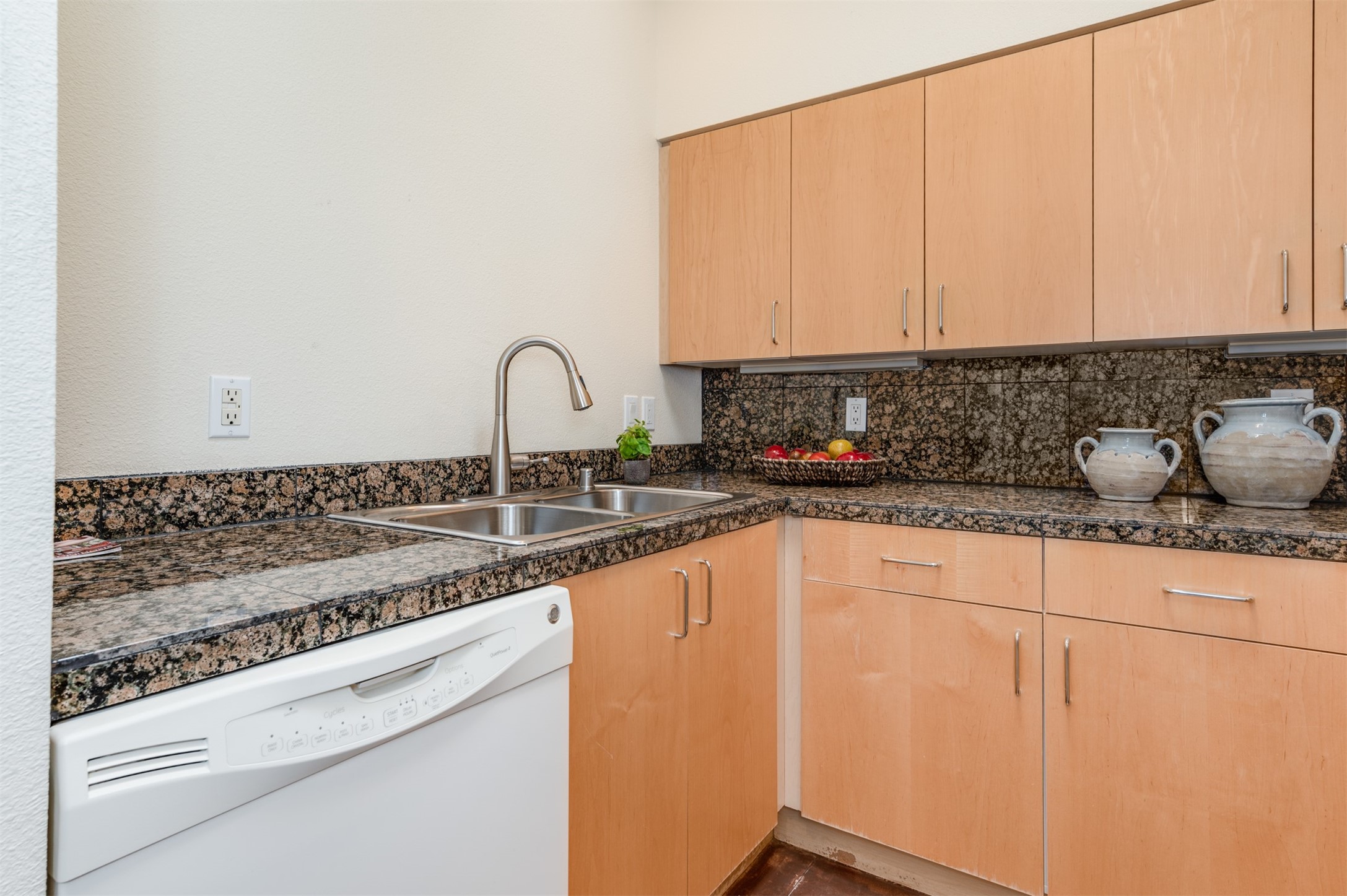 Wonderful loft style two level home with one bedroom, one full bath, and a study. The study may be converted into a second bedroom with minimal remodel. Open floor plan with a lot of light pouring in thru the windows and skylights. Enter thru the front door or the attached garage into an entrance foyer with a closet and up the stairs to the main level. Some features include easy to care stained concrete floors throughout, granite tile in the kitchen counter, travertine stone tile in the bathroom and A/C. The bathroom has a double vanity, a tub/shower combination and a pocket door into a separate water closet with a built-in cabinet. Two outdoor spaces with a balcony off the study and a private deck off the living room, overlooking an open space. One owner condominium. Located in the beautiful Zocalo complex and with close proximity to the clubhouse, pool, spa and fitness center.