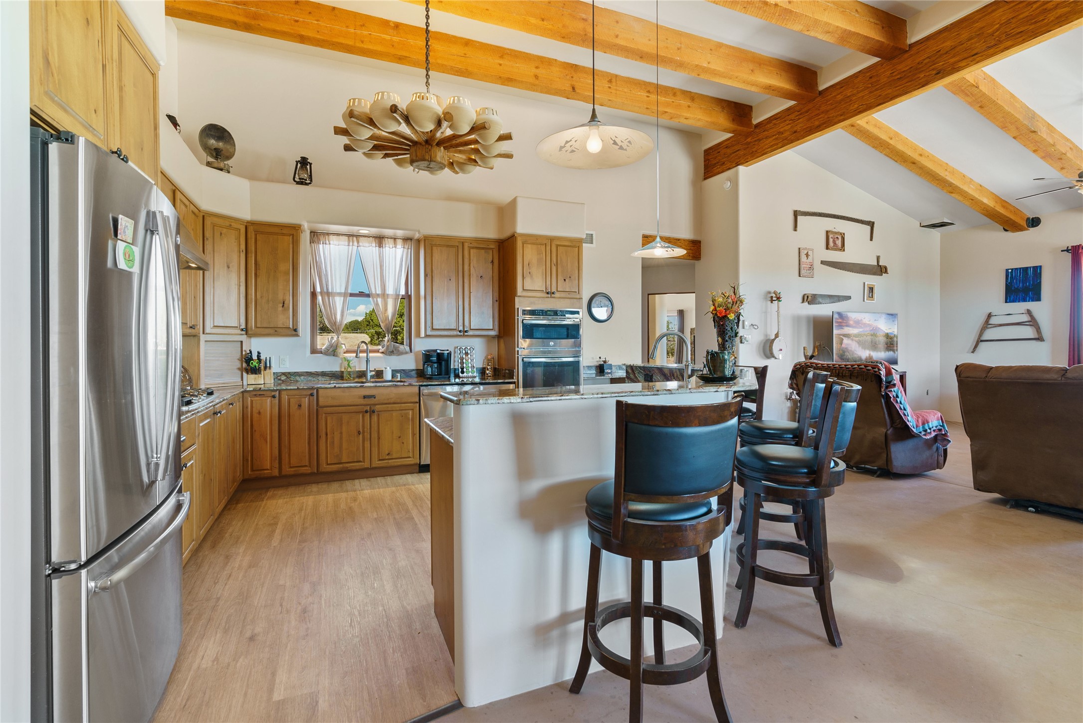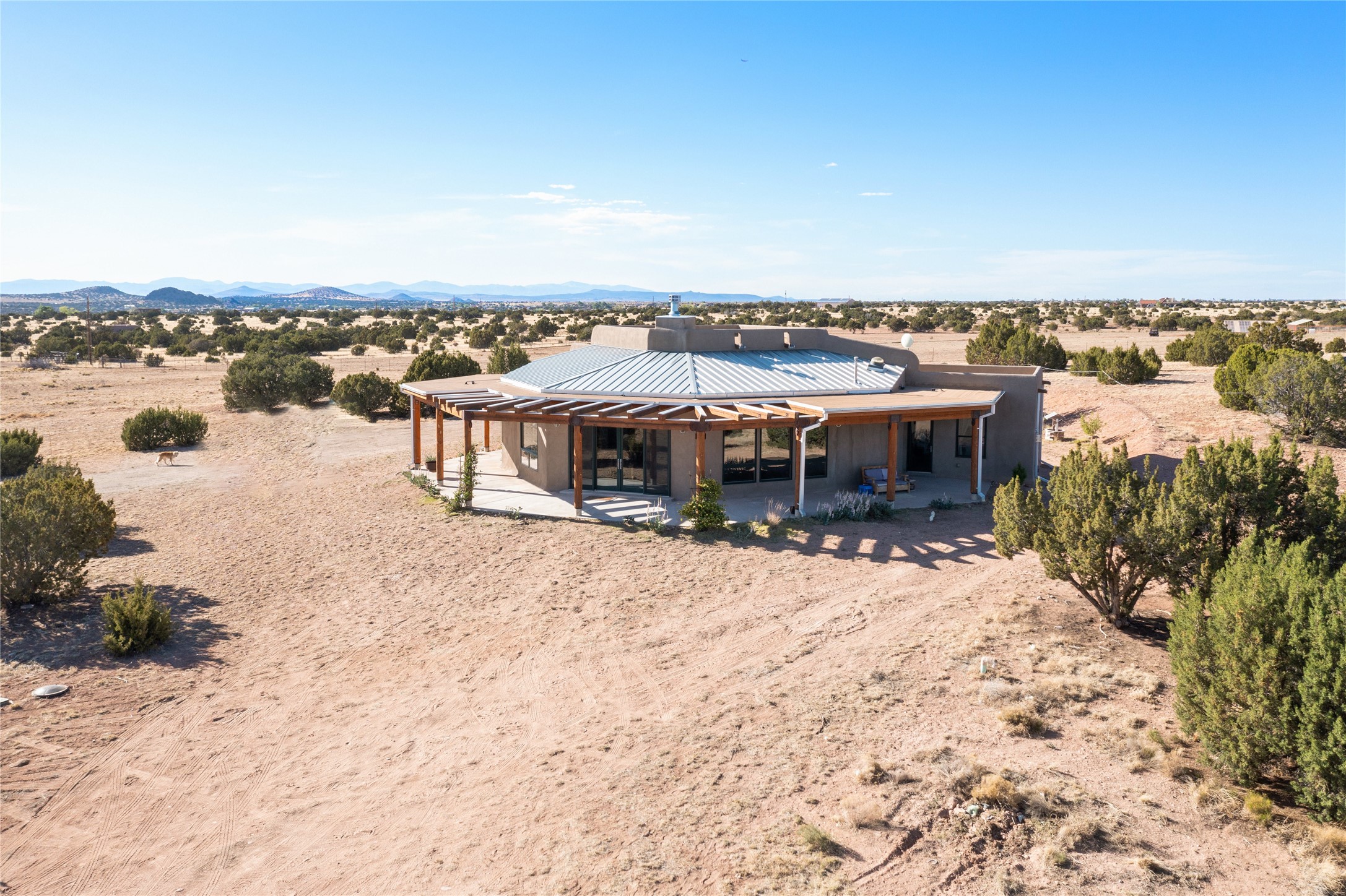 Buyer Sale Contingency with 72 hour FRR. Welcome home - This is the ONE! Close to the infamous star-bound Bonanza Creek Ranch. Stretch out on 10 acres of pristine country, situated on top of a mesa with expanding scenic views of the New Mexican landscape. From the valleys to the mountain tops, you can see it all. This custom-built home was completed in 2014 and offers everything you could imagine. The detail in this home starts with the overall design with many windows perfectly placed for the most impactful views. The home is a sprawling 2,160 square feet with an open floorplan that takes your breath away upon entering.With soaring ceilings to rich wood accents, this home is the epitome of the southwestern style. Stained concrete floors give you an elegant and timeless look as they carry you into each room. Custom blacksmith work by local artist accents the wood beams, cabinets and doors. The granite was hand-picked, showing intense colors and vibrant patterns. The owner's suite offers a standing shower, a jetted tub, dual vanity sinks along with a private commode. Each room is fitted with its own bathroom and exit to the exterior for comfort and ease. On the exterior of the home, you will enjoy a wrap around covered patio along with a private courtyard featuring a built-in grill - a great place for quiet, intimate evenings or showing off while entertaining large parties. This home has been set up with comfort in mind, offering 5 different heating options, ranging from in-floor radiant heat to the gas fireplace in the bedroom. Refrigerated air has been fitted into the home as well so you can enjoy the perfect climate for your needs. The oversized two car garage is set up with ample storage with the option of solar, along with a workshop area with 220v power. This exclusive property features pro-panel stables for your critters, a large barn/workshop, a custom built green house and a Morgan Shed. Structural Insulated Panel (SIP) Construction offering a R48 value on the roof and an R36 value in the walls. This type of construction is designed to save energy to save you money on heating and cooling costs. Minutes from center Santa Fe, Madrid and Albuquerque. You won't want to miss this one!
