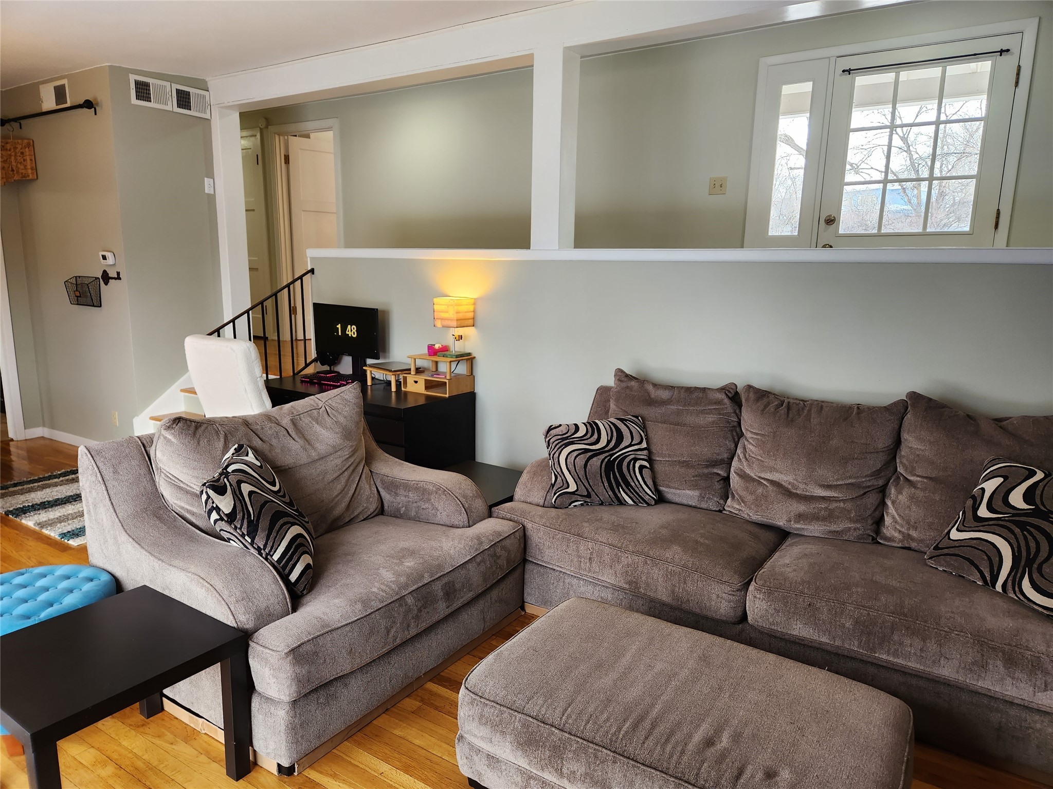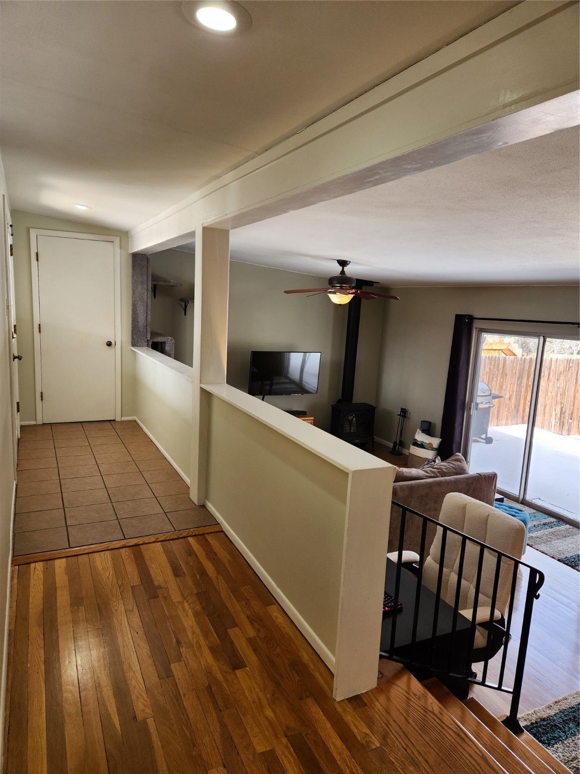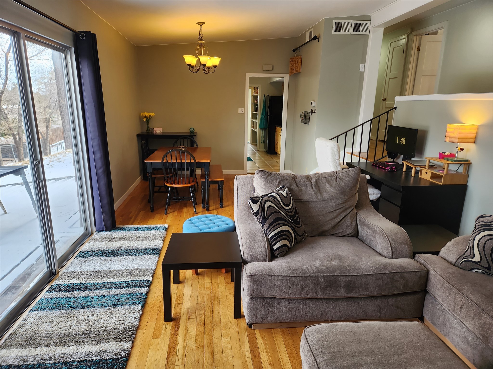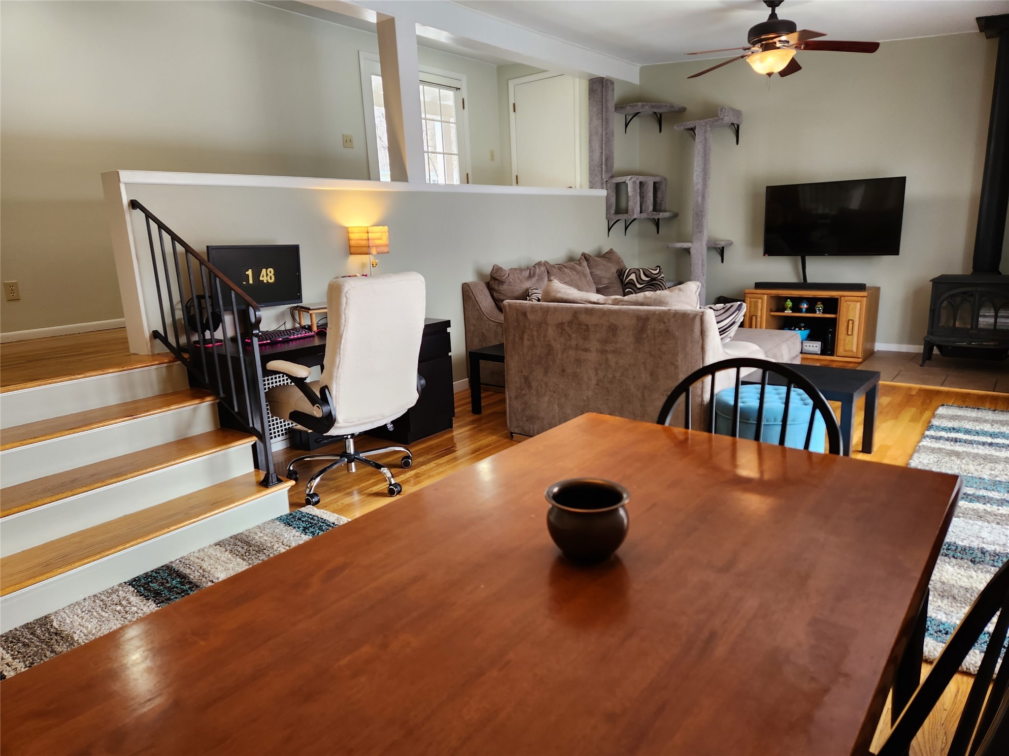 You will love this charming home in a great location, with a fantastic yard and great living spaces! With two bedrooms and two bathrooms, plus bonus laundry and storage spaces, this home is a gem! Enter the home under a cozy covered entryway. Upon entering, you will walk into the landing with coat closet, room for shoes and space for welcoming your guests. Continuing down the hallway you'll find two spacious bedrooms with large windows offering abundant natural light. The updated bathroom is situated between the bedrooms for convenience. Down a few stairs you'll walk into the sunken living room area. The comfortable living space is open and bright with high ceilings and a large sliding glass door opening to the beautiful nature outside. A woodstove keeps the home warm and cozy in the winter months and adds charming ambiance to the space. Through the doorway you will find the updated kitchen with gas range and great windows looking outside toward the Sangres. You will love preparing your meals in this lovely kitchen. Bonus space off the kitchen includes pantry, storage, as well as a laundry room with prep sink and a 2nd bathroom with shower. The large gently sloped back yard offers opportunities for gardening, playing and relaxing on the deck or firepit patio area. A large workshop/shed with power offers additional storage or hobby space. Don't miss this great opportunity to live in this beautiful home in Los Alamos!