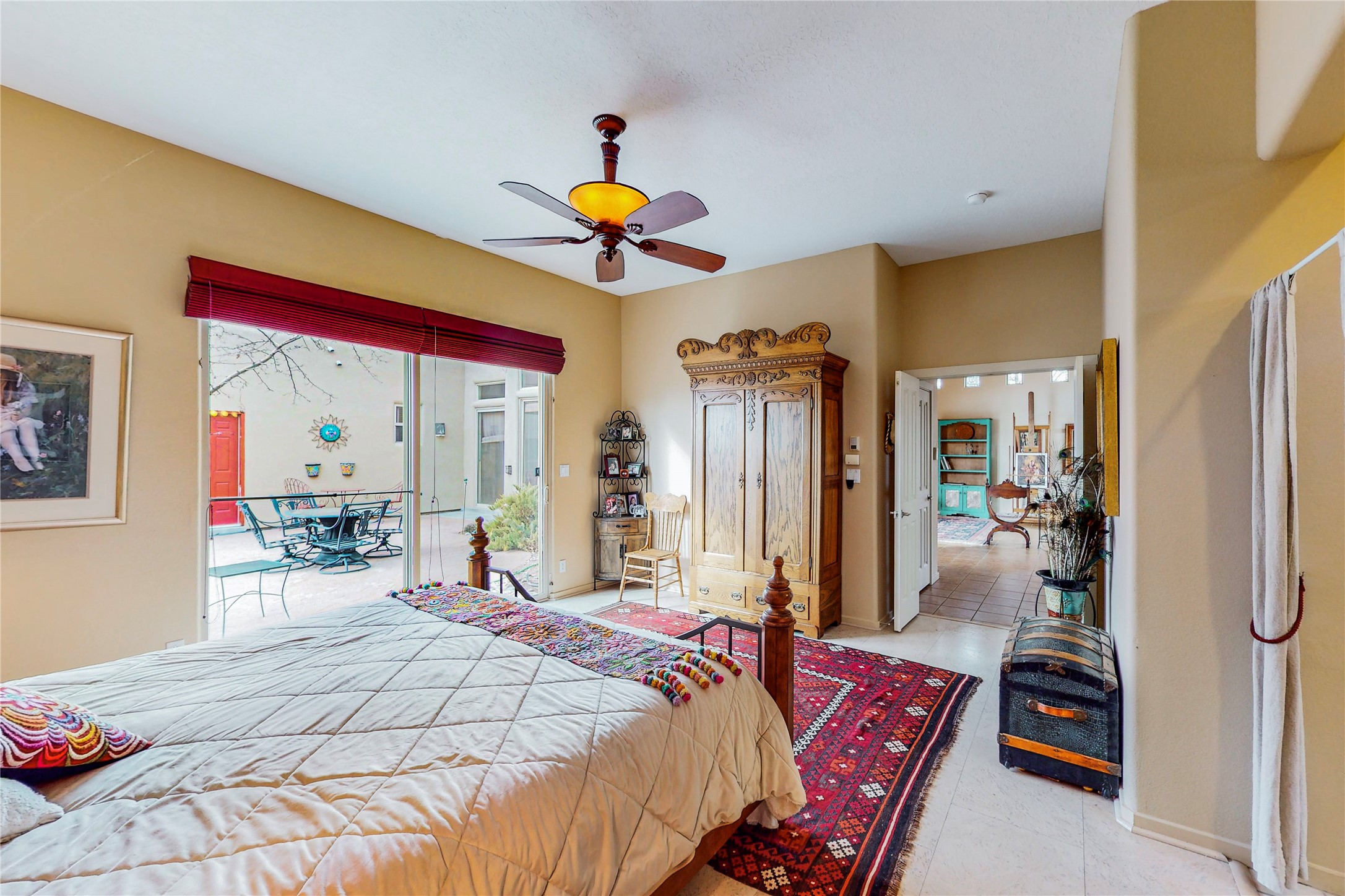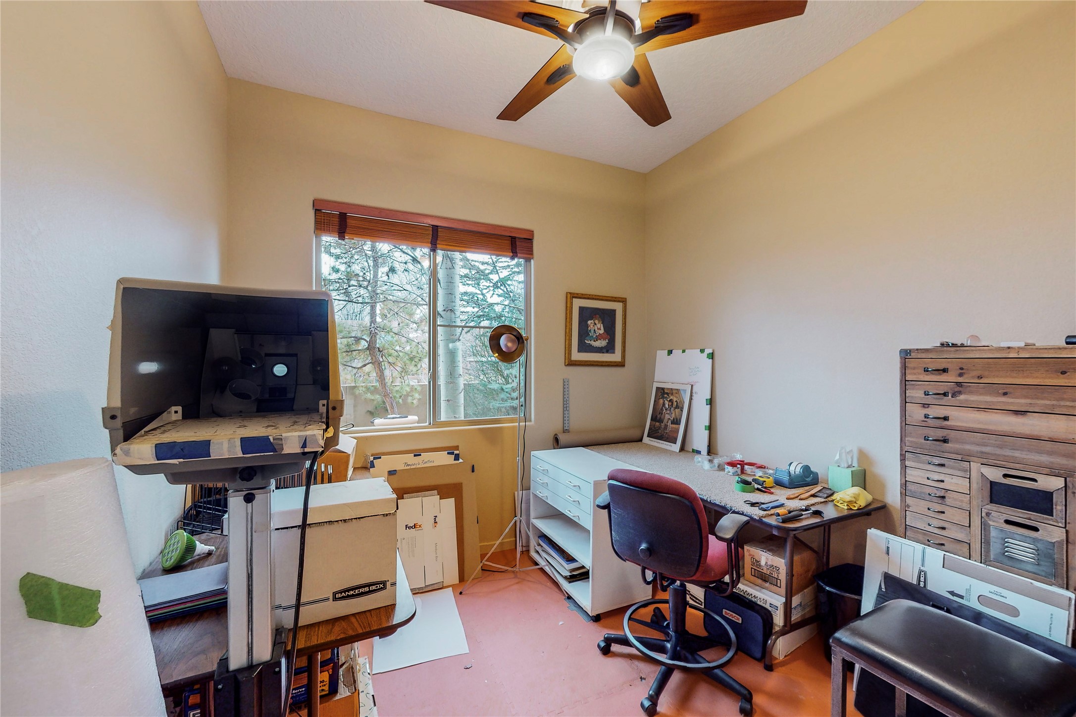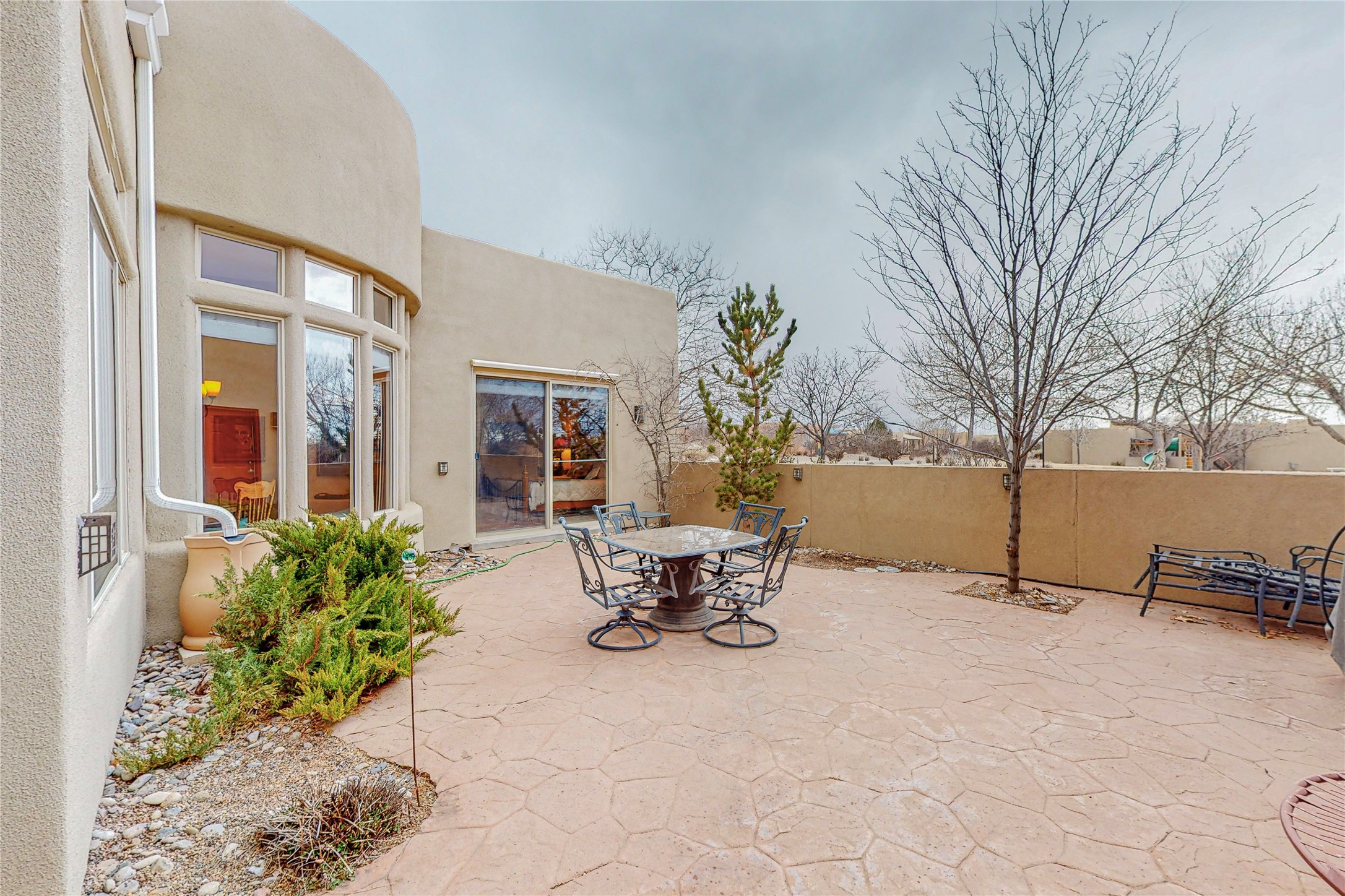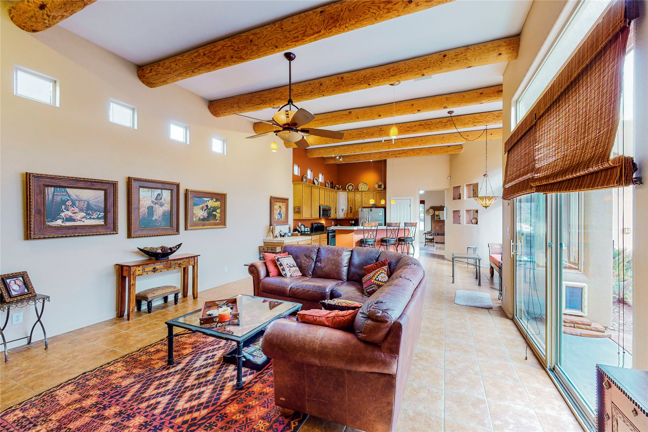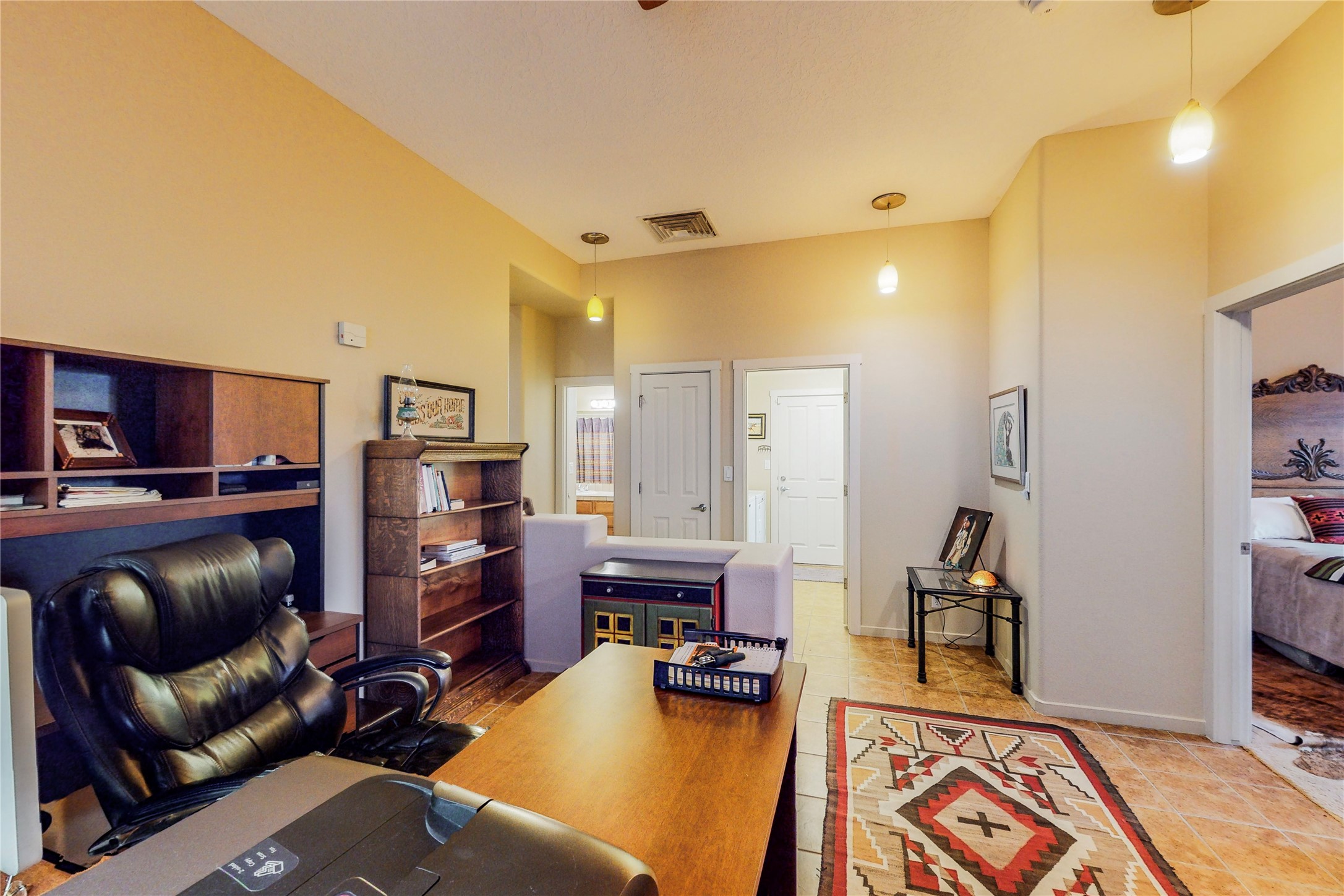 Not too large, not too small, just right! This house will cause you to smile, because it has all the right rooms in the right places. Sun-filled great room allows for TV viewing while someone makes the snacks in the kitchen. As you enter the front door you will walk into the living room and dining room, both generous and welcoming rooms. Tucked aside in this front area is the large primary bedroom, completely separated from the rest of the house. Two more bedrooms are at the other end of the house, with a large bathroom in the hallway. There is a generous home office space, which could also be a kids' game room, or even a yoga retreat? You will be really surprised at the big closets and extra storage throughout the house. The attached two car garage is direct entry. For outdoor spaces, there is a large sun-filled patio with room for eating, lounging, and grilling. The patio overlooks a large park, which is part of the neighborhood and tended by the HOA. This expansive area is a great park to walk a dog or use as a playground for kids. There is a private gated garden area just at the rear of the house, a sweet area with many perennials. Mature greenery surrounds the property. The location is ideal - property almost feels like a corner lot with the park next door. In the photo section there is a floor plan, which will help explain the flow of the house. And, you'll notice the artwork in the house, all created by the seller, which will enhance your viewing!