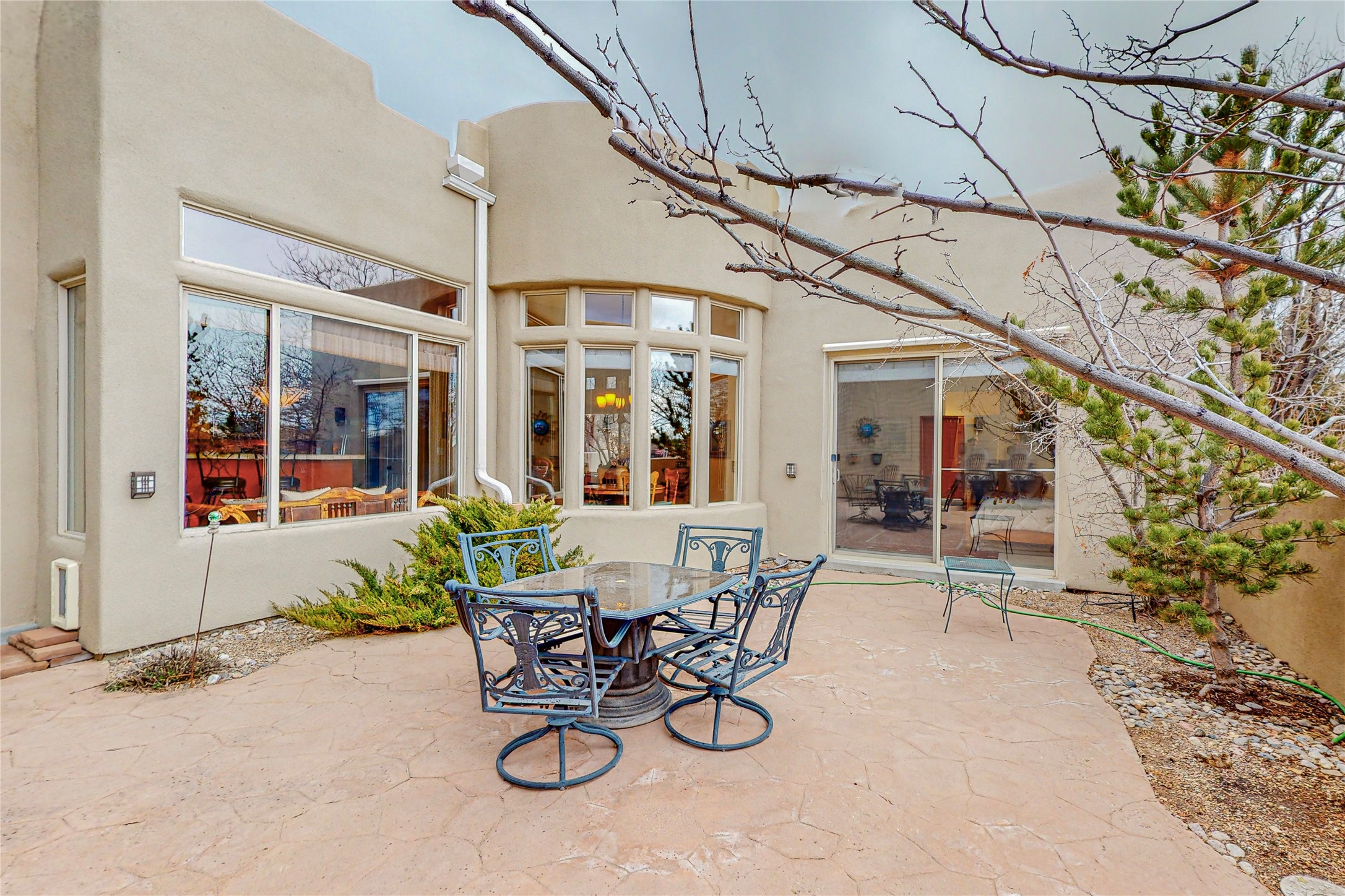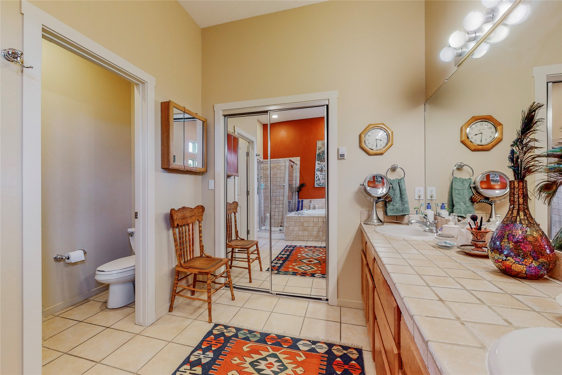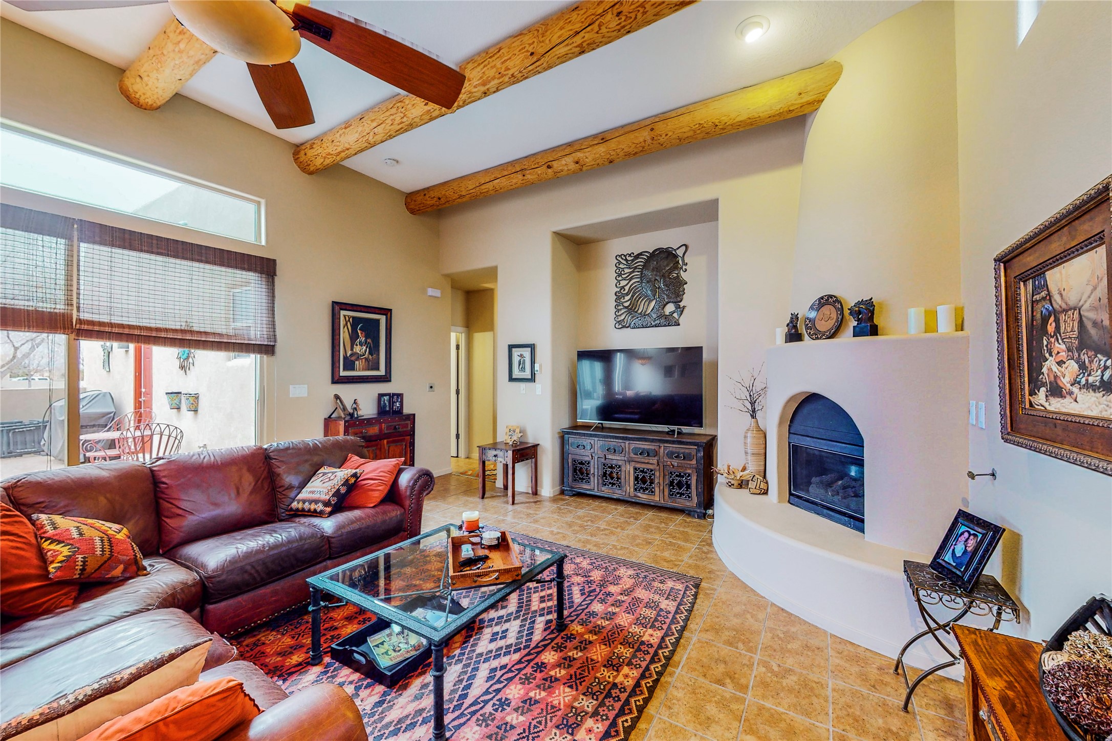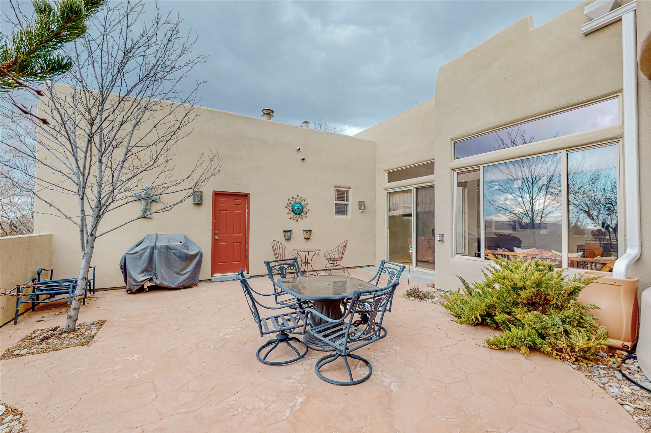Not too large, not too small, just right! This house will cause you to smile, because it has all the right rooms in the right places. Sun-filled great room allows for TV viewing while someone makes the snacks in the kitchen. As you enter the front door you will walk into the living room and dining room, both generous and welcoming rooms. Tucked aside in this front area is the large primary bedroom, completely separated from the rest of the house. Two more bedrooms are at the other end of the house, with a large bathroom in the hallway. There is a generous home office space, which could also be a kids' game room, or even a yoga retreat? You will be really surprised at the big closets and extra storage throughout the house. The attached two car garage is direct entry. For outdoor spaces, there is a large sun-filled patio with room for eating, lounging, and grilling. The patio overlooks a large park, which is part of the neighborhood and tended by the HOA. This expansive area is a great park to walk a dog or use as a playground for kids. There is a private gated garden area just at the rear of the house, a sweet area with many perennials. Mature greenery surrounds the property. The location is ideal - property almost feels like a corner lot with the park next door. In the photo section there is a floor plan, which will help explain the flow of the house. And, you'll notice the artwork in the house, all created by the seller, which will enhance your viewing!