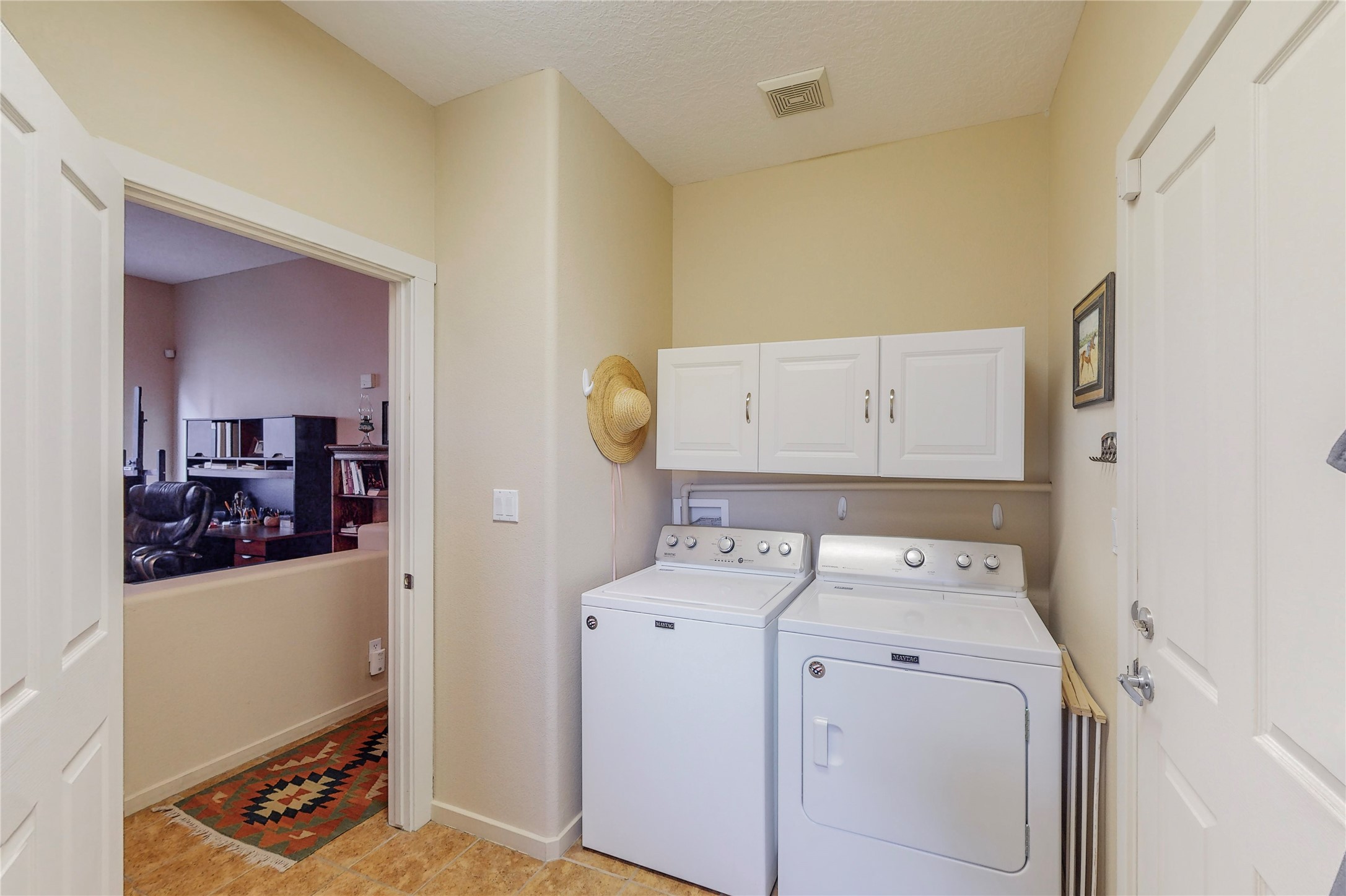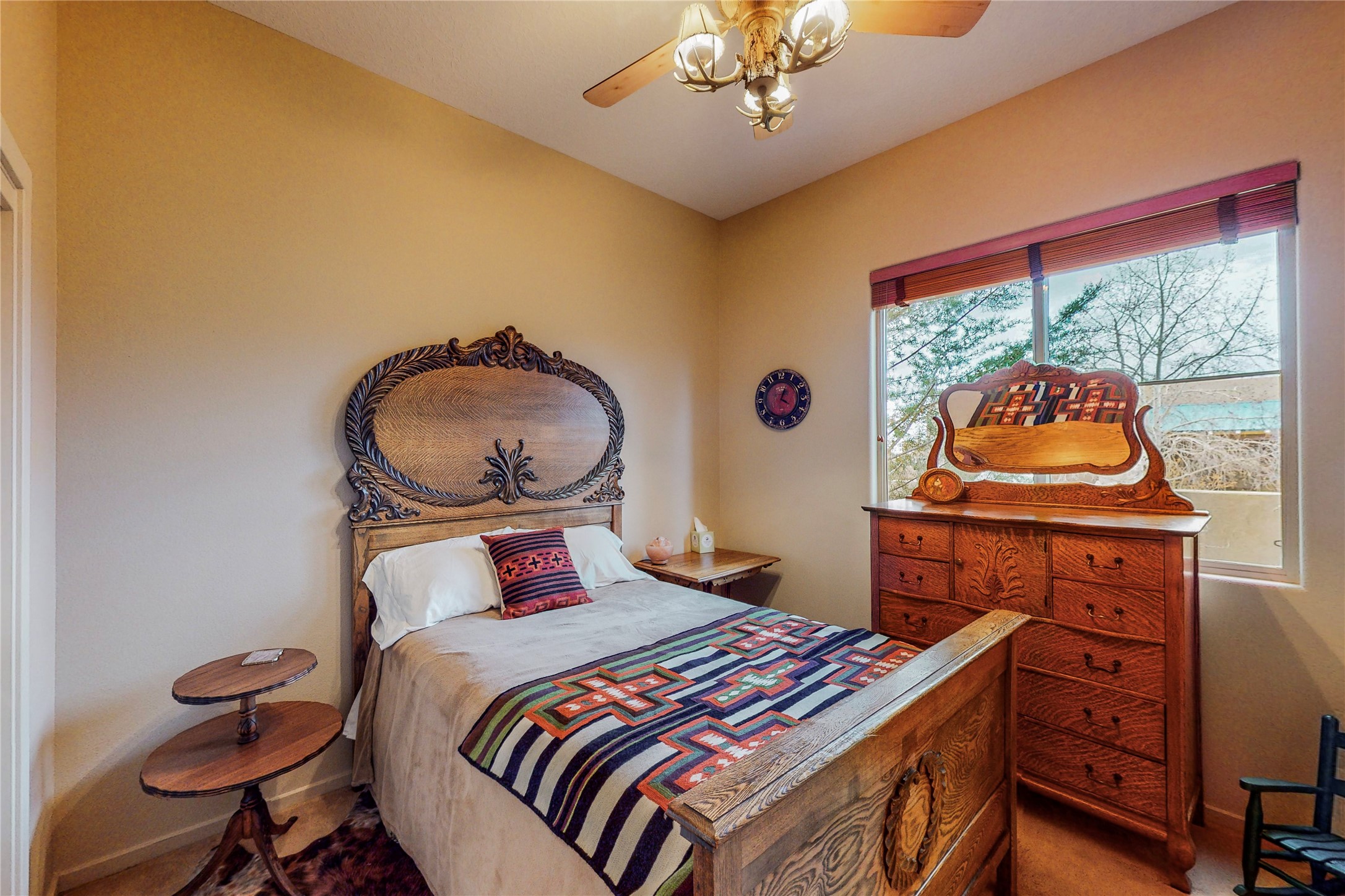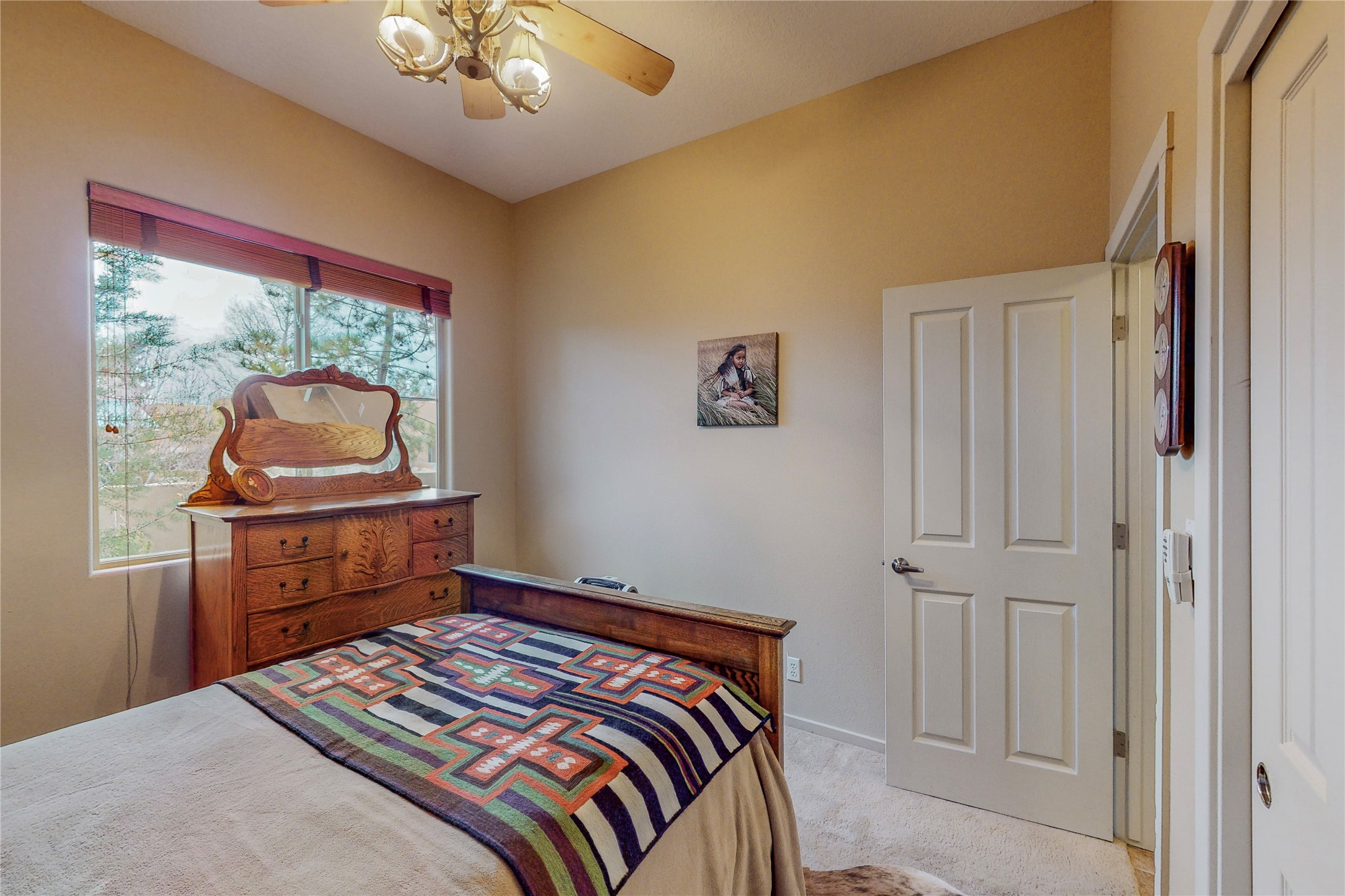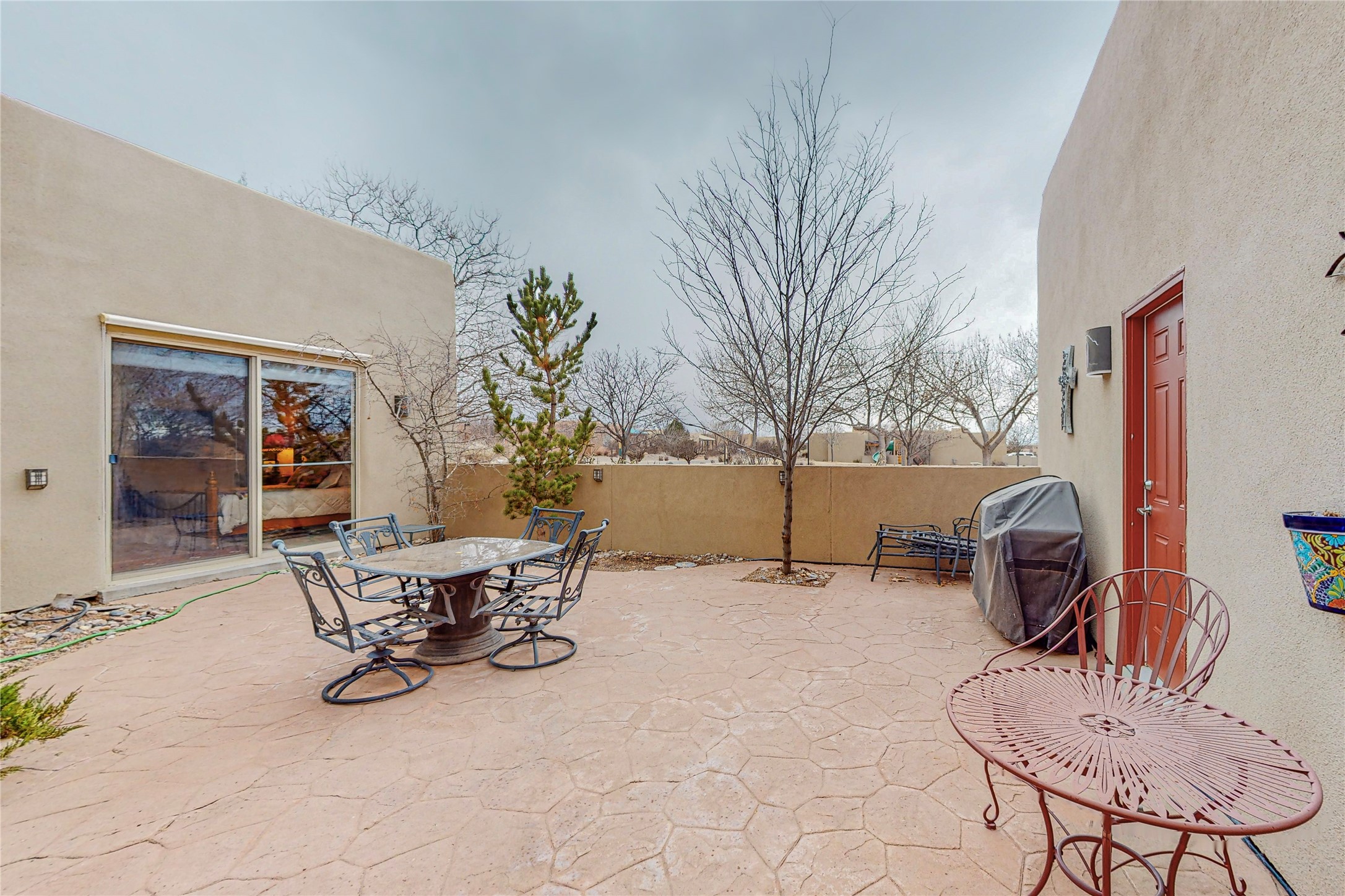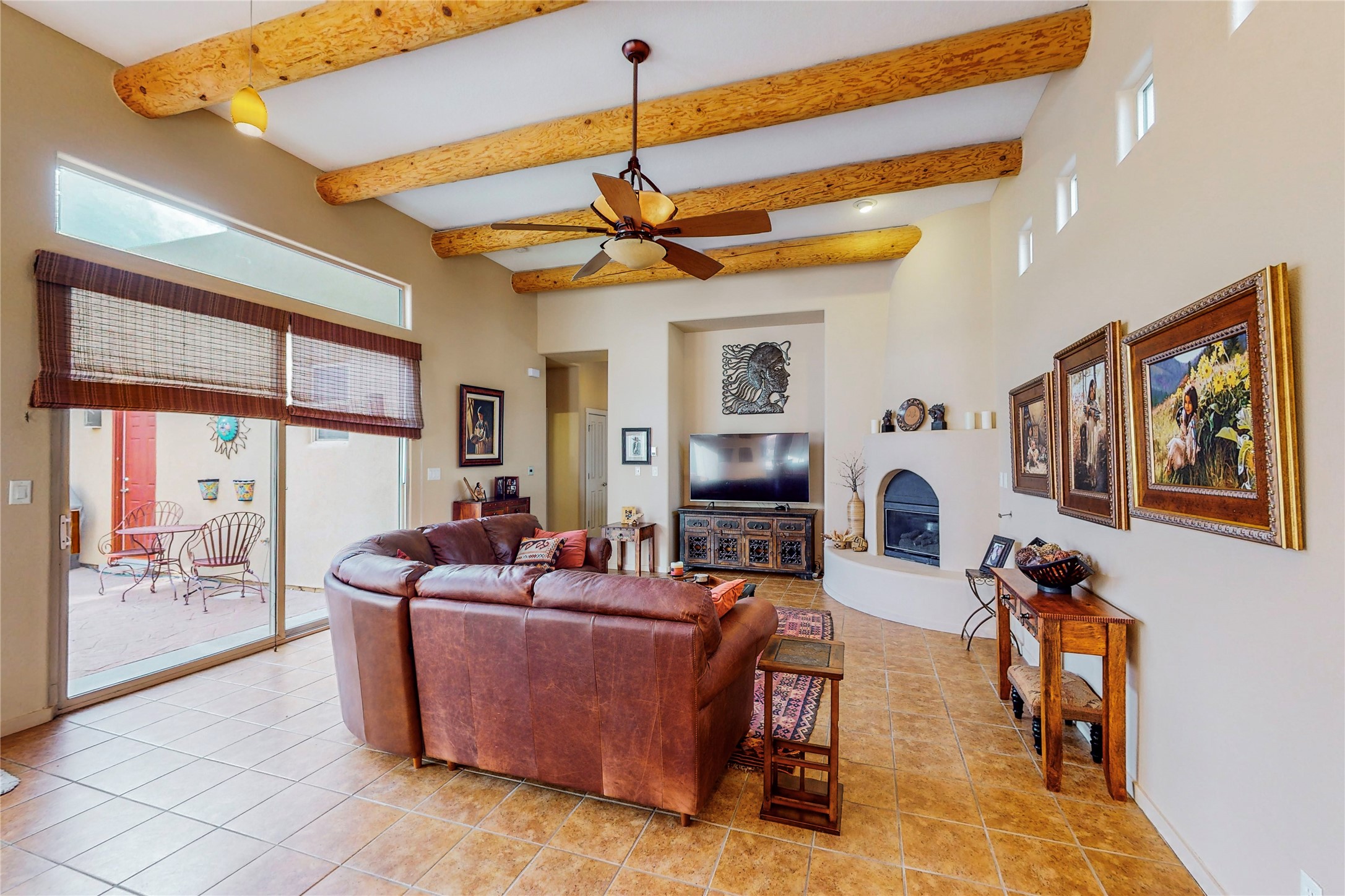 Not too large, not too small, just right! This house will cause you to smile, because it has all the right rooms in the right places. Sun-filled great room allows for TV viewing while someone makes the snacks in the kitchen. As you enter the front door you will walk into the living room and dining room, both generous and welcoming rooms. Tucked aside in this front area is the large primary bedroom, completely separated from the rest of the house. Two more bedrooms are at the other end of the house, with a large bathroom in the hallway. There is a generous home office space, which could also be a kids' game room, or even a yoga retreat? You will be really surprised at the big closets and extra storage throughout the house. The attached two car garage is direct entry. For outdoor spaces, there is a large sun-filled patio with room for eating, lounging, and grilling. The patio overlooks a large park, which is part of the neighborhood and tended by the HOA. This expansive area is a great park to walk a dog or use as a playground for kids. There is a private gated garden area just at the rear of the house, a sweet area with many perennials. Mature greenery surrounds the property. The location is ideal - property almost feels like a corner lot with the park next door. In the photo section there is a floor plan, which will help explain the flow of the house. And, you'll notice the artwork in the house, all created by the seller, which will enhance your viewing!
