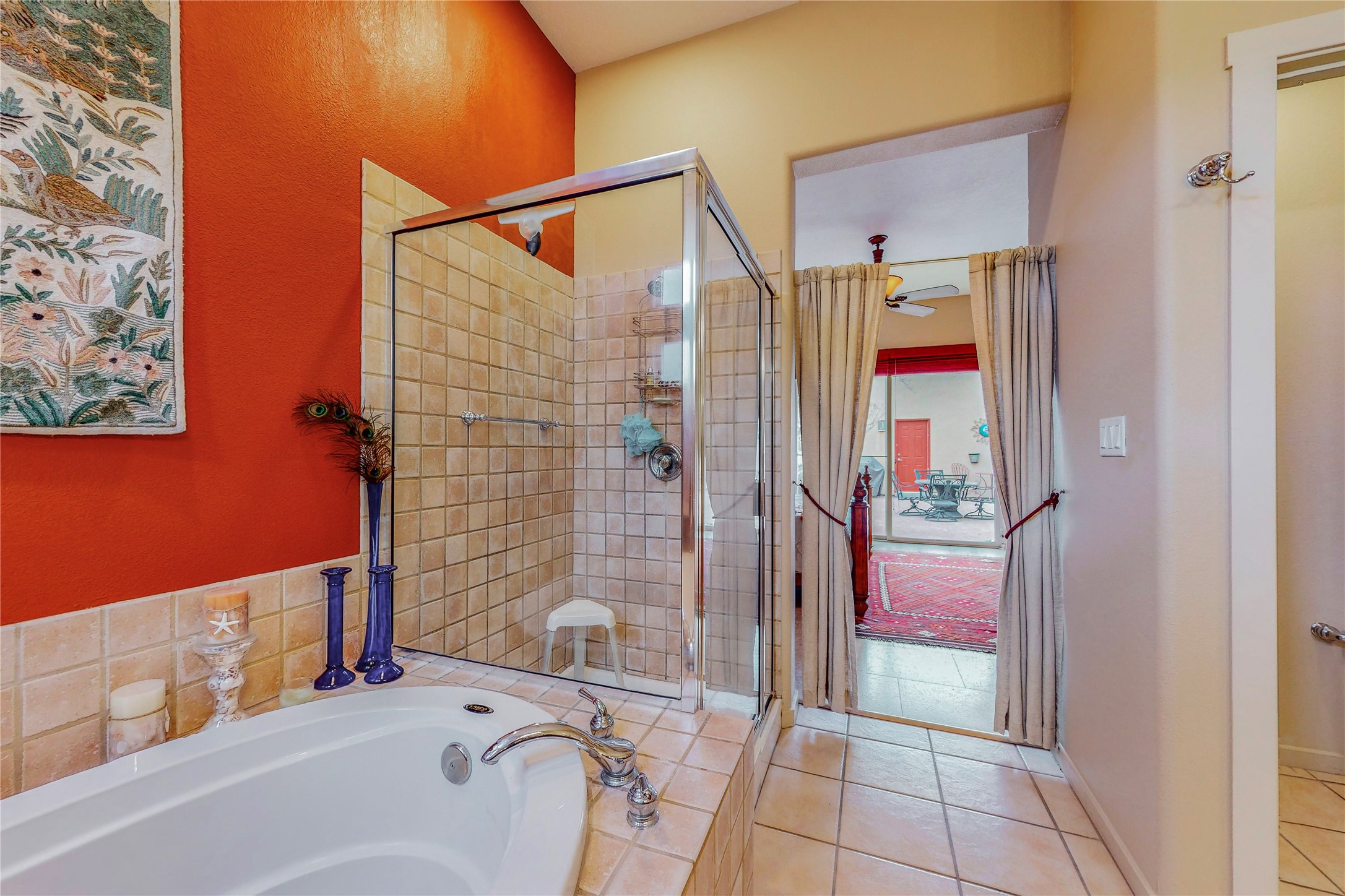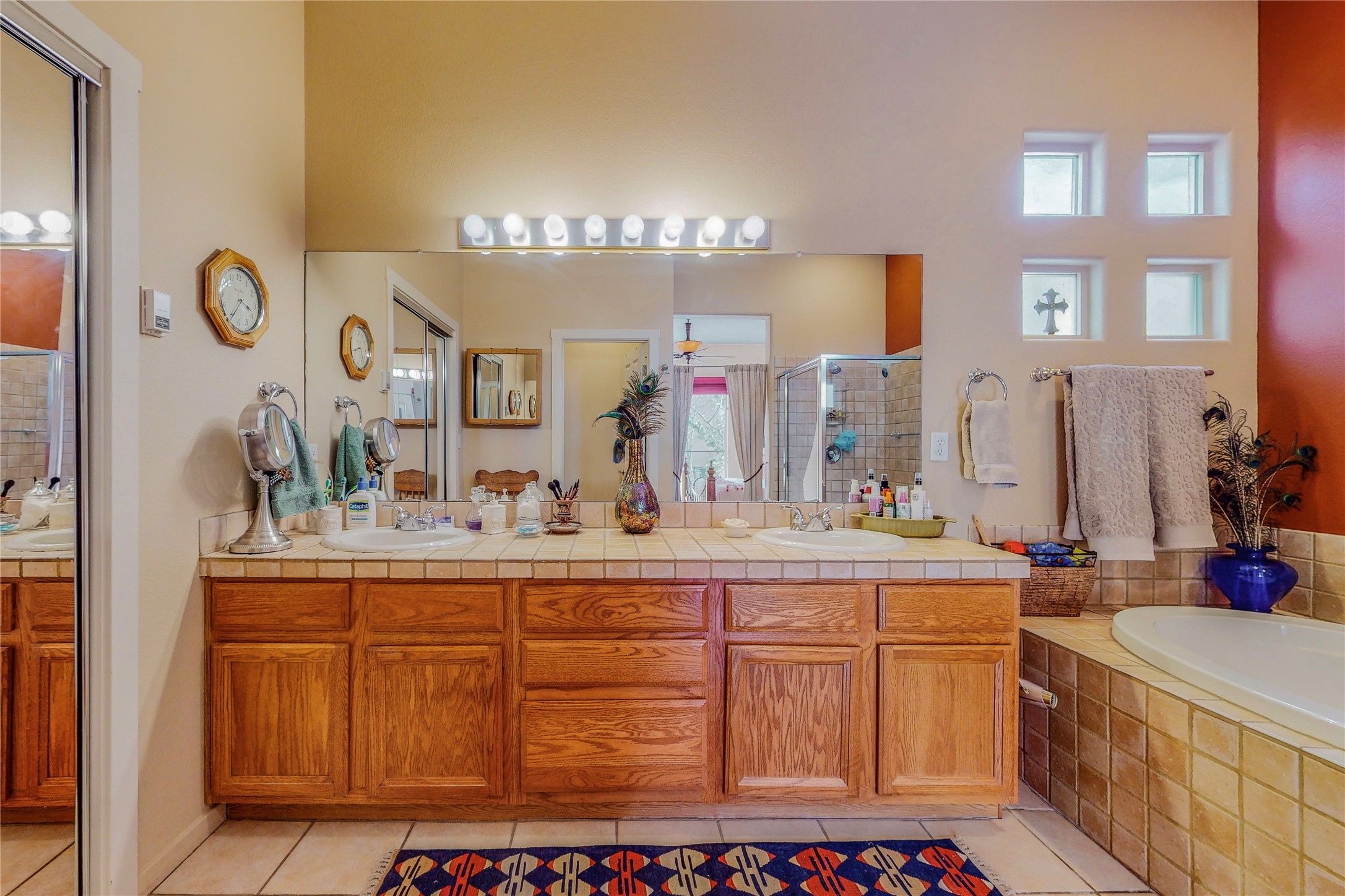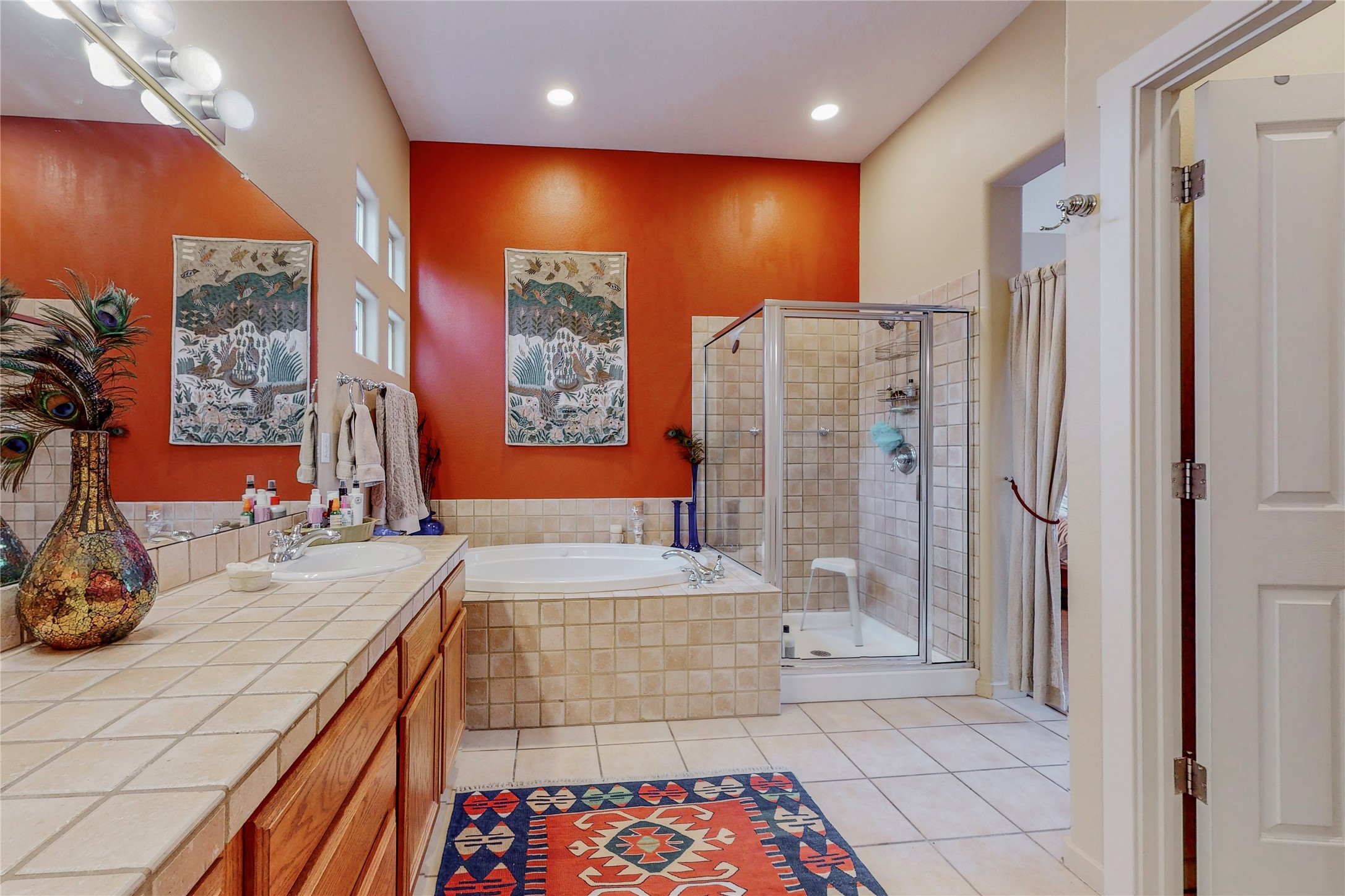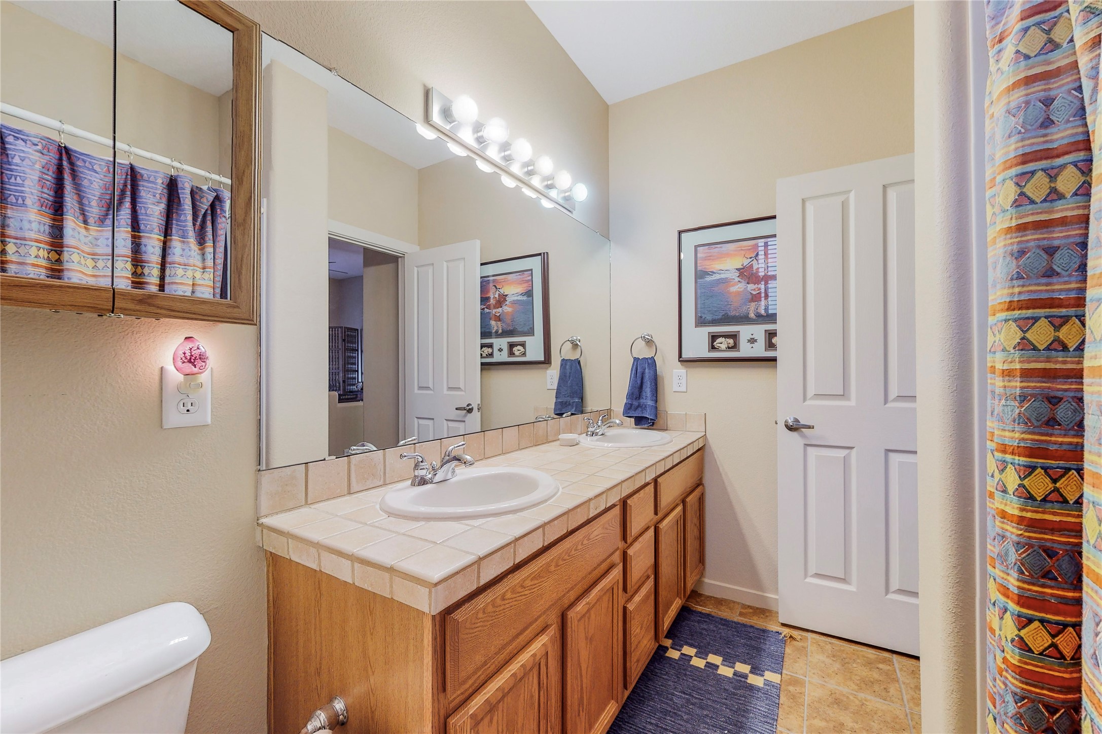 Not too large, not too small, just right! This house will cause you to smile, because it has all the right rooms in the right places. Sun-filled great room allows for TV viewing while someone makes the snacks in the kitchen. As you enter the front door you will walk into the living room and dining room, both generous and welcoming rooms. Tucked aside in this front area is the large primary bedroom, completely separated from the rest of the house. Two more bedrooms are at the other end of the house, with a large bathroom in the hallway. There is a generous home office space, which could also be a kids' game room, or even a yoga retreat? You will be really surprised at the big closets and extra storage throughout the house. The attached two car garage is direct entry. For outdoor spaces, there is a large sun-filled patio with room for eating, lounging, and grilling. The patio overlooks a large park, which is part of the neighborhood and tended by the HOA. This expansive area is a great park to walk a dog or use as a playground for kids. There is a private gated garden area just at the rear of the house, a sweet area with many perennials. Mature greenery surrounds the property. The location is ideal - property almost feels like a corner lot with the park next door. In the photo section there is a floor plan, which will help explain the flow of the house. And, you'll notice the artwork in the house, all created by the seller, which will enhance your viewing!