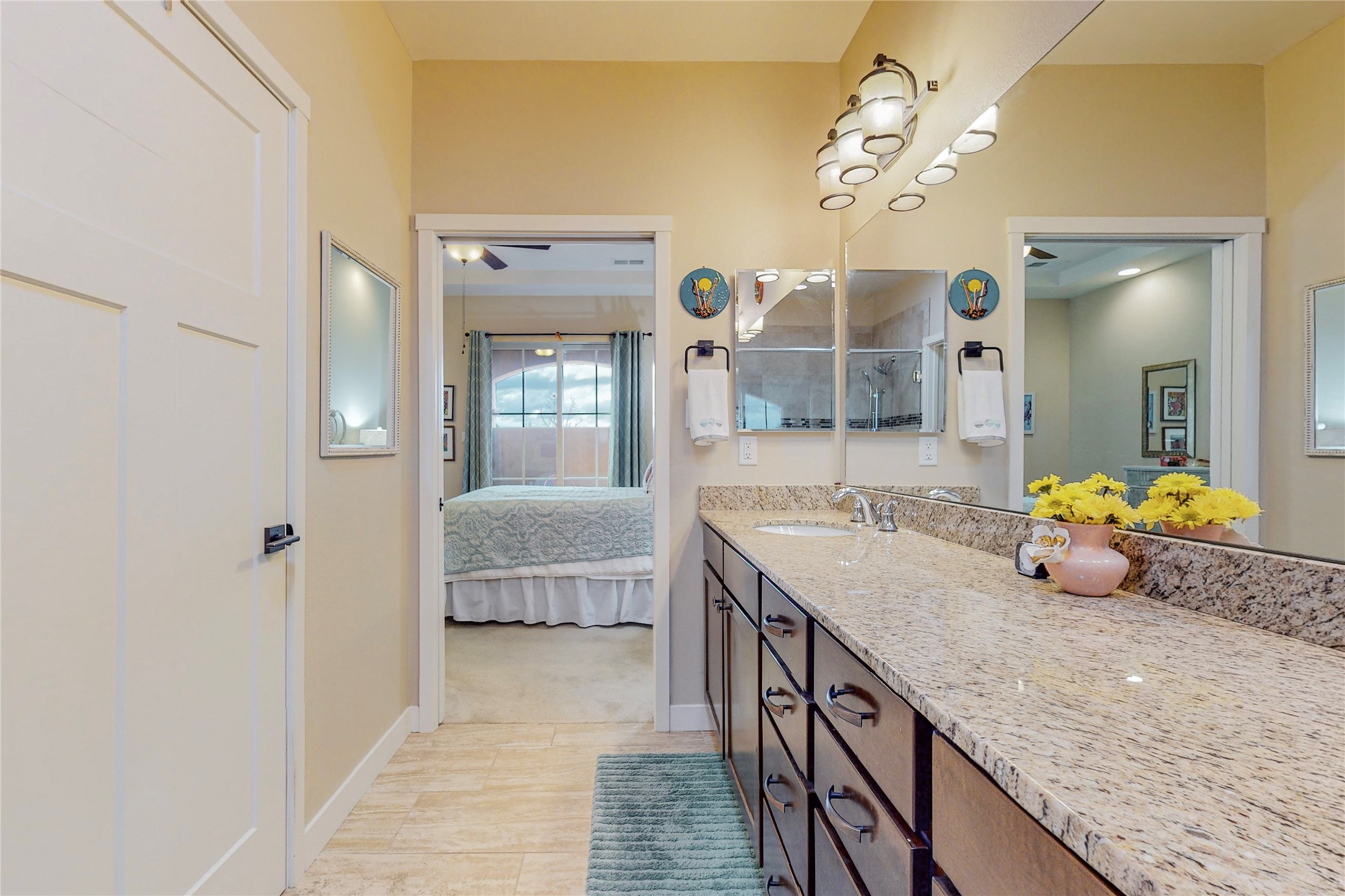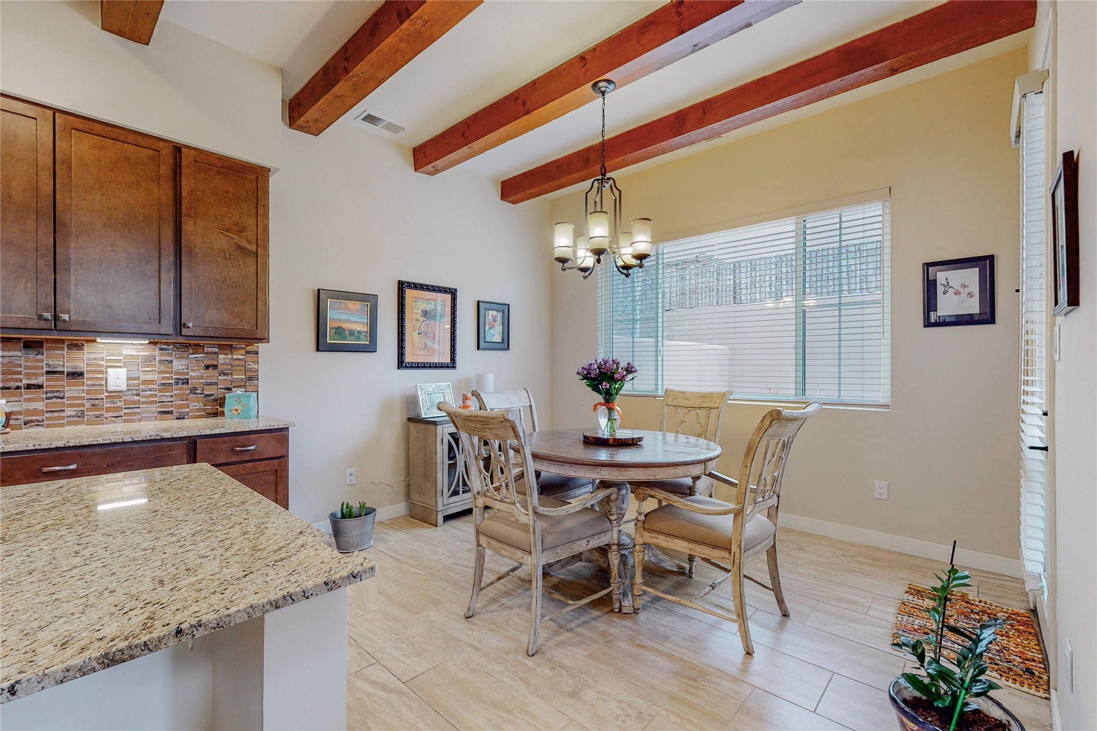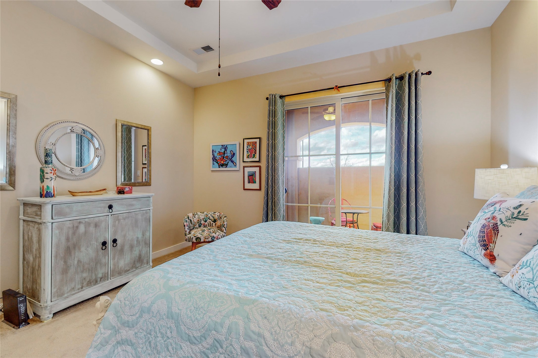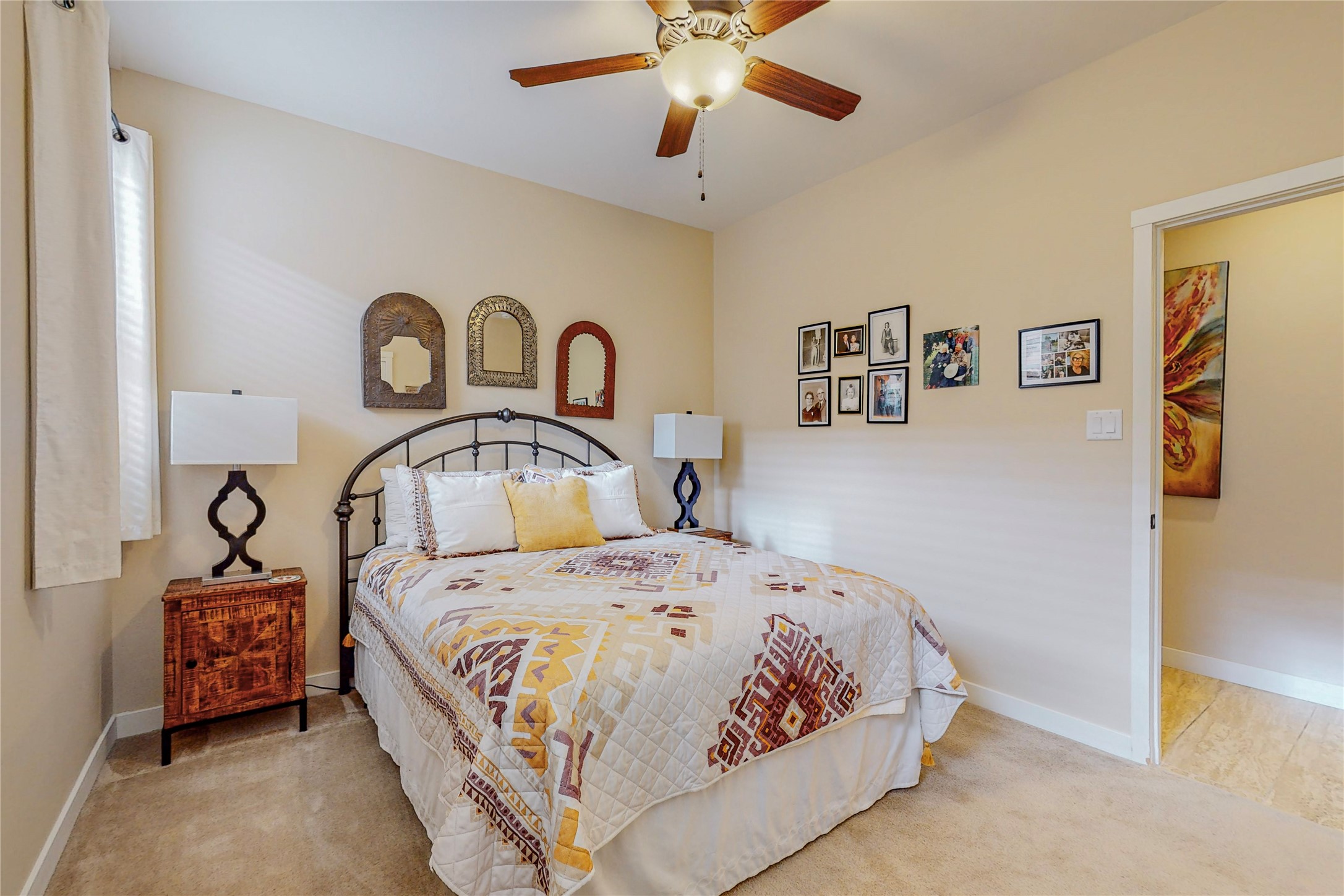 Open concept living, this floor plan allows abundant natural light & easy living. Offers a spacious primary suite and two additional guest rooms, ideal for your den/office/studio with two outdoor covered portals. High ceilings with beams, granite countertops, hardwood cabinets, walk-in closets & pantry, a spacious kitchen island, all Kitchen Aid Stainless Steel appliances and refrigerated A/C are a few of the fine living features. This home is designed without any steps and provides ease of accessibility. Villas di Toscana is a gated community ideal for full or part-time residency with walking paths, small parks, and open space. Centrally located, the neighborhood is just minutes from the historic downtown plaza, museums & galleries, skiing, hiking, shopping and entertainment venues. Welcome home to Villas di Toscana!