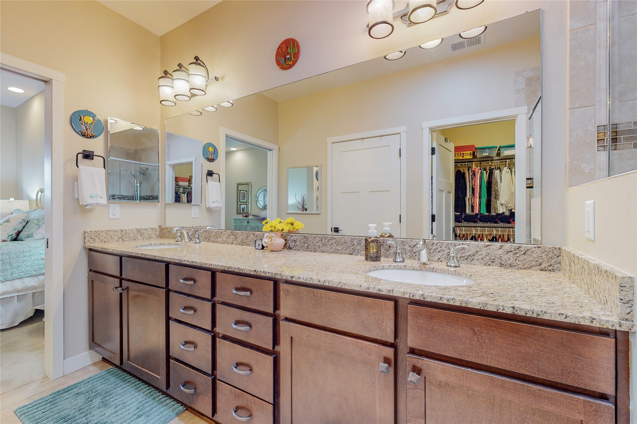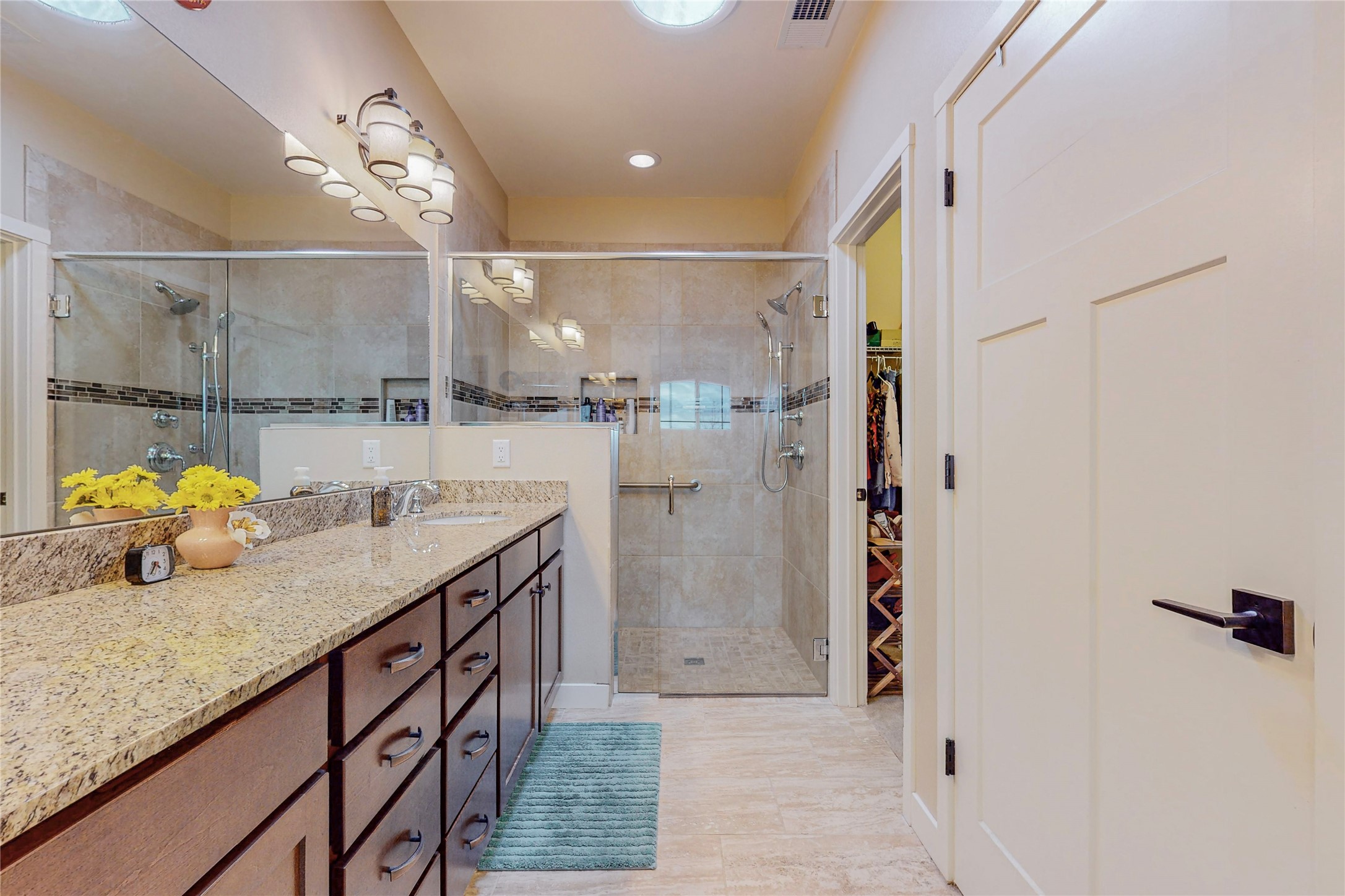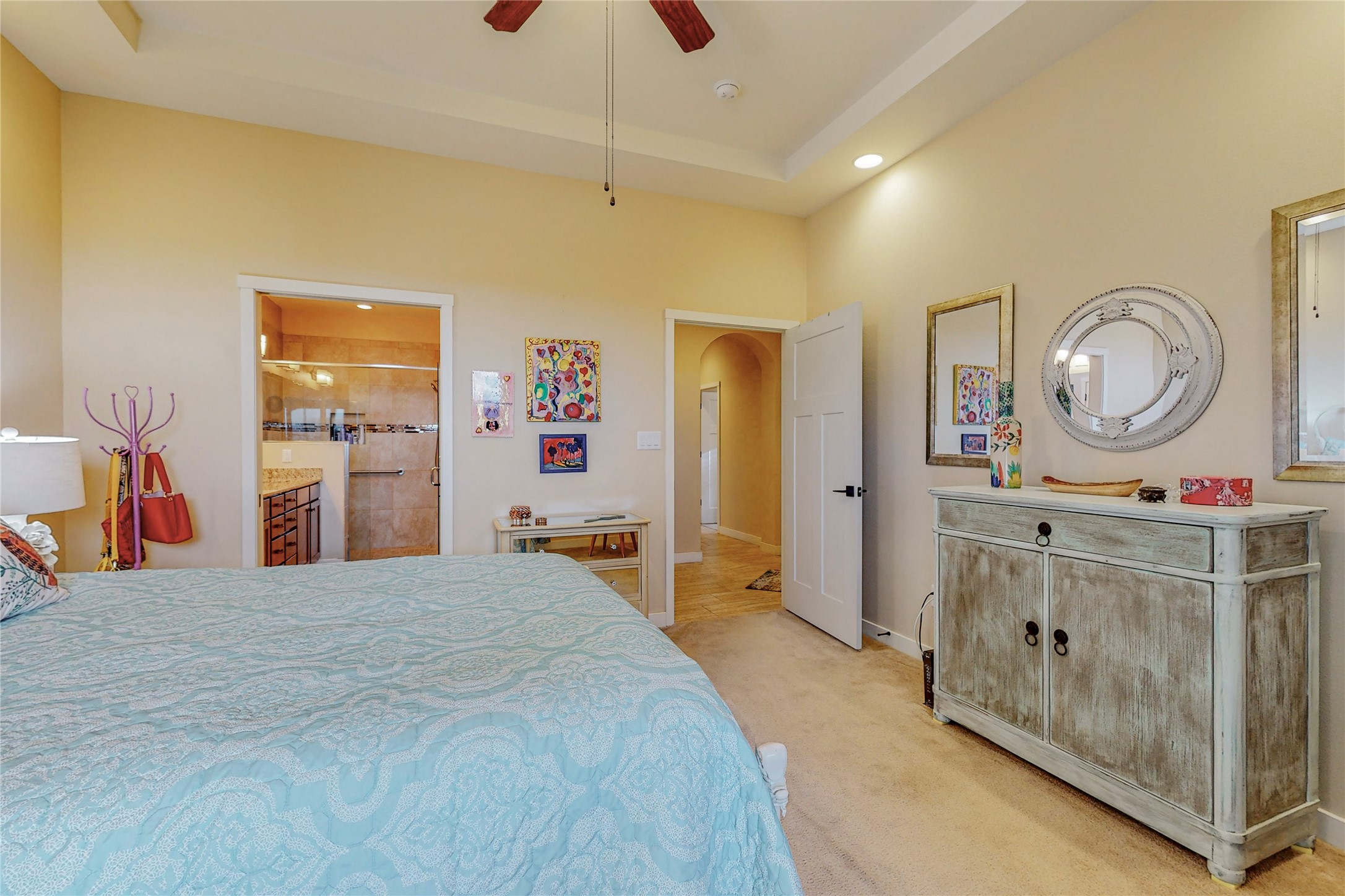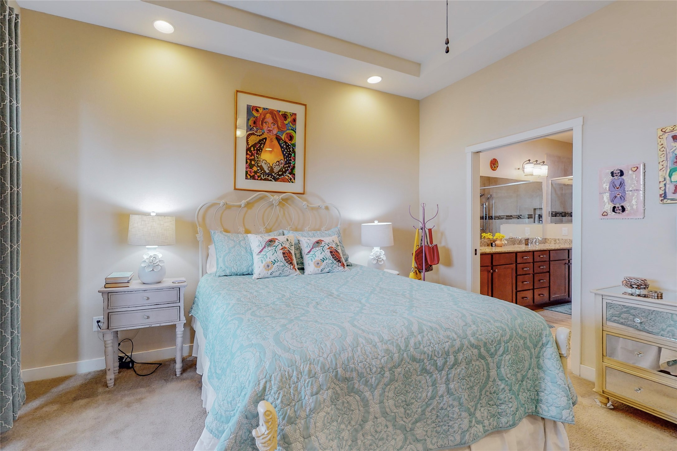 Open concept living, this floor plan allows abundant natural light & easy living. Offers a spacious primary suite and two additional guest rooms, ideal for your den/office/studio with two outdoor covered portals. High ceilings with beams, granite countertops, hardwood cabinets, walk-in closets & pantry, a spacious kitchen island, all Kitchen Aid Stainless Steel appliances and refrigerated A/C are a few of the fine living features. This home is designed without any steps and provides ease of accessibility. Villas di Toscana is a gated community ideal for full or part-time residency with walking paths, small parks, and open space. Centrally located, the neighborhood is just minutes from the historic downtown plaza, museums & galleries, skiing, hiking, shopping and entertainment venues. Welcome home to Villas di Toscana!