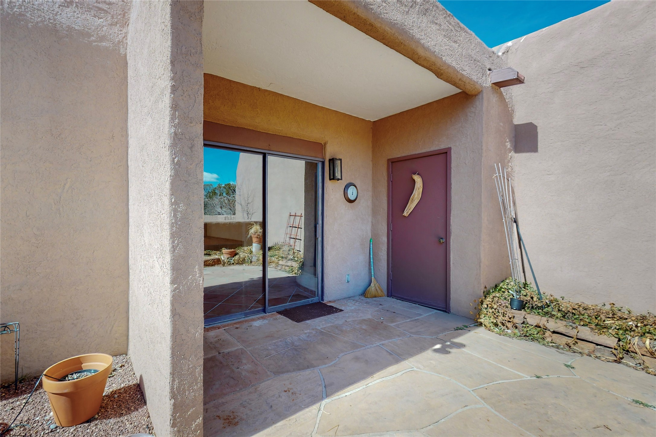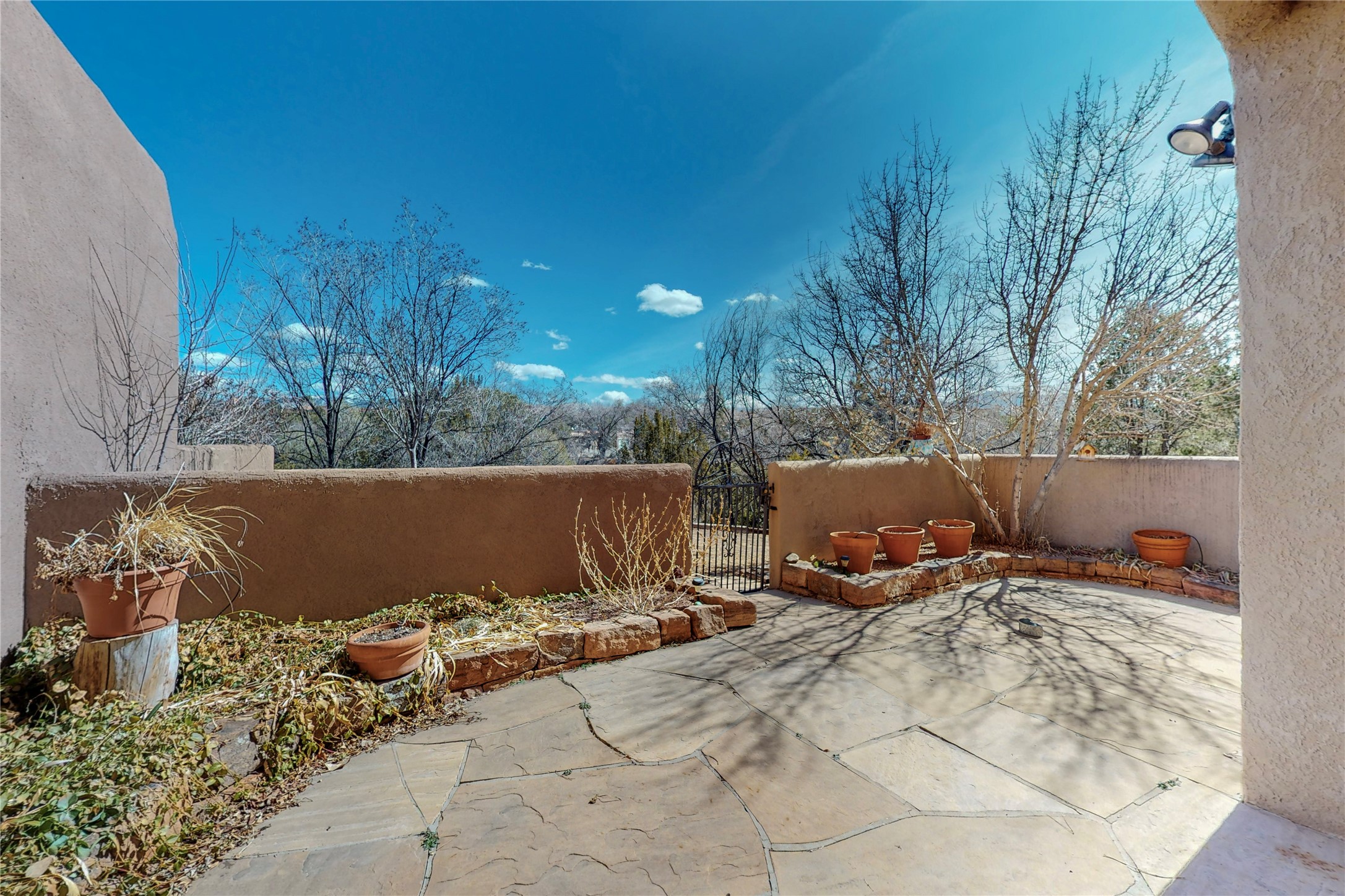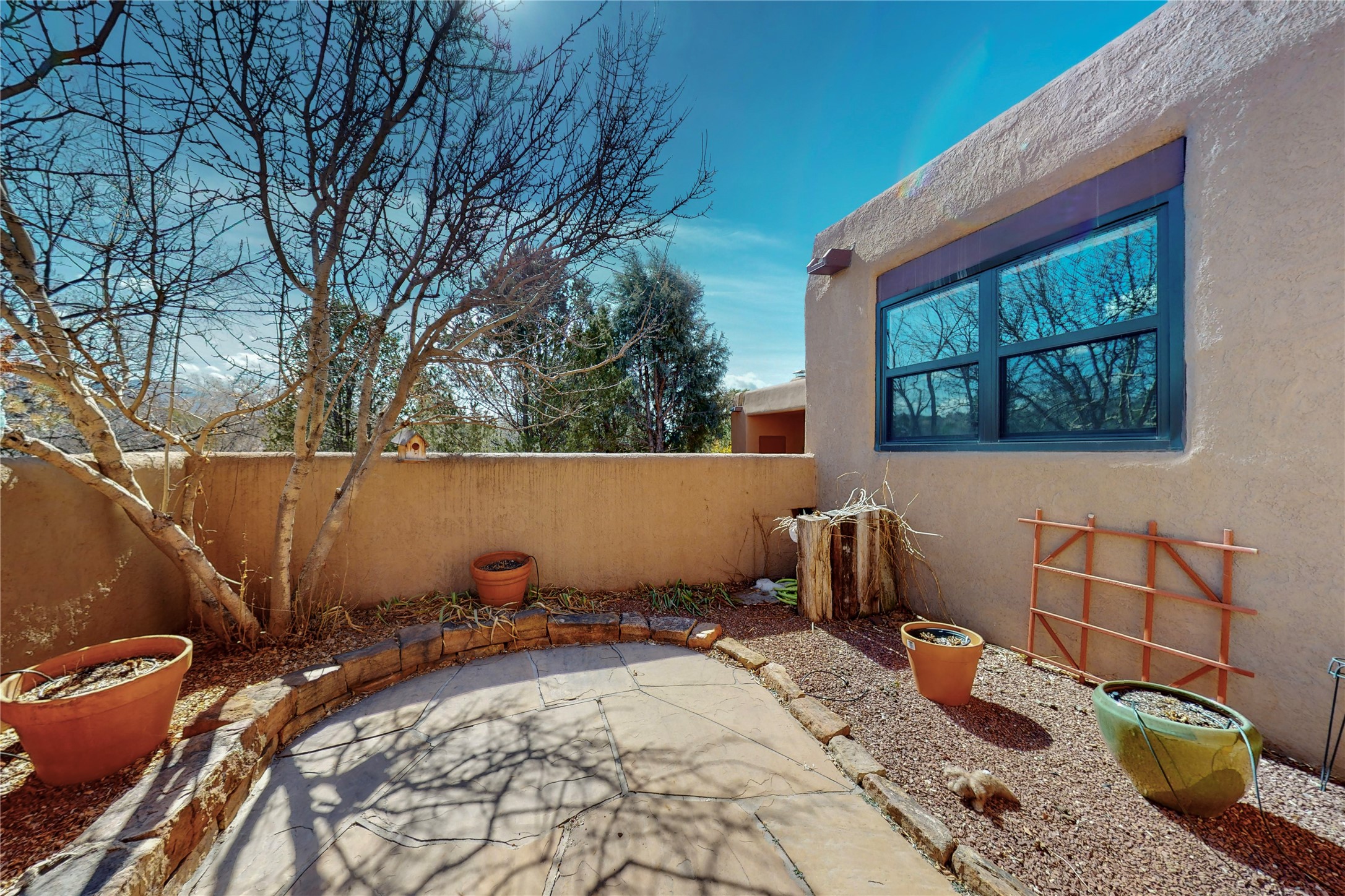 A rare single level townhome in Valle Del Sol, less than a mile from the historic Santa Fe Plaza, nearsports facilities at Ft. Marcy Park (including pickleball courts). This home has been updated over theyears, it is move in ready. Two steps down to the living room, Kiva fireplace, galley kitchen,dining area, sliding patio doors, walled courtyards, laundry/mud room and and full size 2 car garage.Back patio has partial mountain views, abuting a heavily treed area. Buyers will feel like they are inthe country, but are close to all of Santa Fe's well known restaurants, galleries, unique shops and theLensic Performing Art Center. A great lock and leave opportunity or full-time residence. SHORT TERMRENTALS are not allowed. LOCATION, LOCATION, LOCATION! A must see for close to town living.